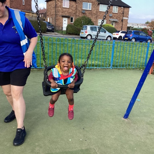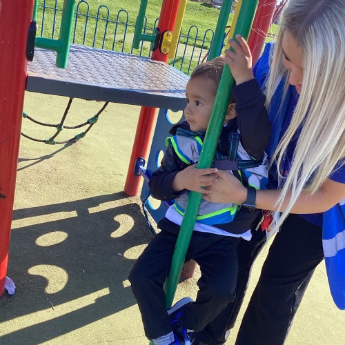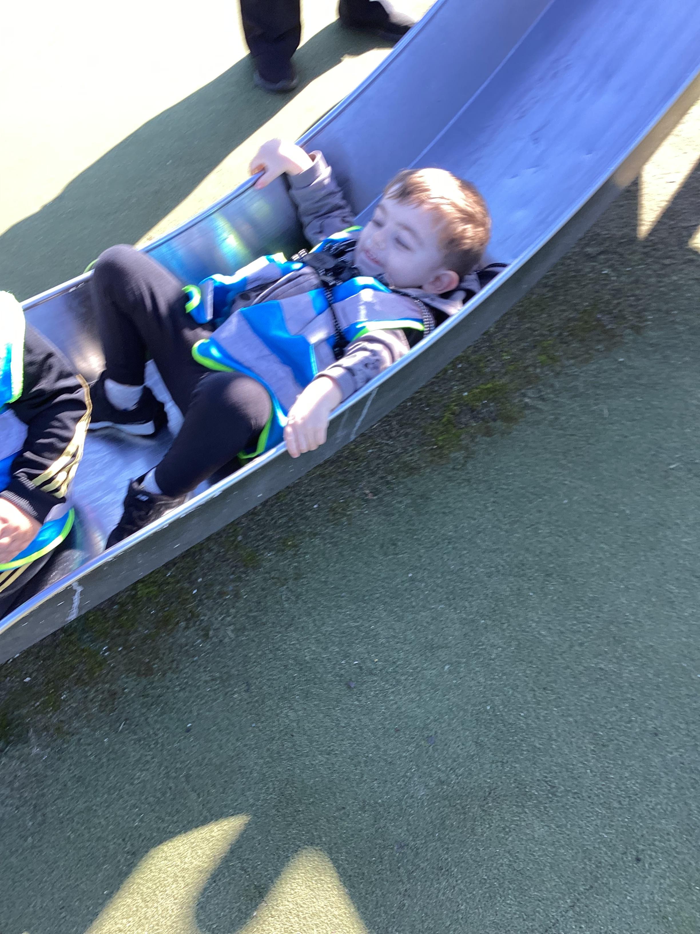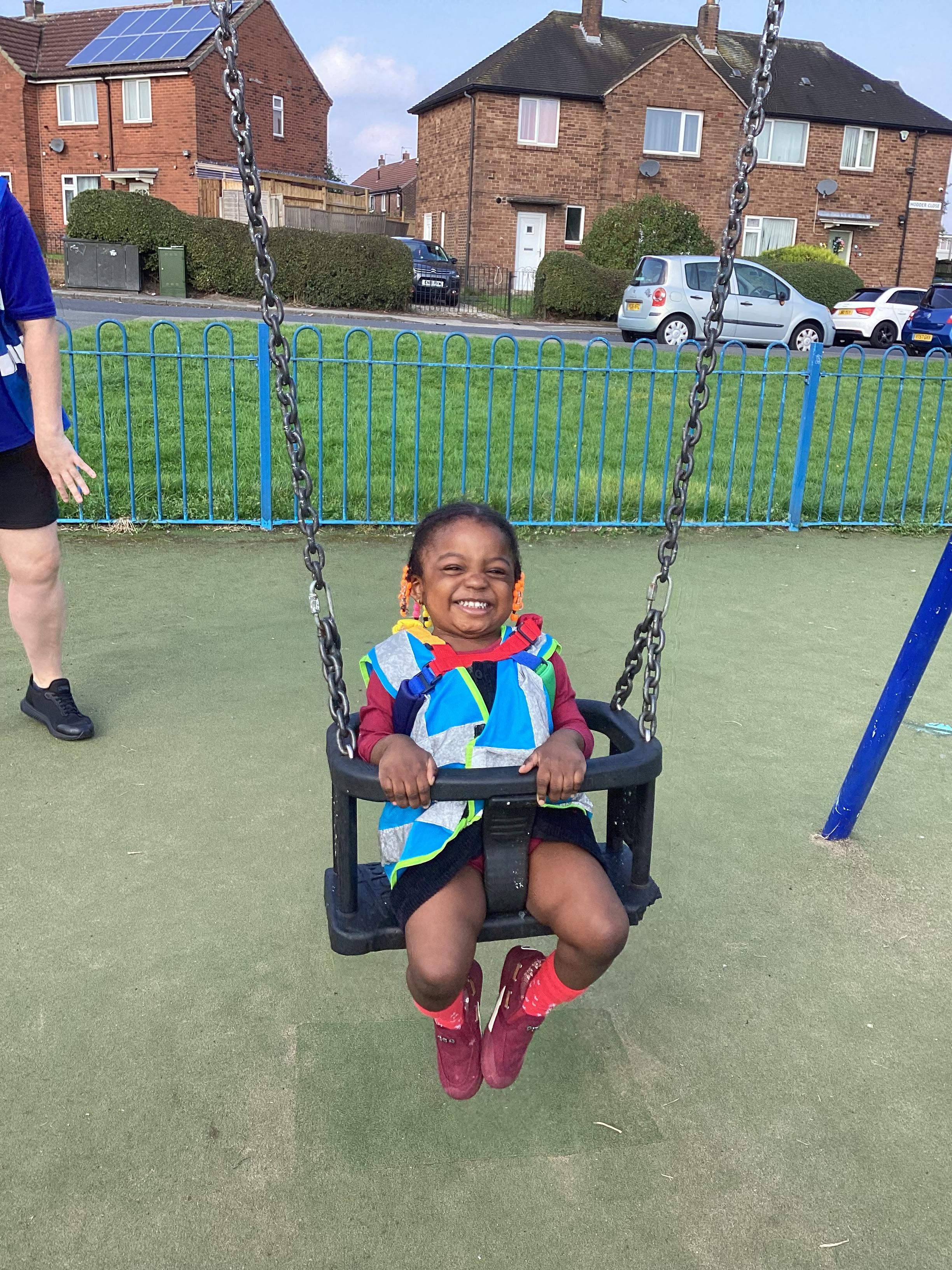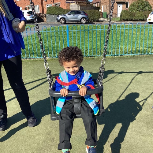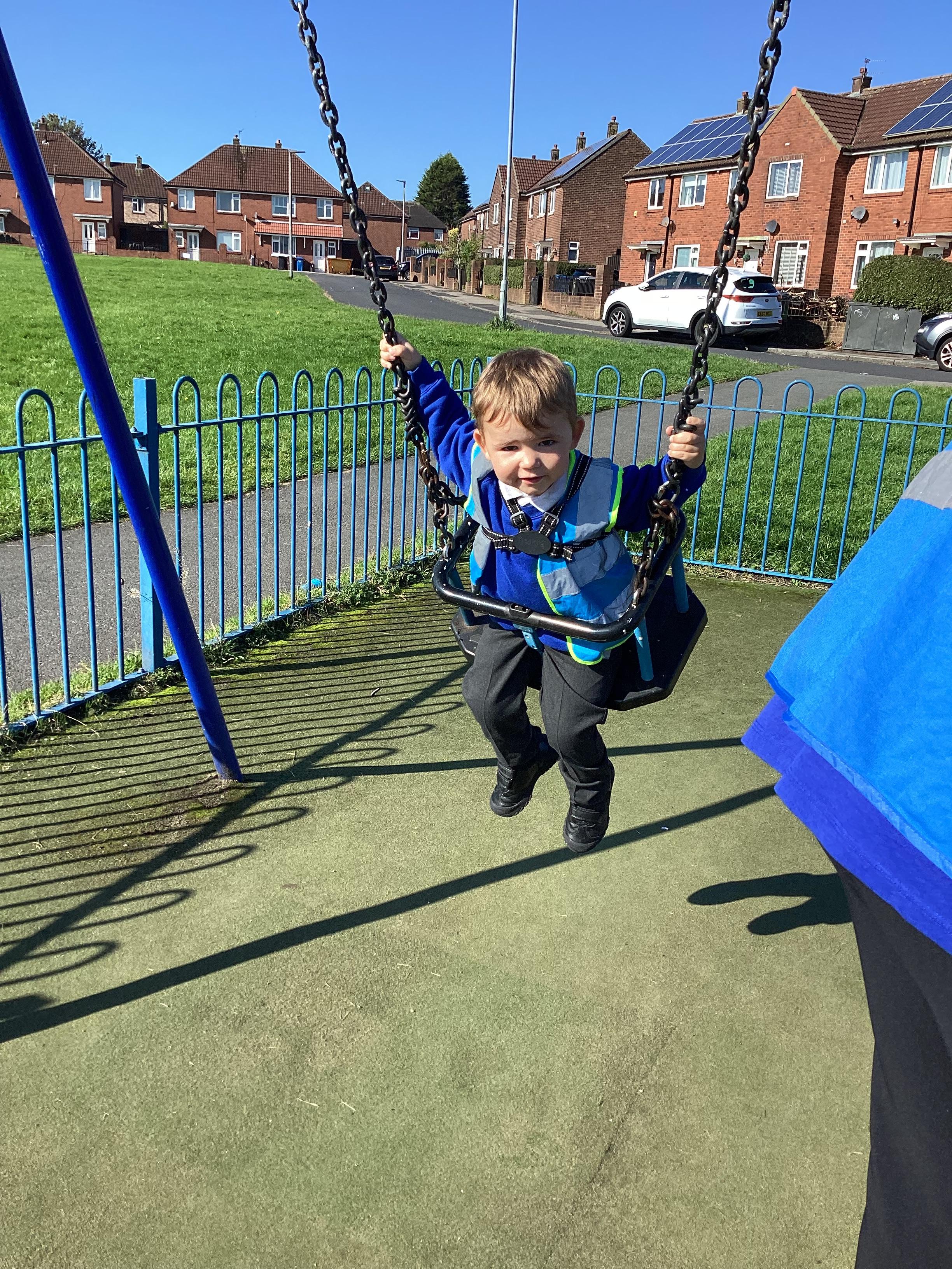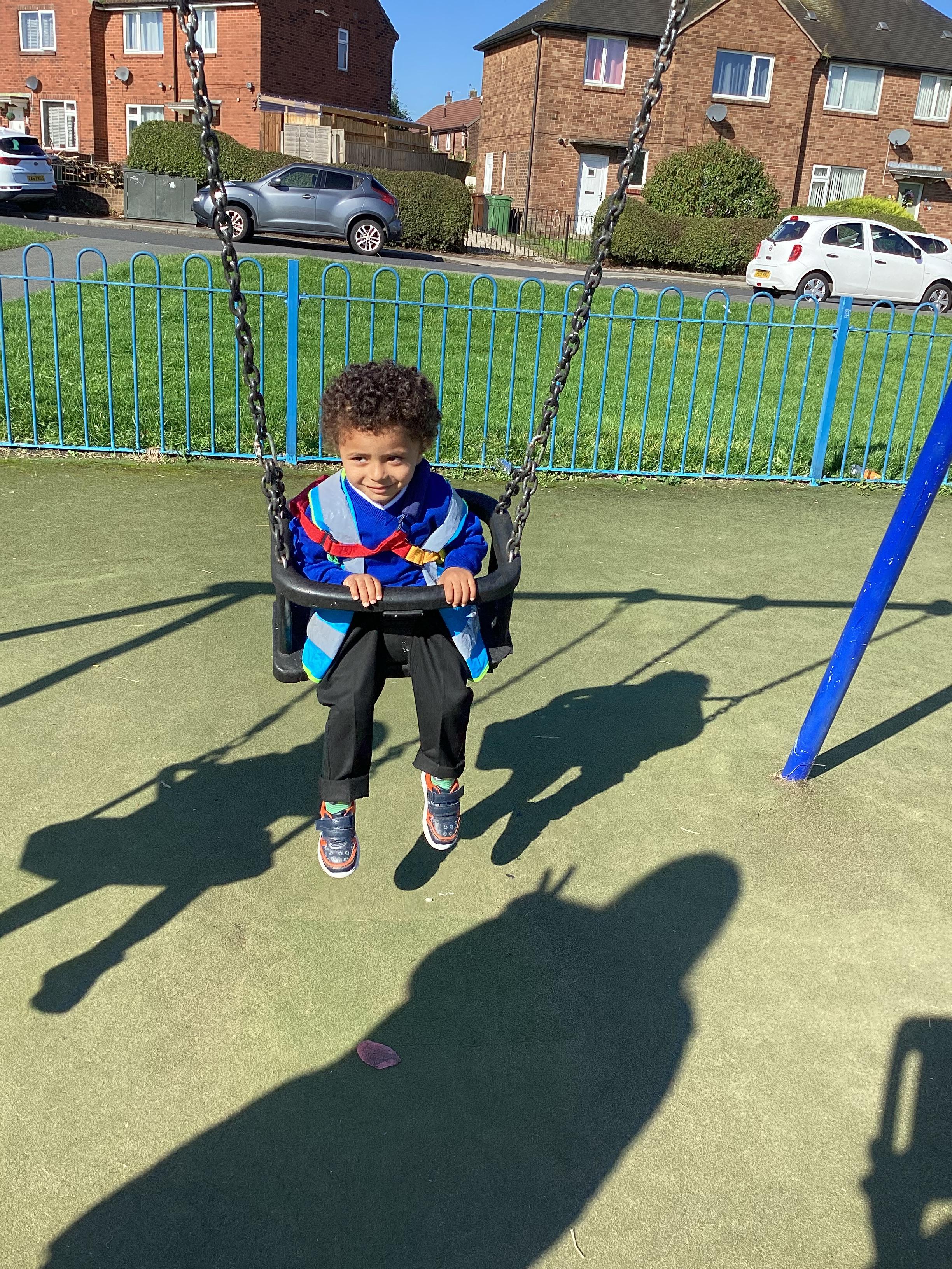 The children did really well walking to and from the park on their first little outing around the environment. They showed good "can do" attitudes when using physical skills and taking turns on the slide and swings![]()