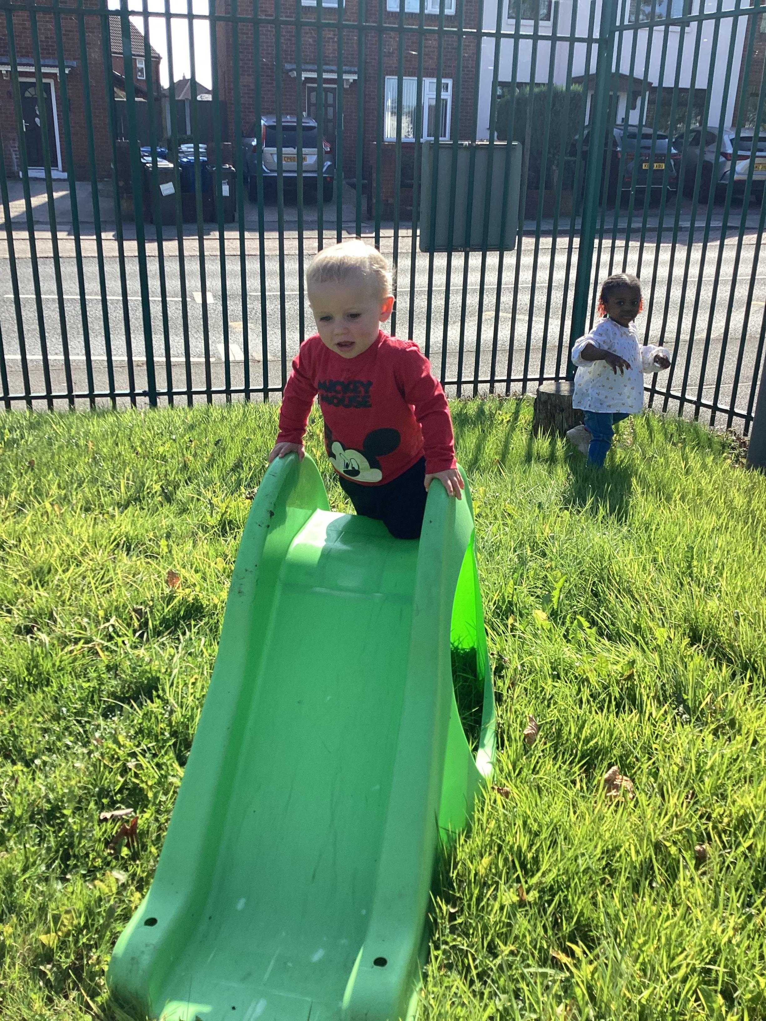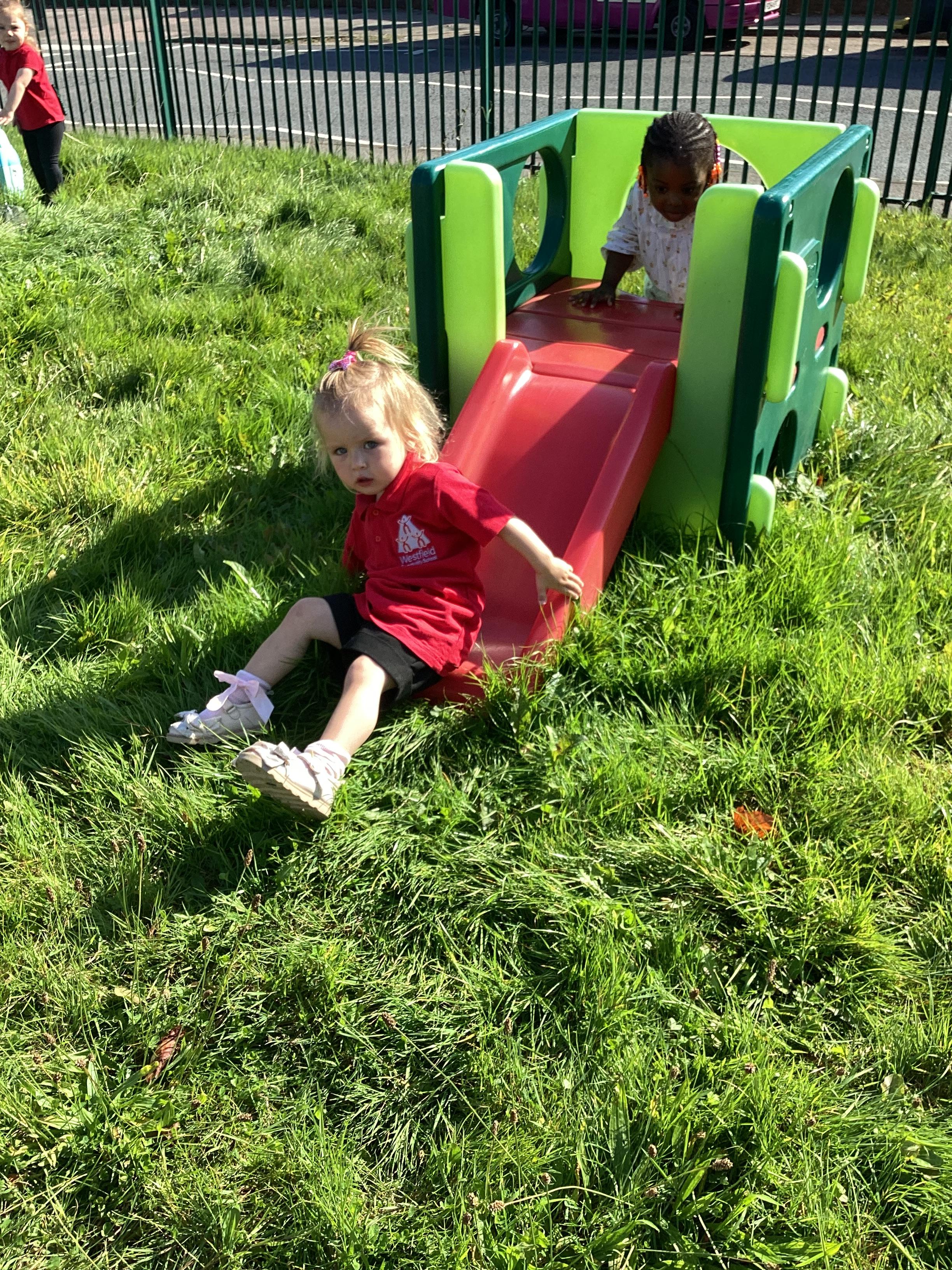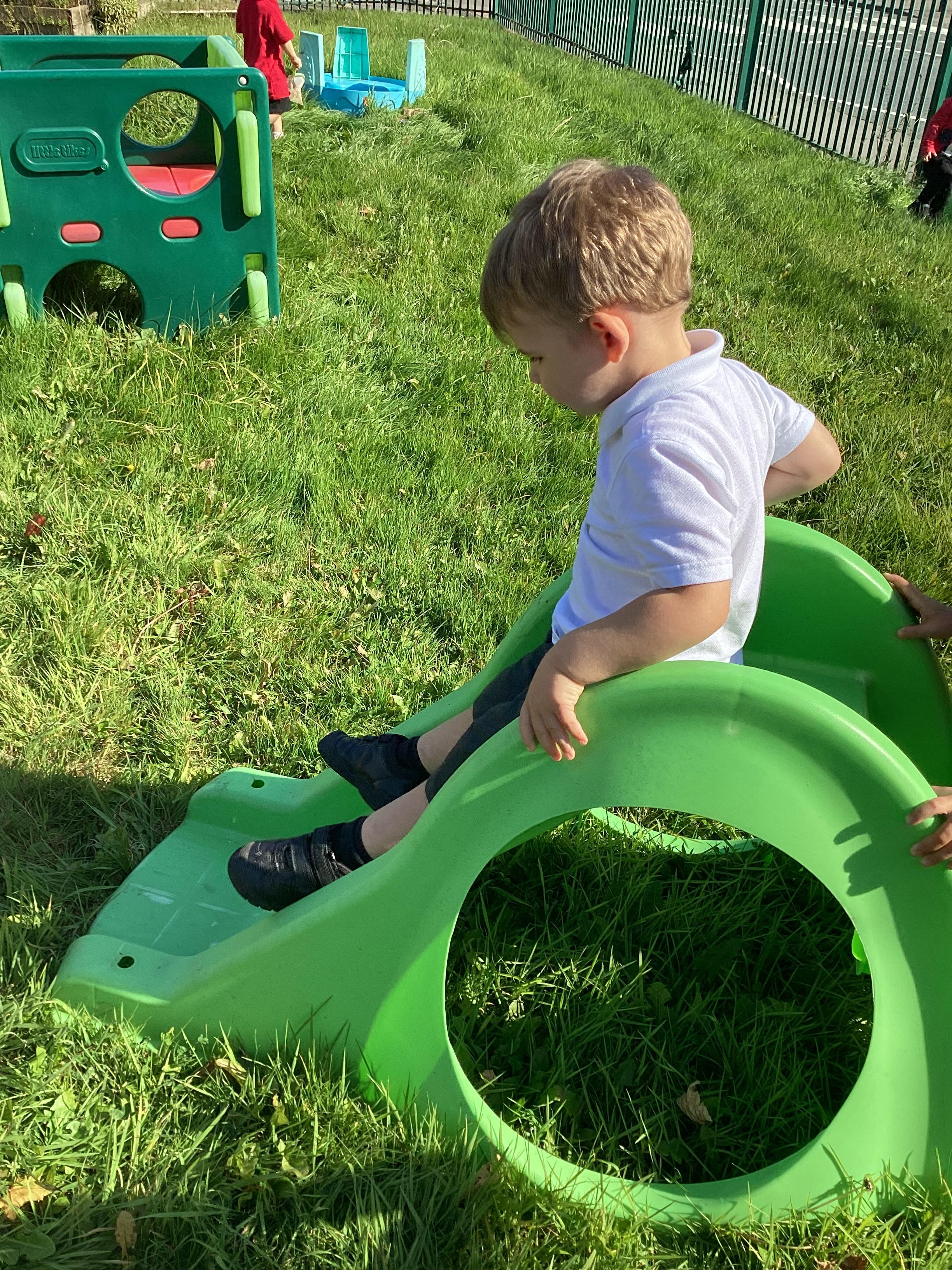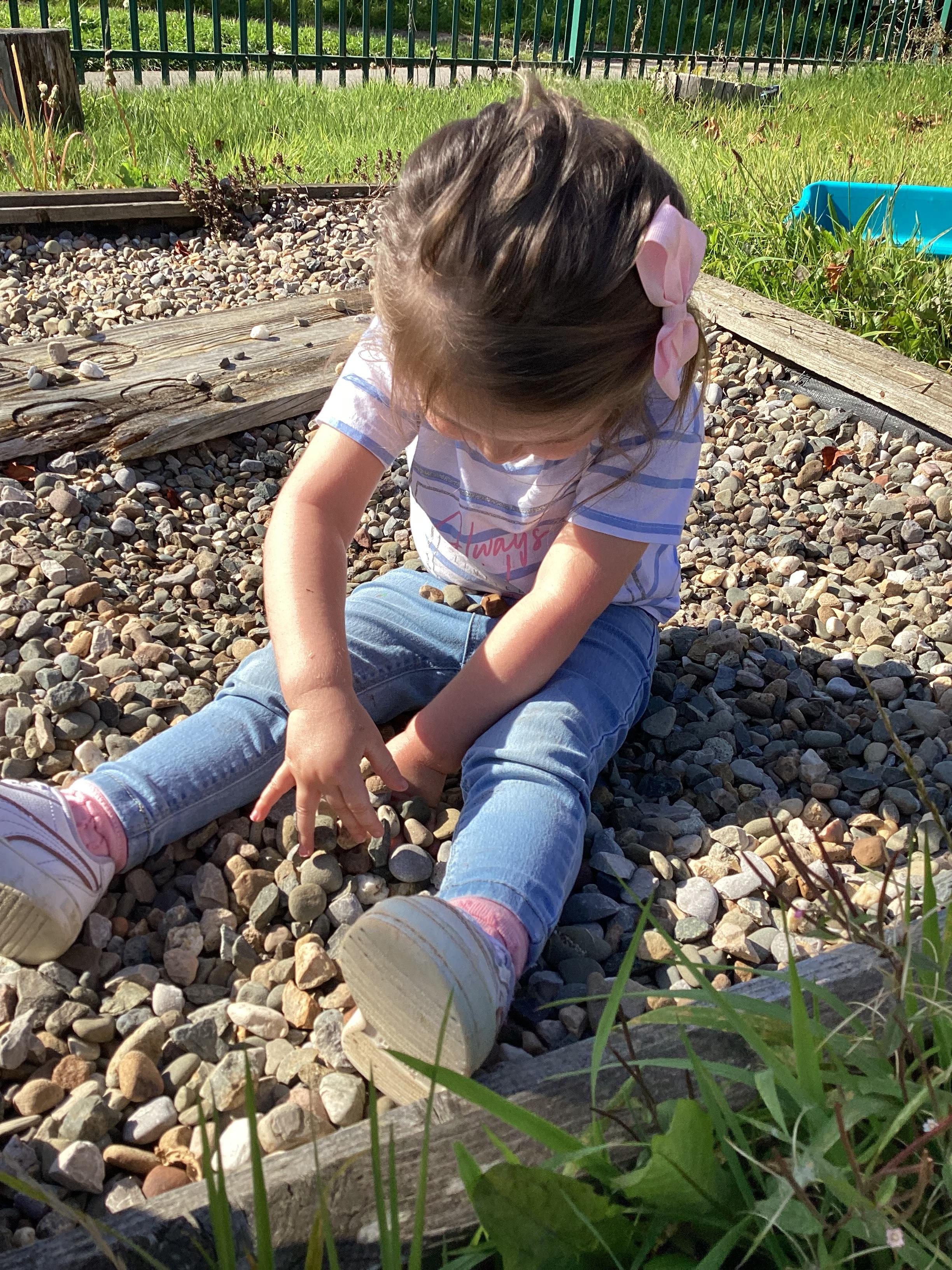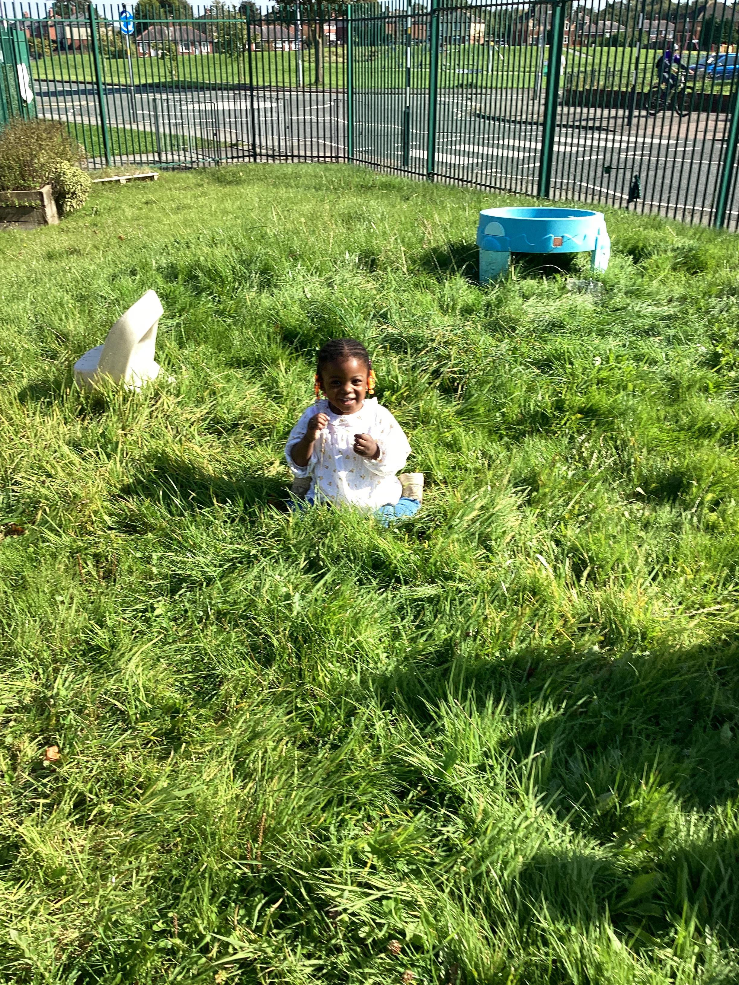 They have enjoyed playing up on the grass area and exploring all the different textures such as- grass, pebbles & woodchips.