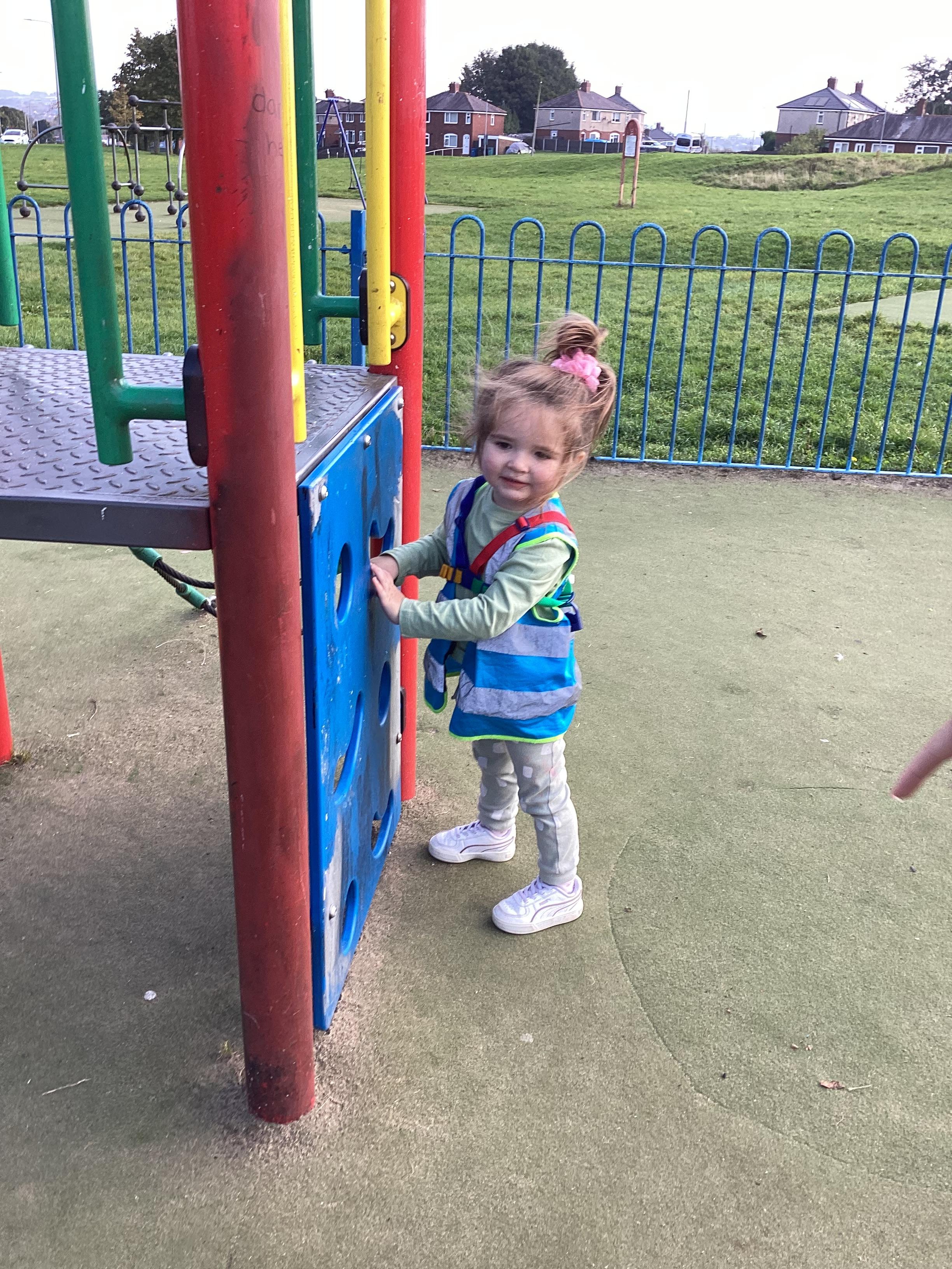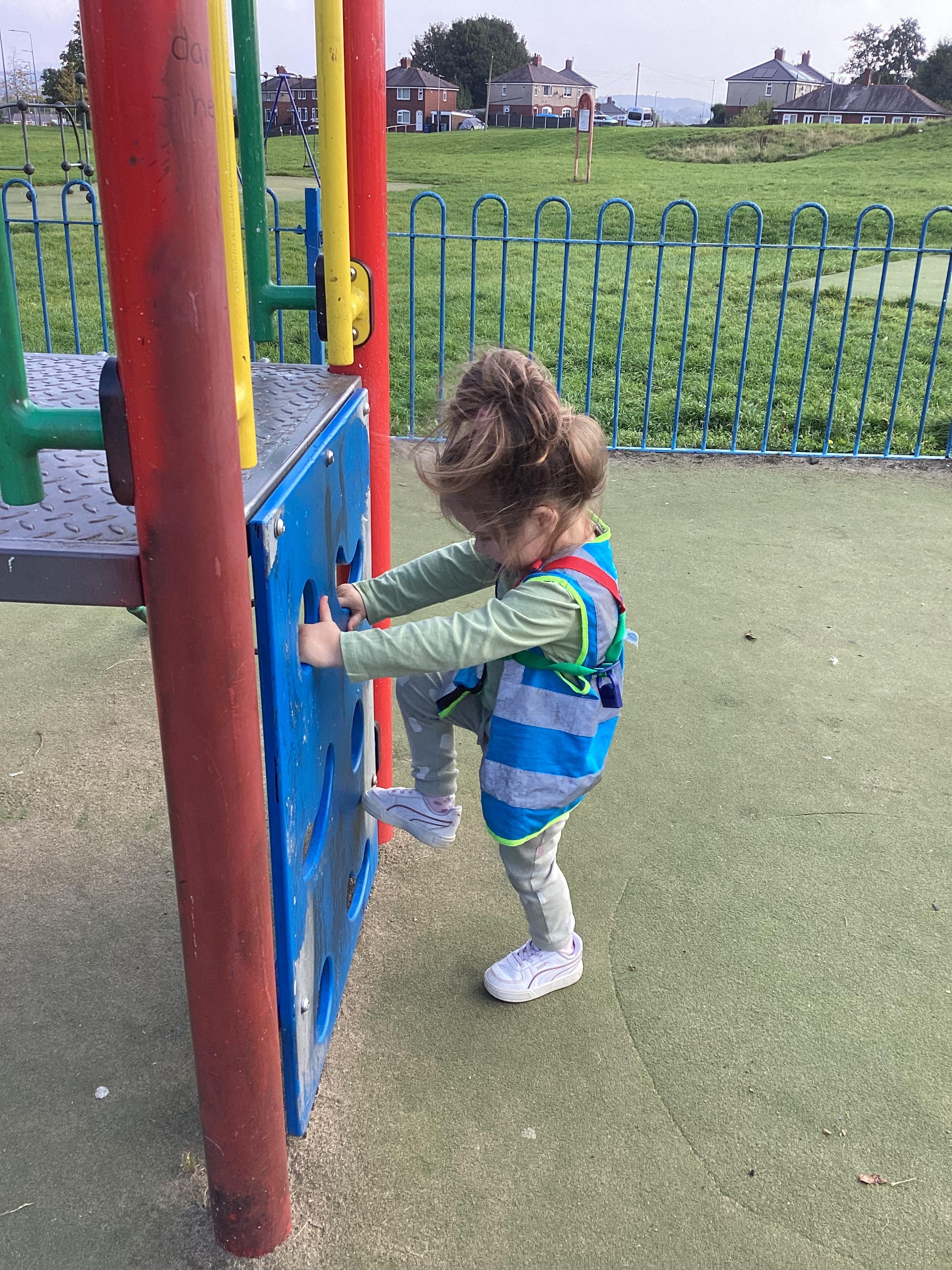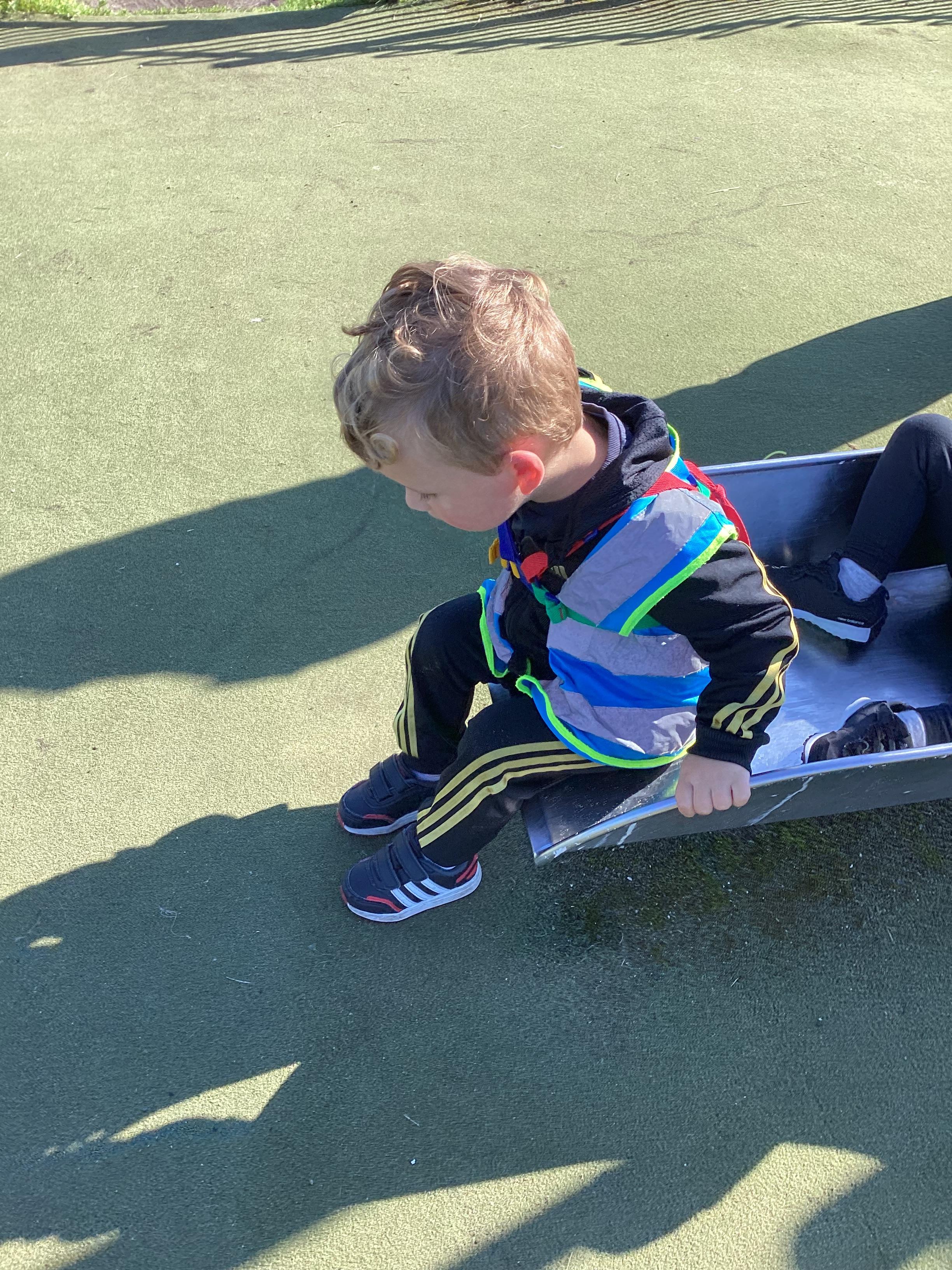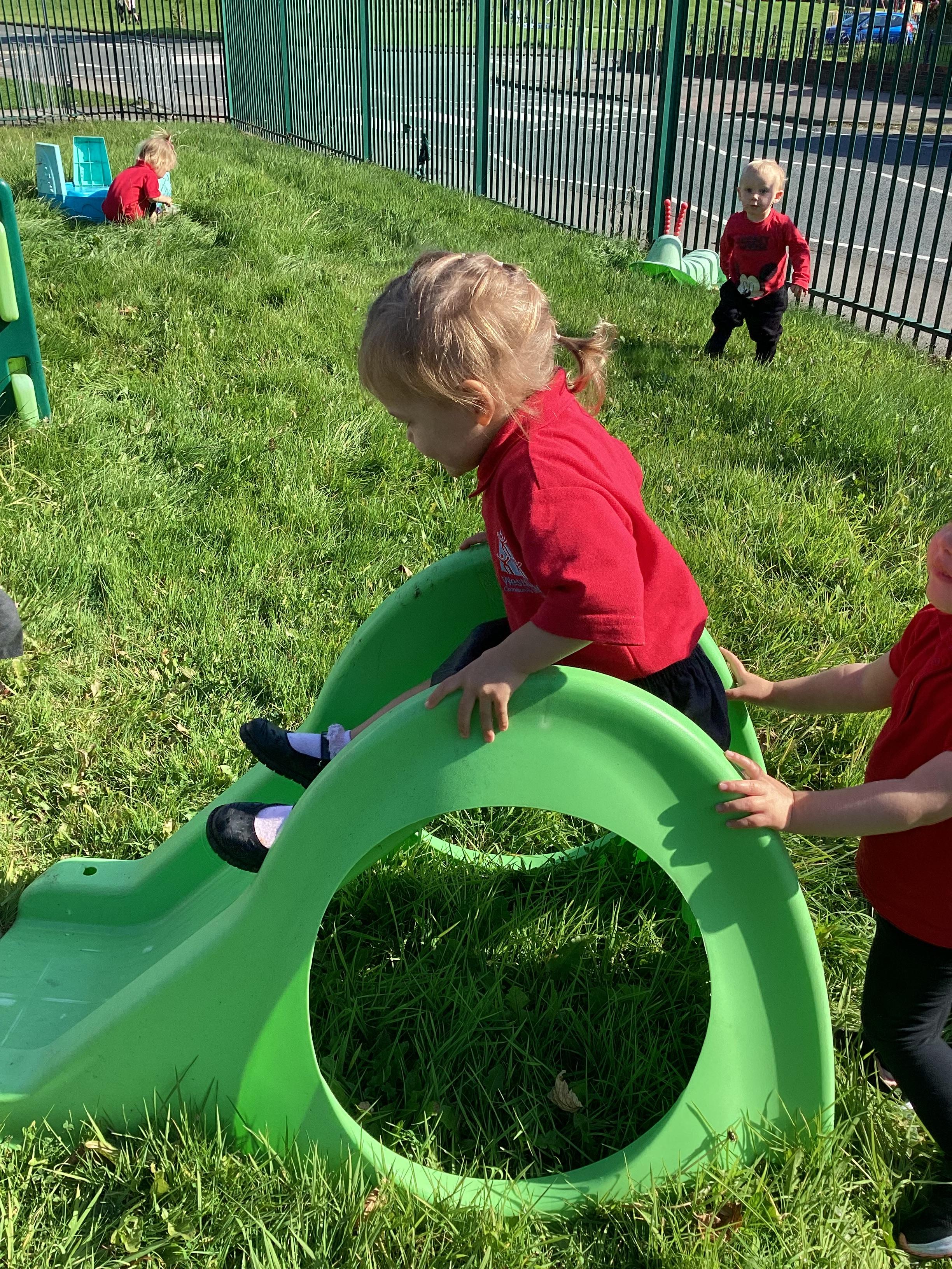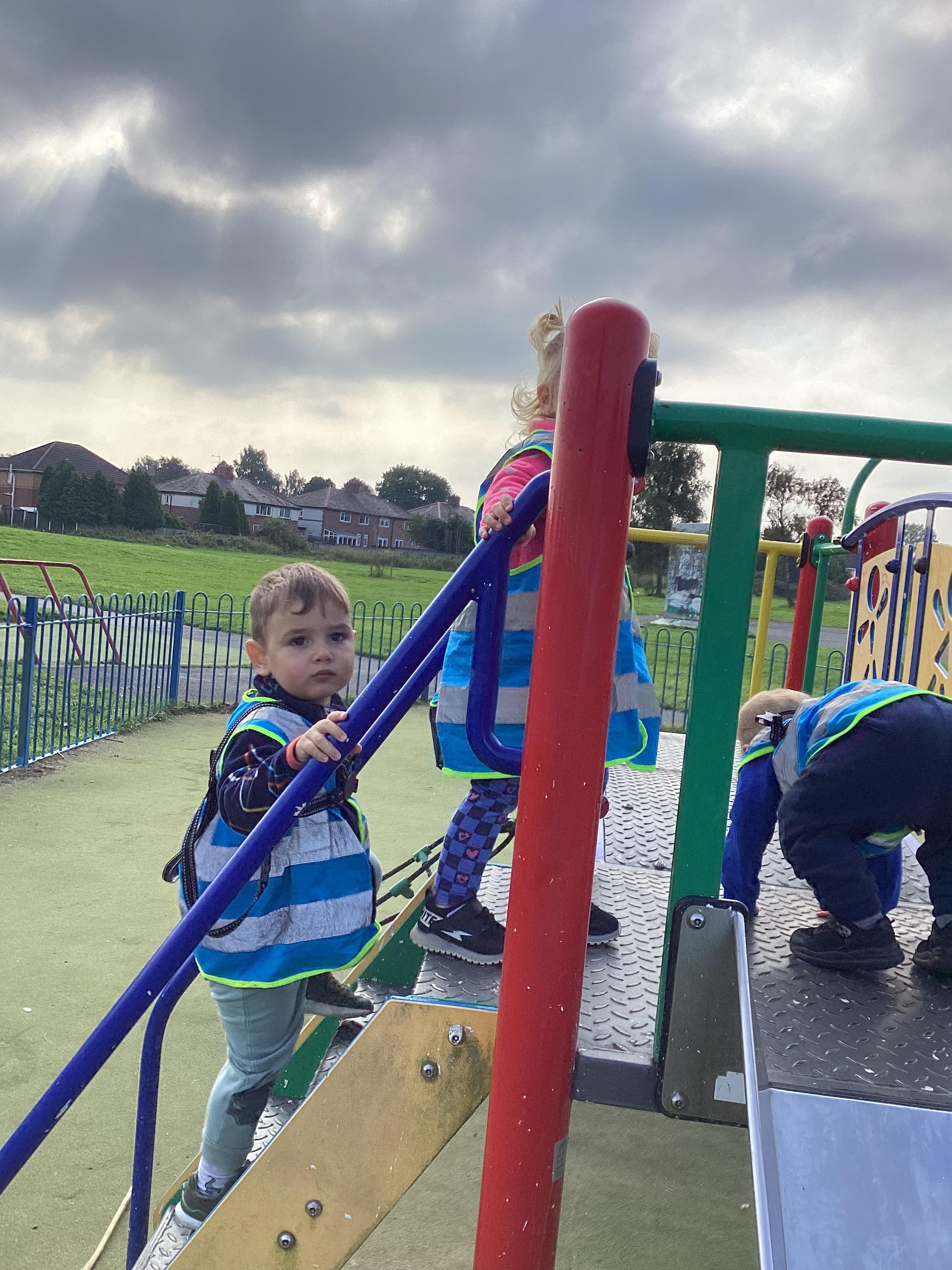 They have enjoyed playing up on the grass area and exploring all the different textures such as- grass, pebbles & woodchips.