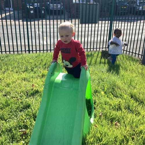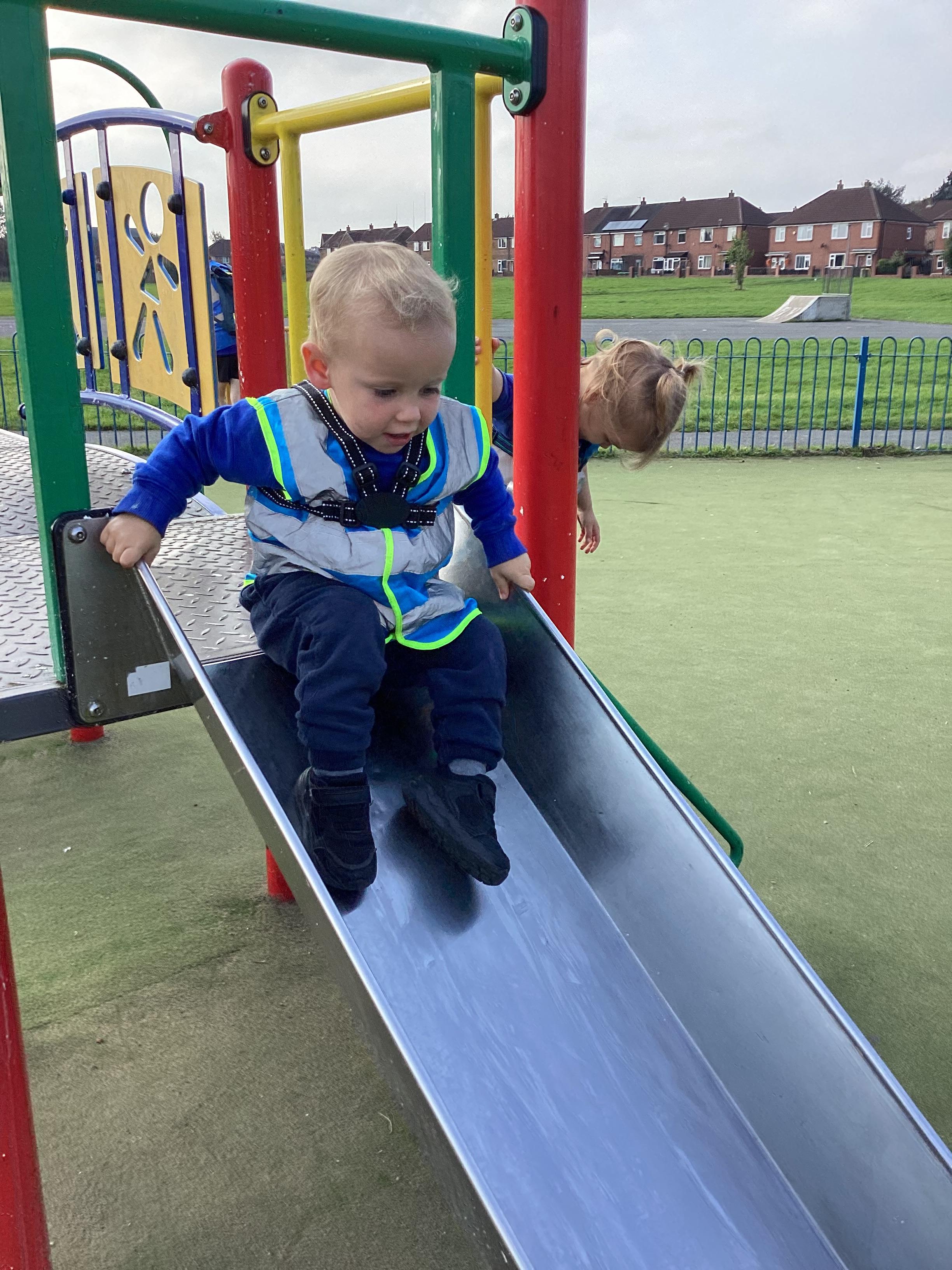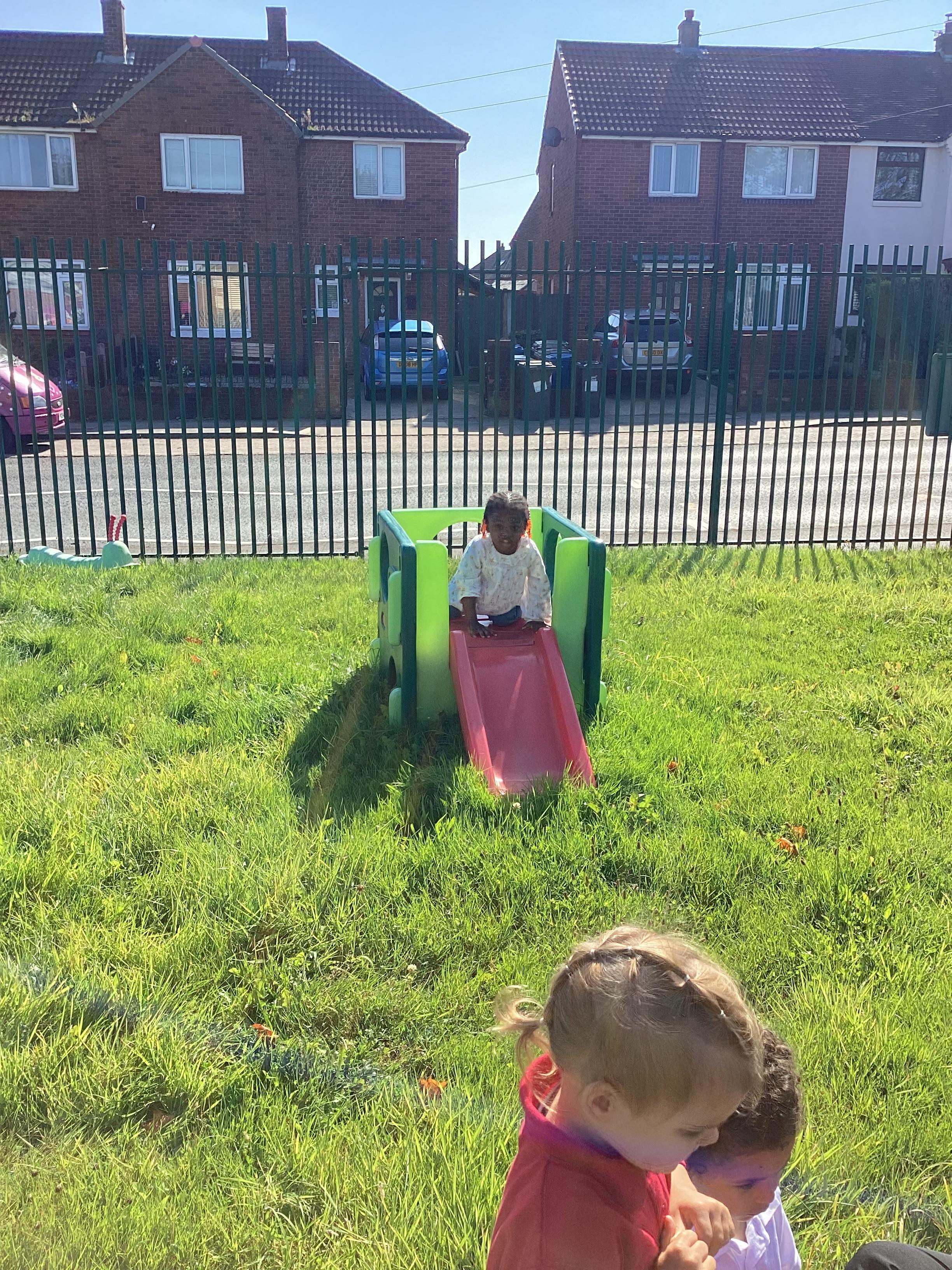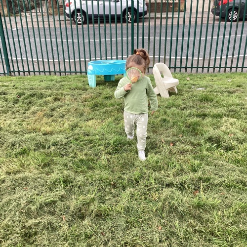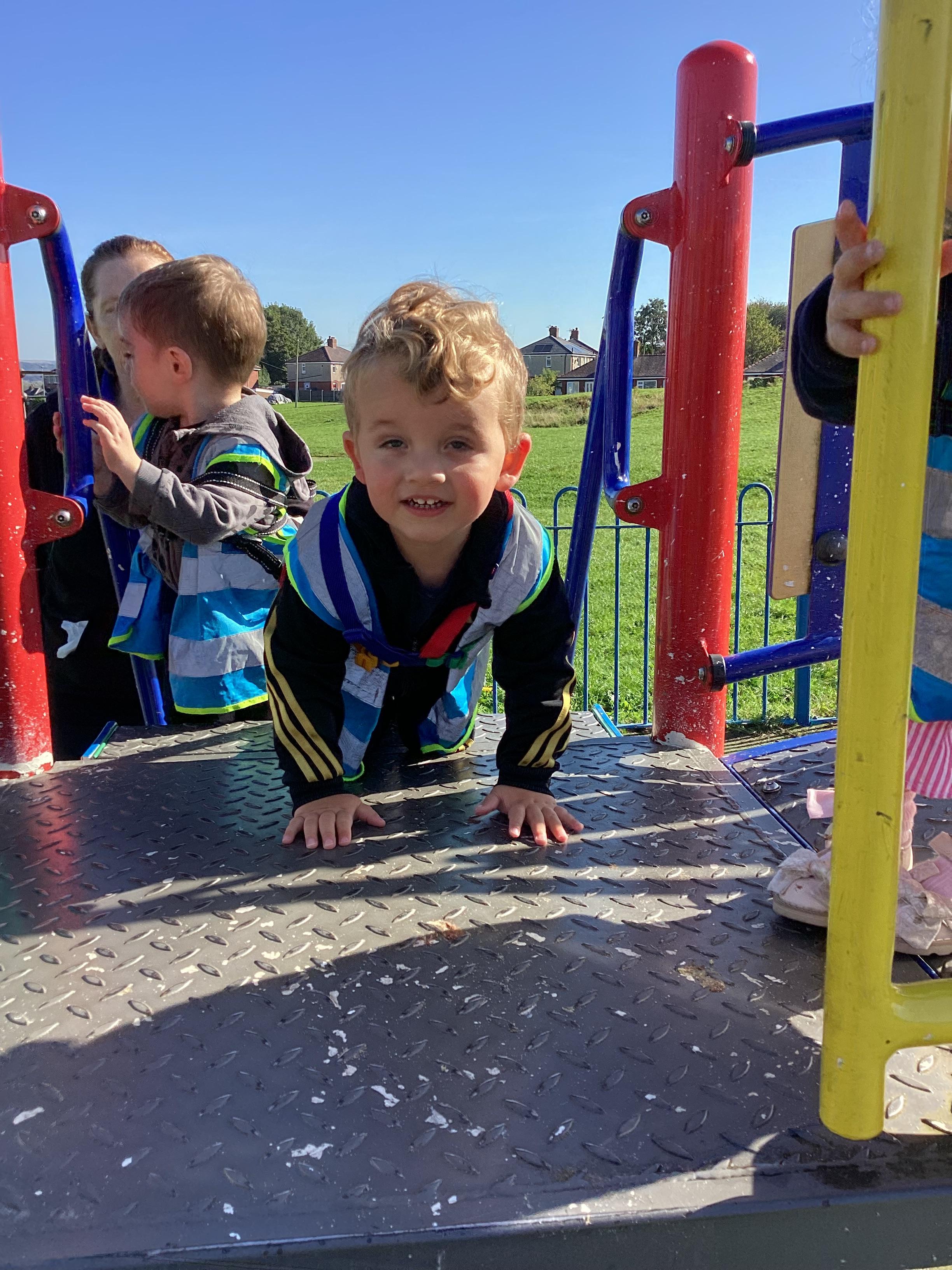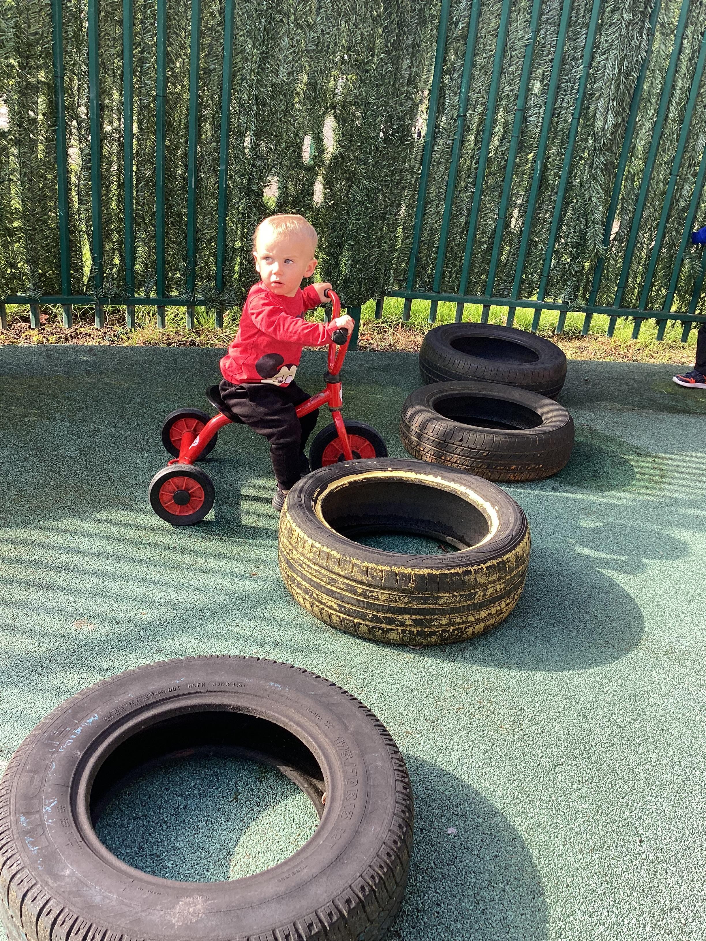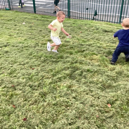 They have enjoyed playing up on the grass area and exploring all the different textures such as- grass, pebbles & woodchips.