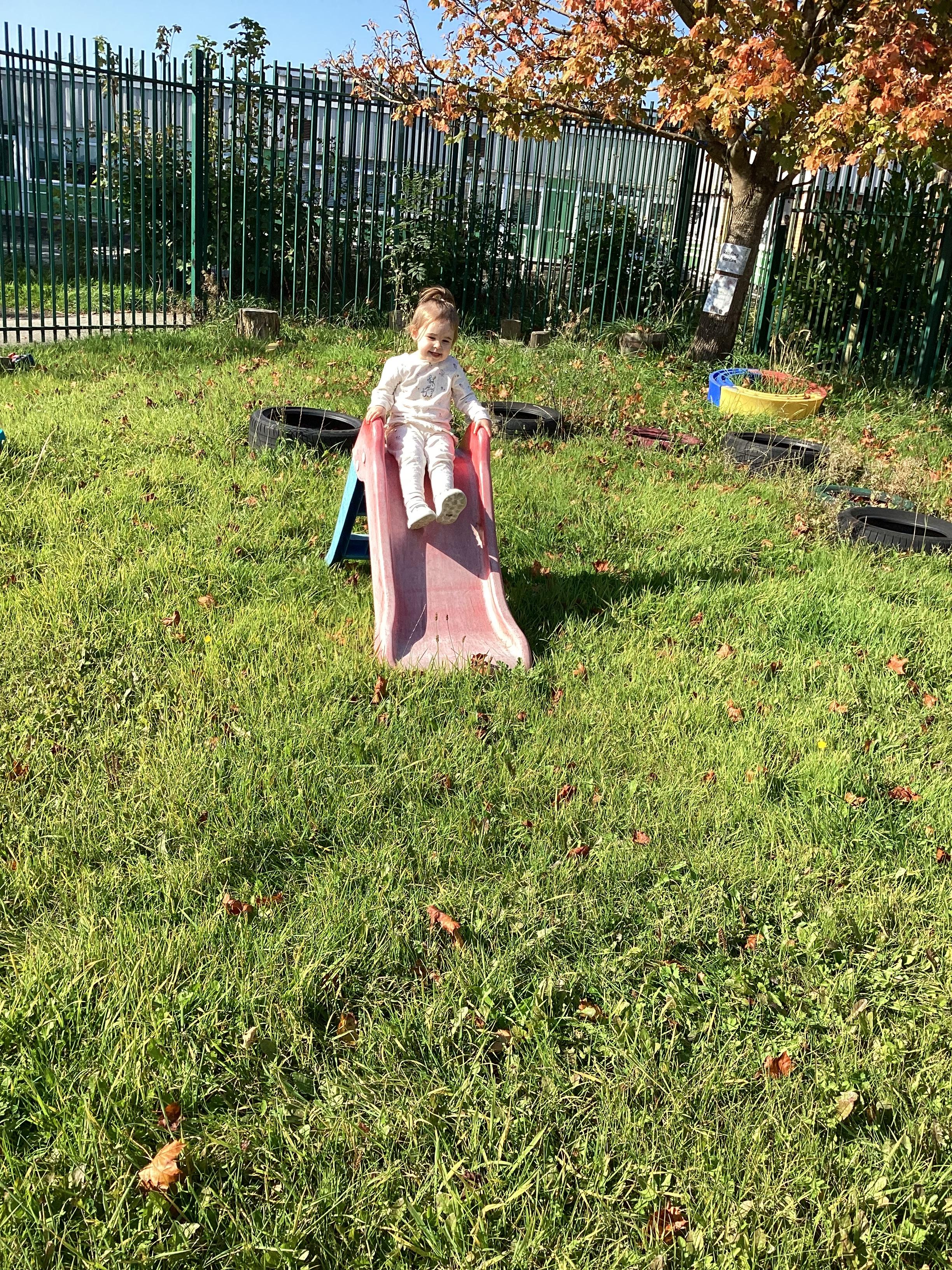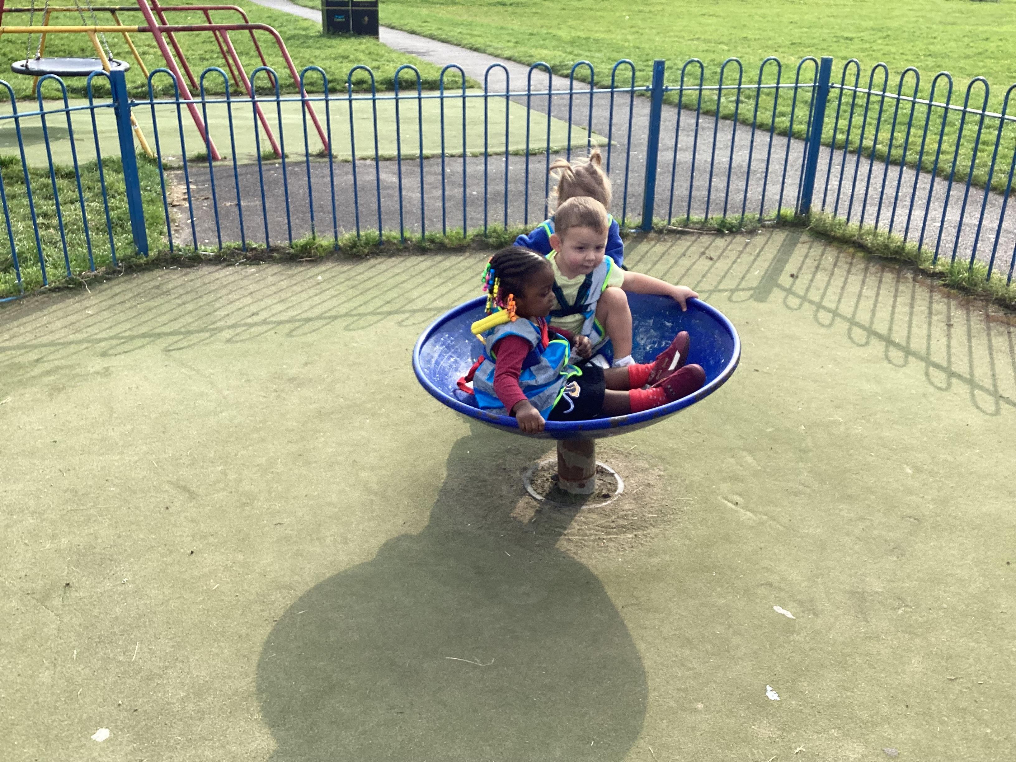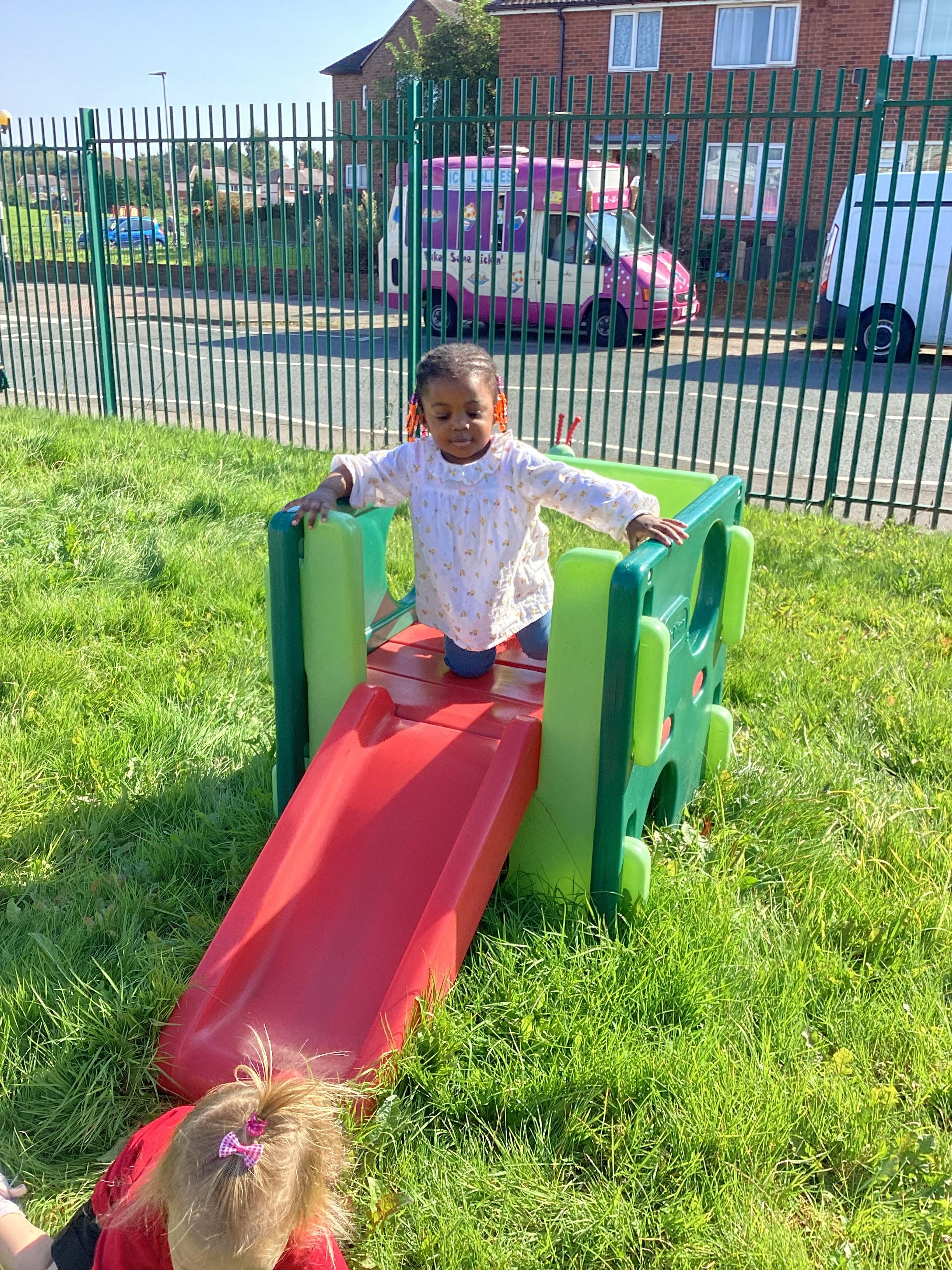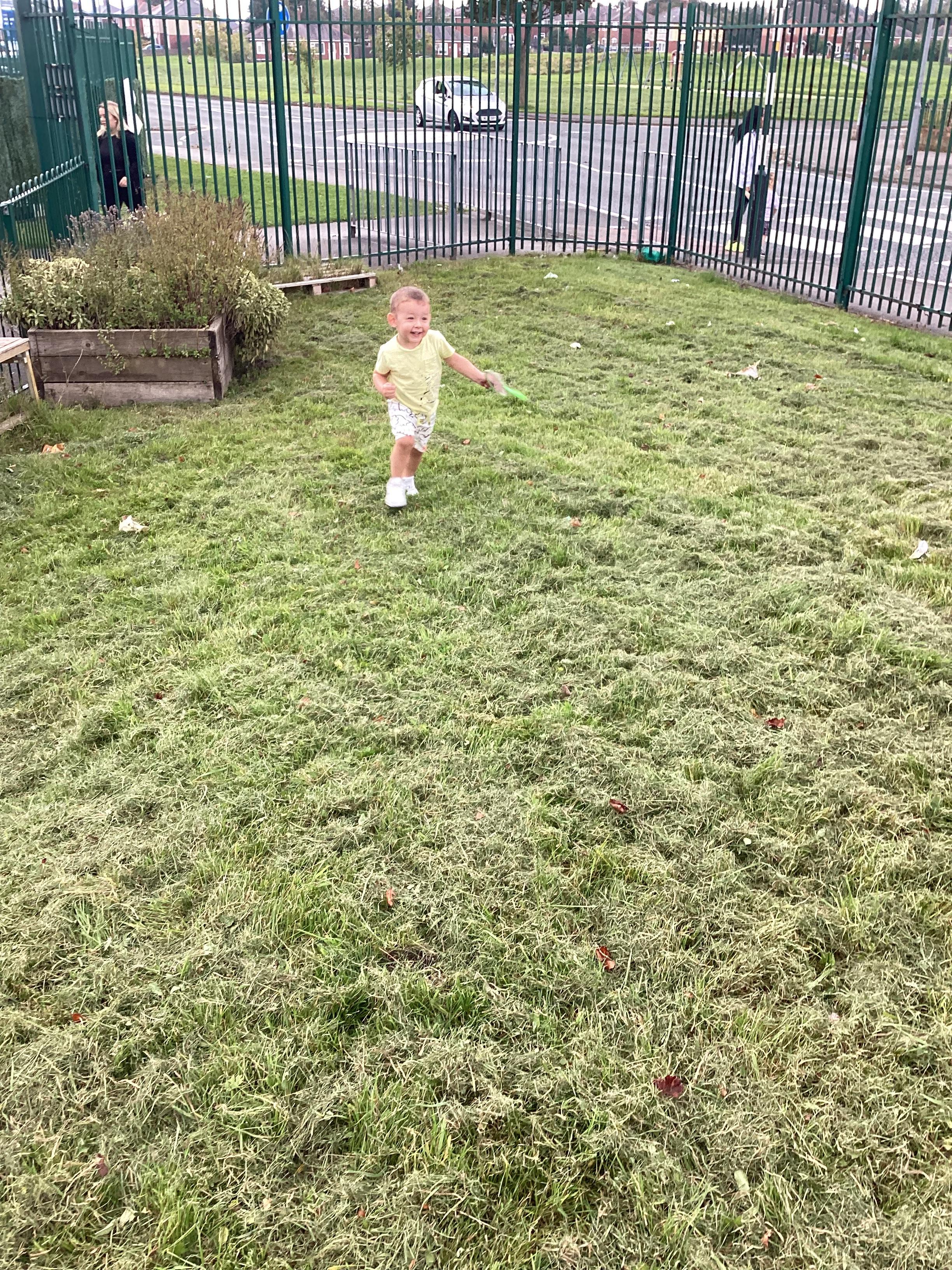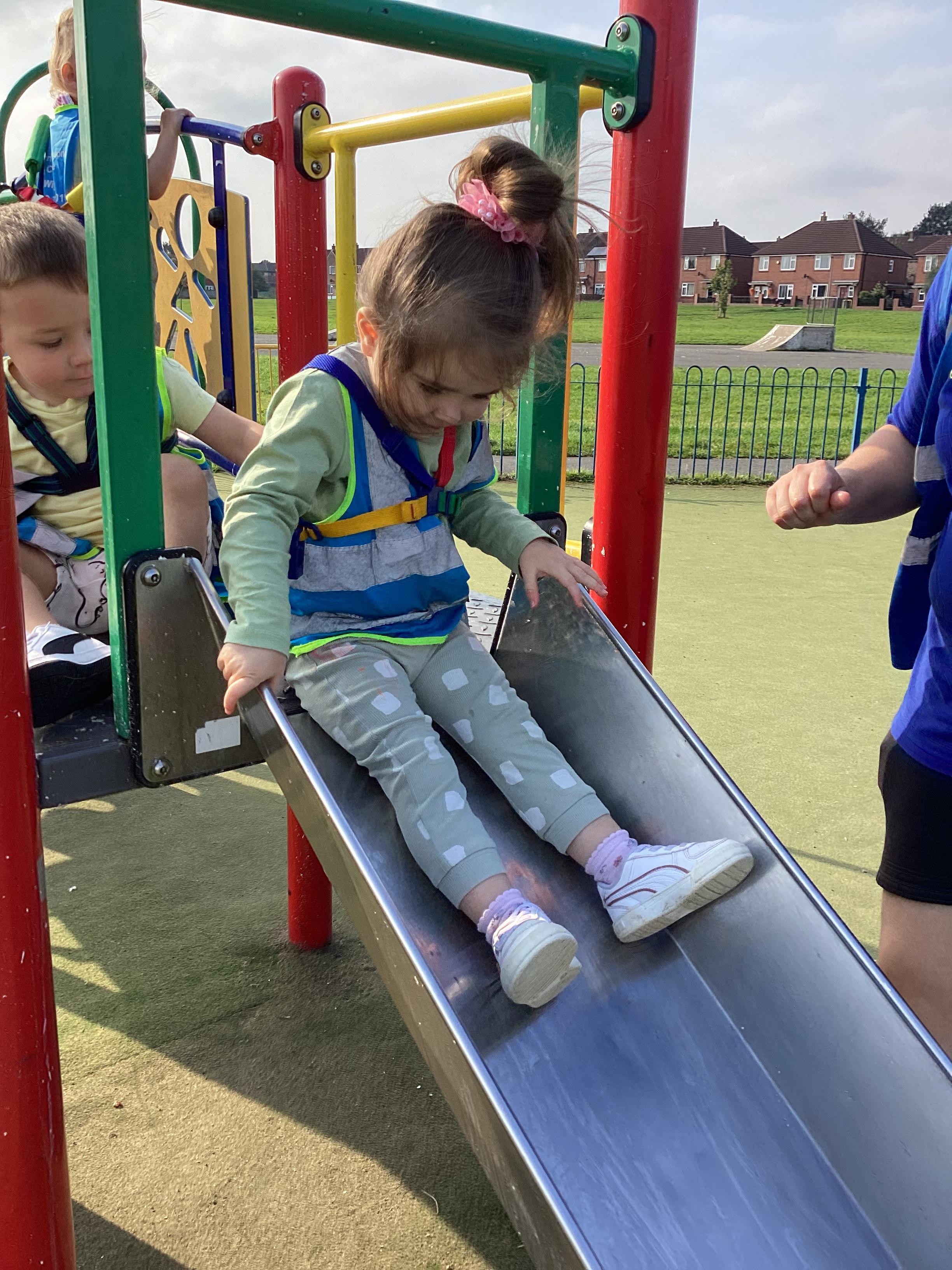 They have enjoyed playing up on the grass area and exploring all the different textures such as- grass, pebbles & woodchips.