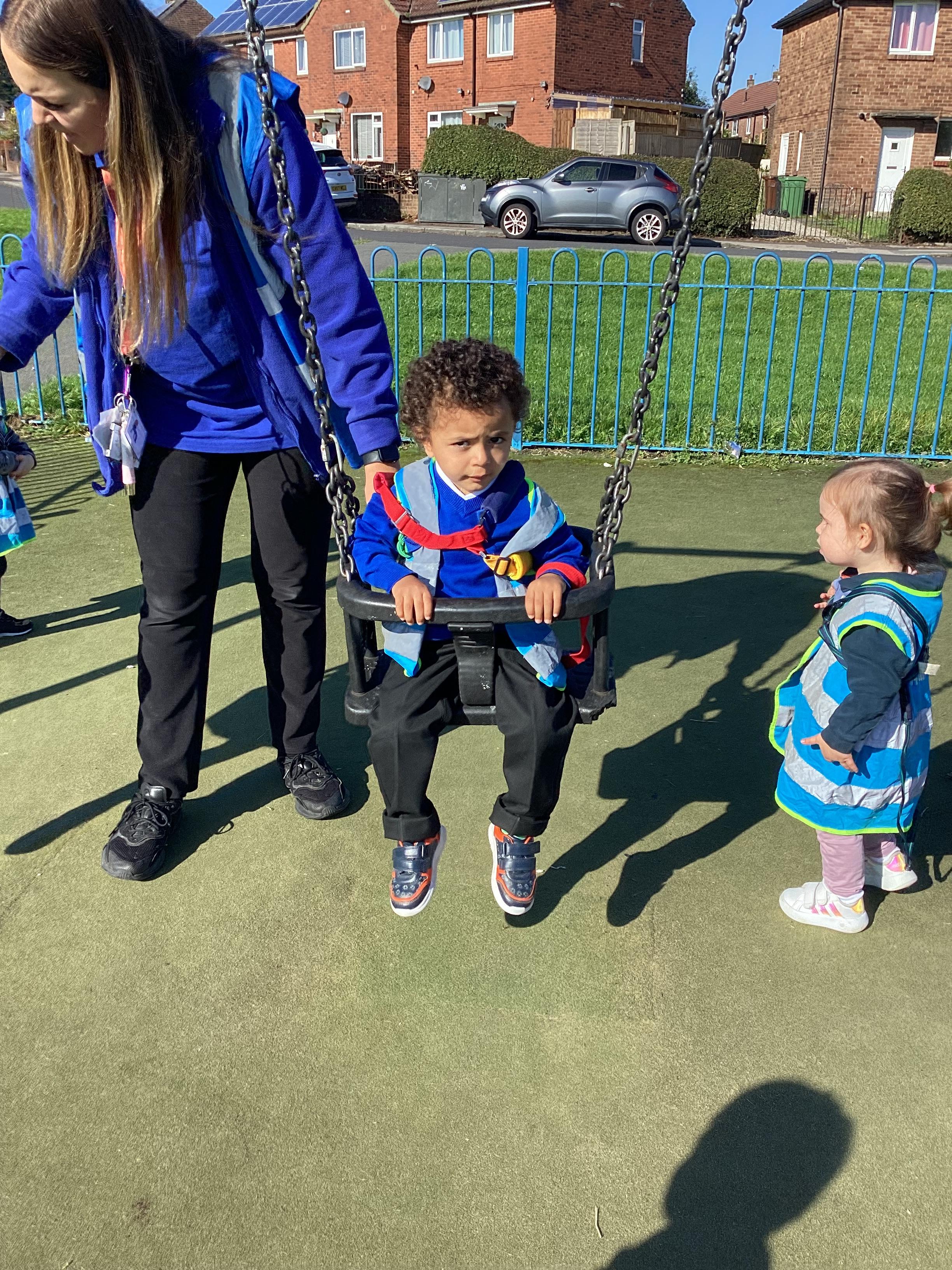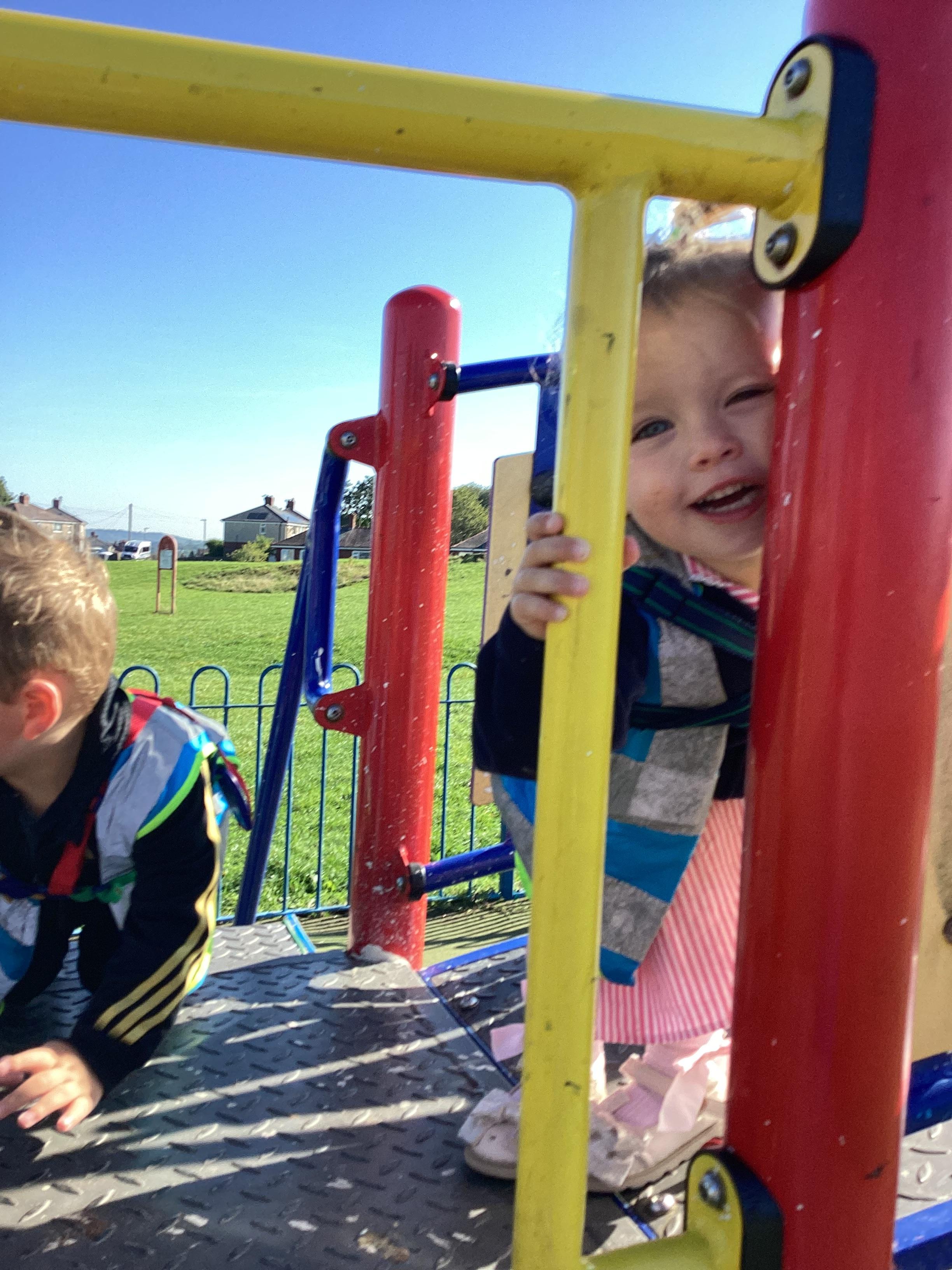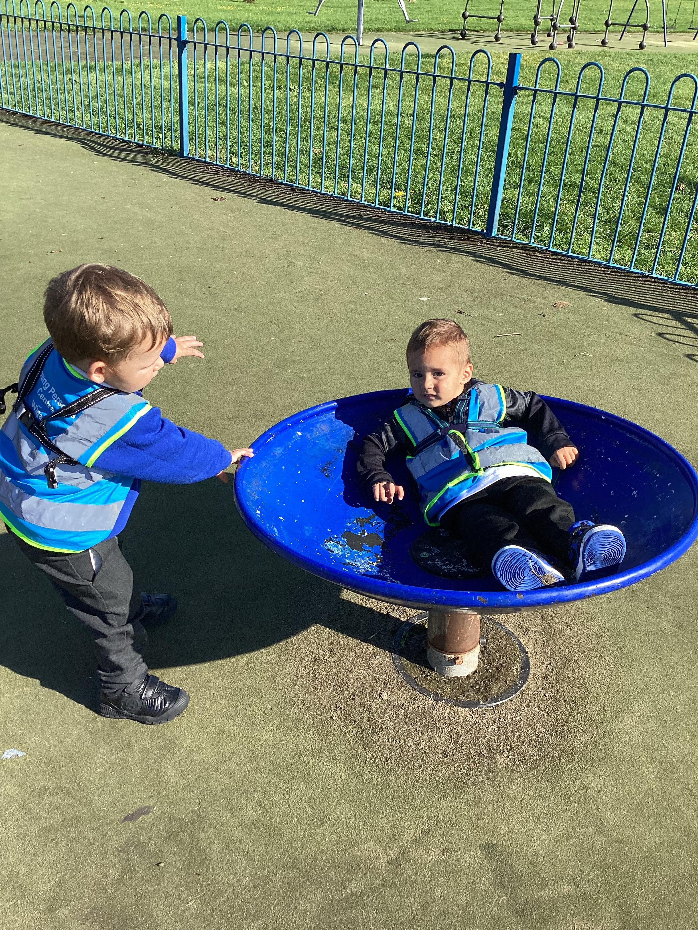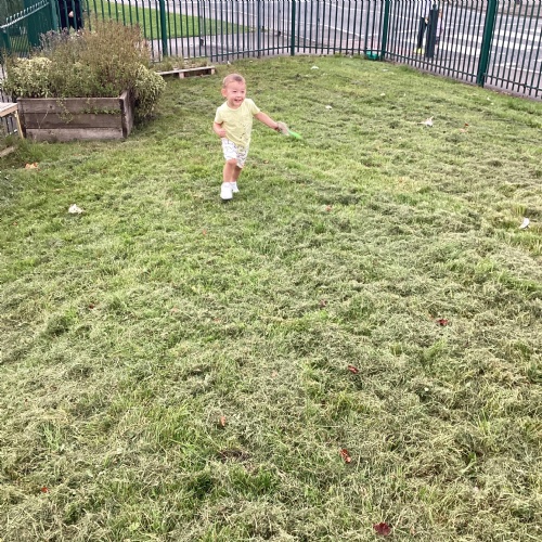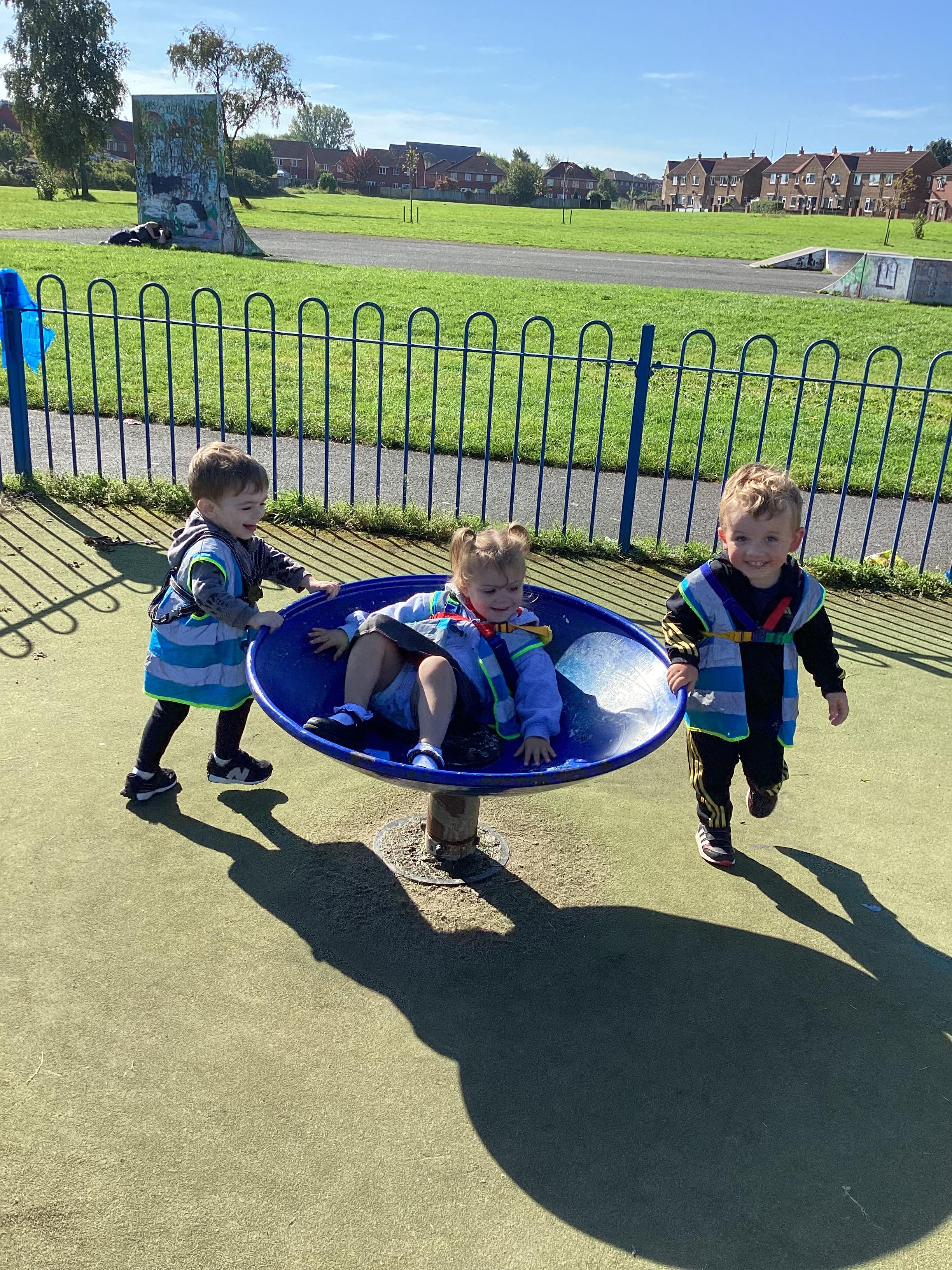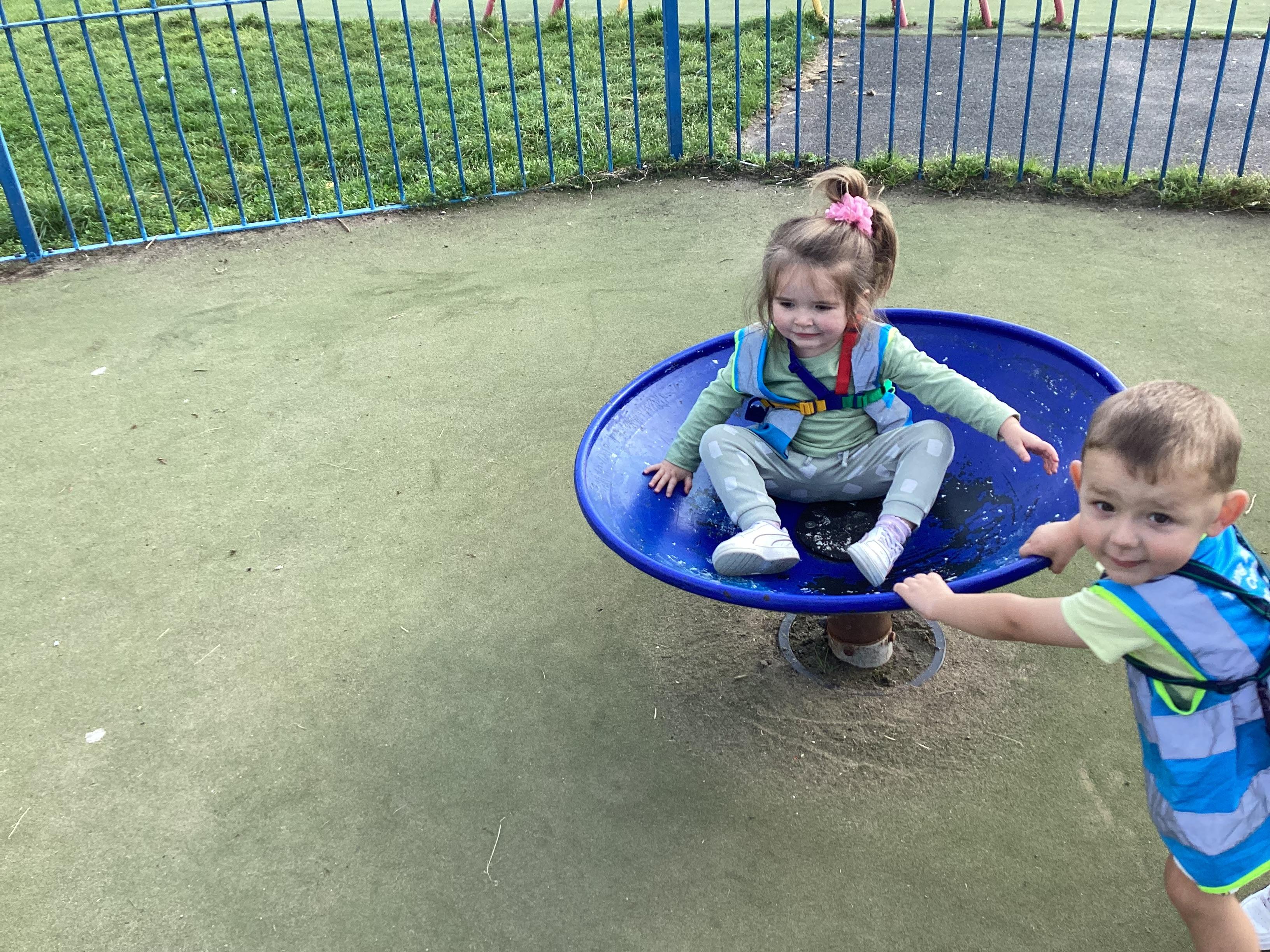They have enjoyed playing up on the grass area and exploring all the different textures such as- grass, pebbles & woodchips.