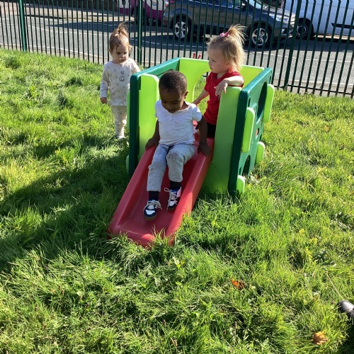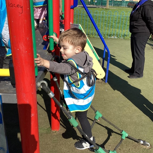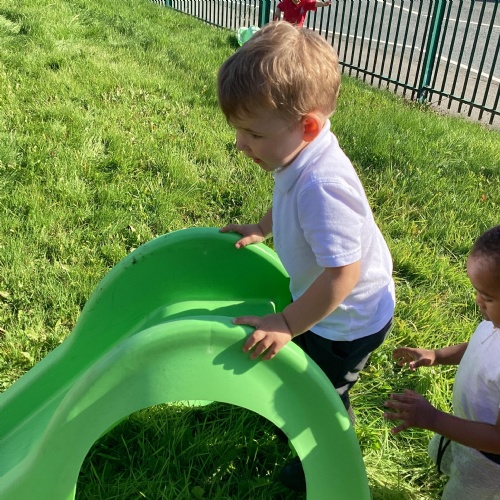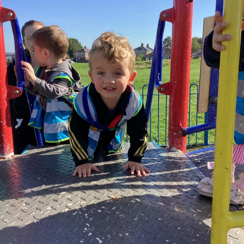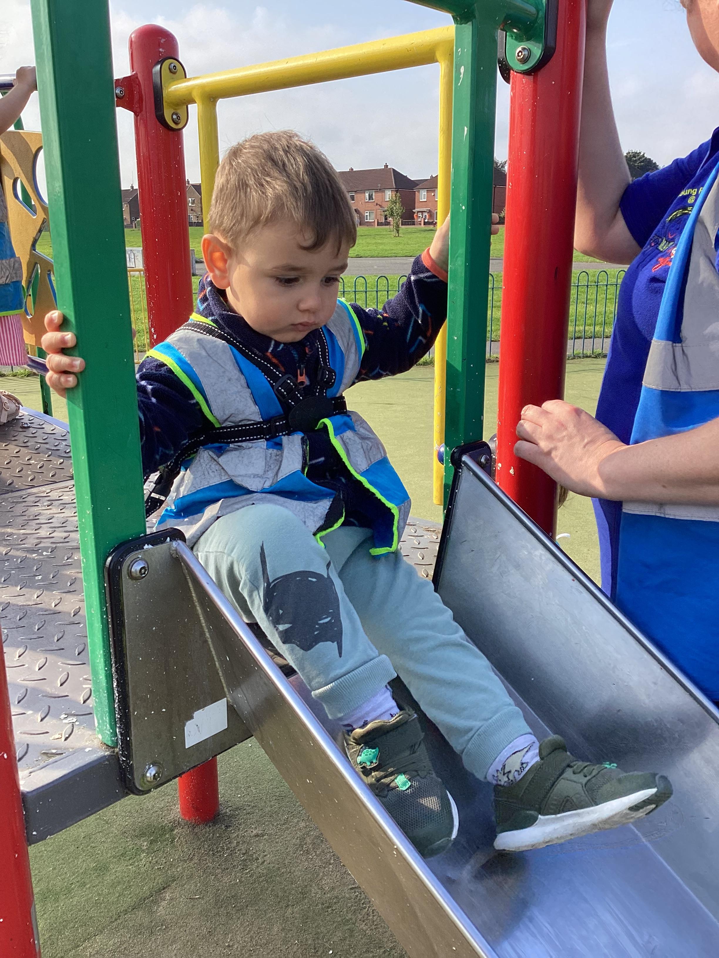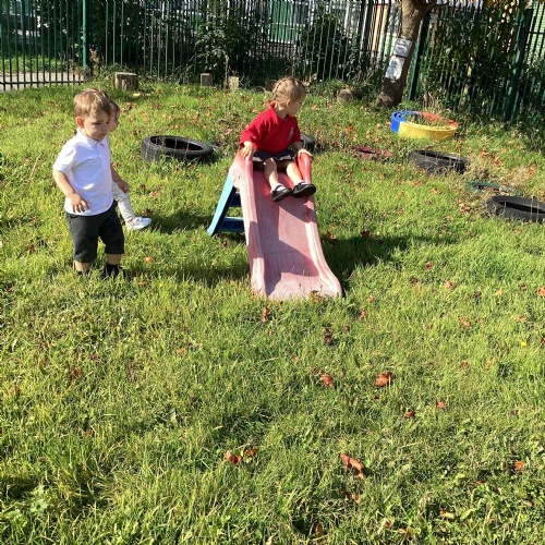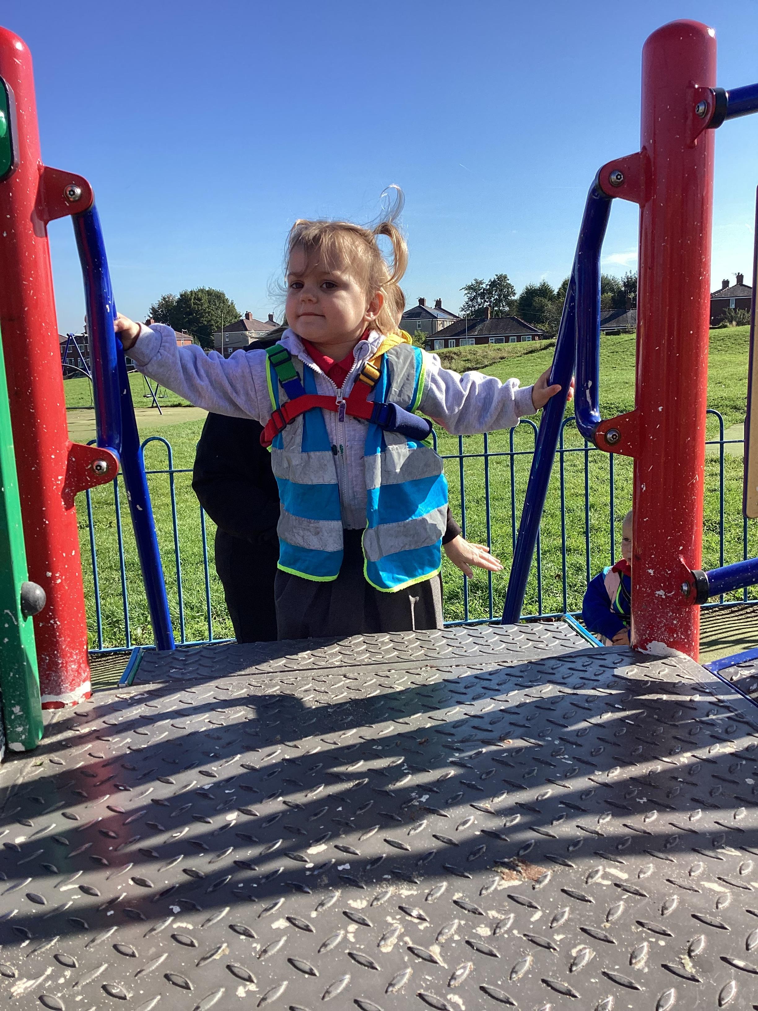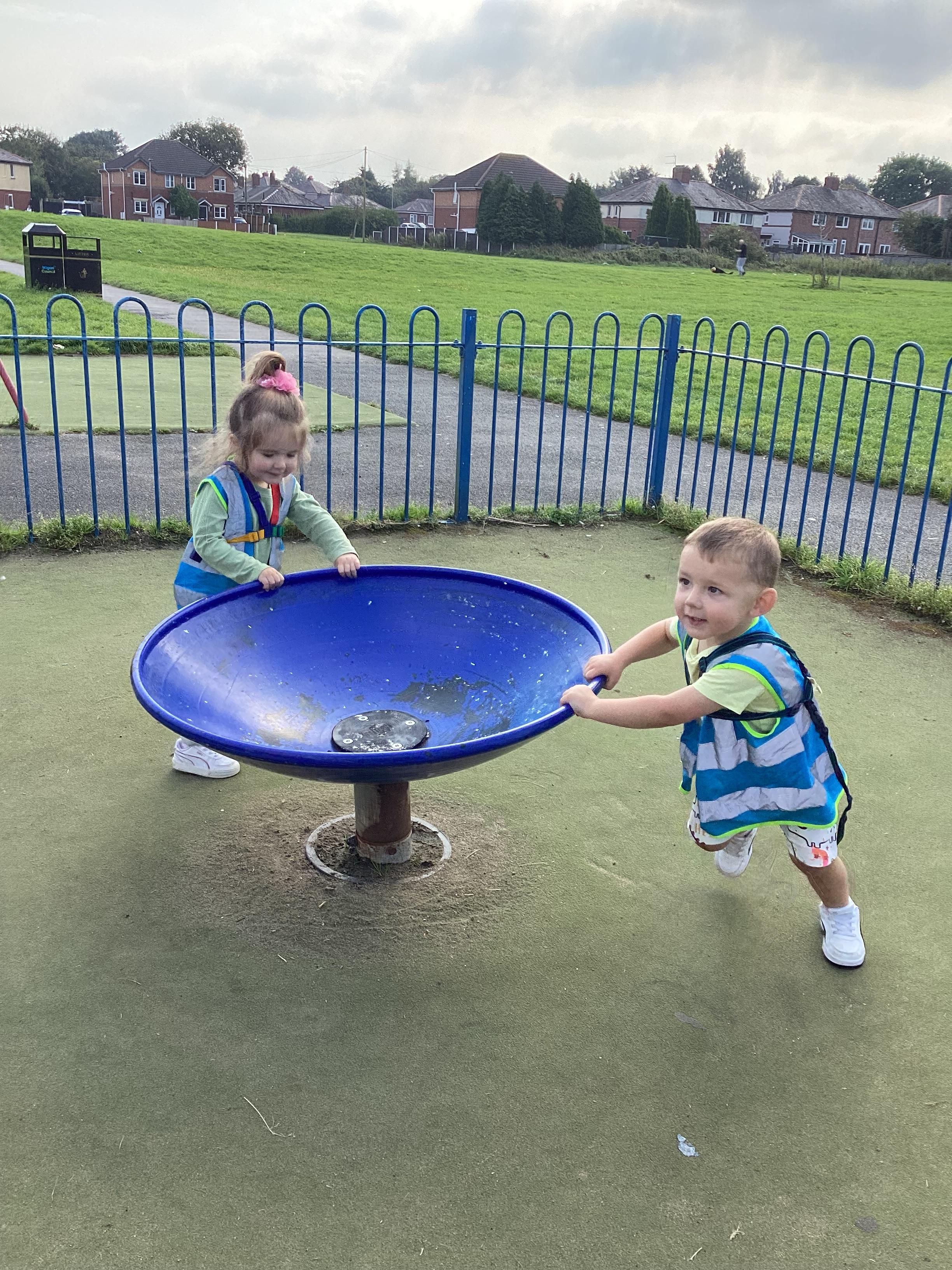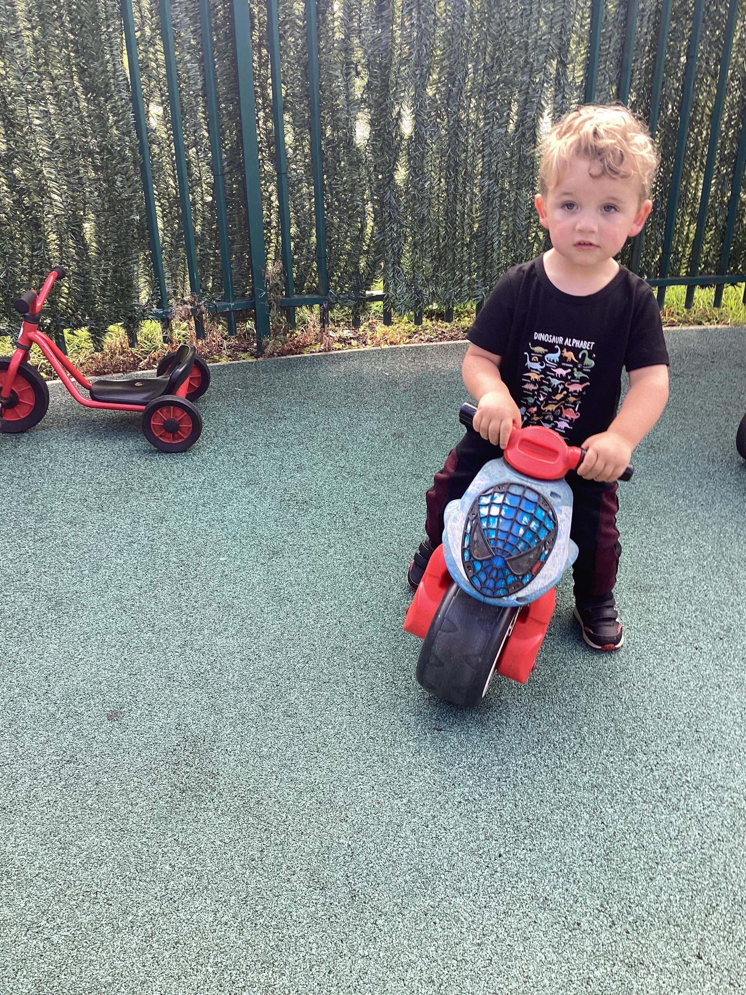 They have enjoyed playing up on the grass area and exploring all the different textures such as- grass, pebbles & woodchips.