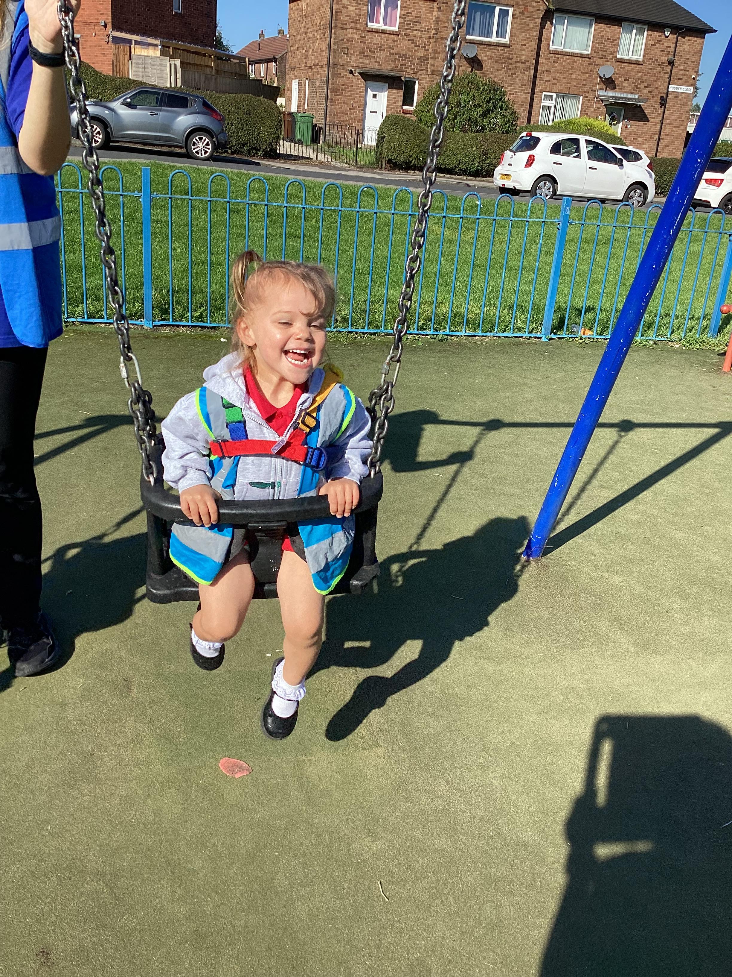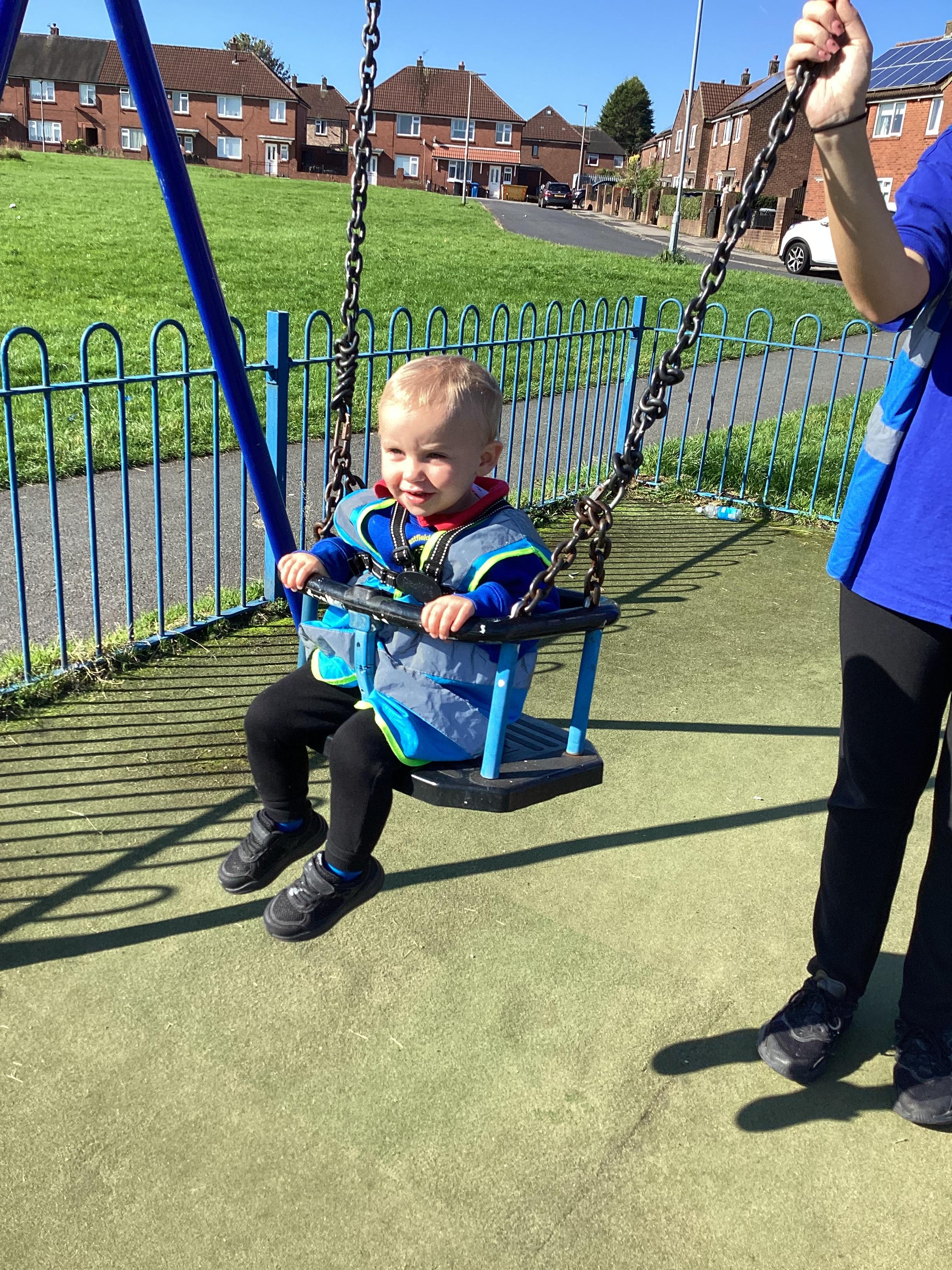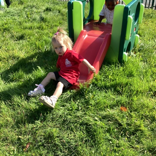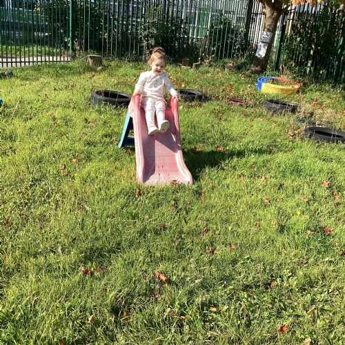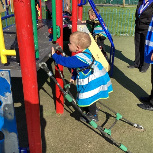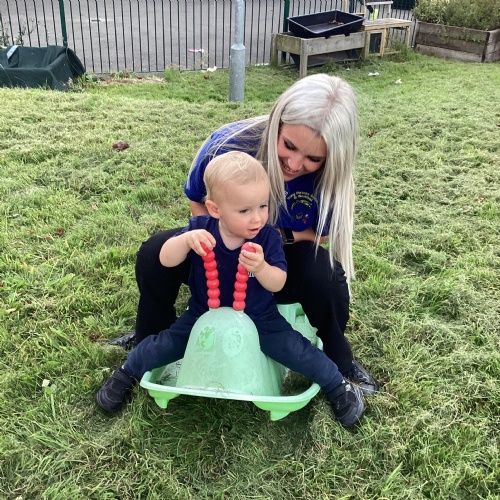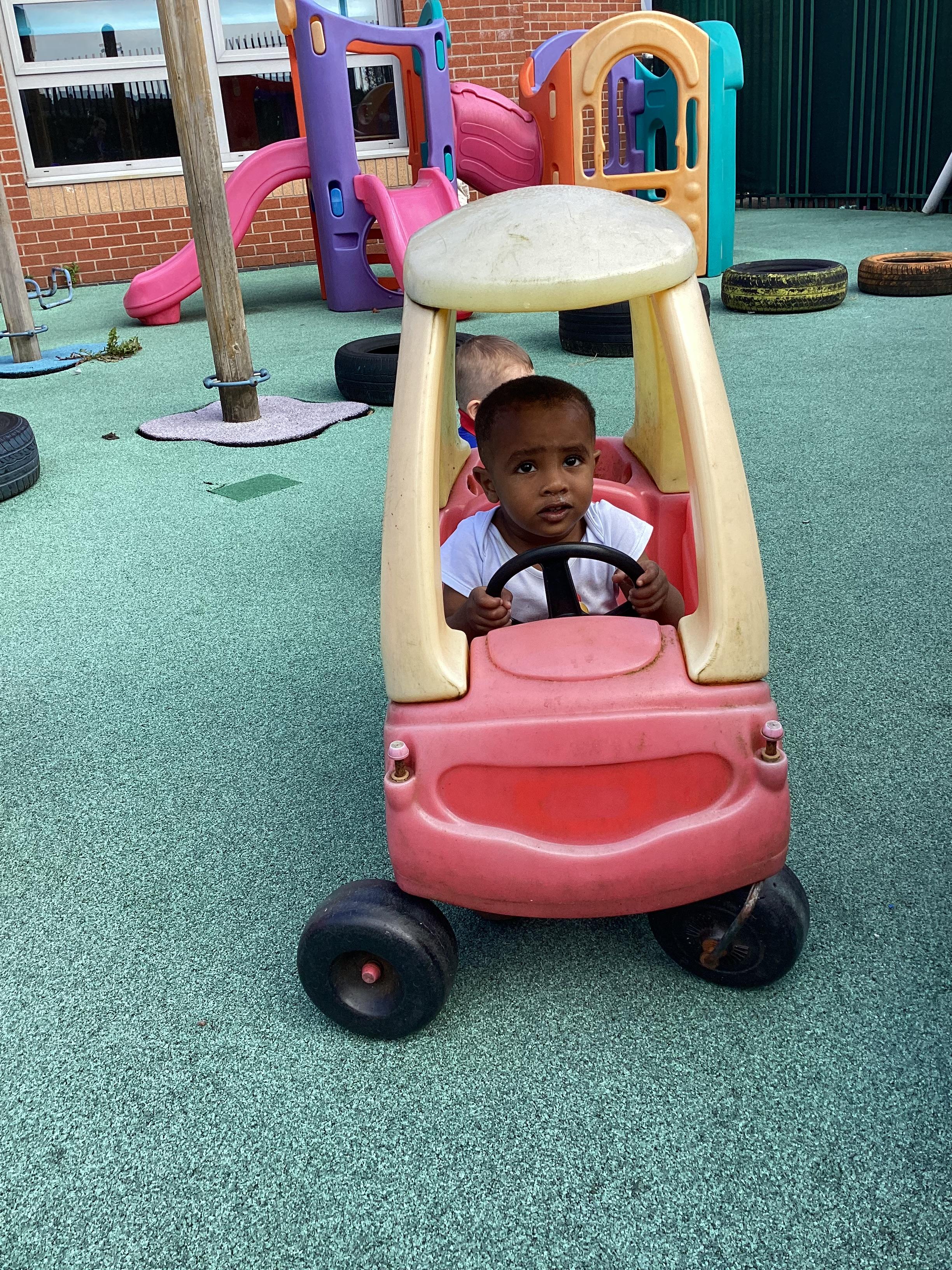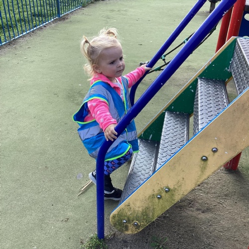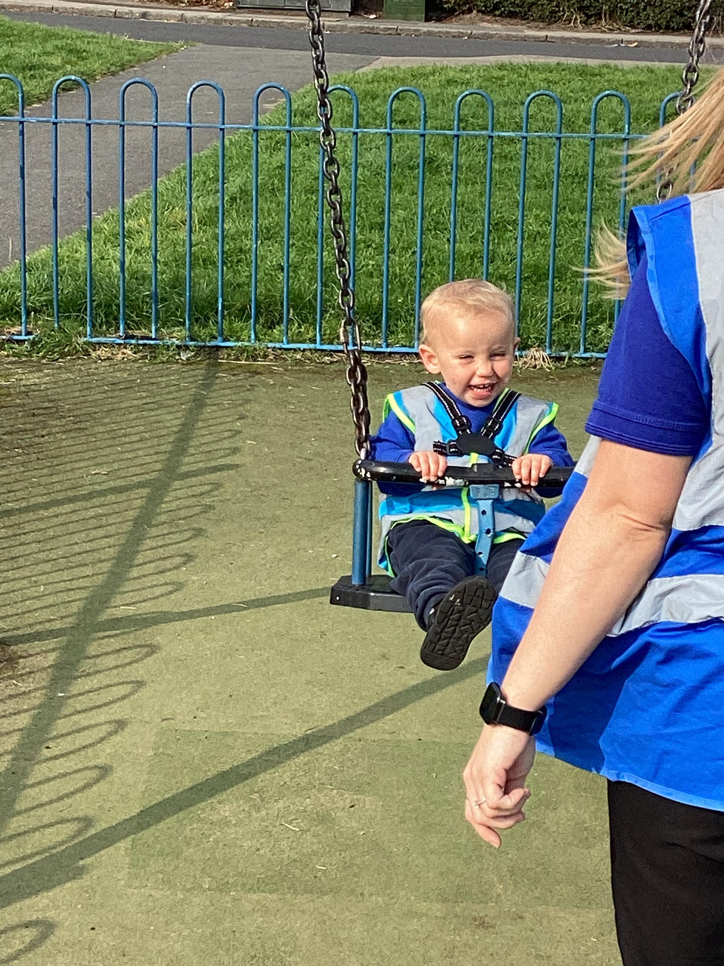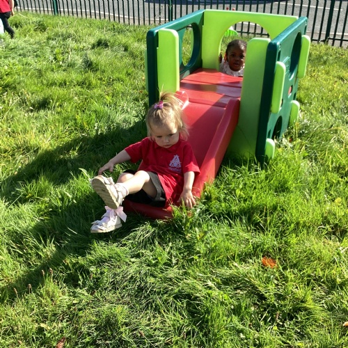 They have enjoyed playing up on the grass area and exploring all the different textures such as- grass, pebbles & woodchips.