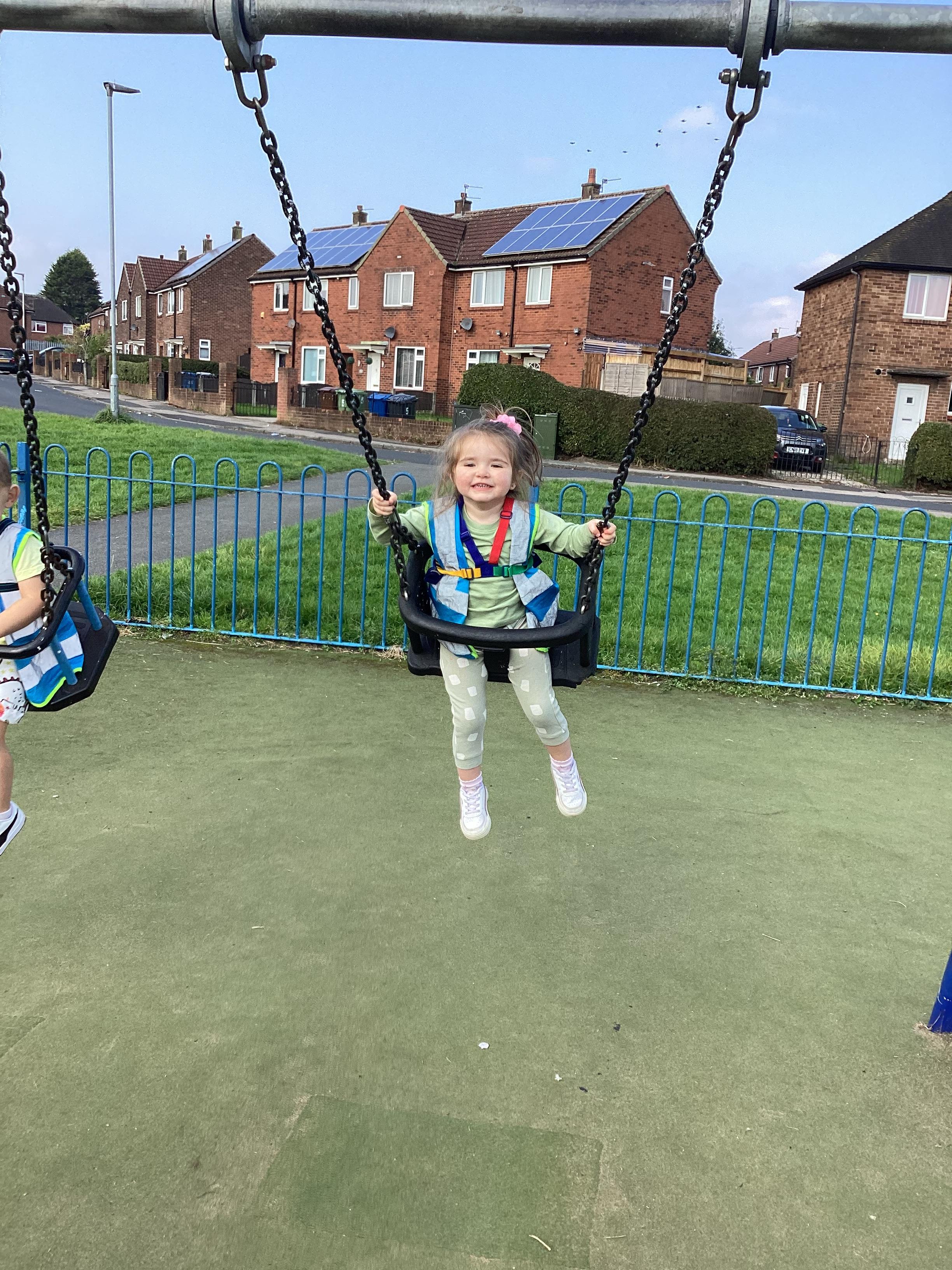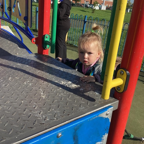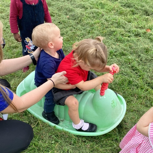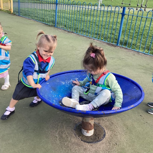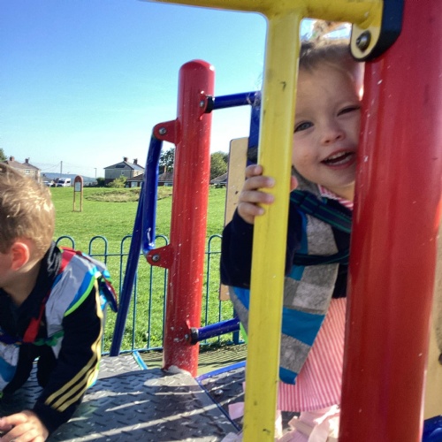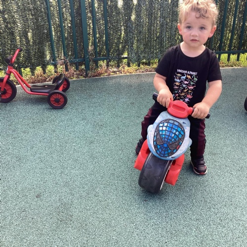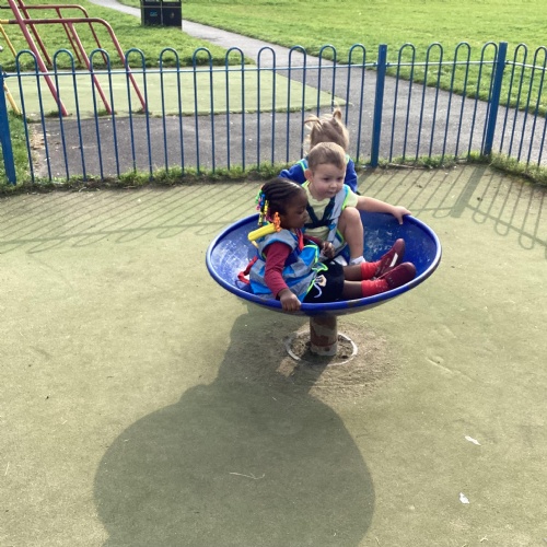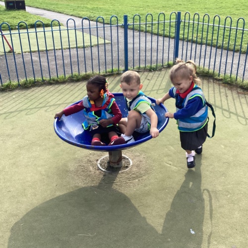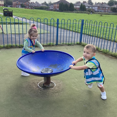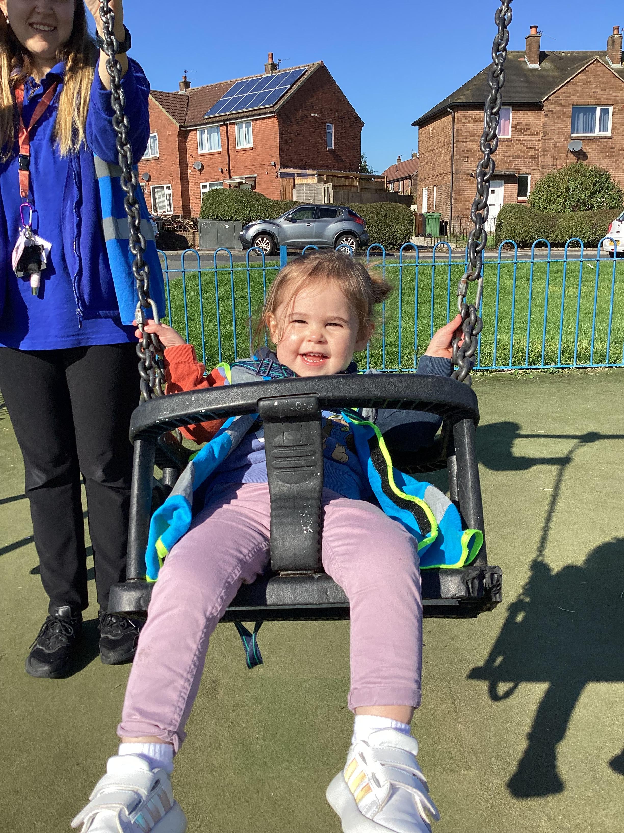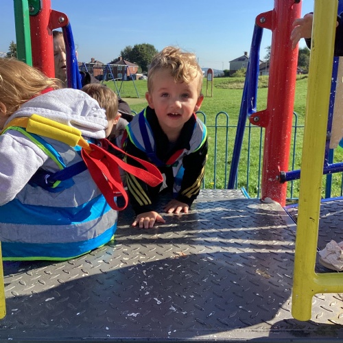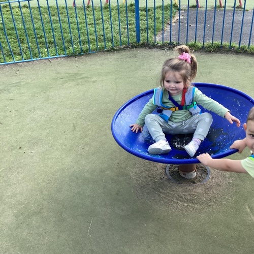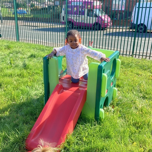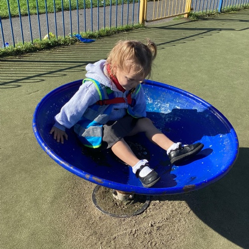 They have enjoyed playing up on the grass area and exploring all the different textures such as- grass, pebbles & woodchips.
