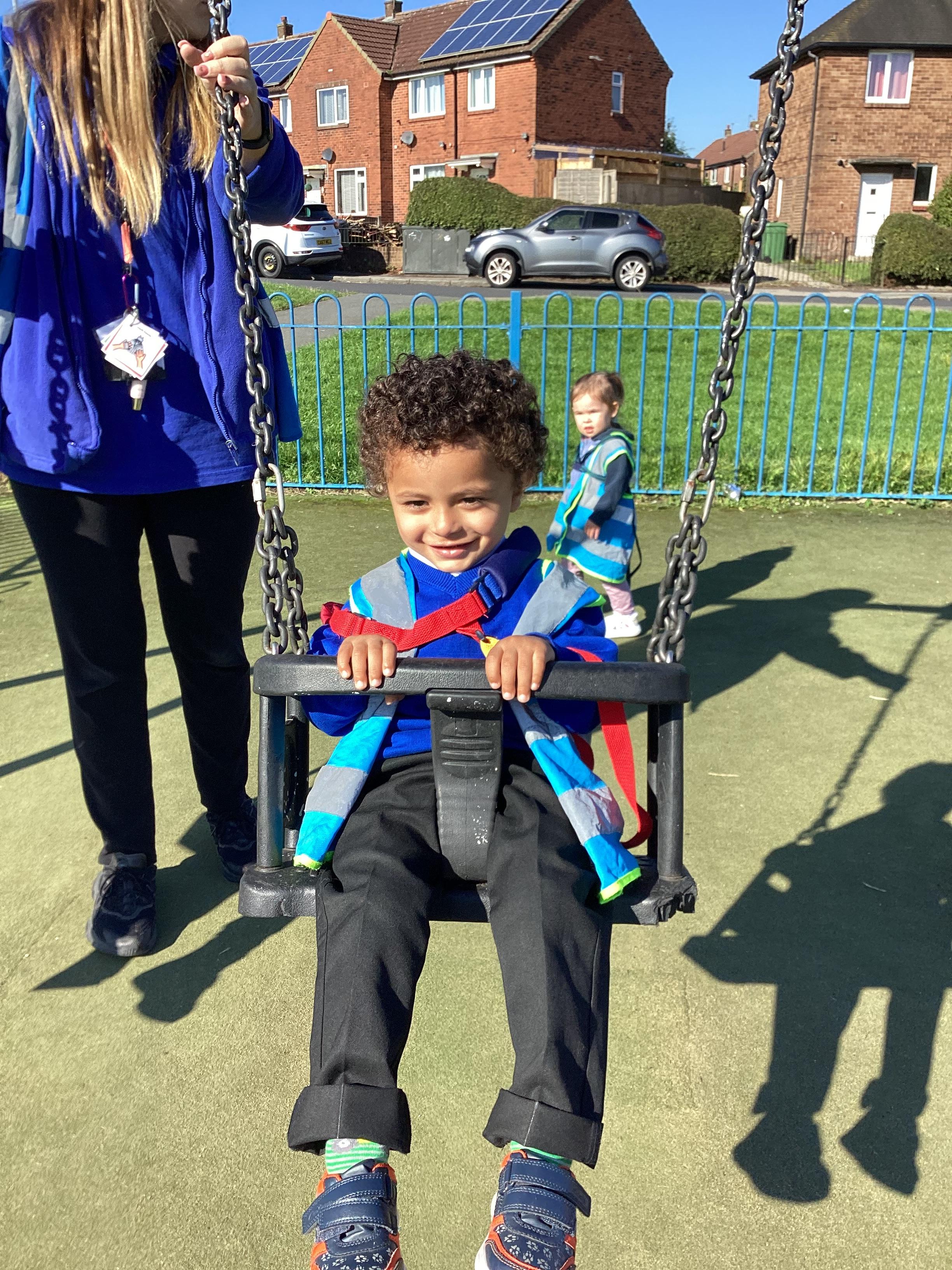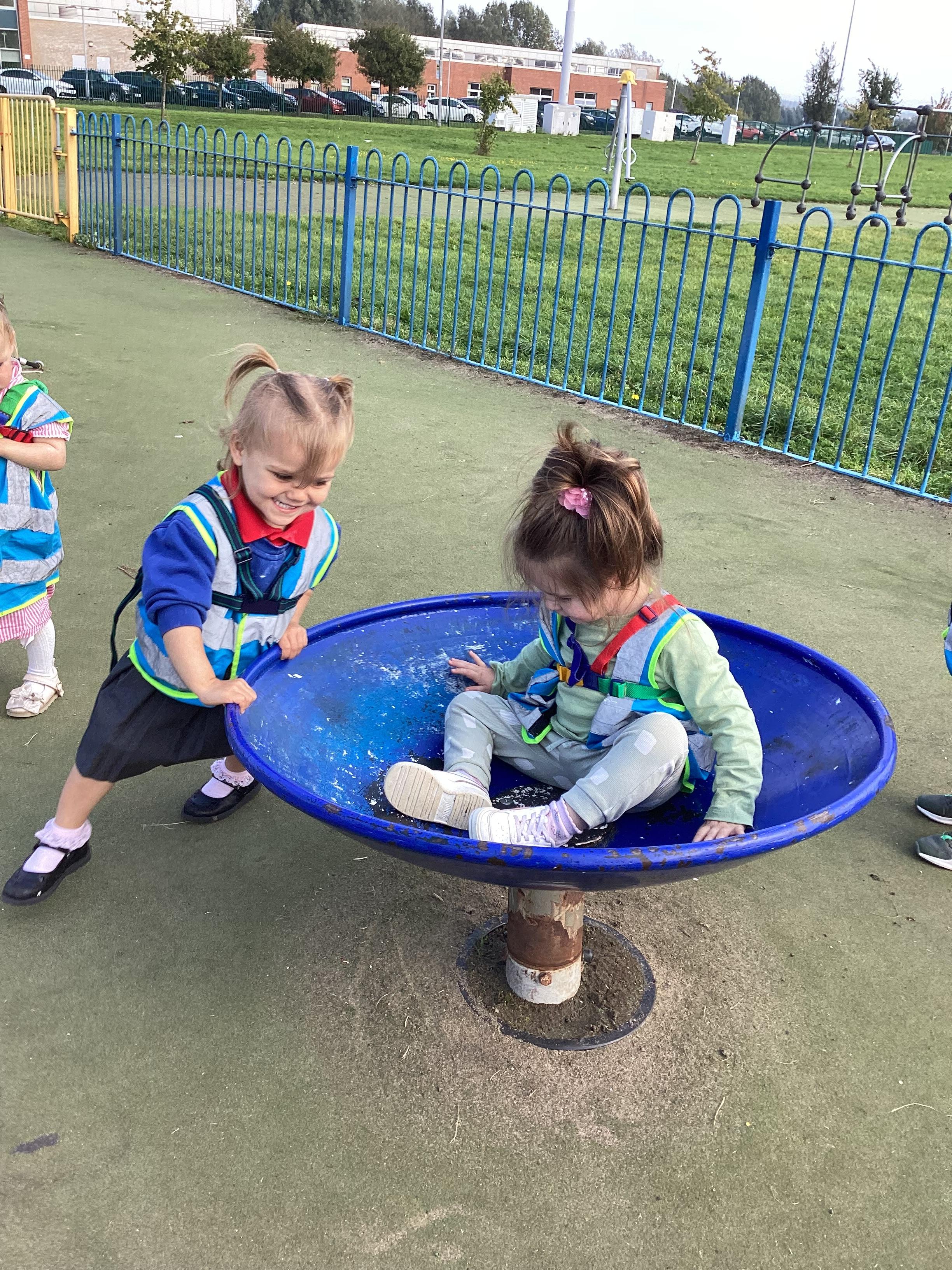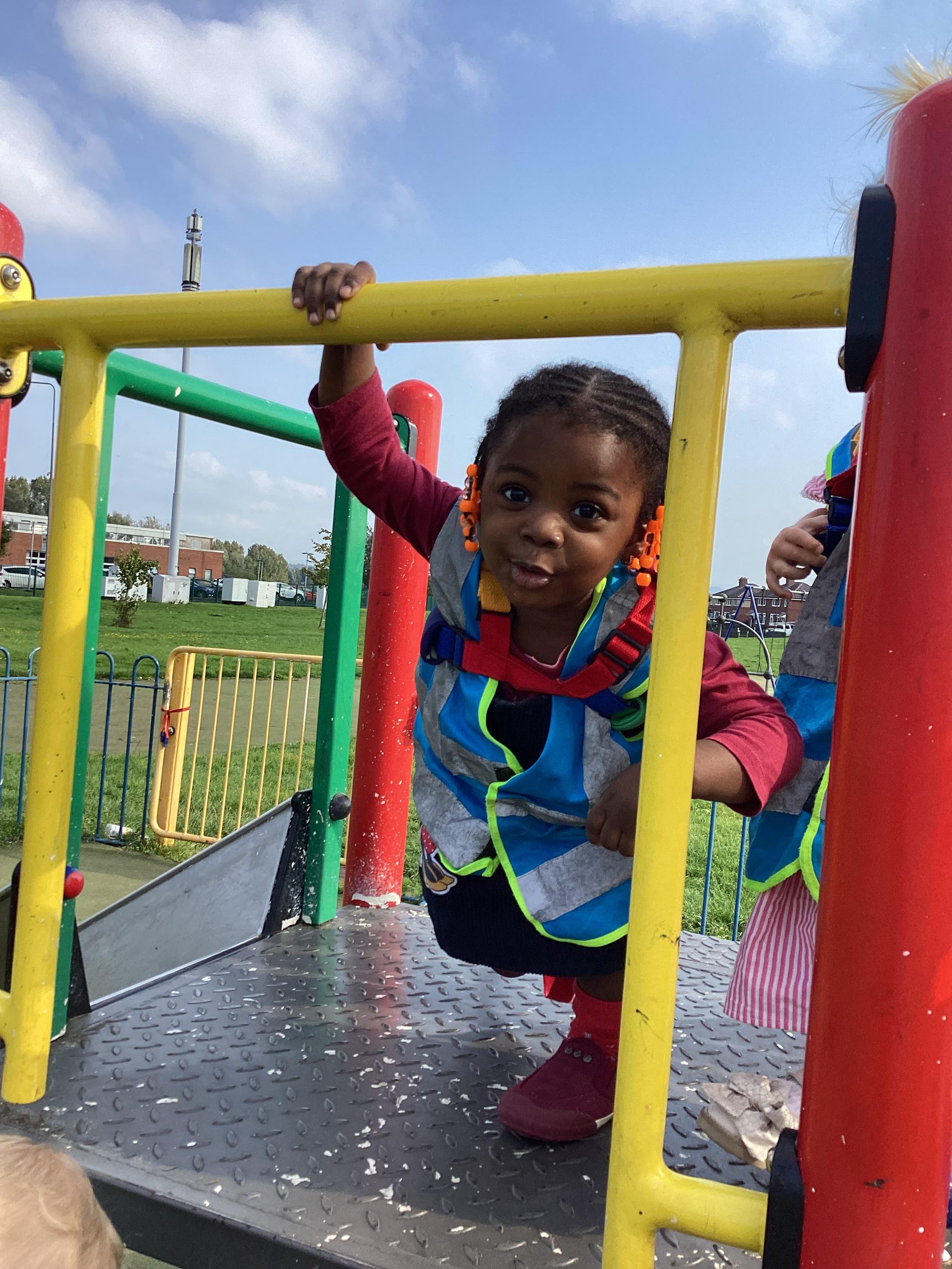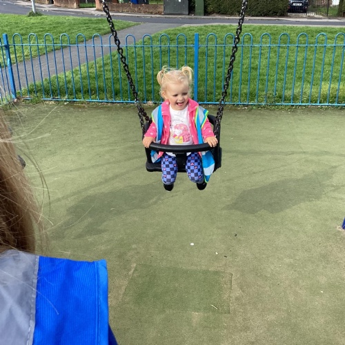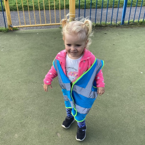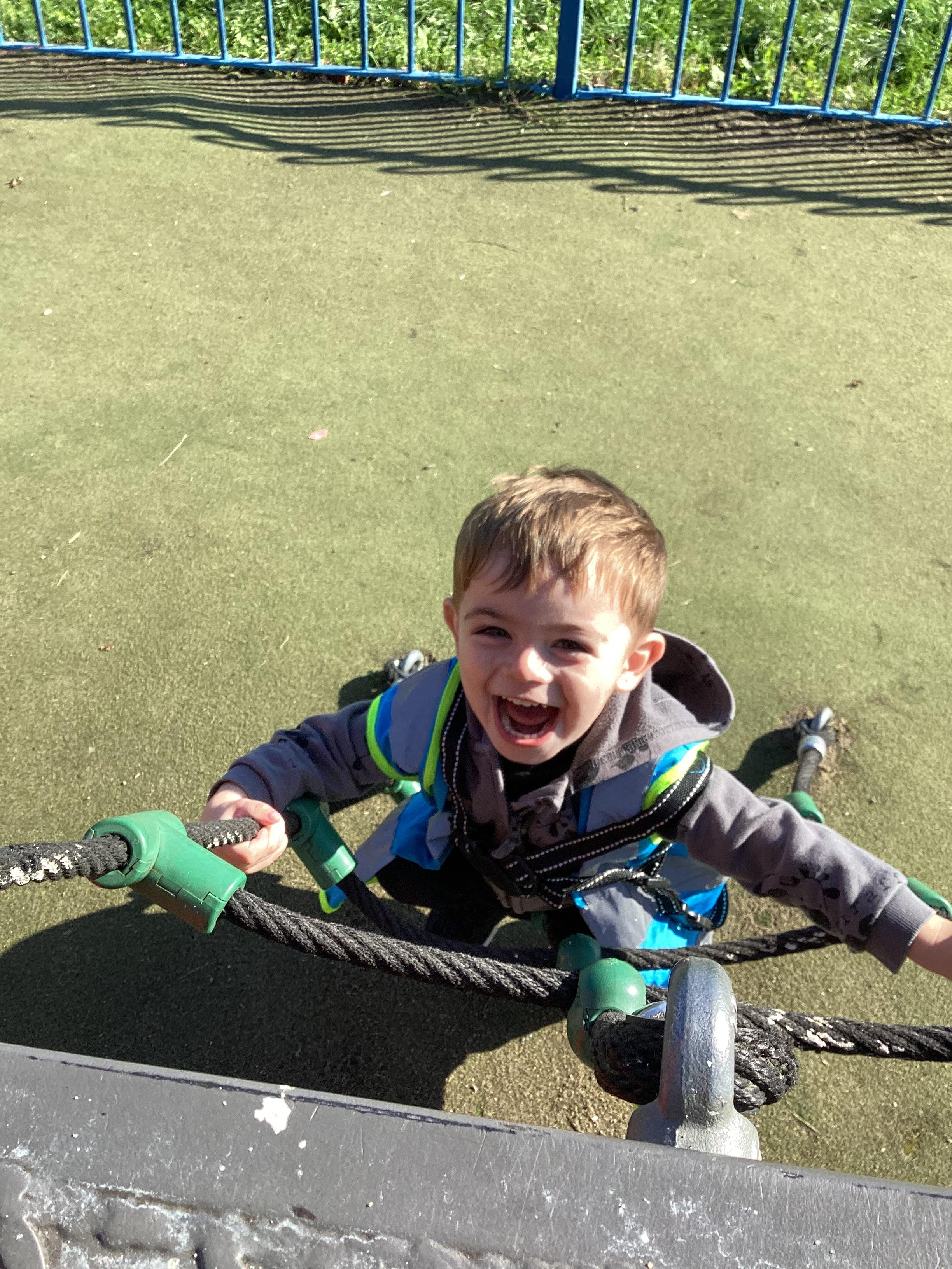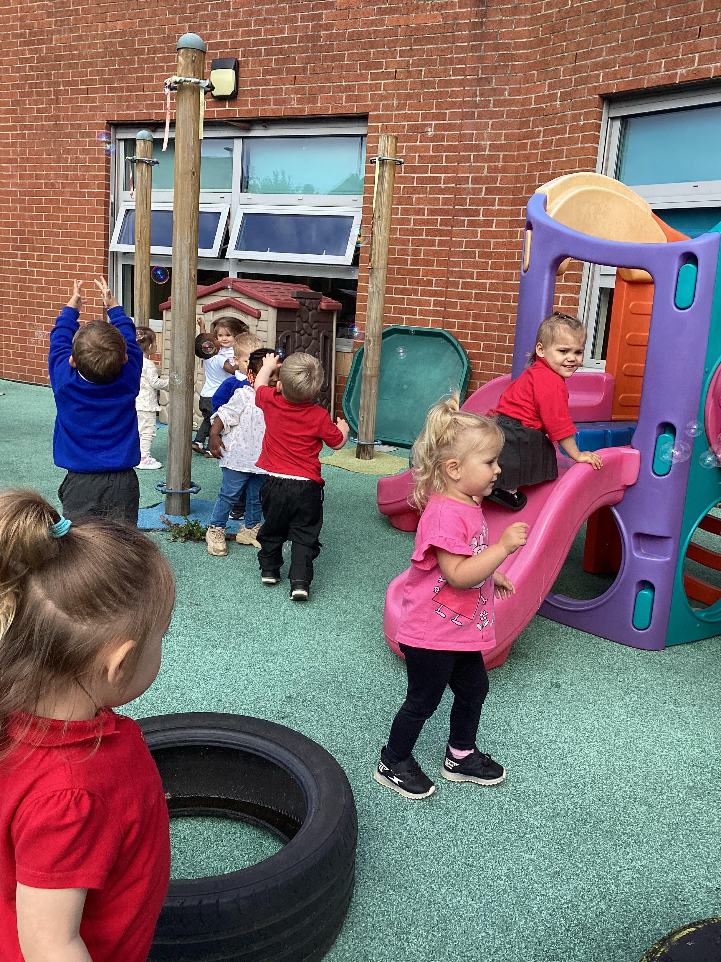They have enjoyed playing up on the grass area and exploring all the different textures such as- grass, pebbles & woodchips.