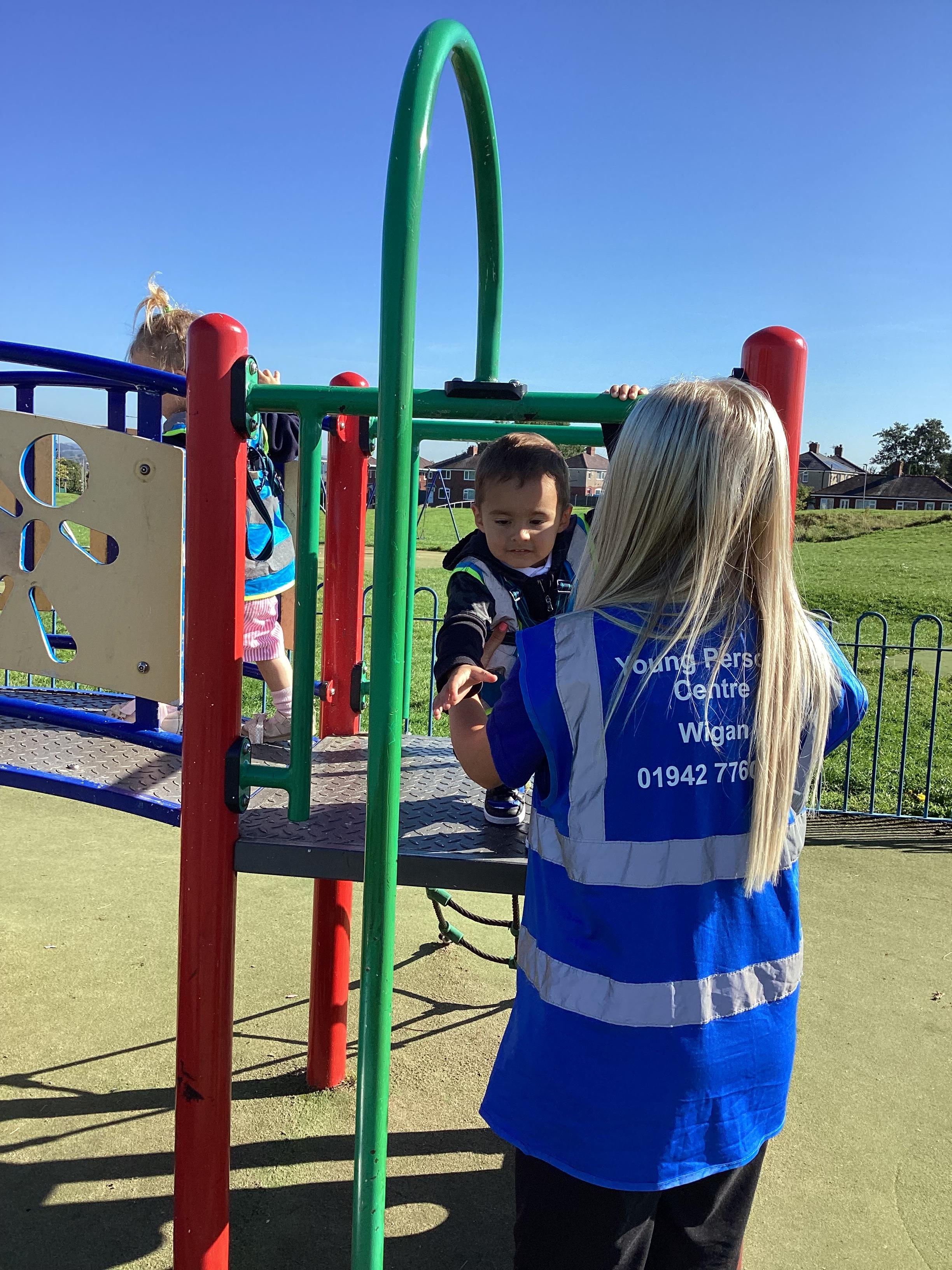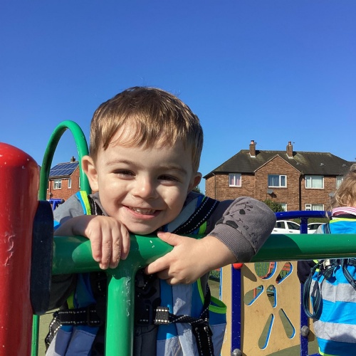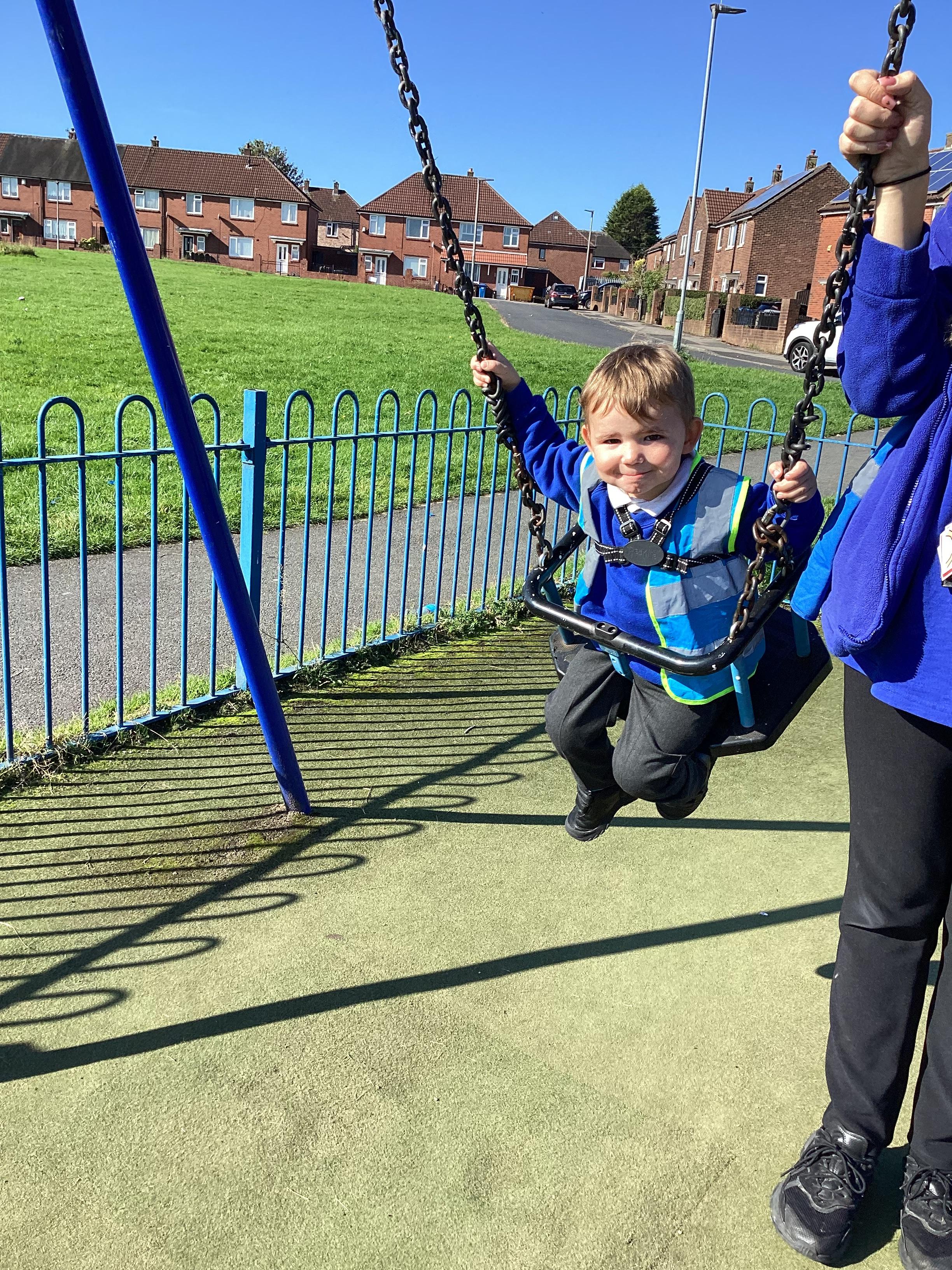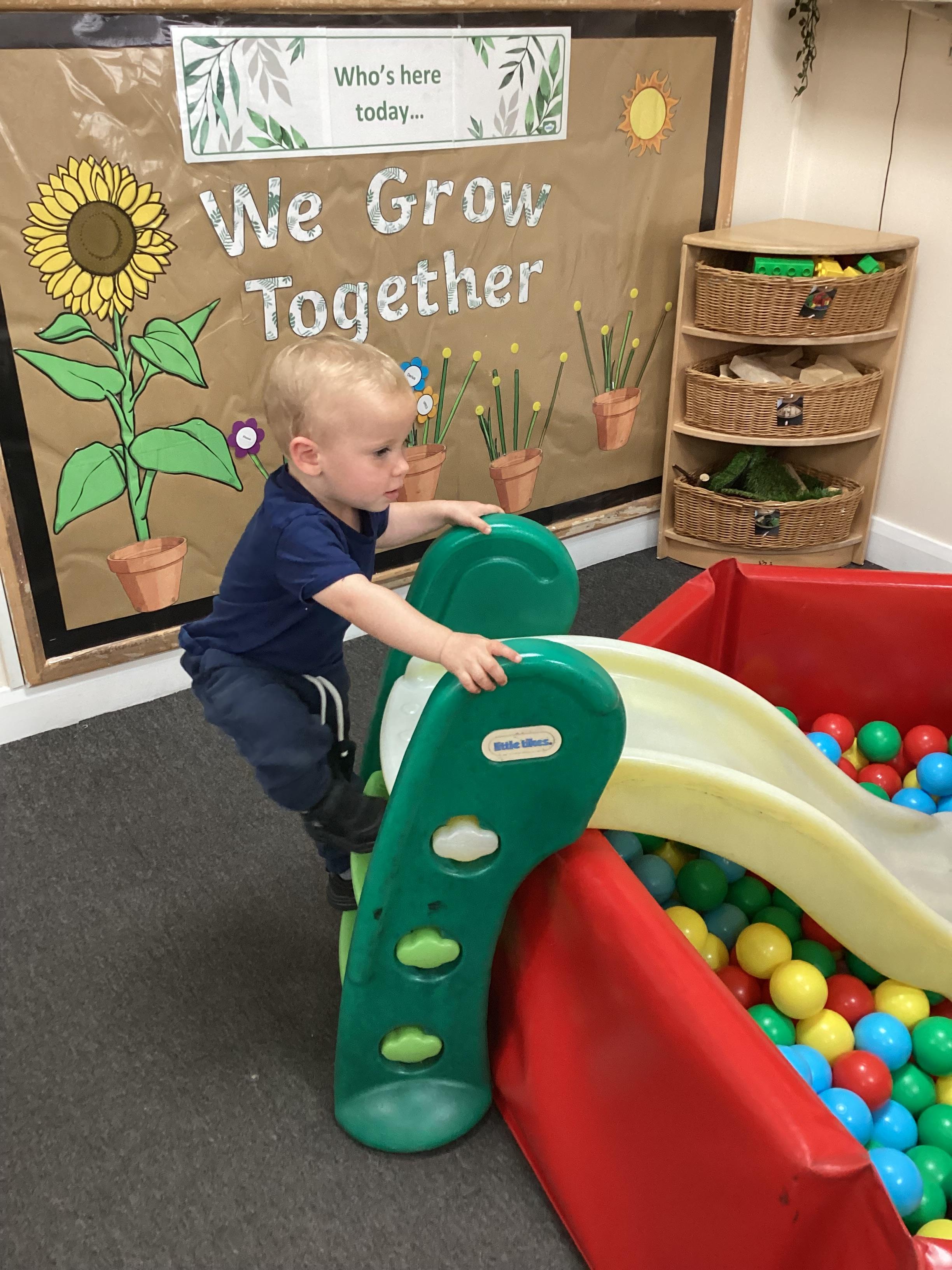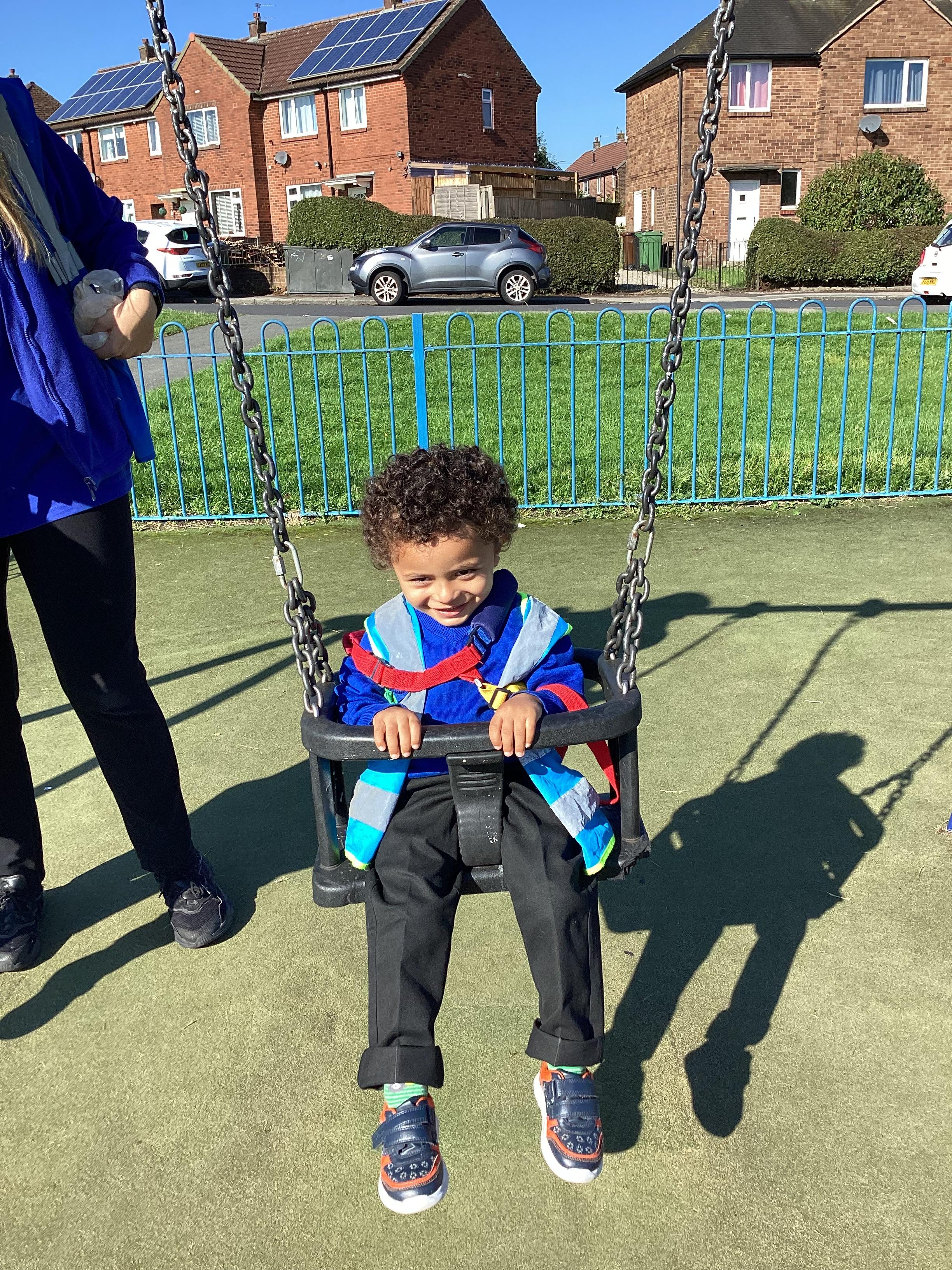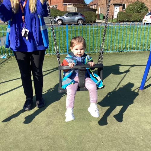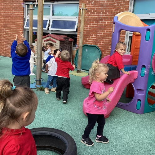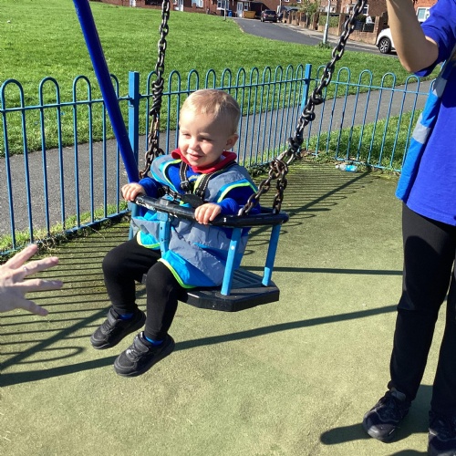 They have enjoyed playing up on the grass area and exploring all the different textures such as- grass, pebbles & woodchips.