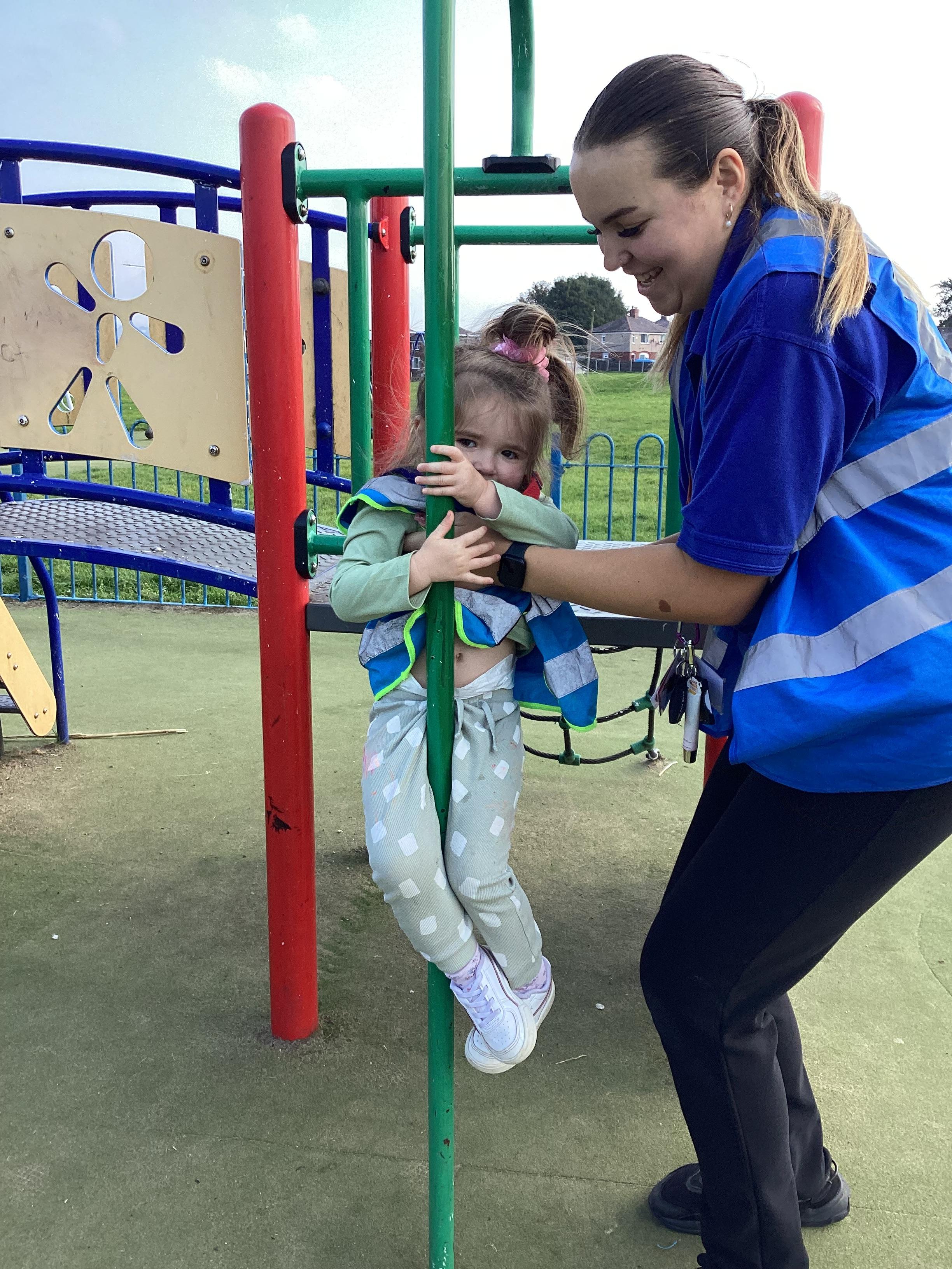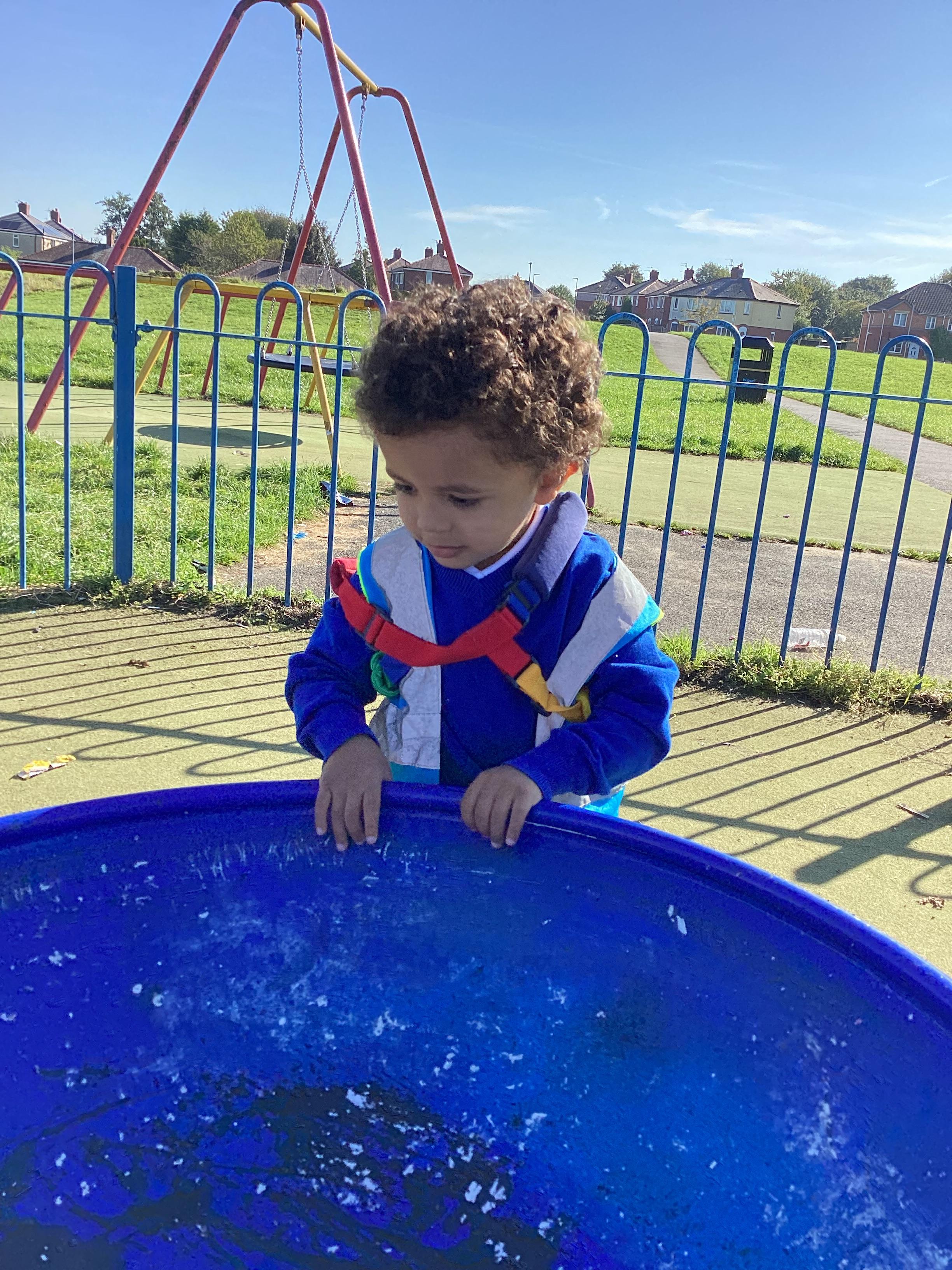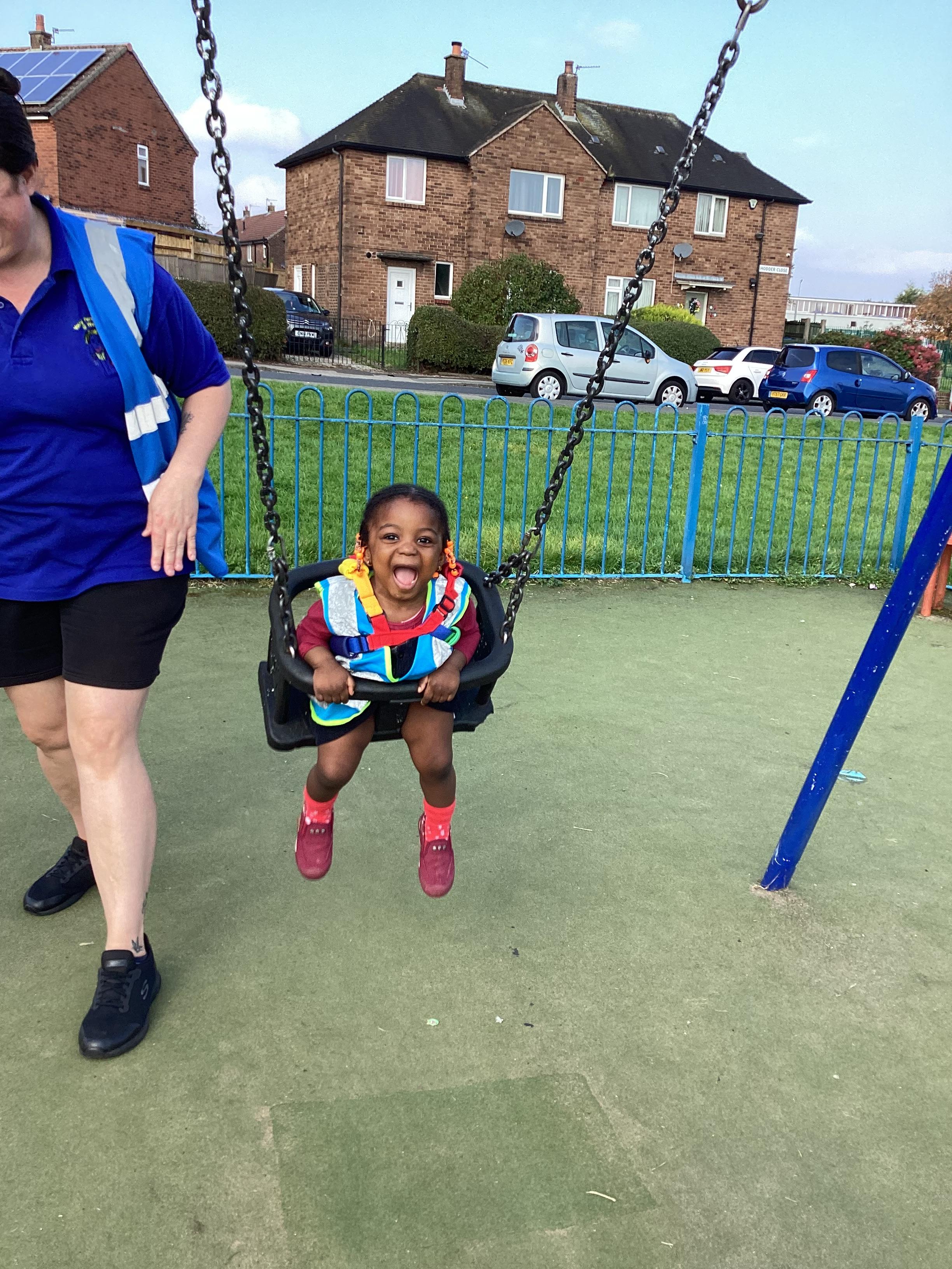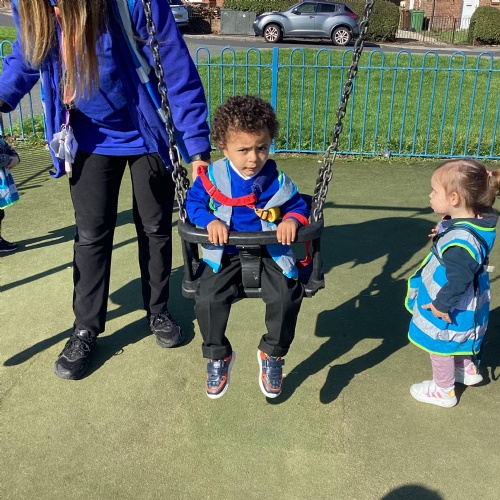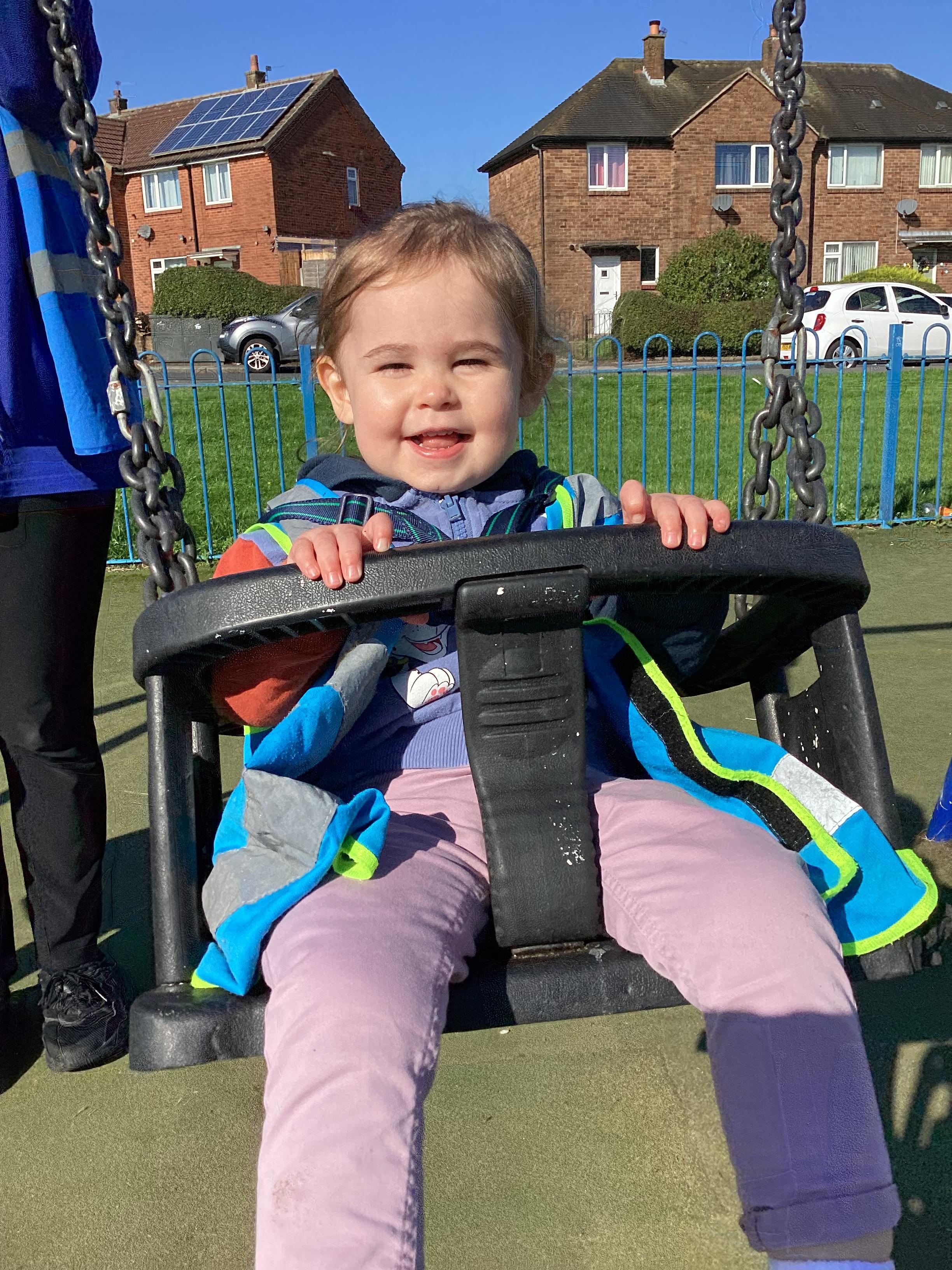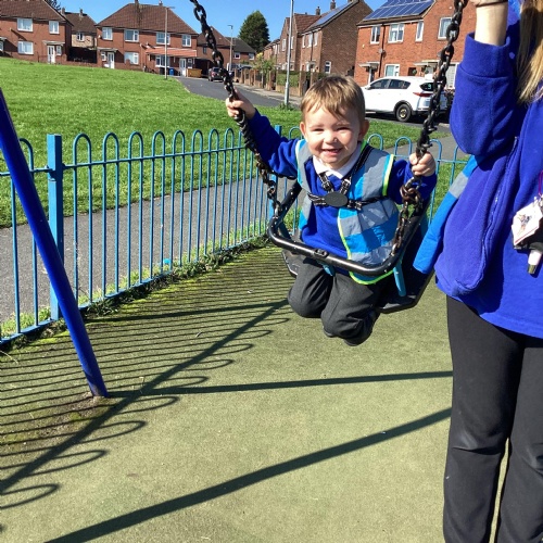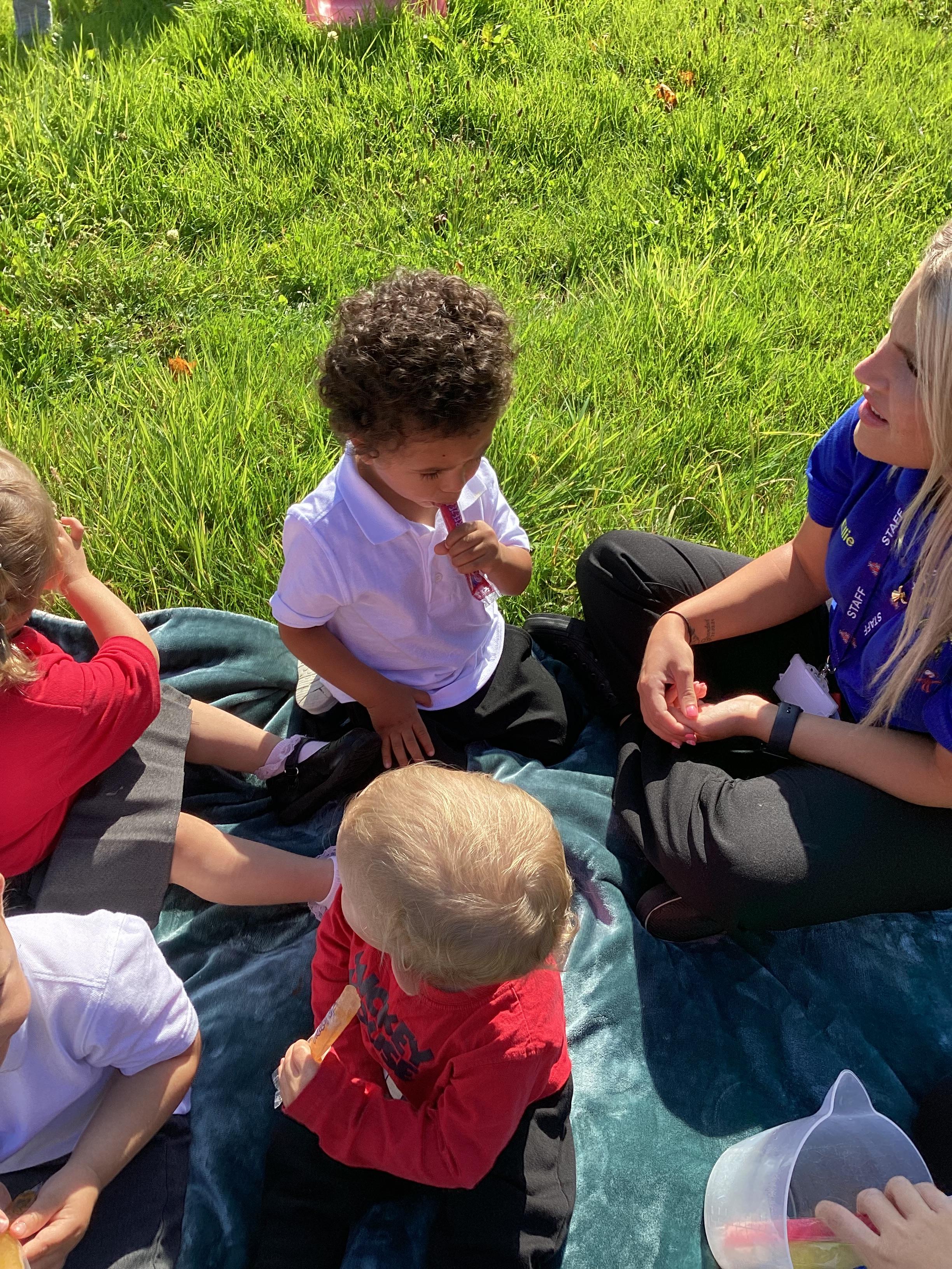 They have enjoyed playing up on the grass area and exploring all the different textures such as- grass, pebbles & woodchips.