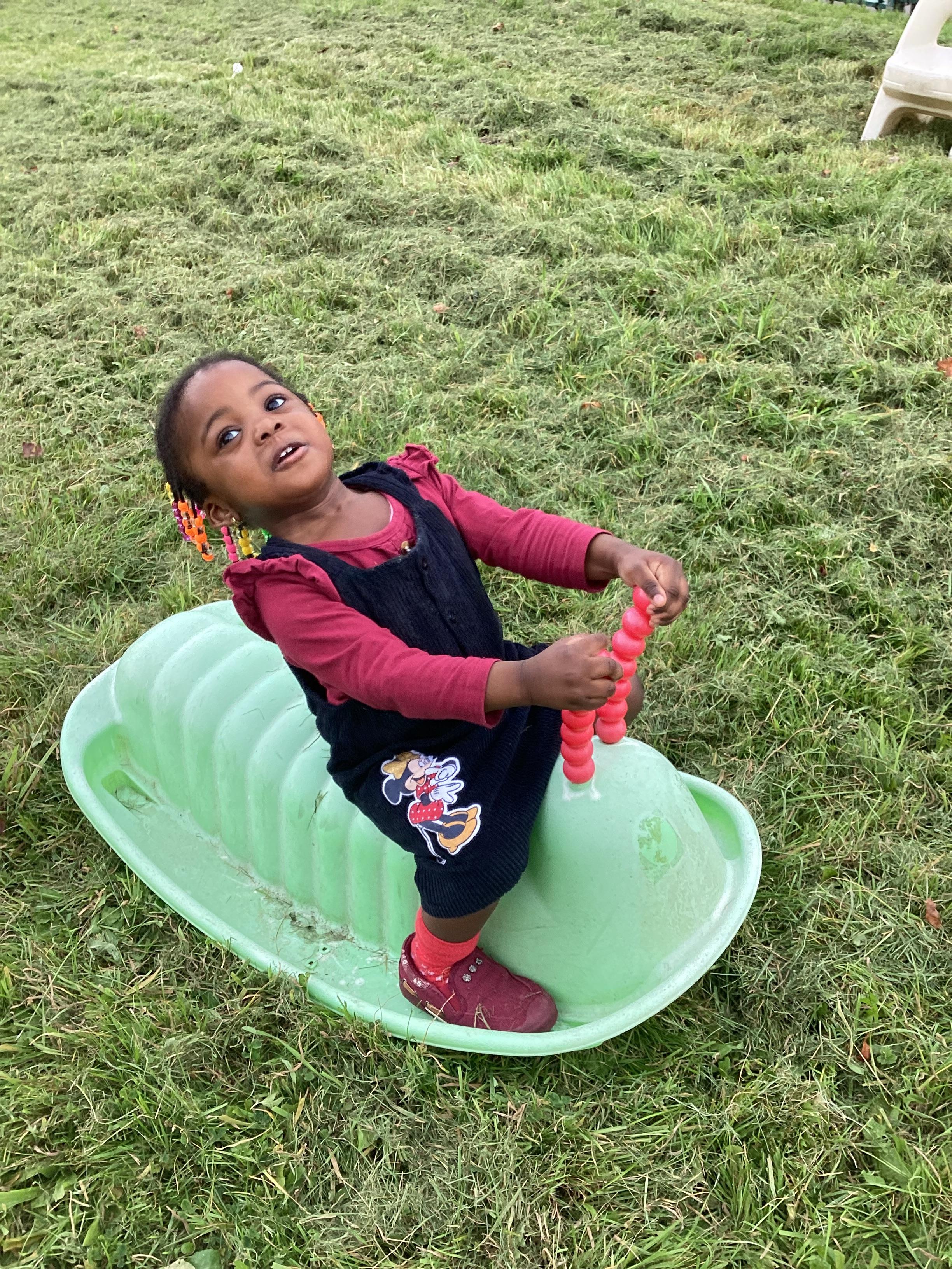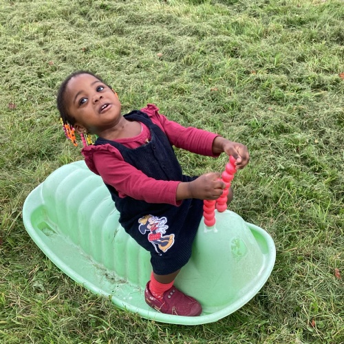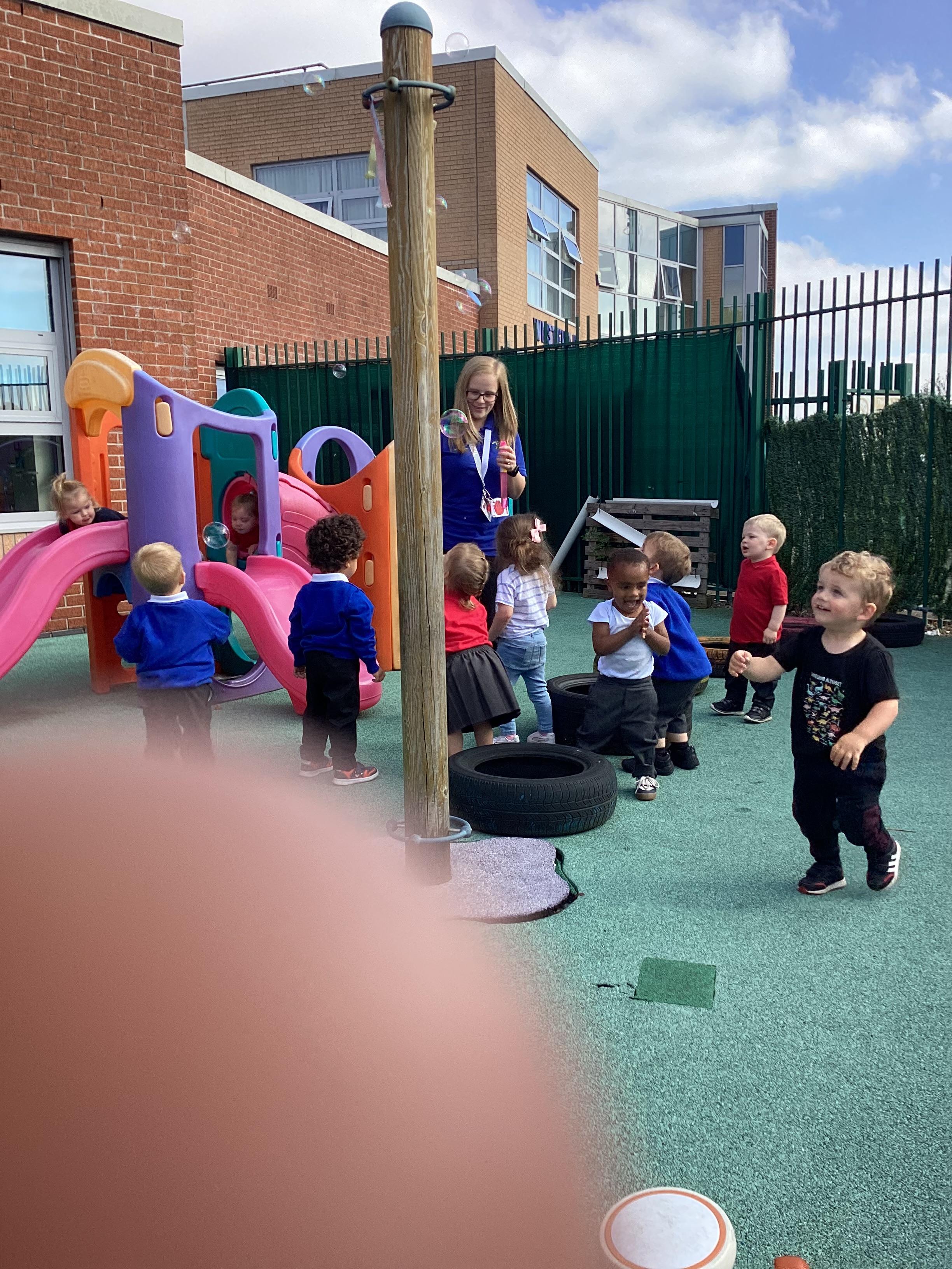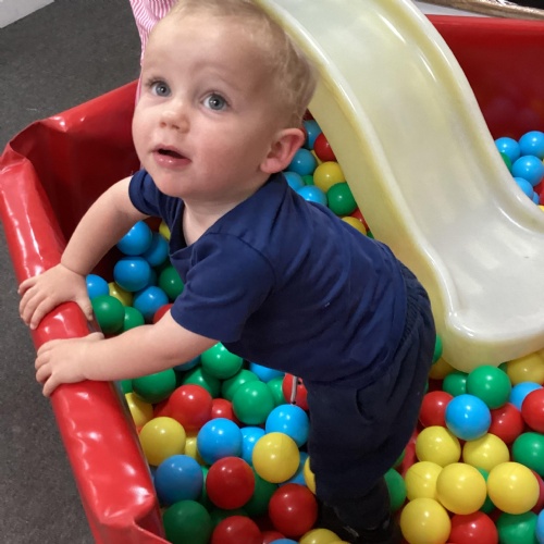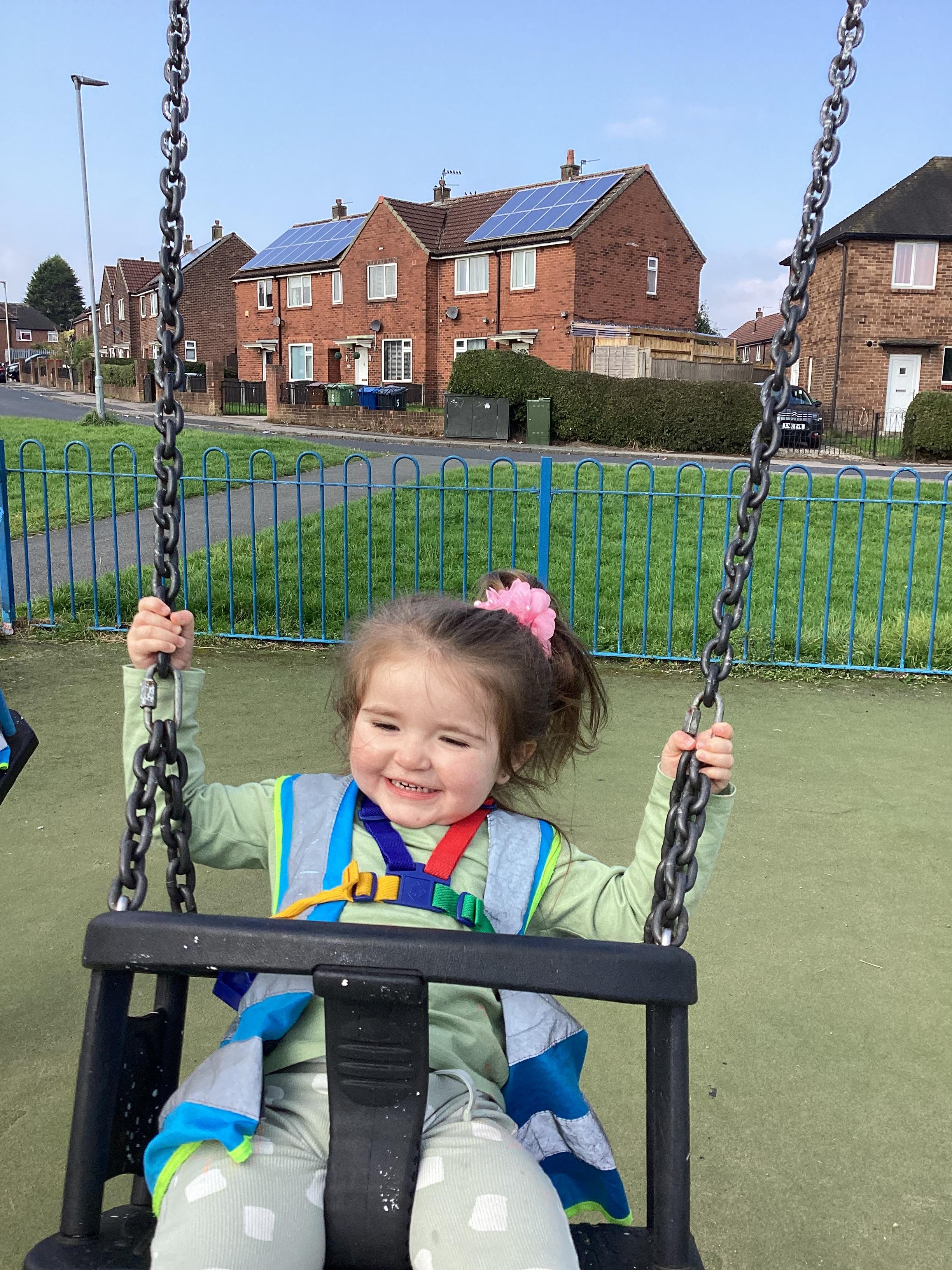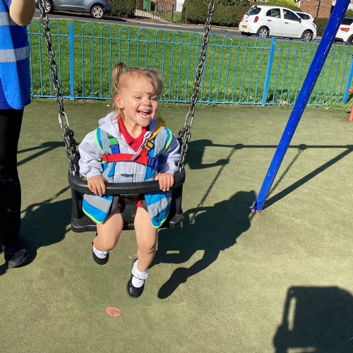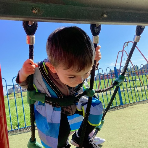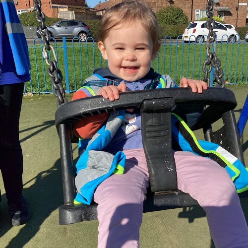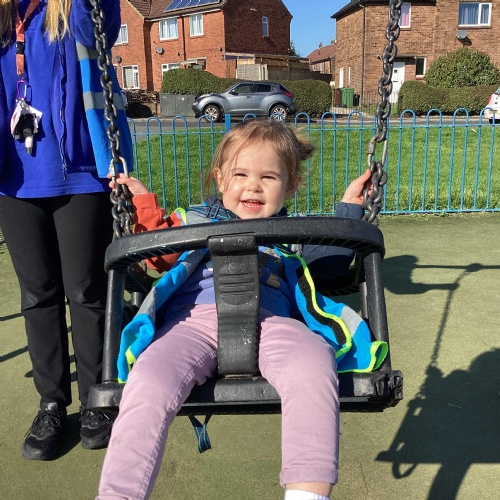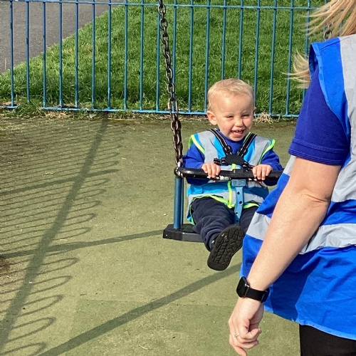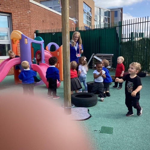 They have enjoyed playing up on the grass area and exploring all the different textures such as- grass, pebbles & woodchips.