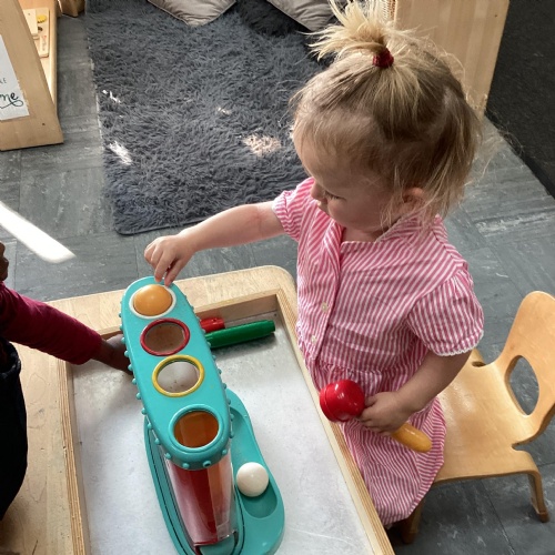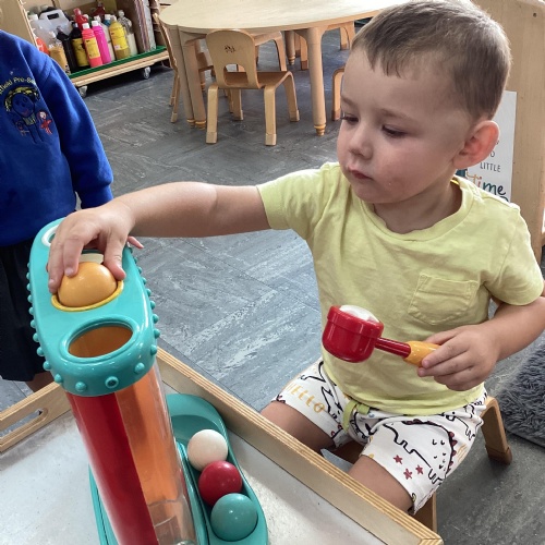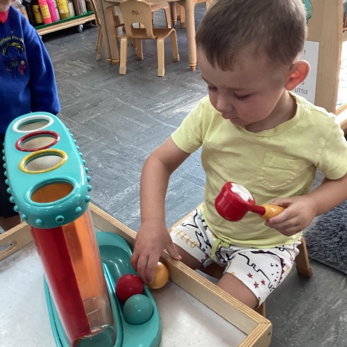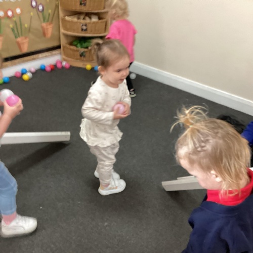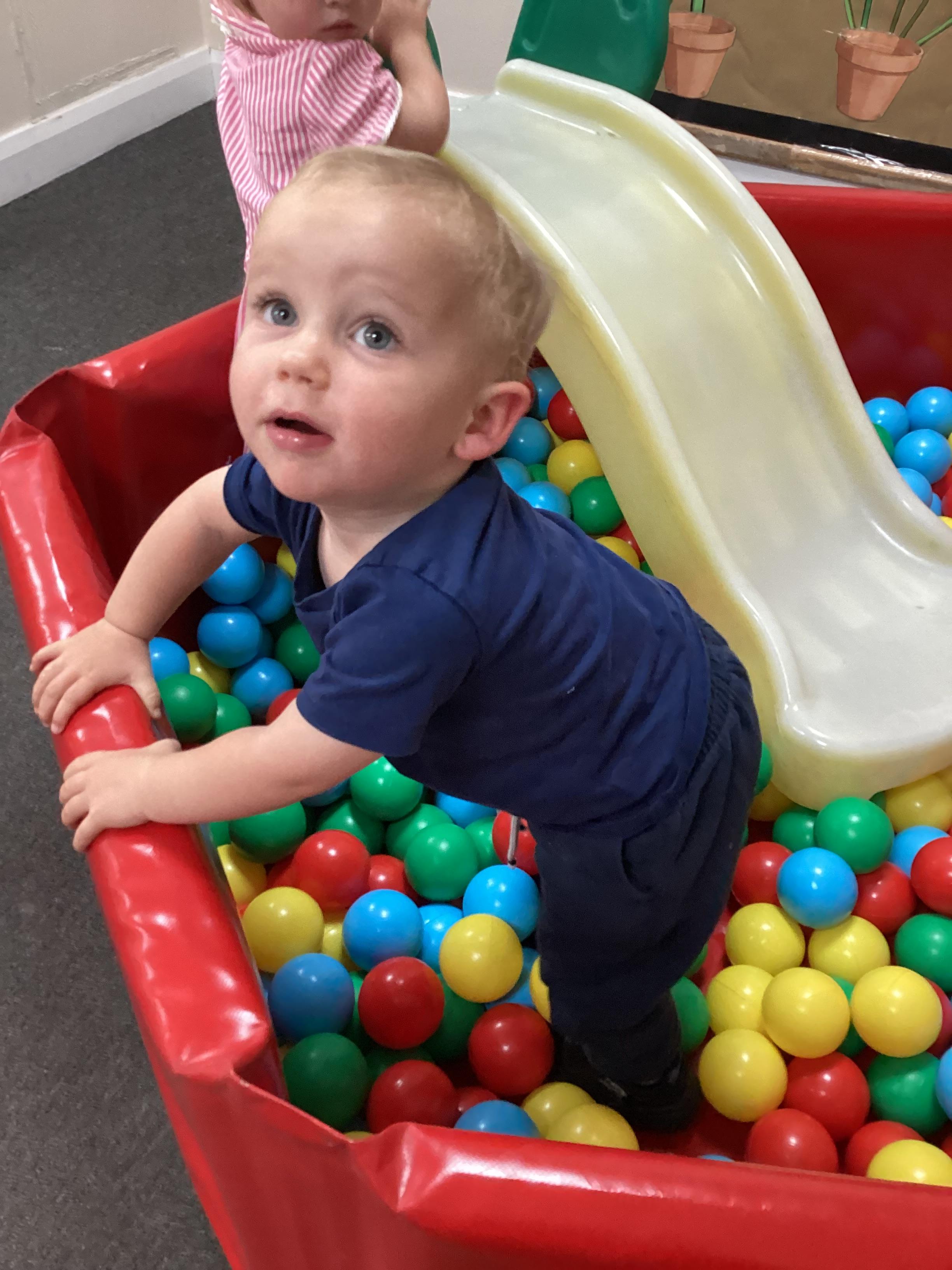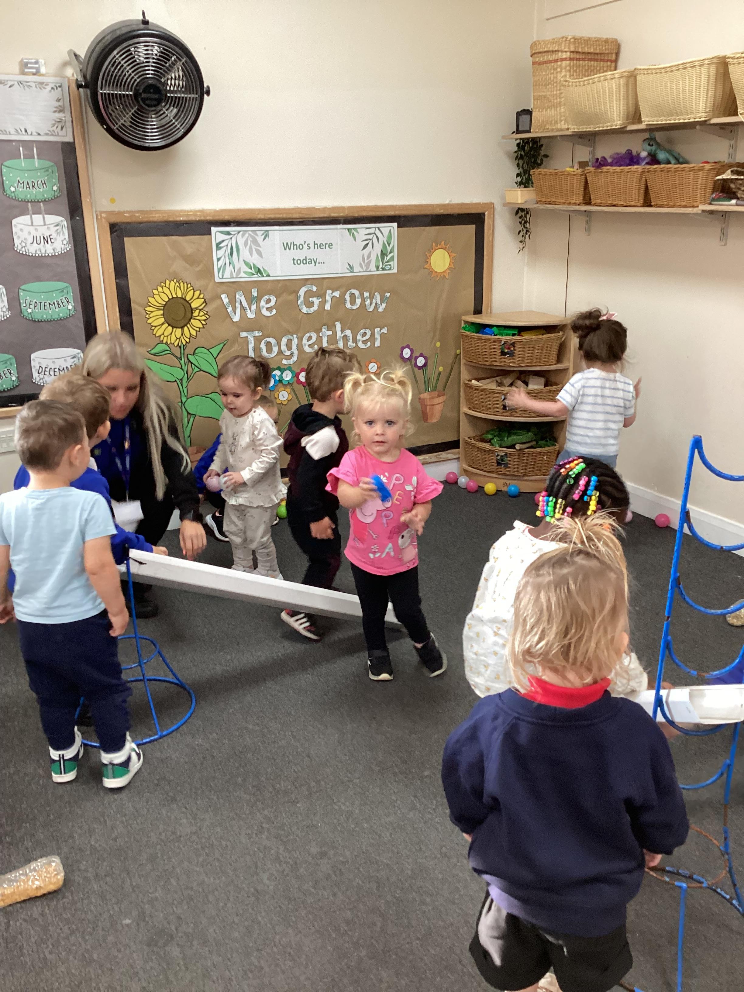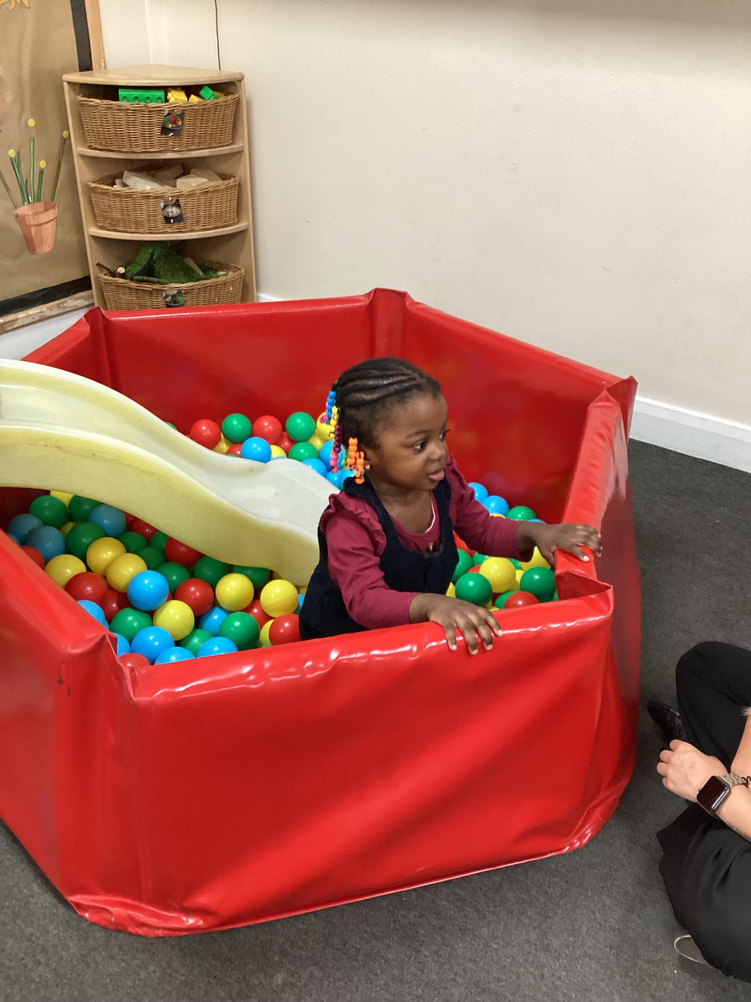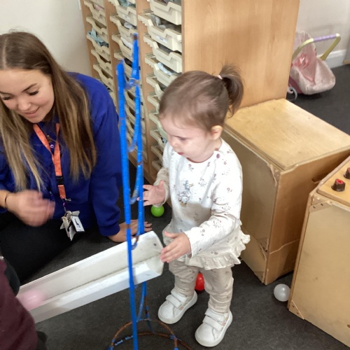 Today we enjoyed playing with the balls/guttering, the children took turns rolling the balls and even started to identify the colours of the balls! They enjoyed shouting "ready steady go" and using counting when rolling the balls. We are so proud with the way they have all settled into nursery