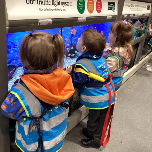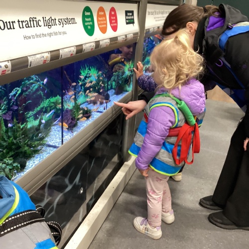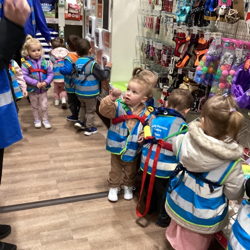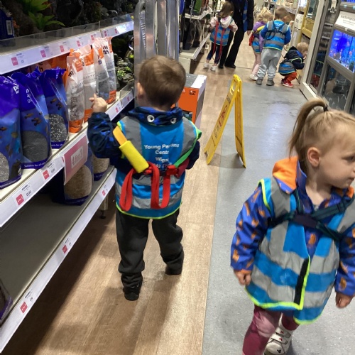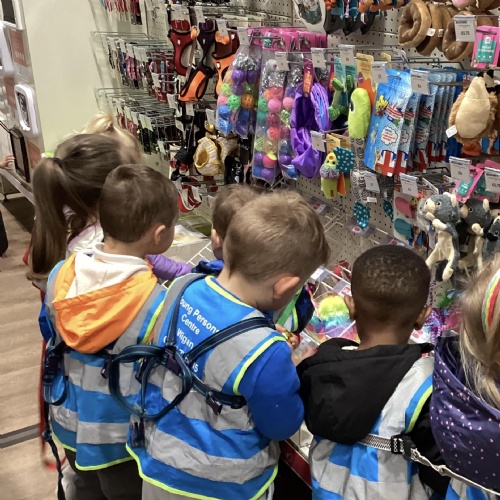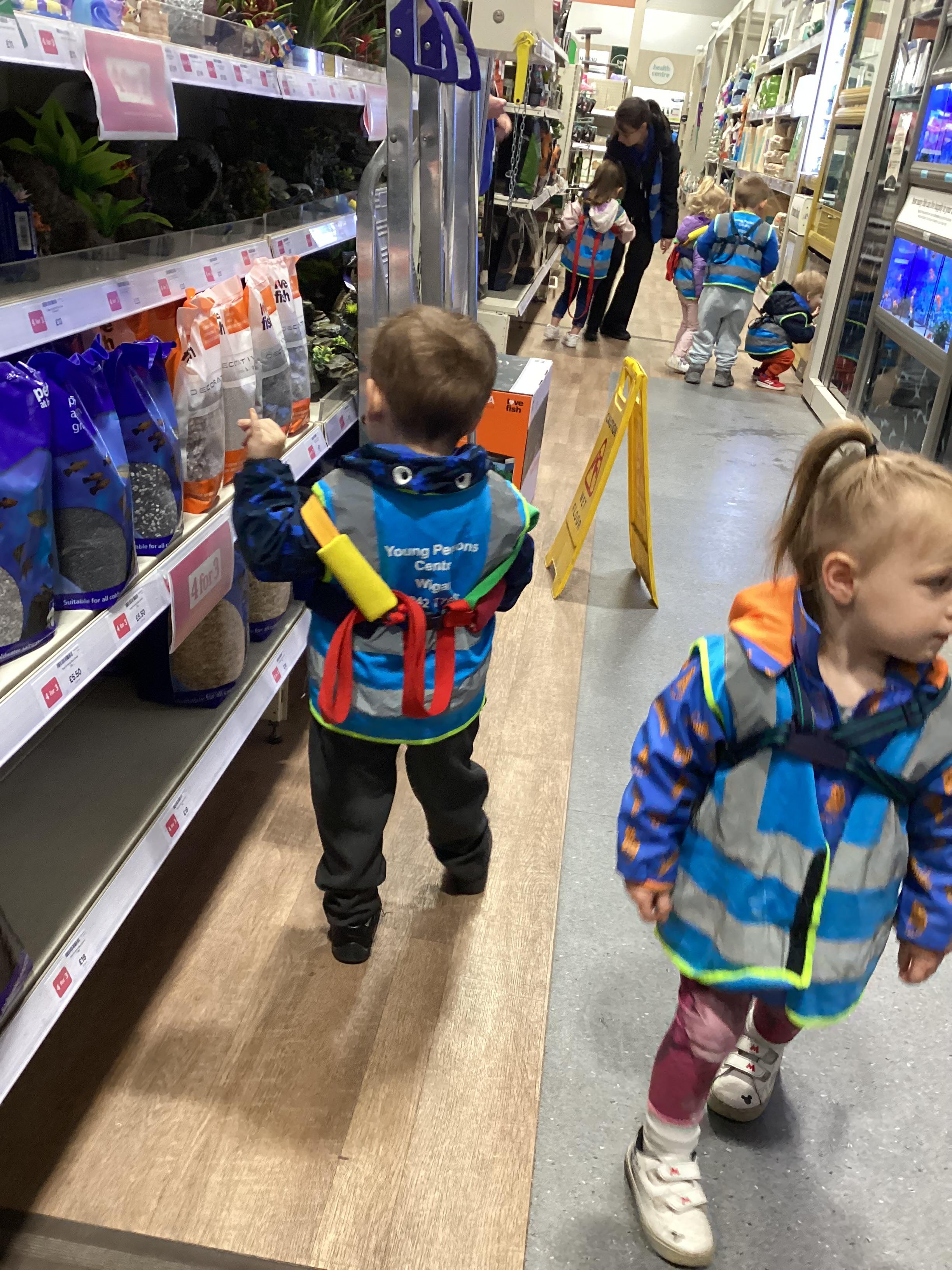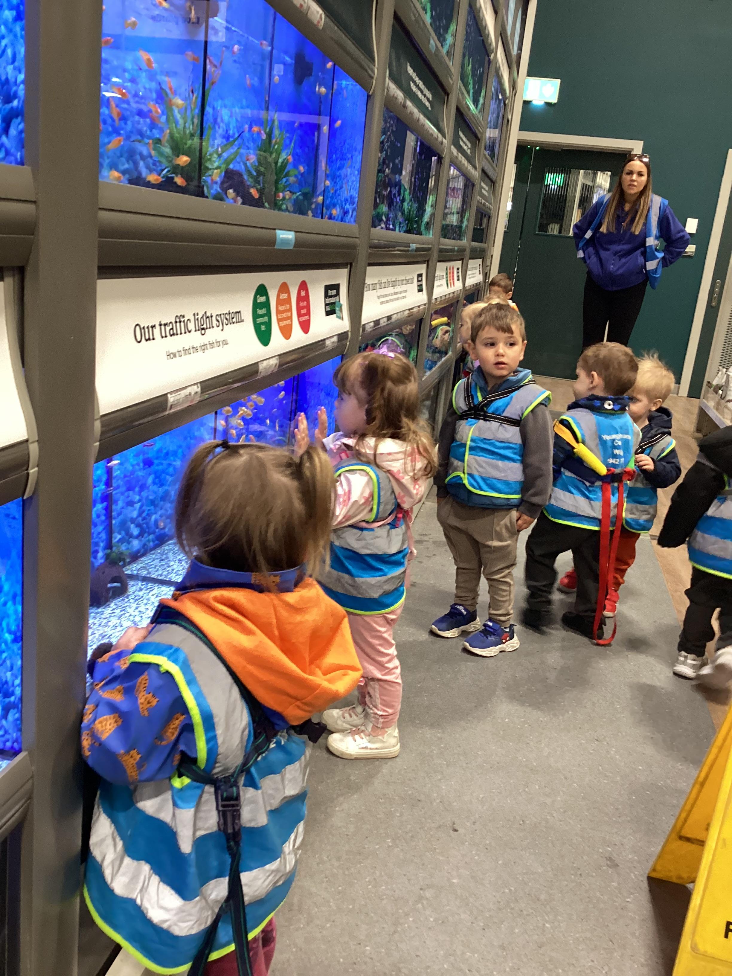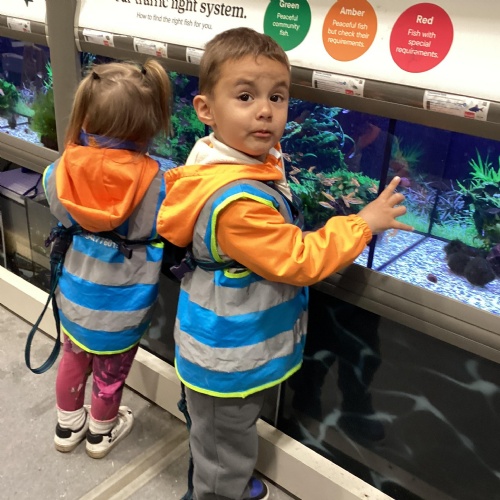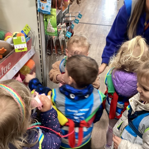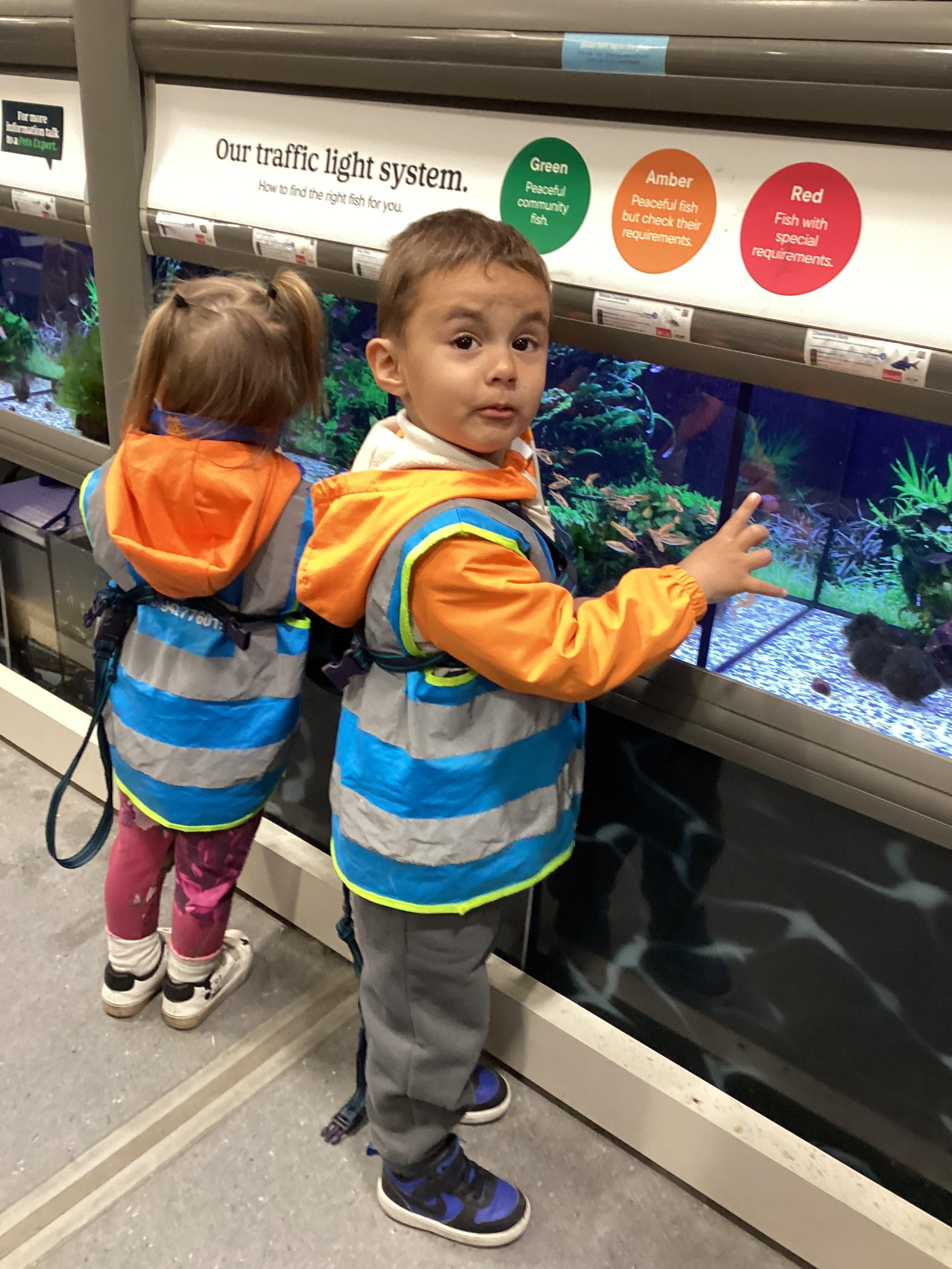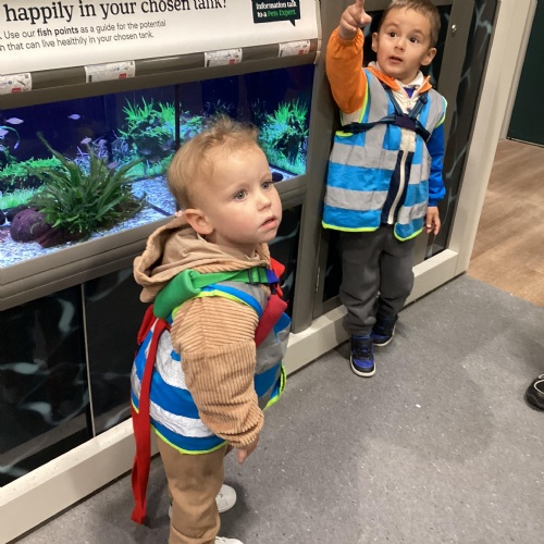 Today we walked down to the pet shop. The children enjoyed seeing all of the different coloured fish and exploring all of the toys.