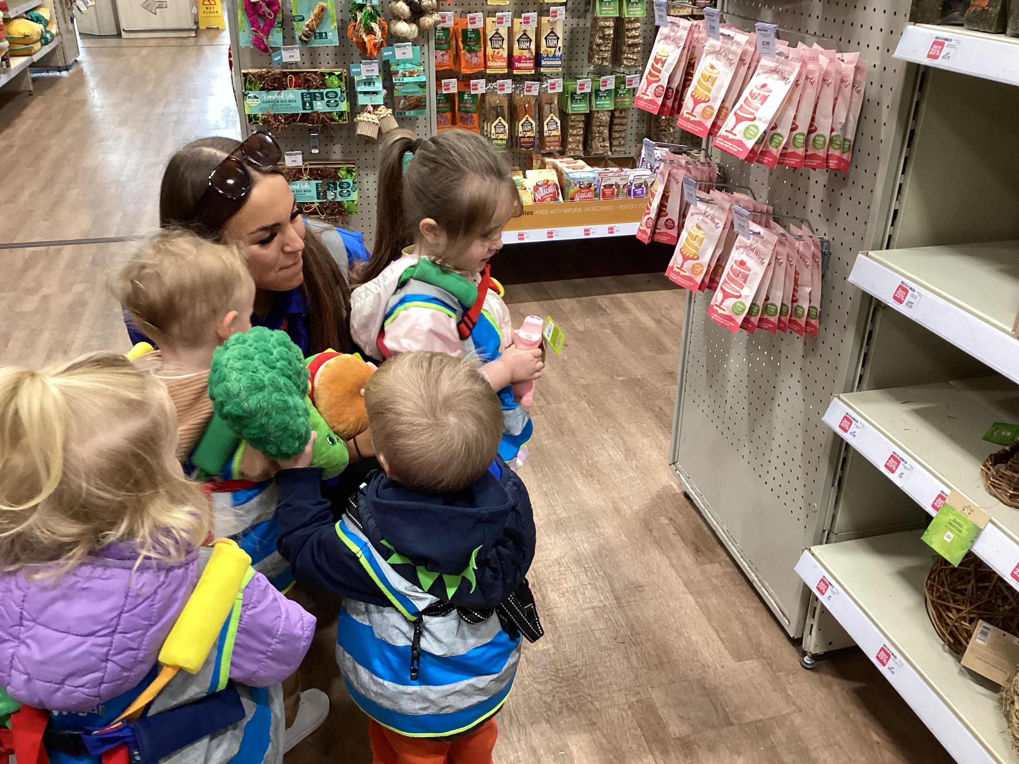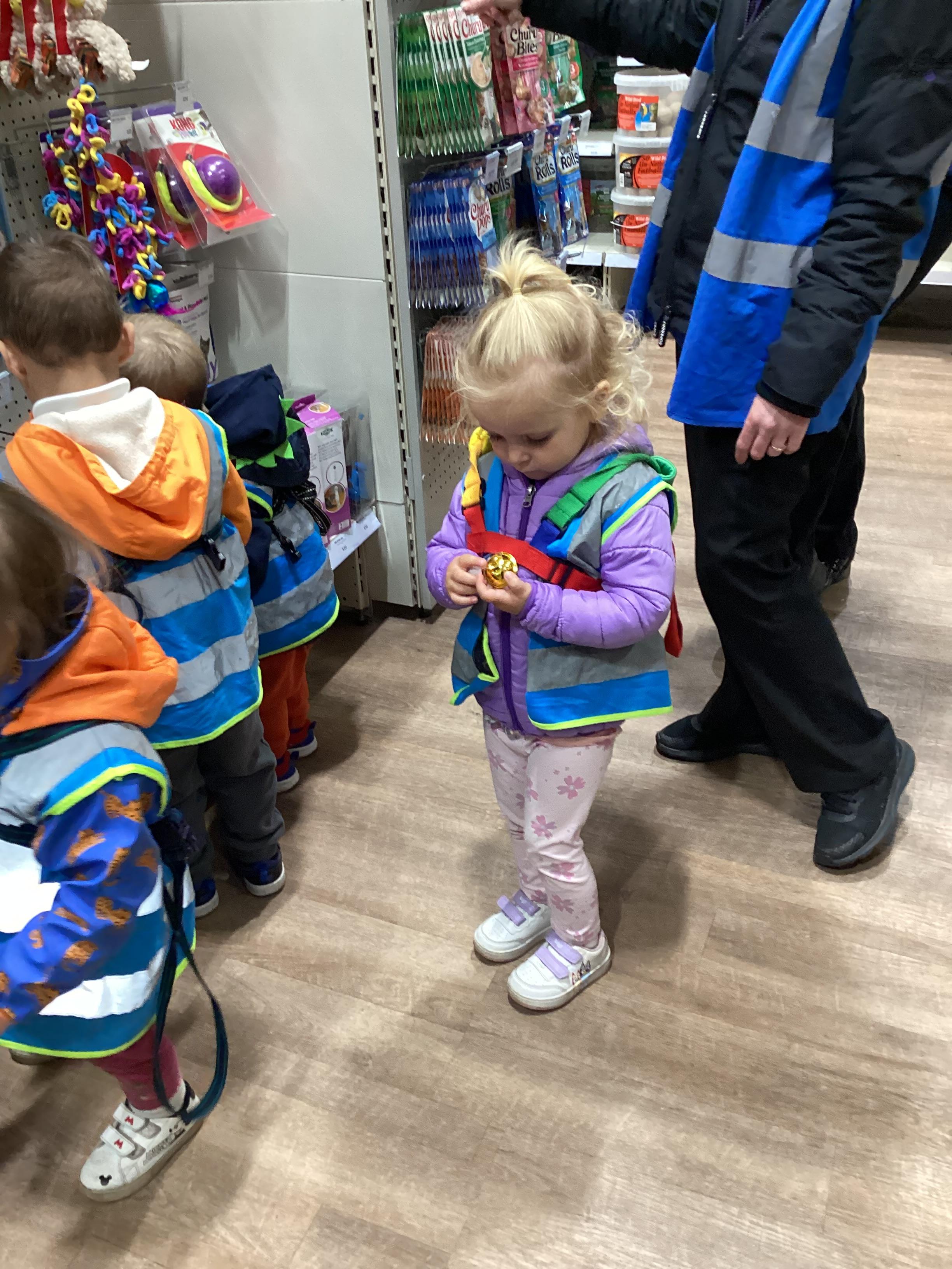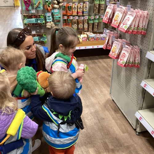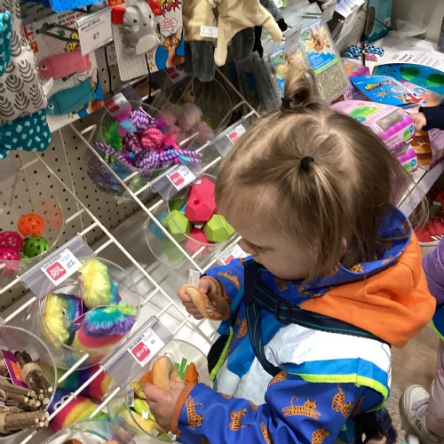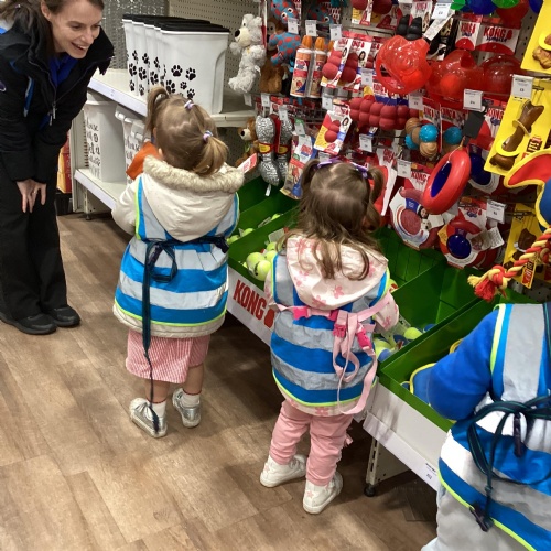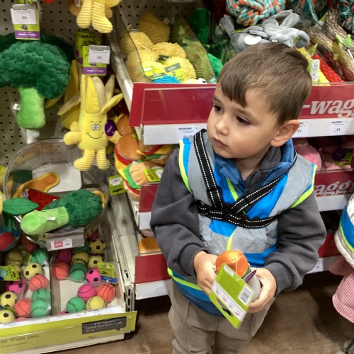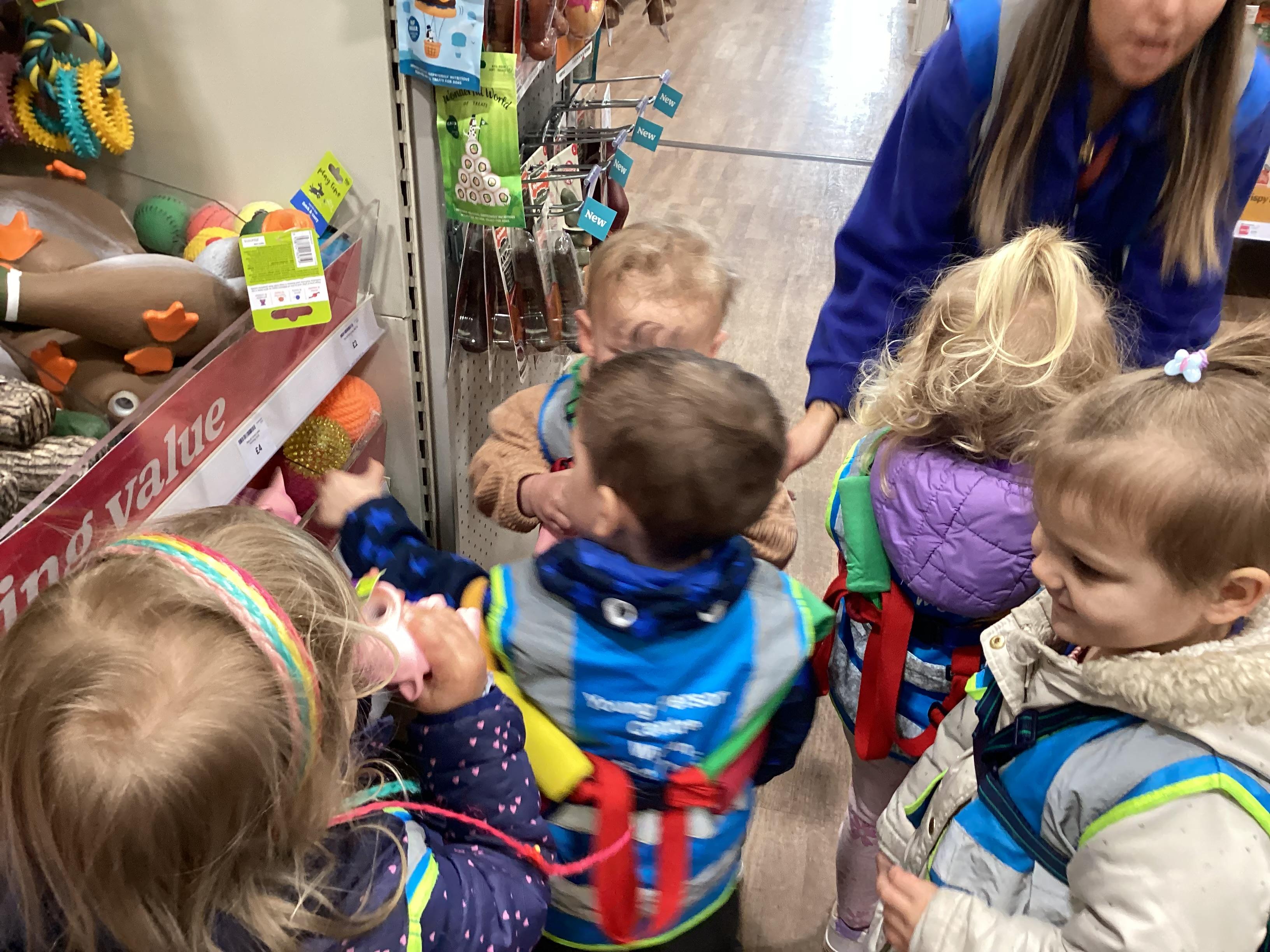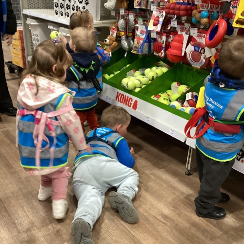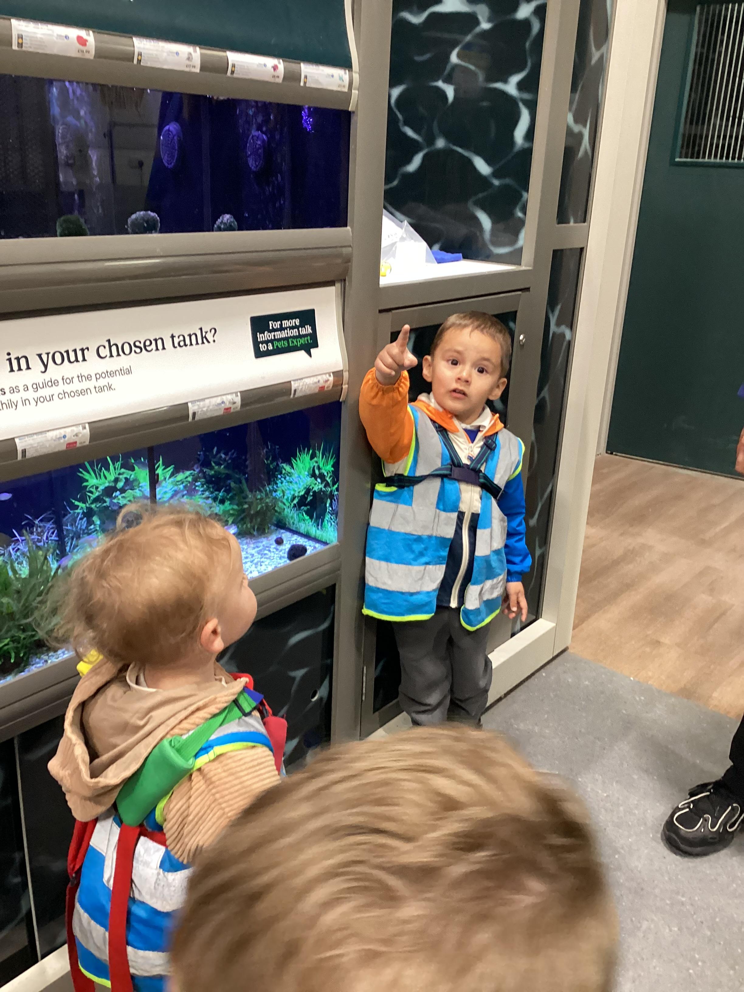 Today we walked down to the pet shop. The children enjoyed seeing all of the different coloured fish and exploring all of the toys.
