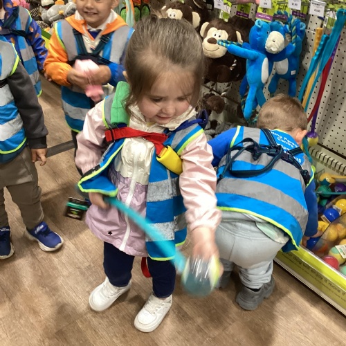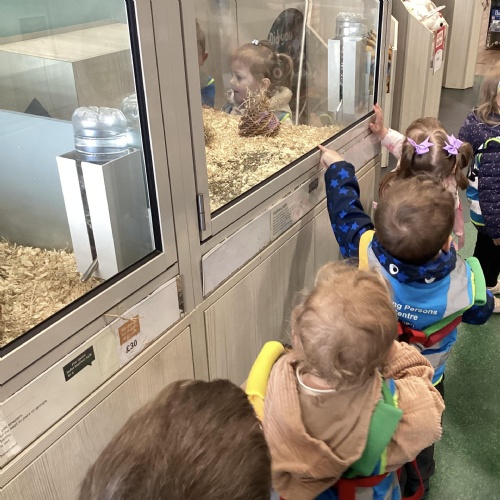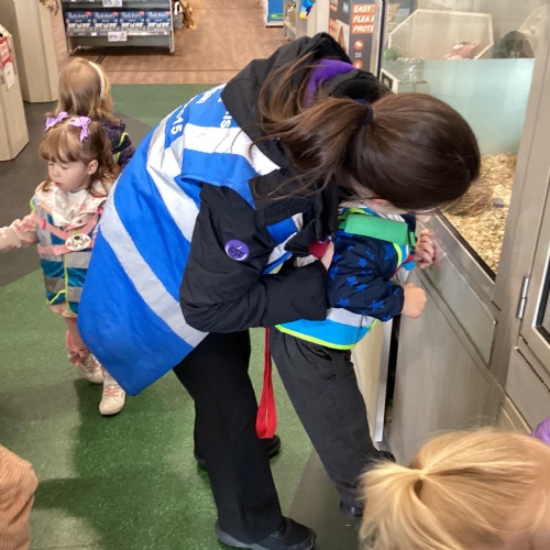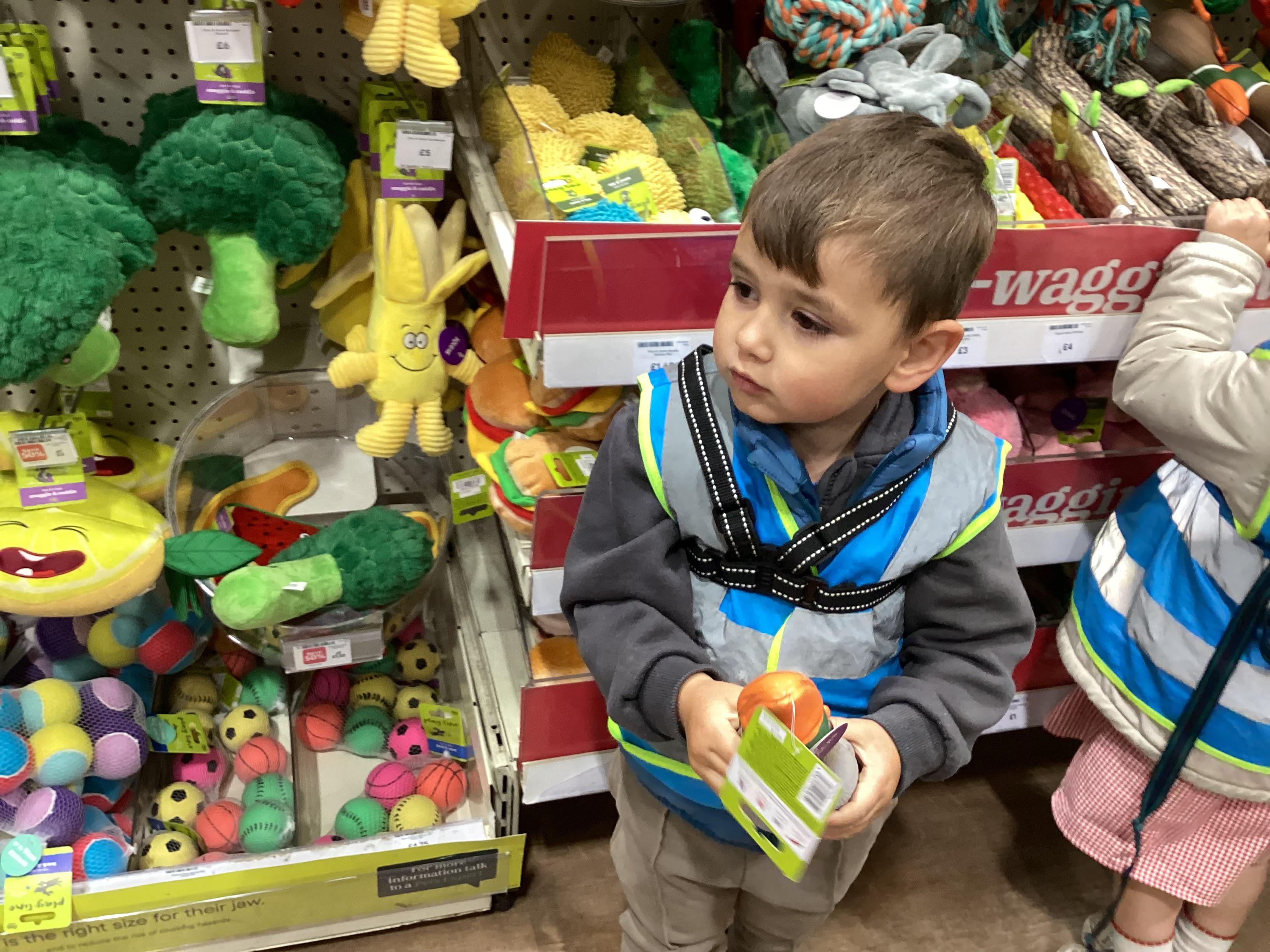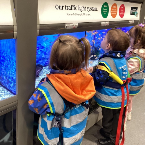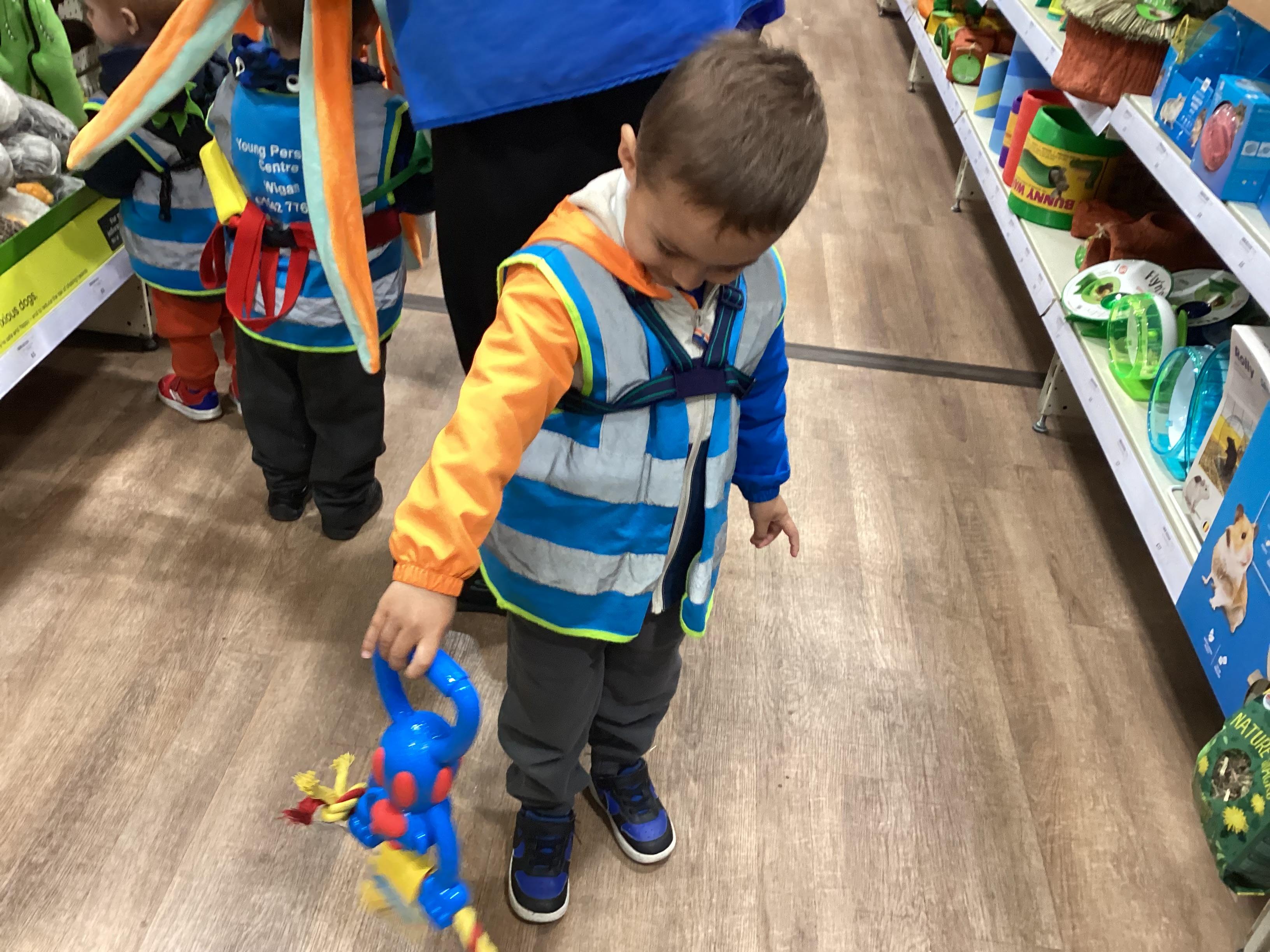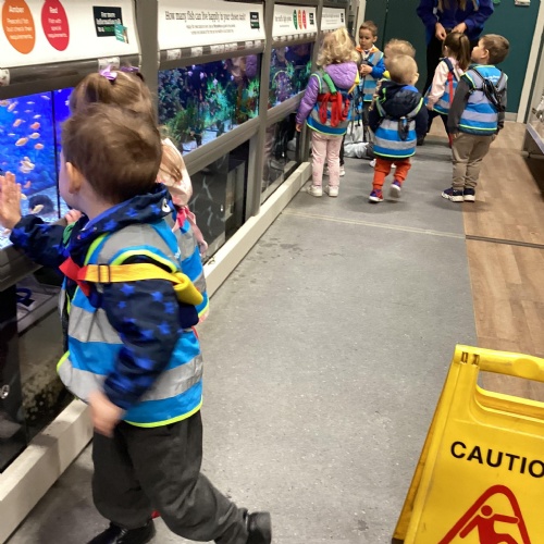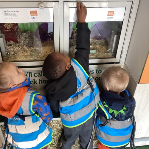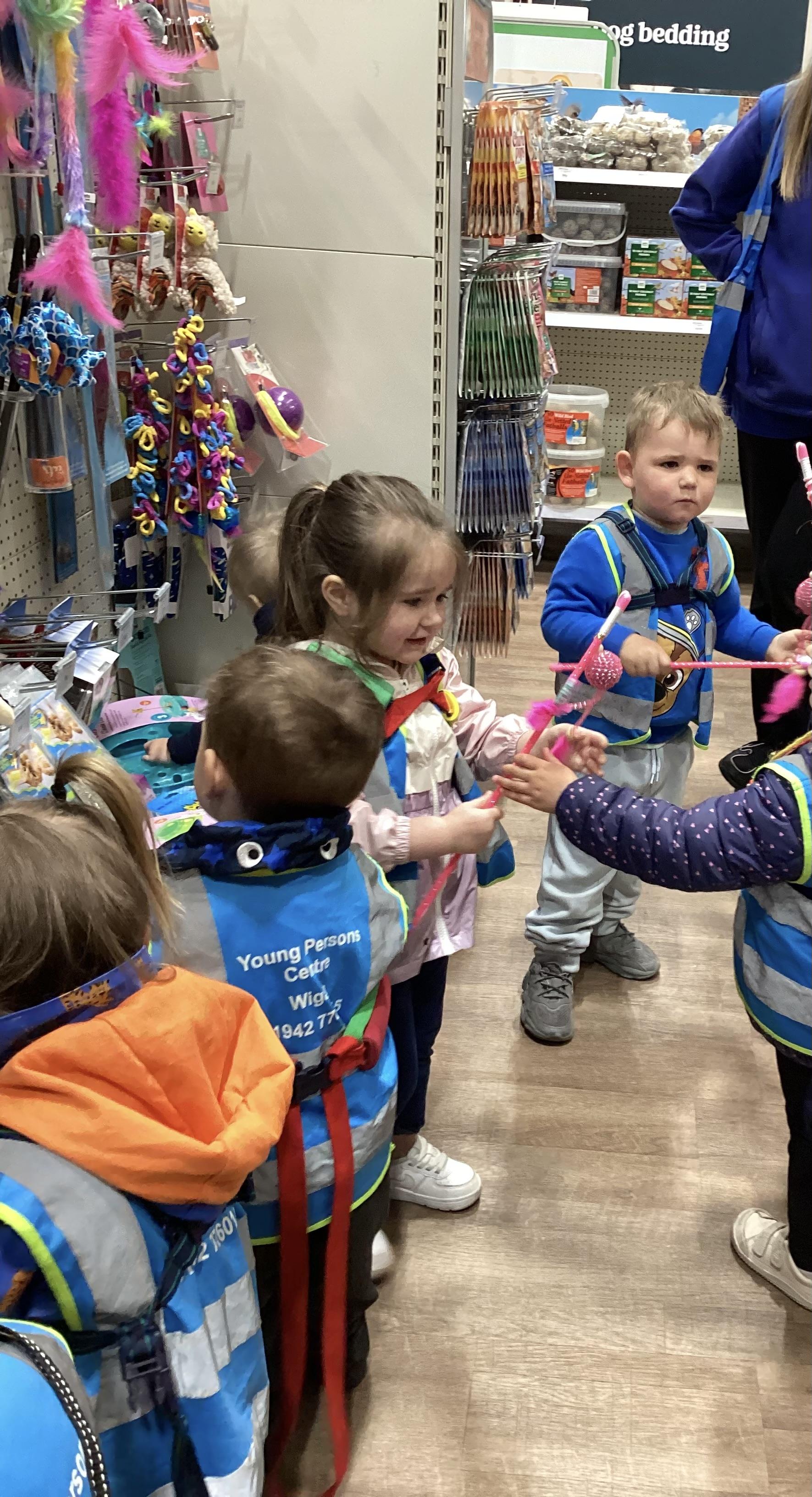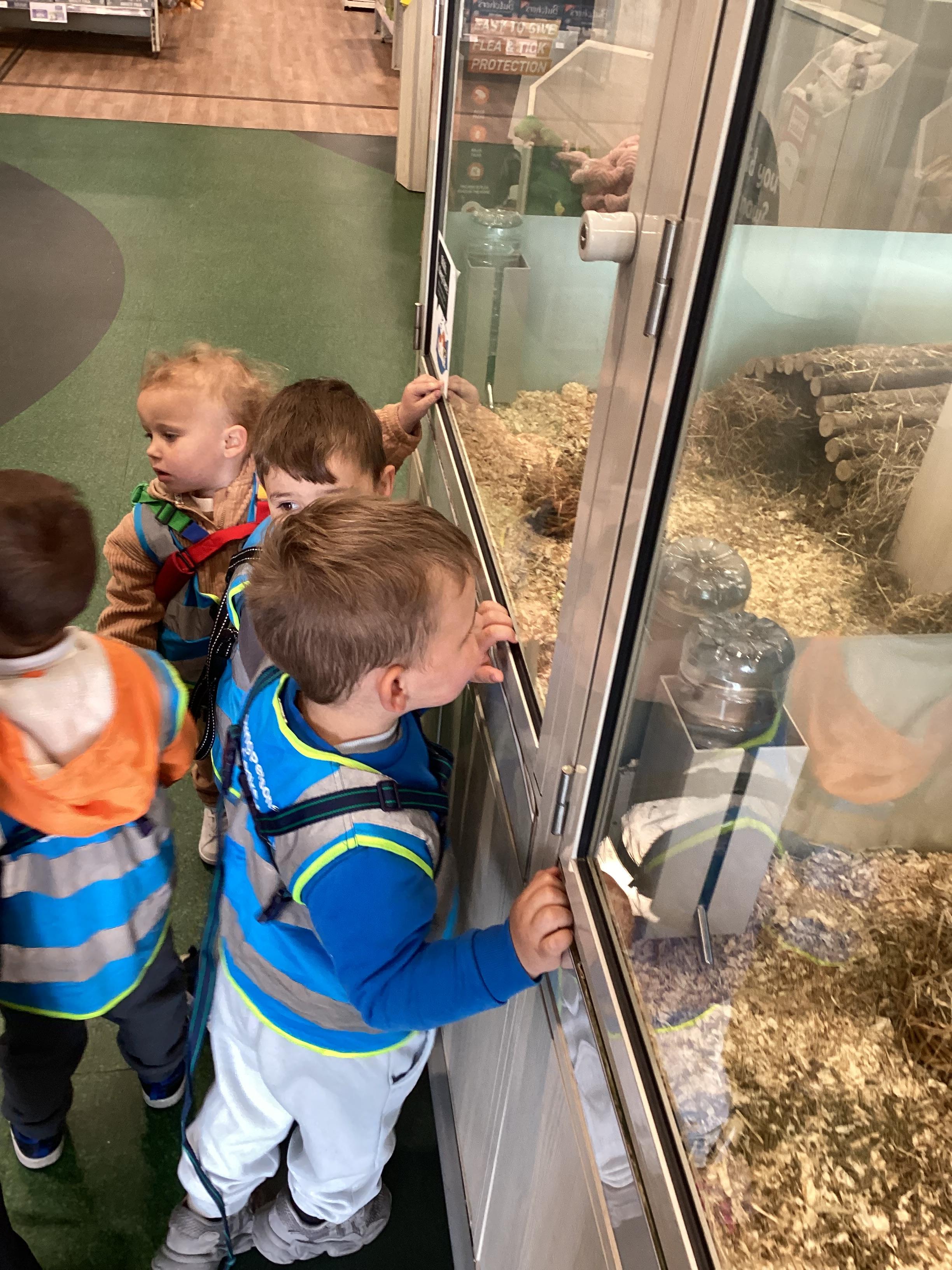 Today we walked down to the pet shop. The children enjoyed seeing all of the different coloured fish and exploring all of the toys.