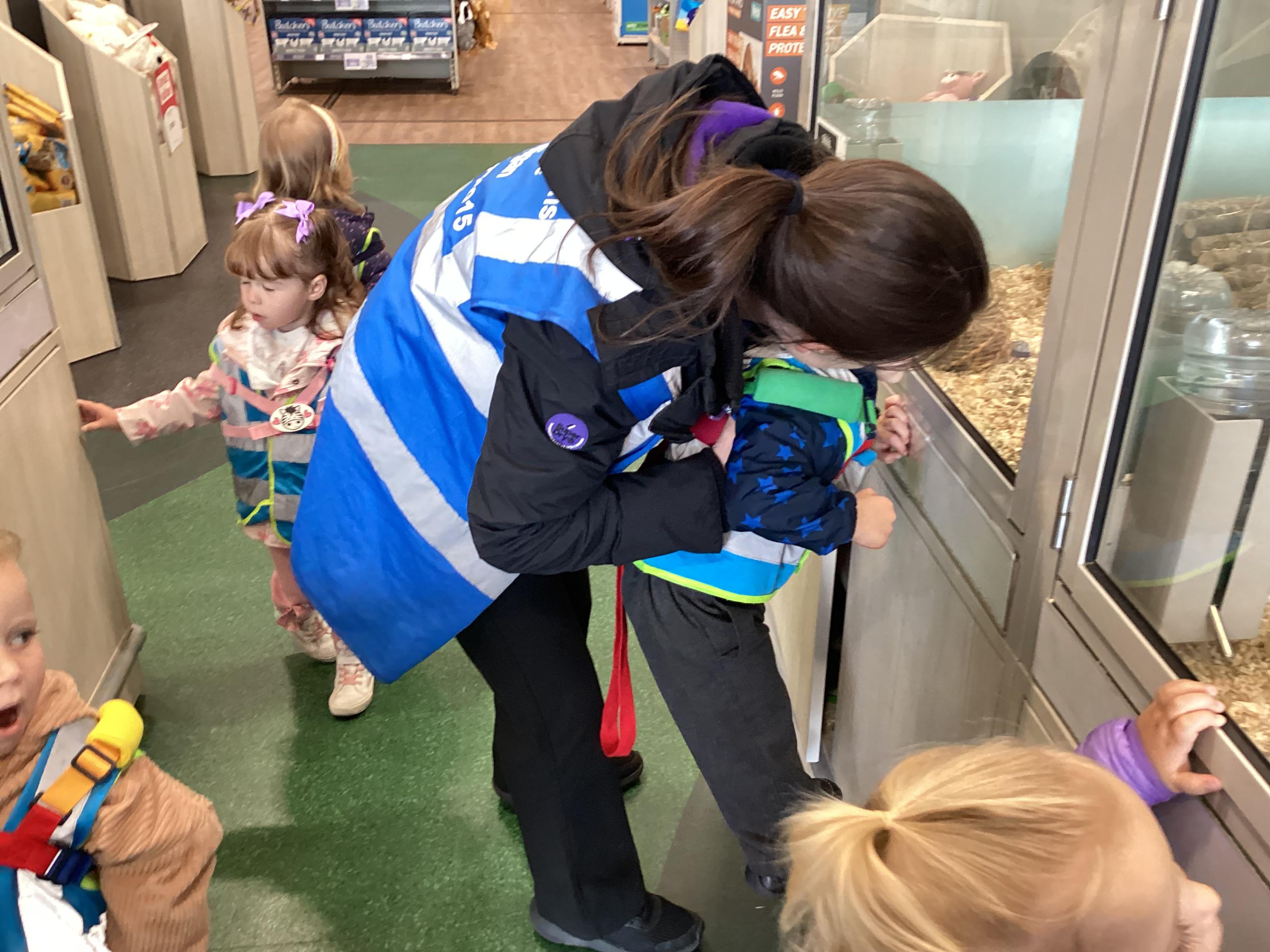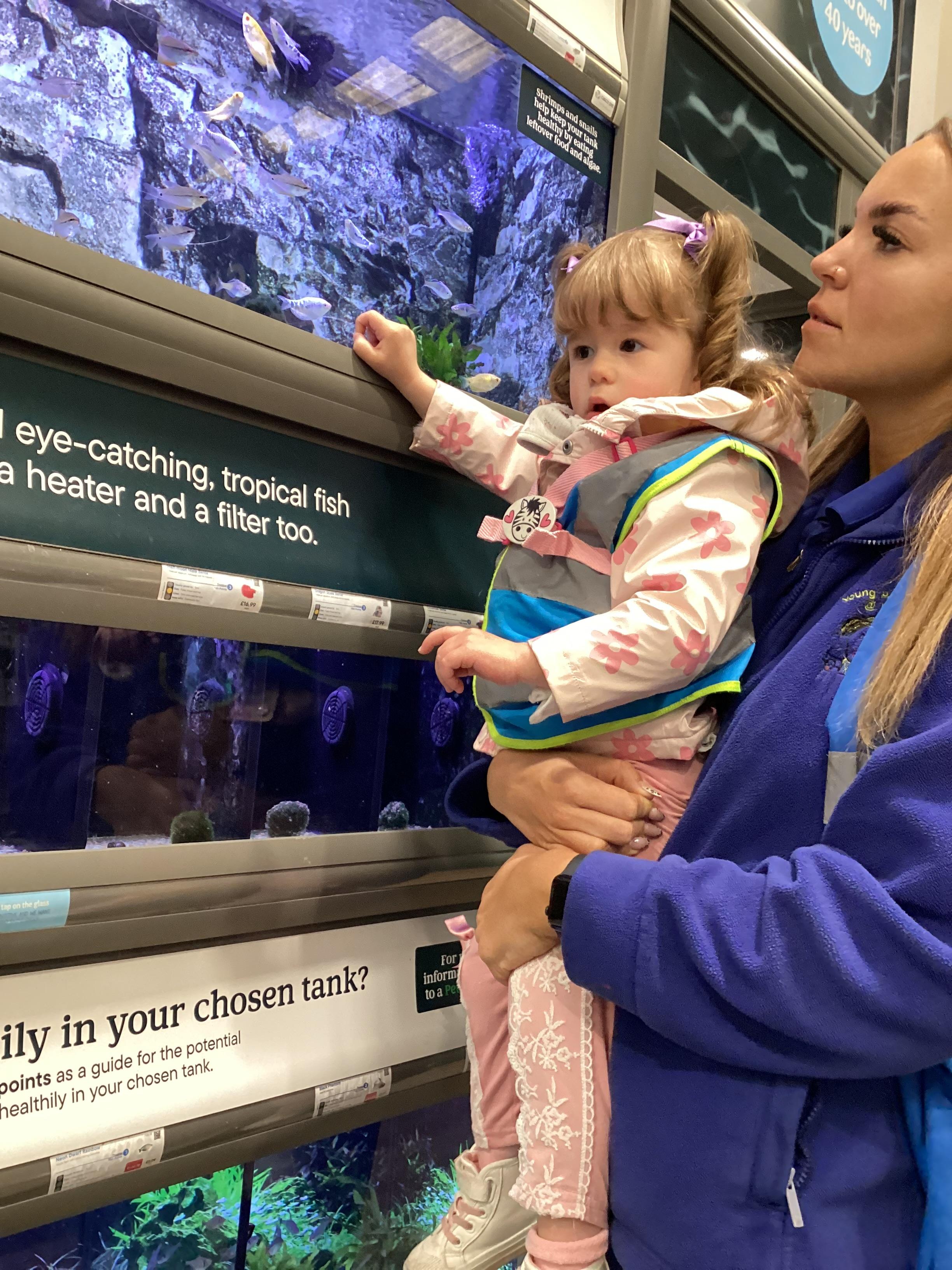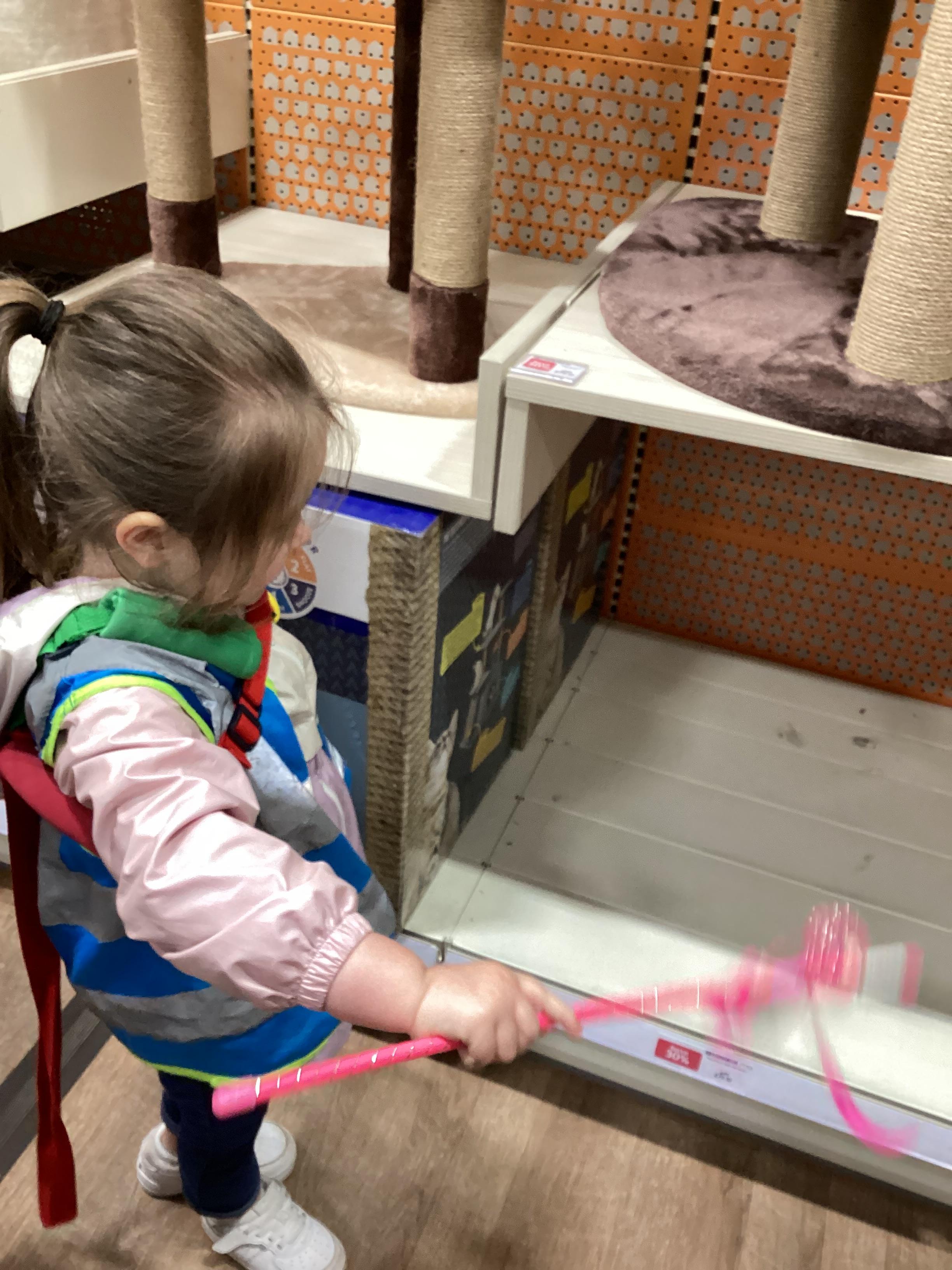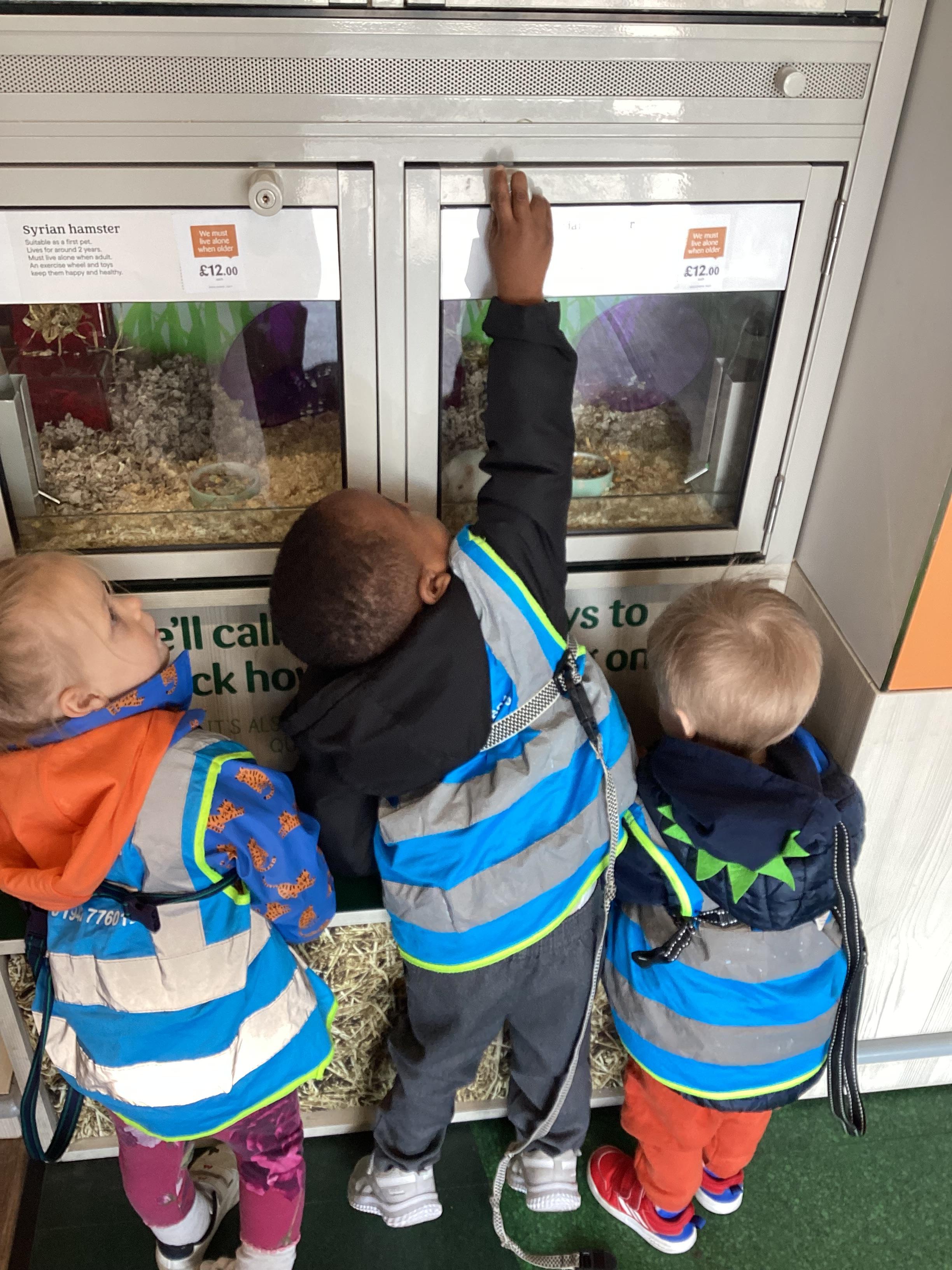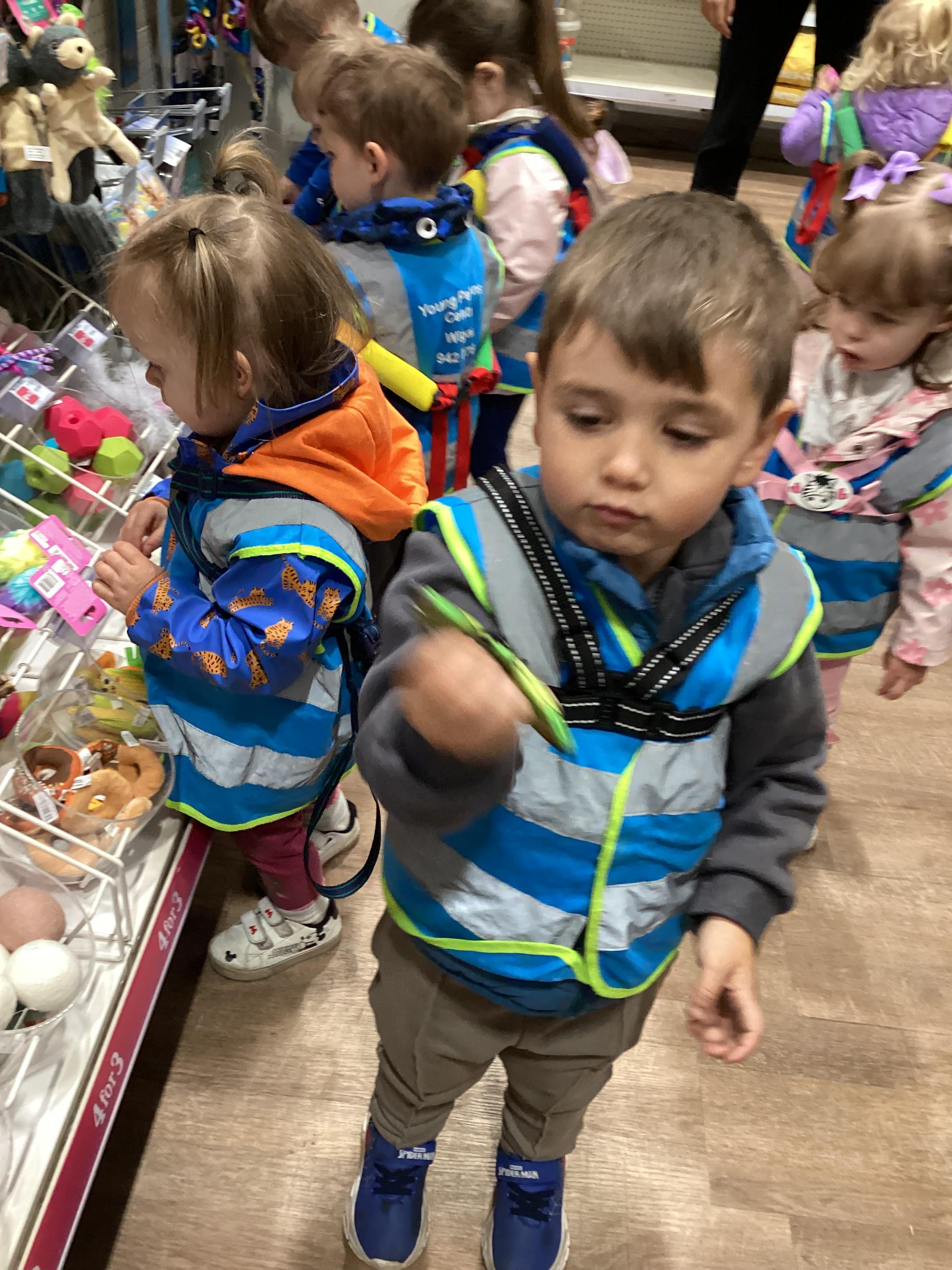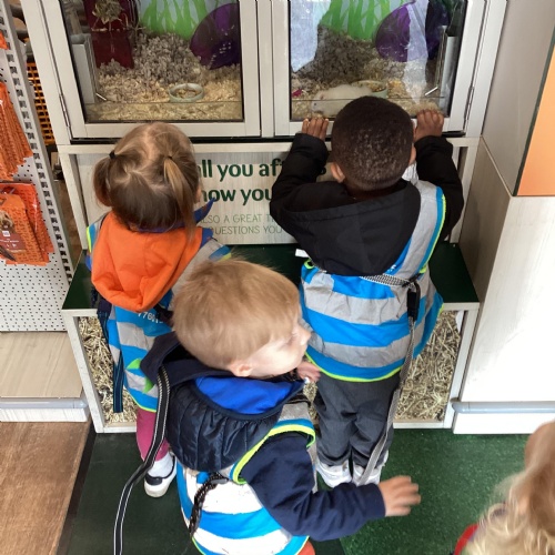 Today we walked down to the pet shop. The children enjoyed seeing all of the different coloured fish and exploring all of the toys.