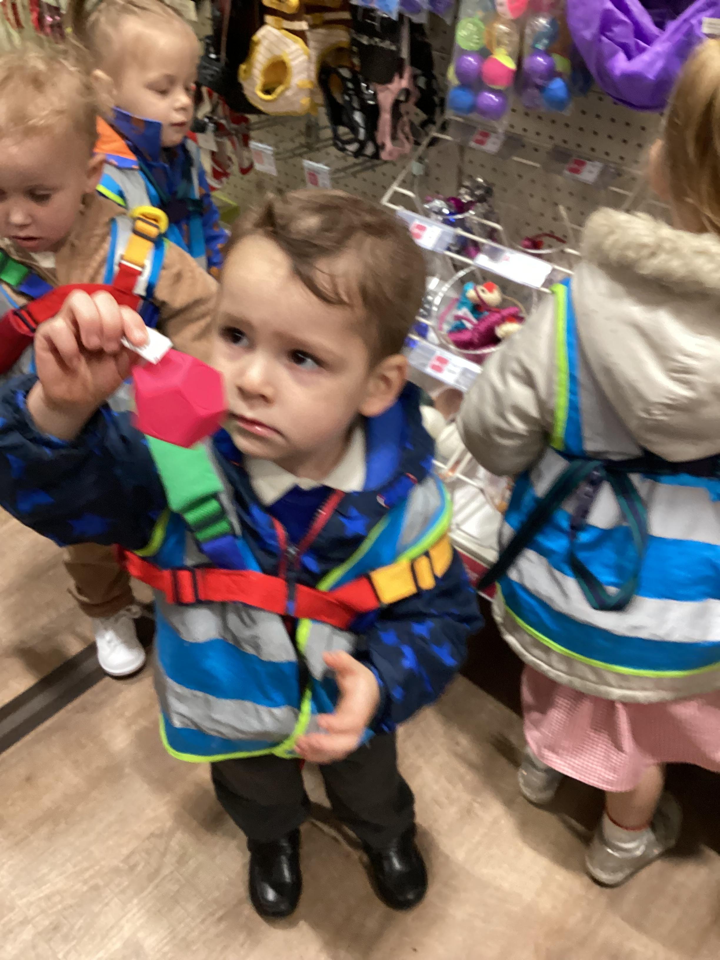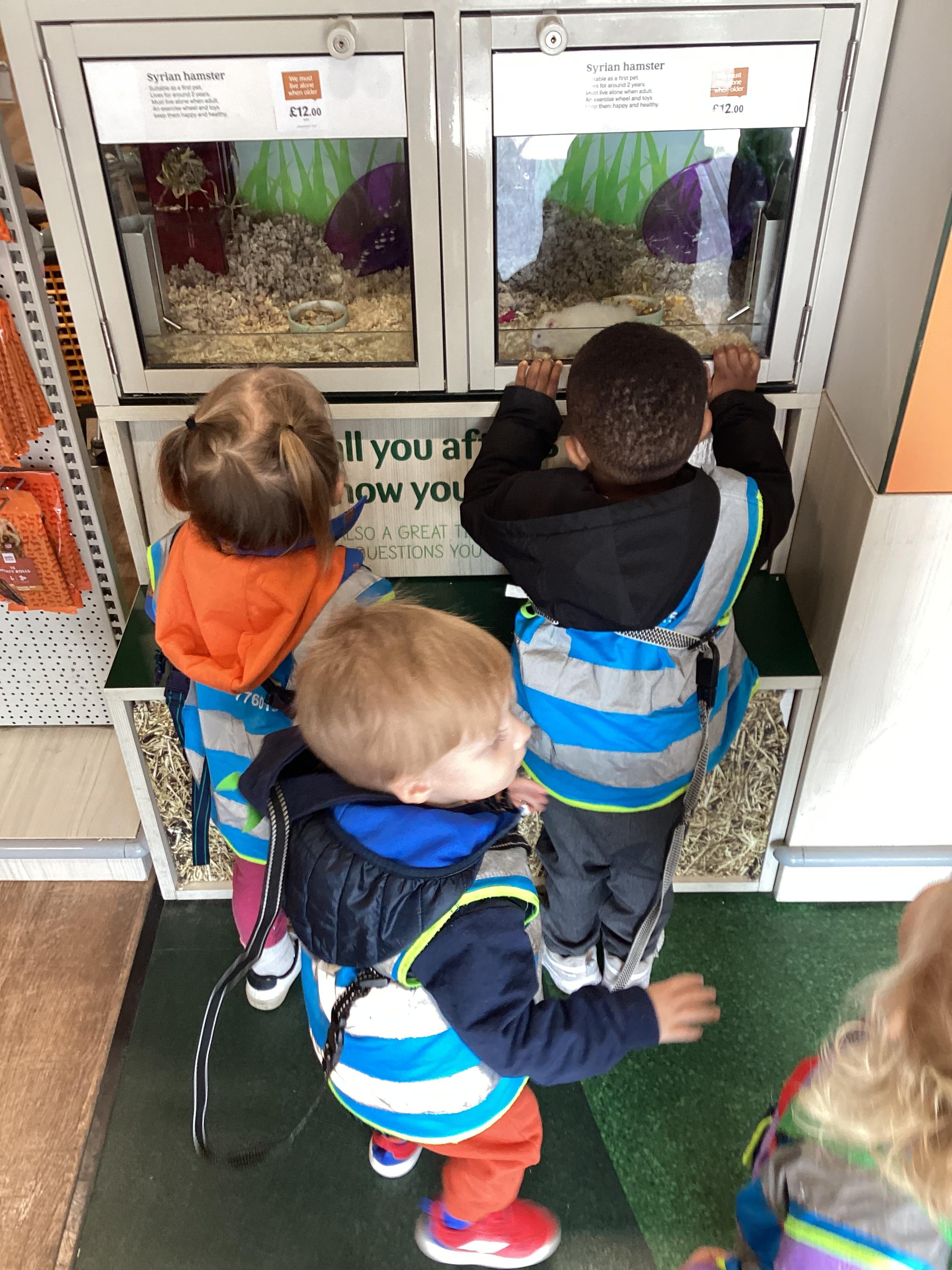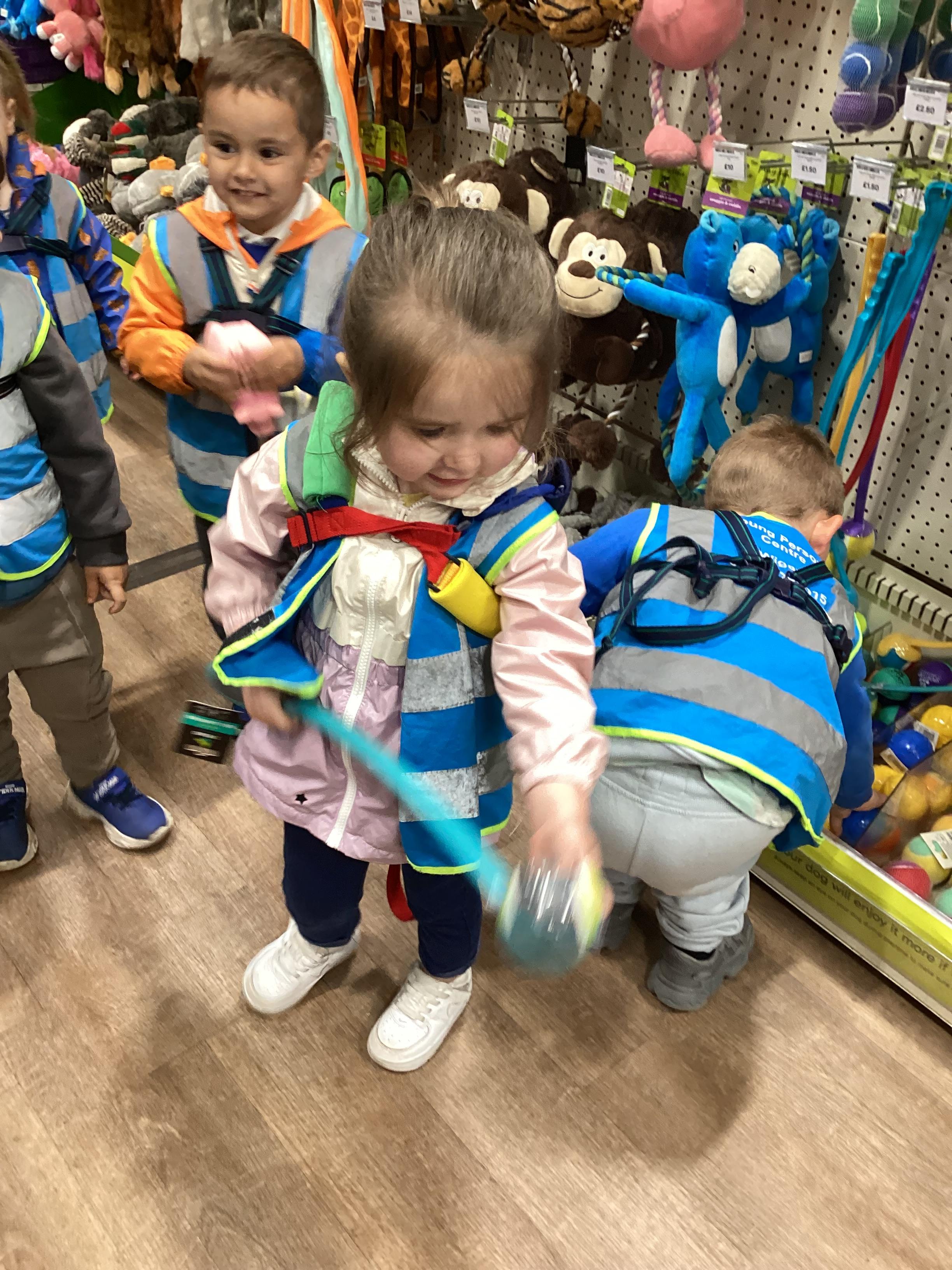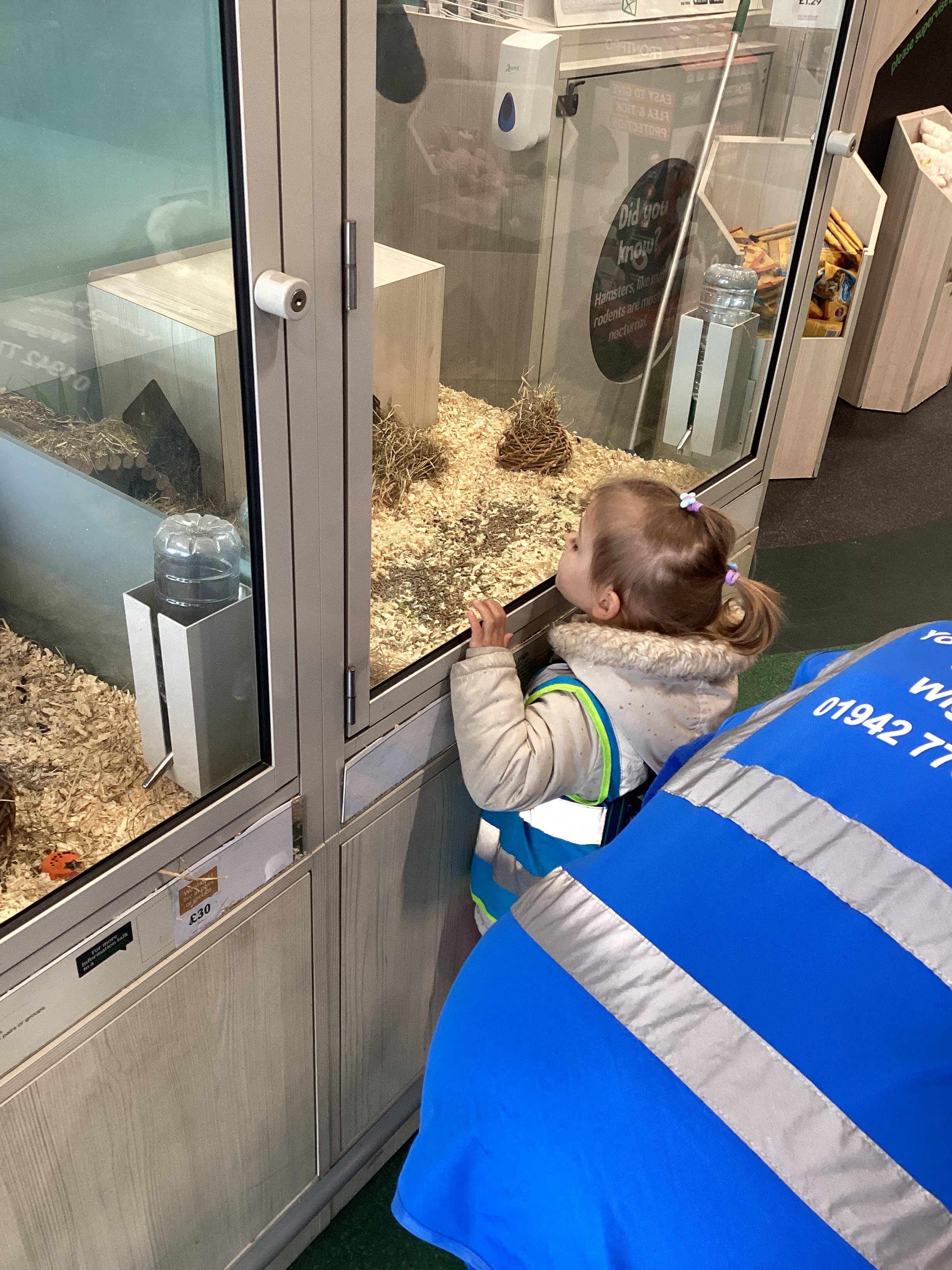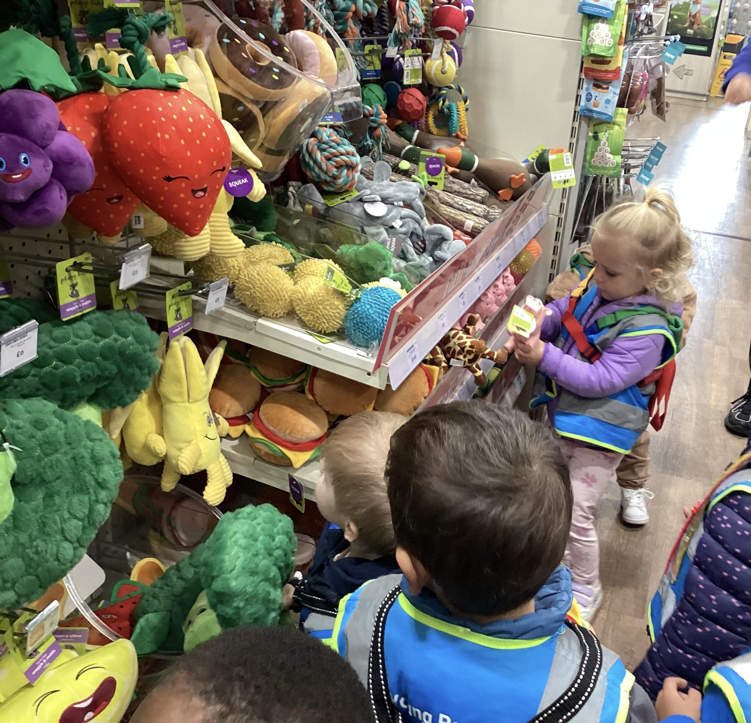 Today we walked down to the pet shop. The children enjoyed seeing all of the different coloured fish and exploring all of the toys.