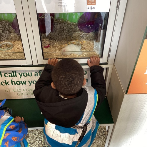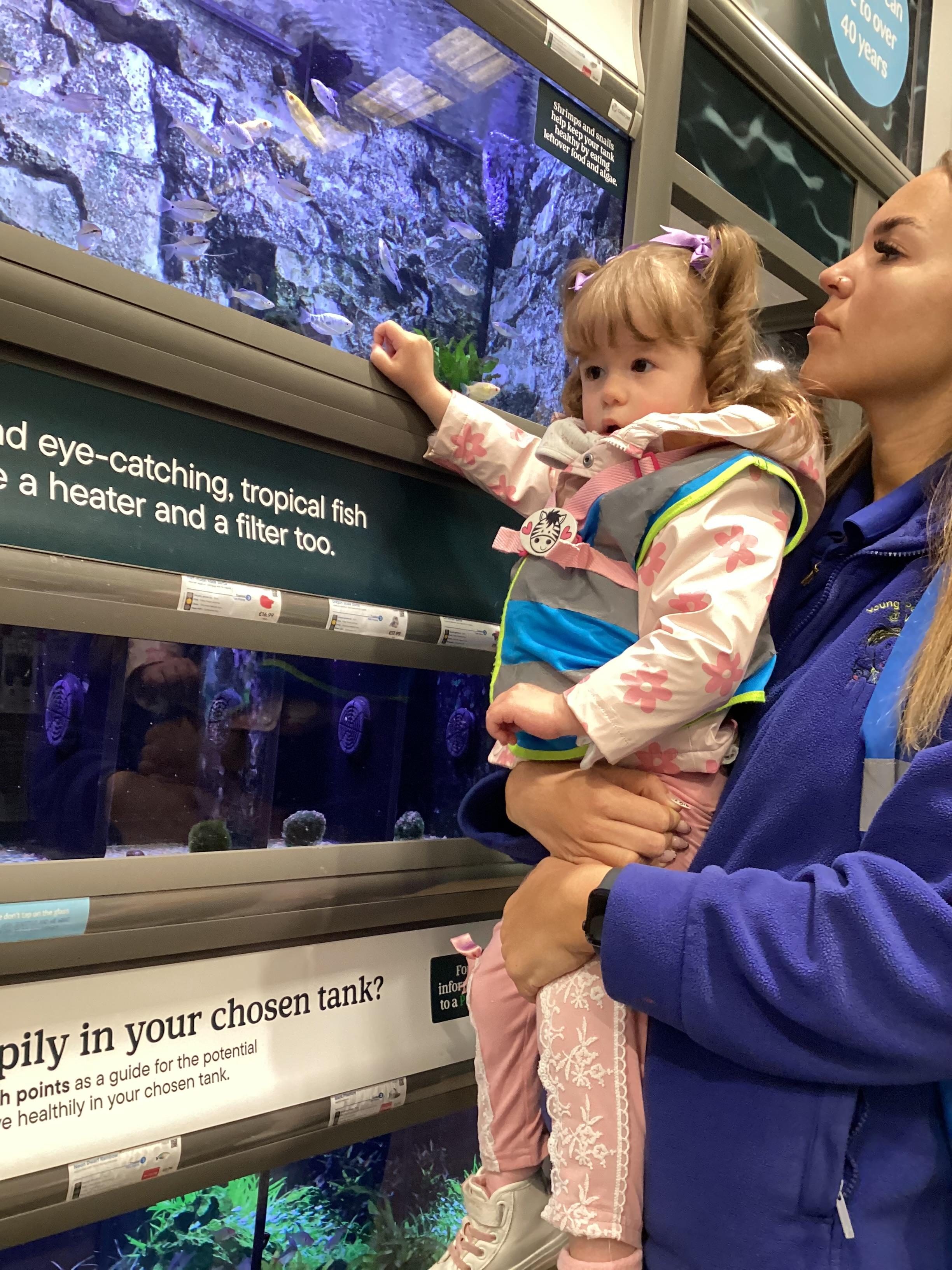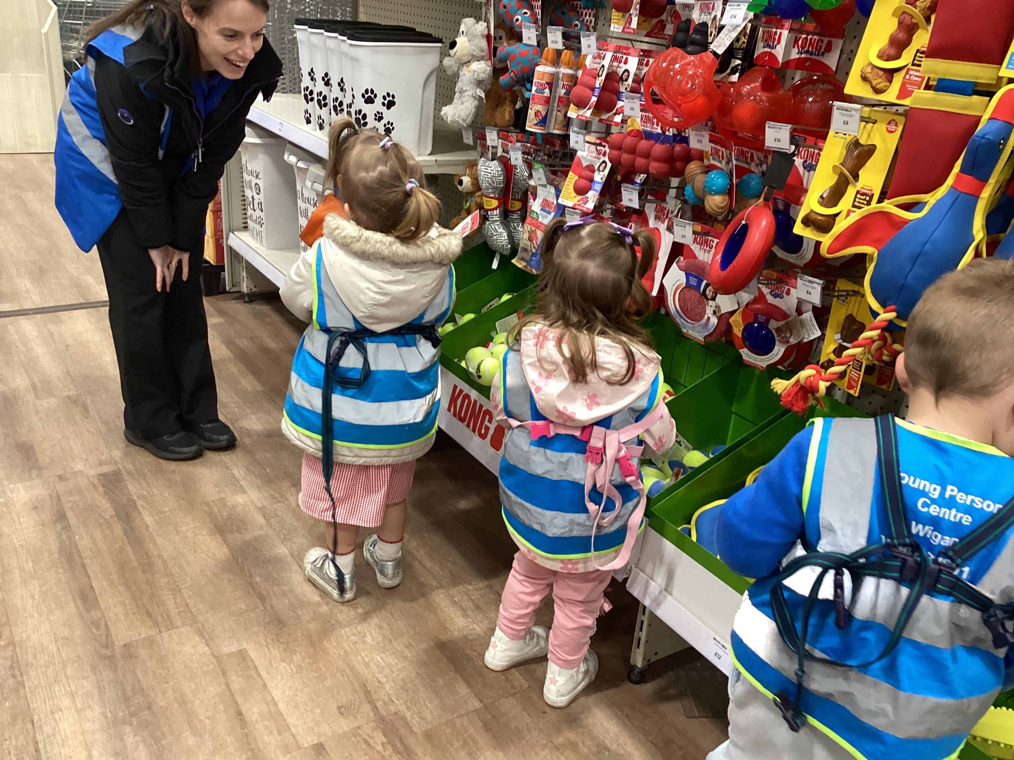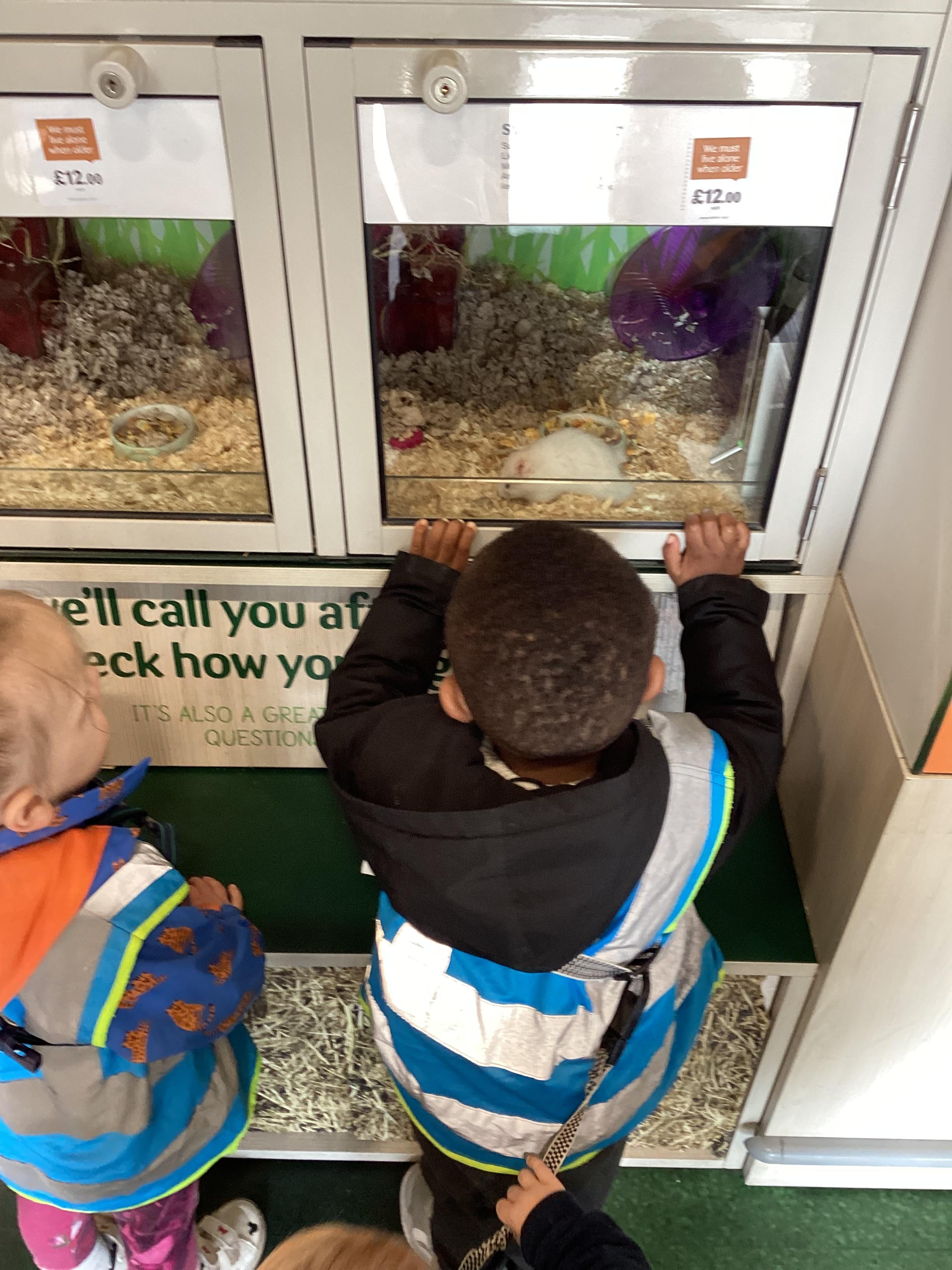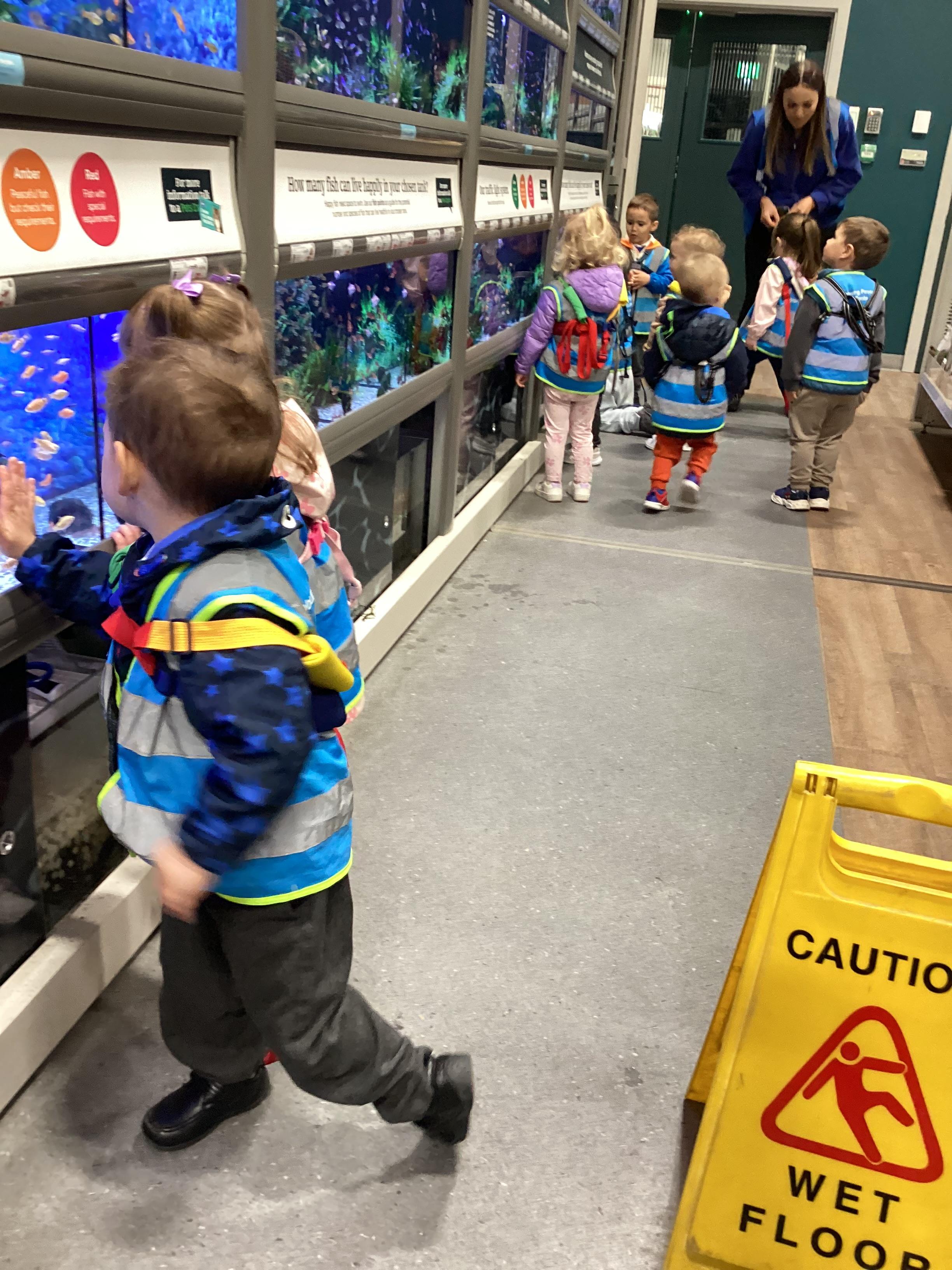 Today we walked down to the pet shop. The children enjoyed seeing all of the different coloured fish and exploring all of the toys.