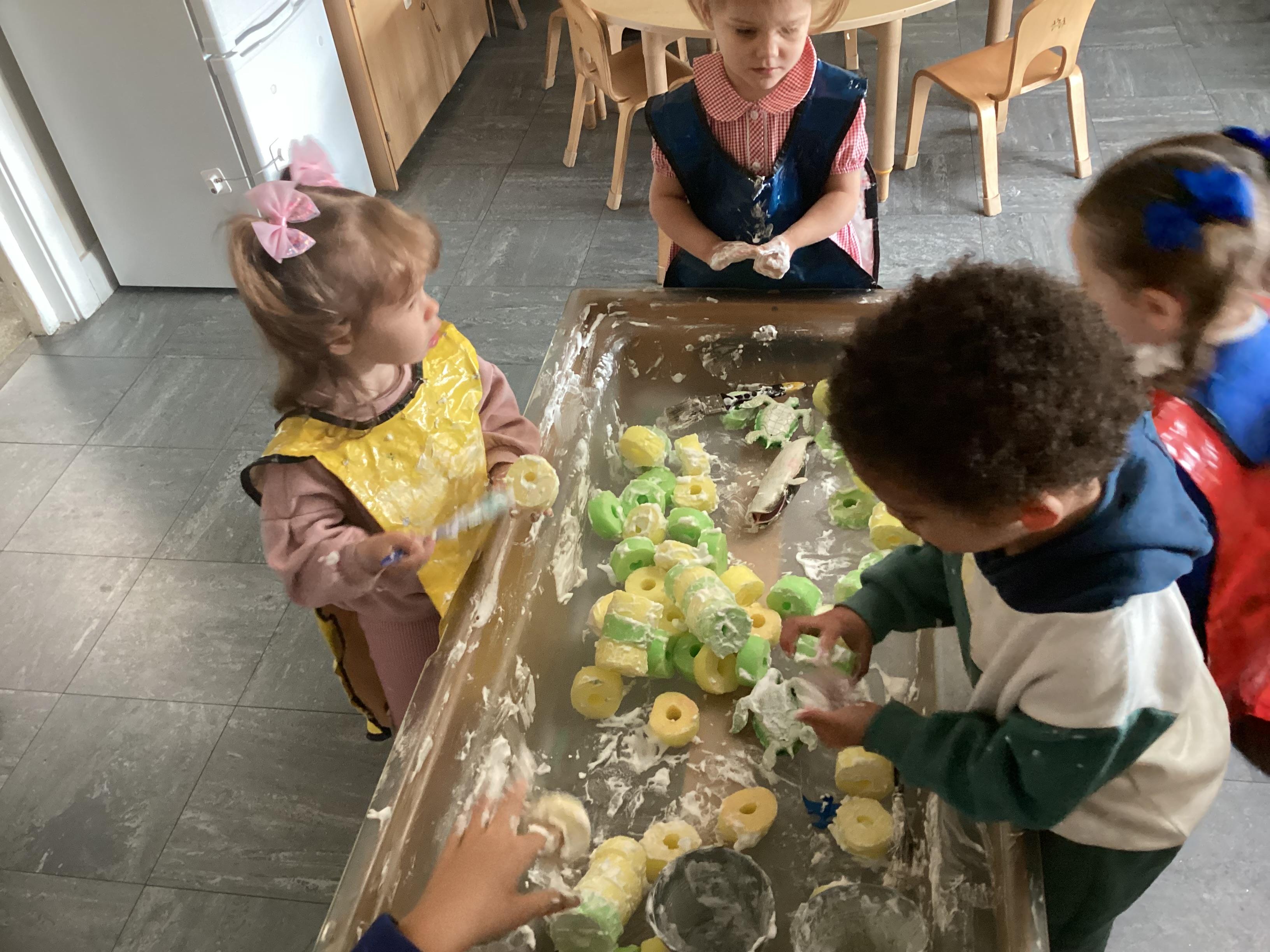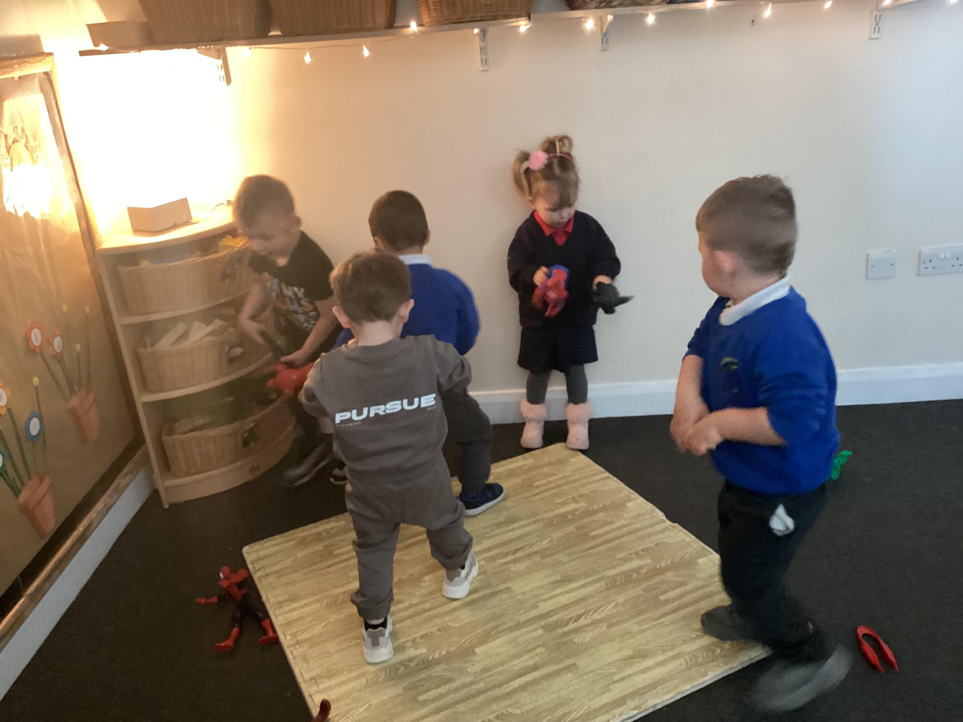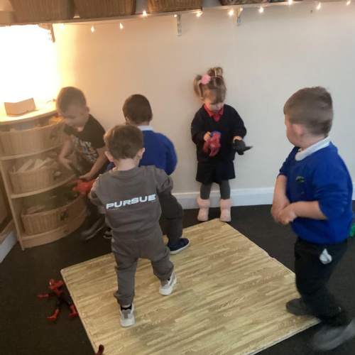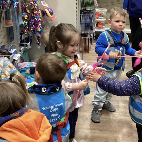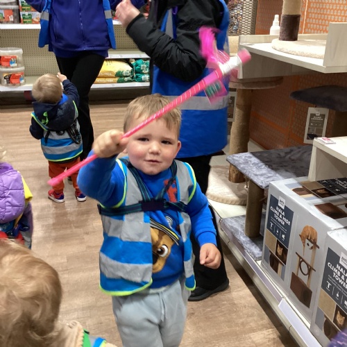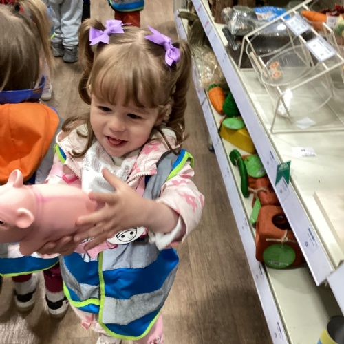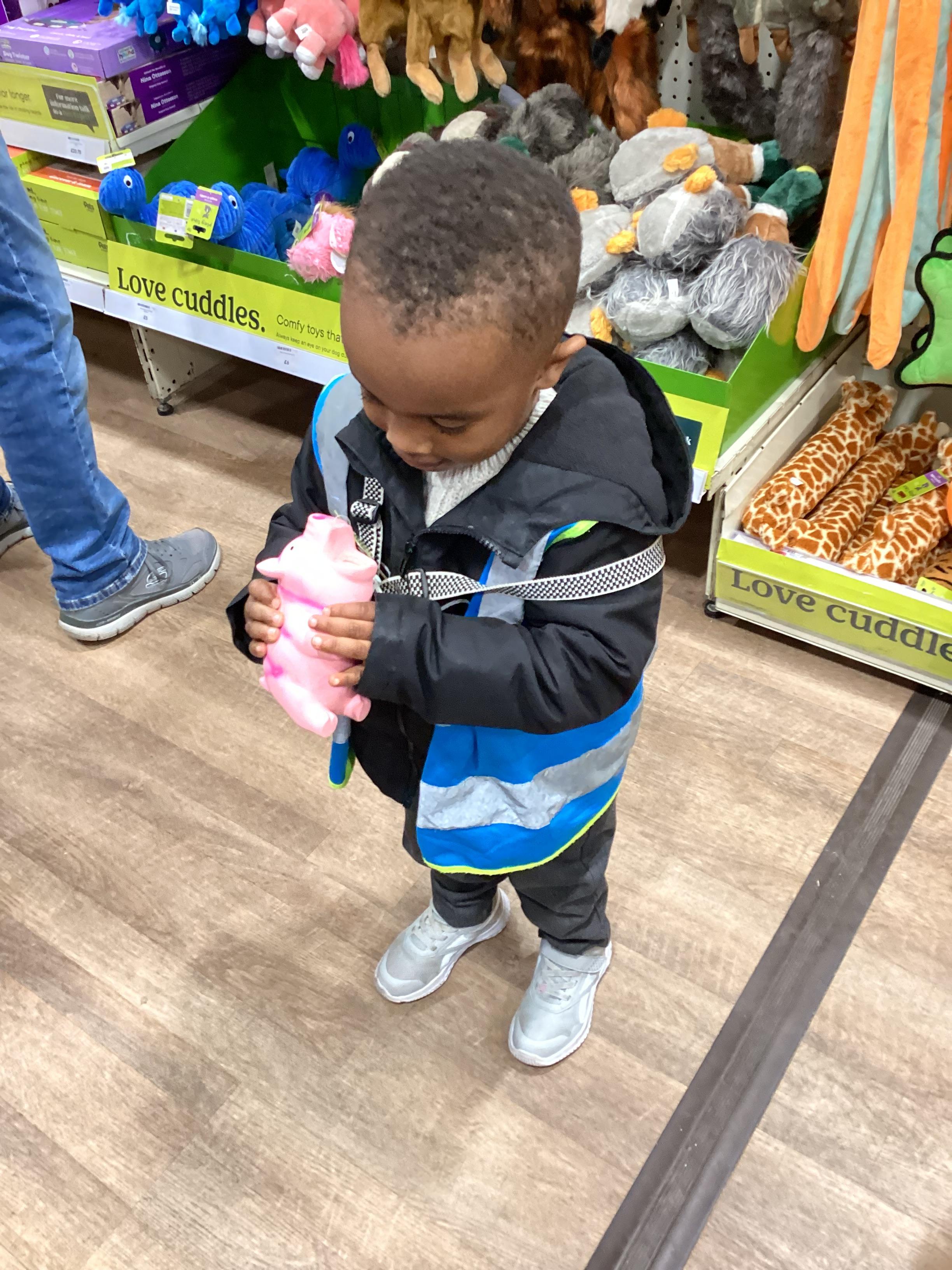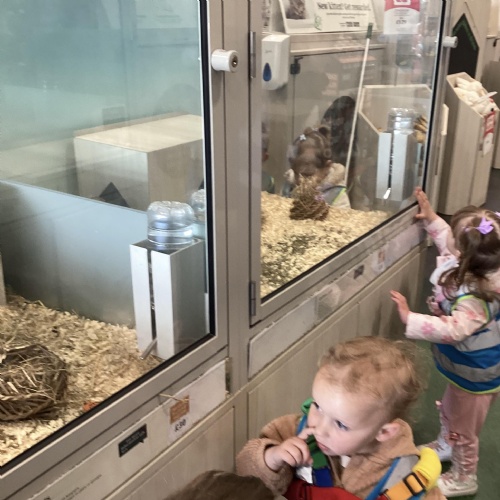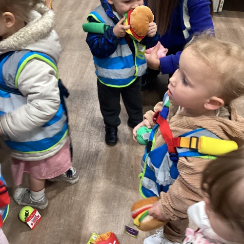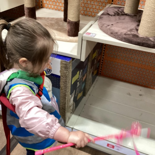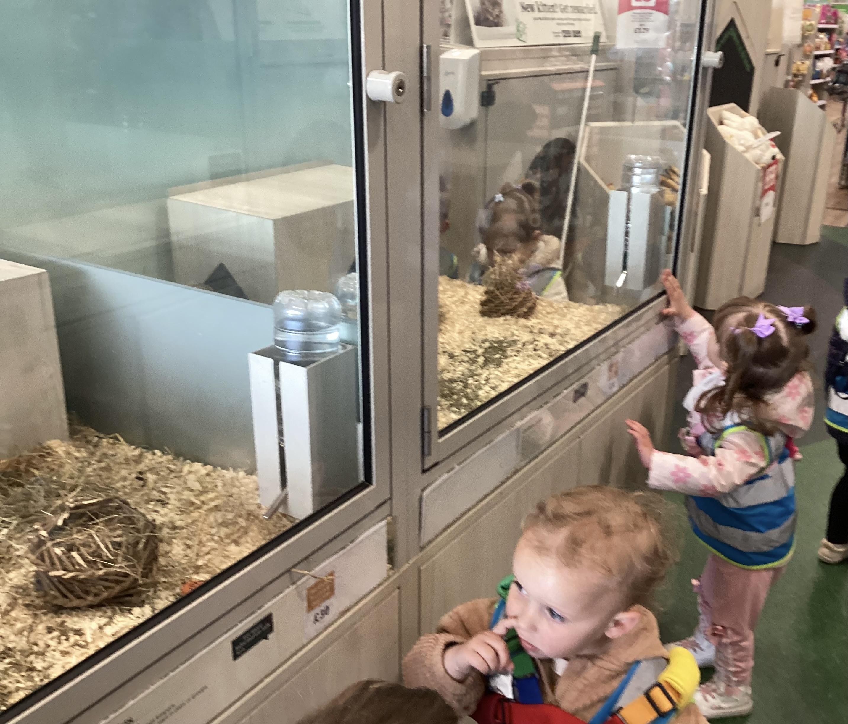 Today we walked down to the pet shop. The children enjoyed seeing all of the different coloured fish and exploring all of the toys.