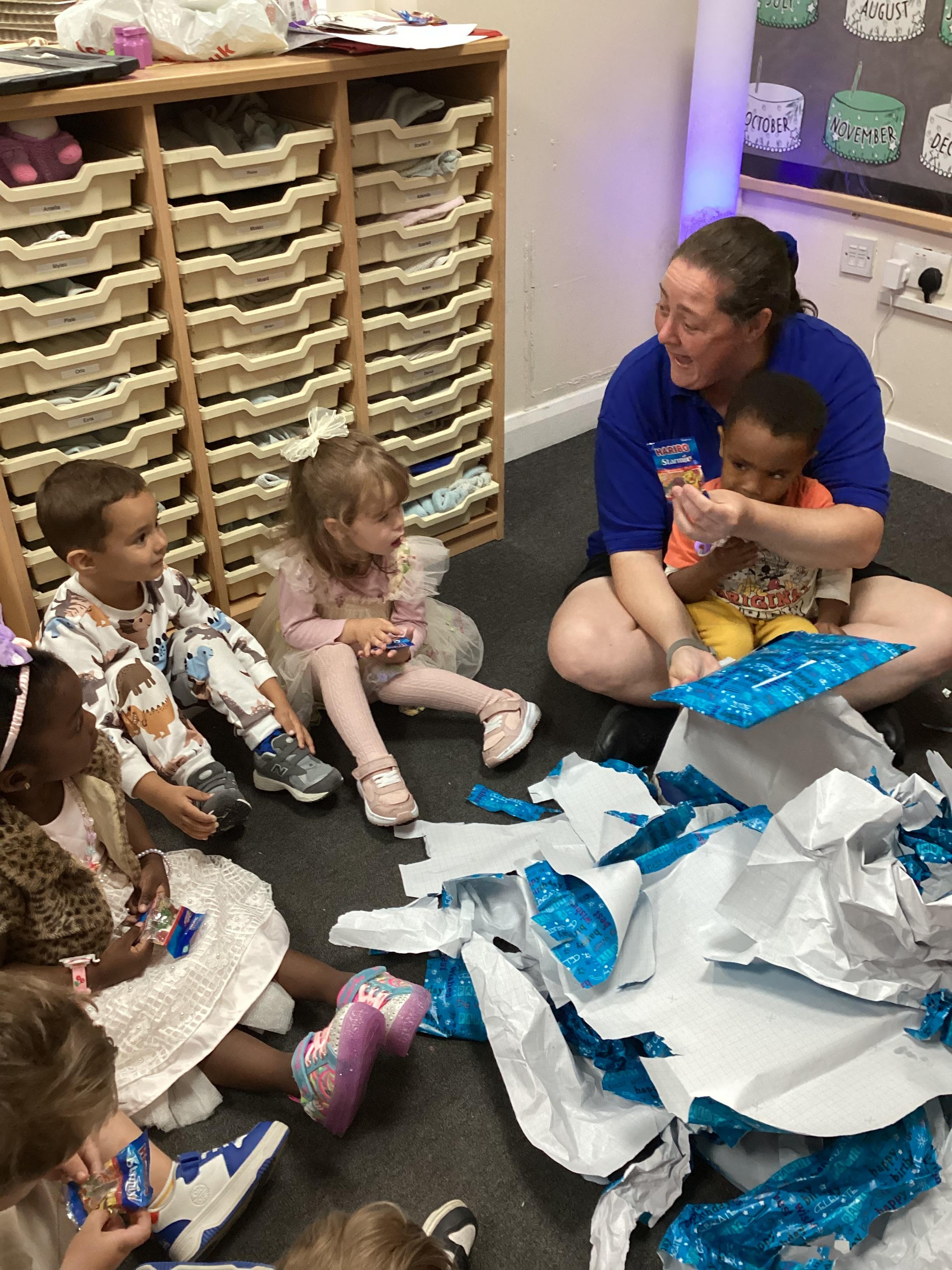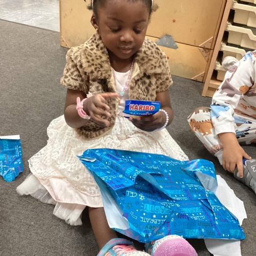 This week we have been celebrating the end of the year with a party. The children have loved showing us their dance moves as well as eating party food and playing pass the parcel.