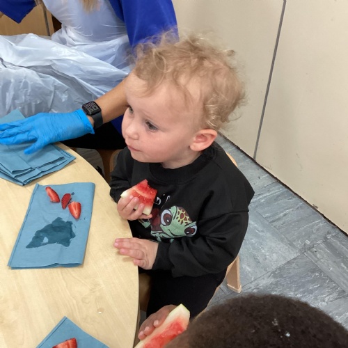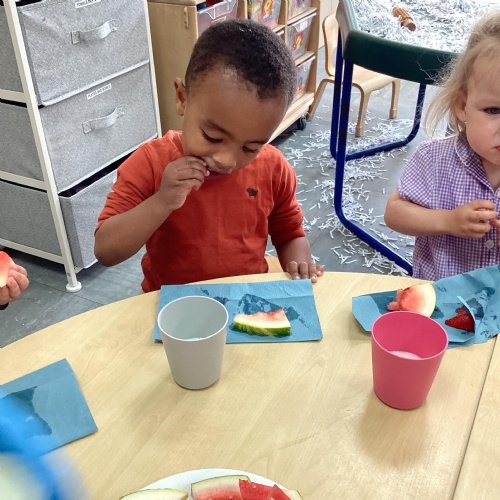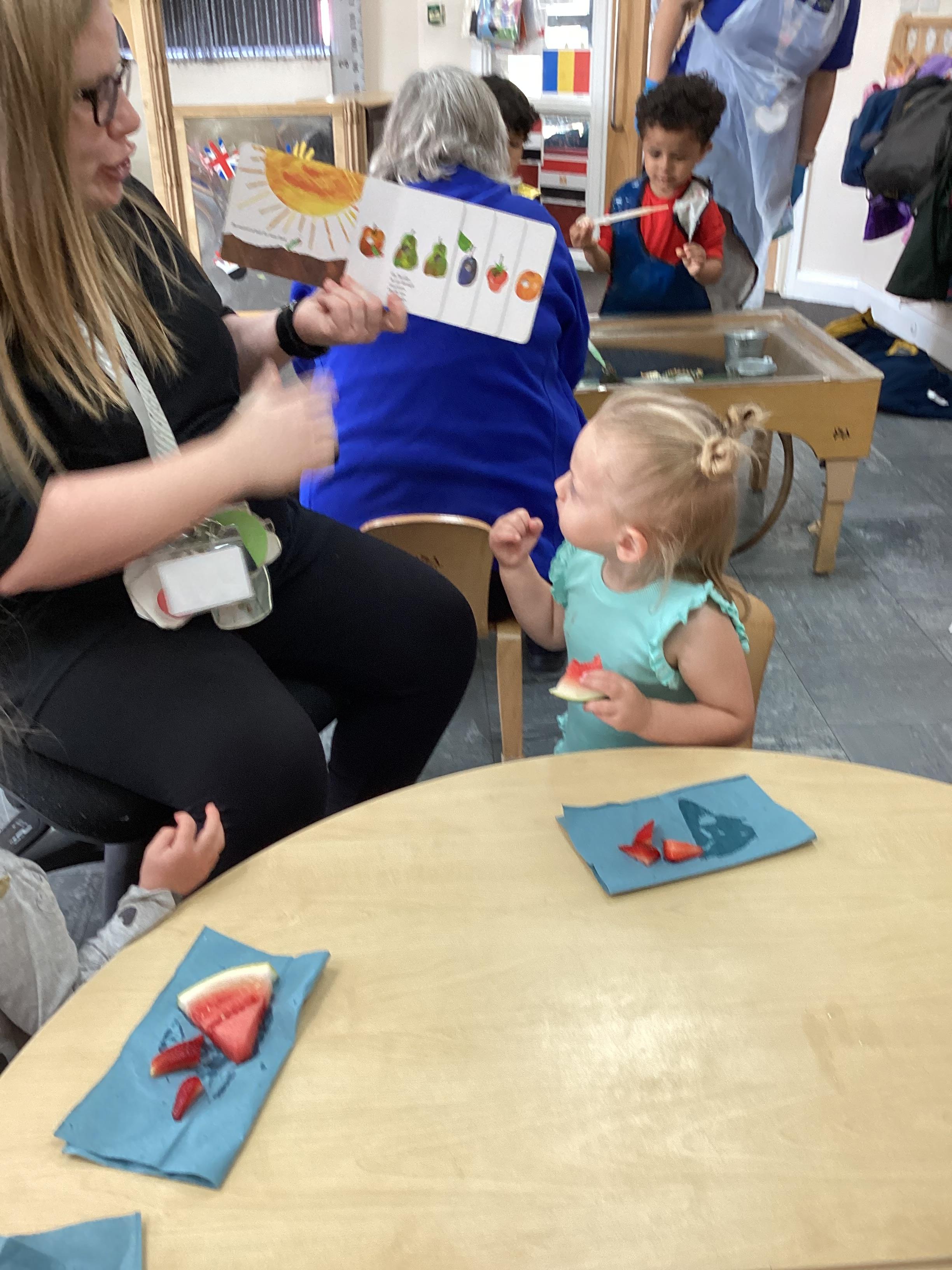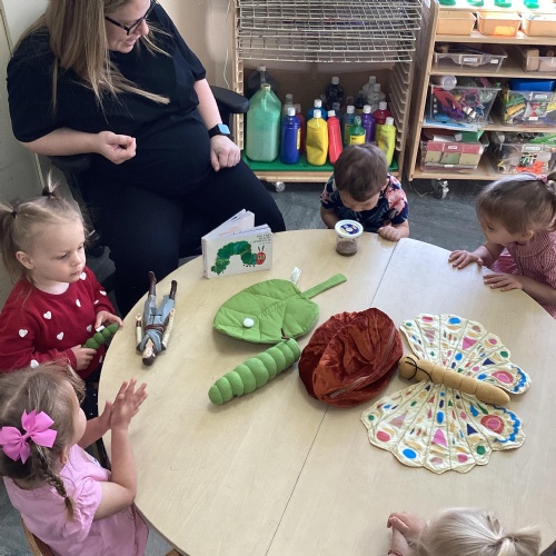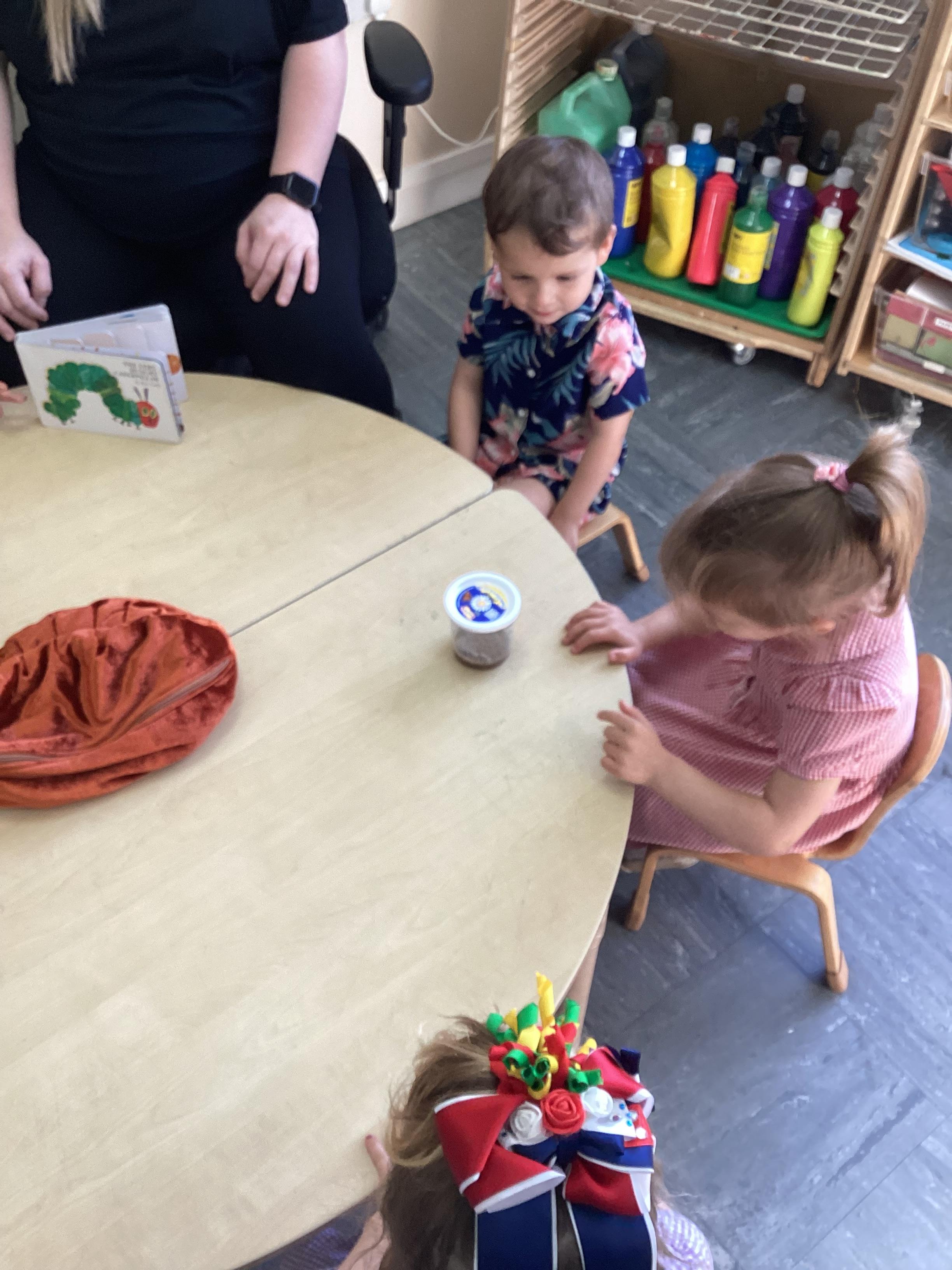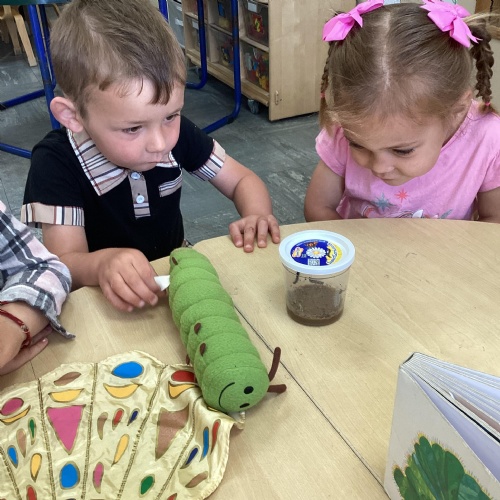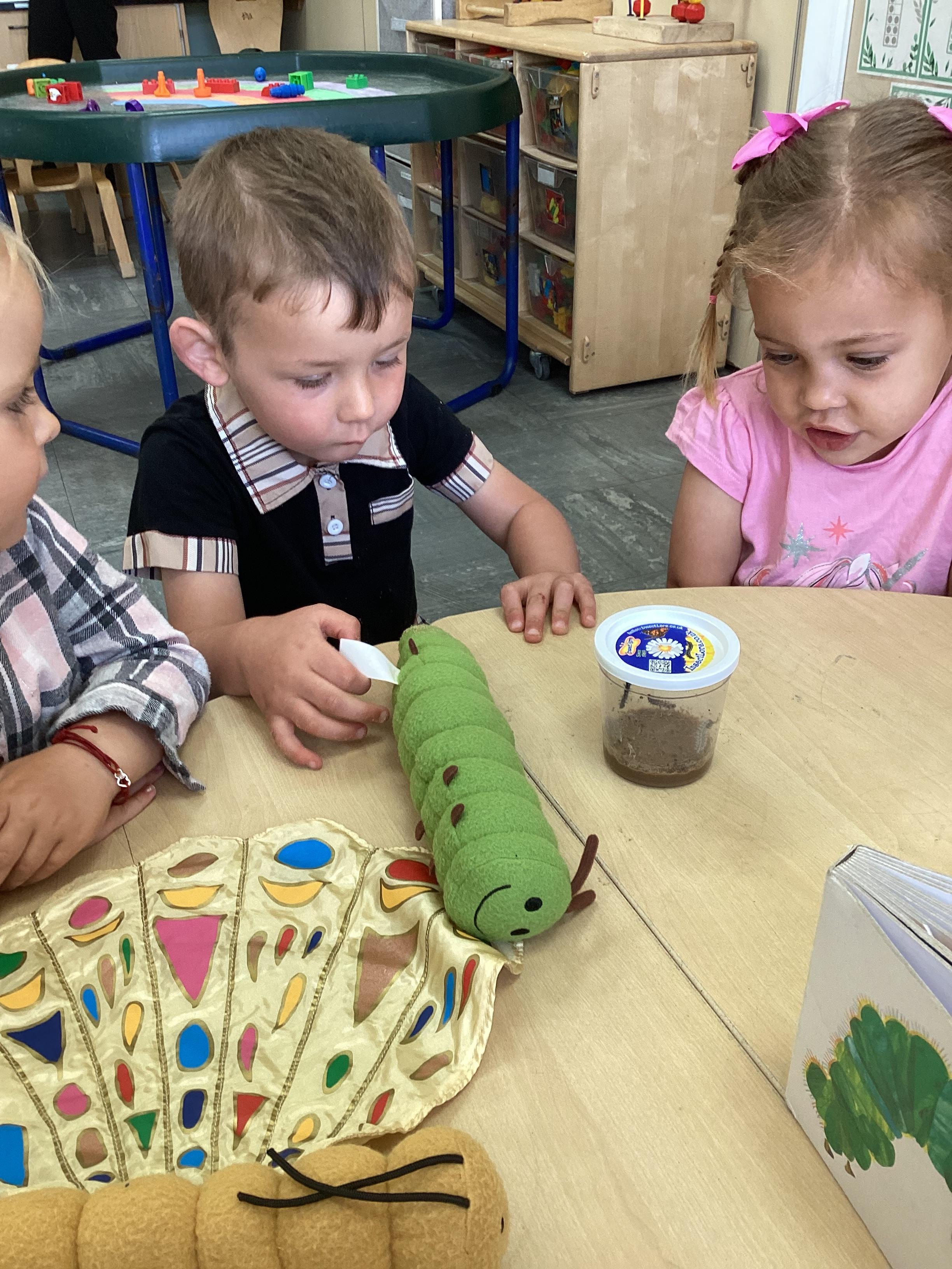 Our book of the month is the Hungry Caterpillar. We have been listening to the story and doing lots of fun activities to go with it. We have been eating lots of fruit that the Caterpillar ate, we have been buying our own fruit and we have been watching the caterpillars grow ready to turn in to a big beautiful butterfly.