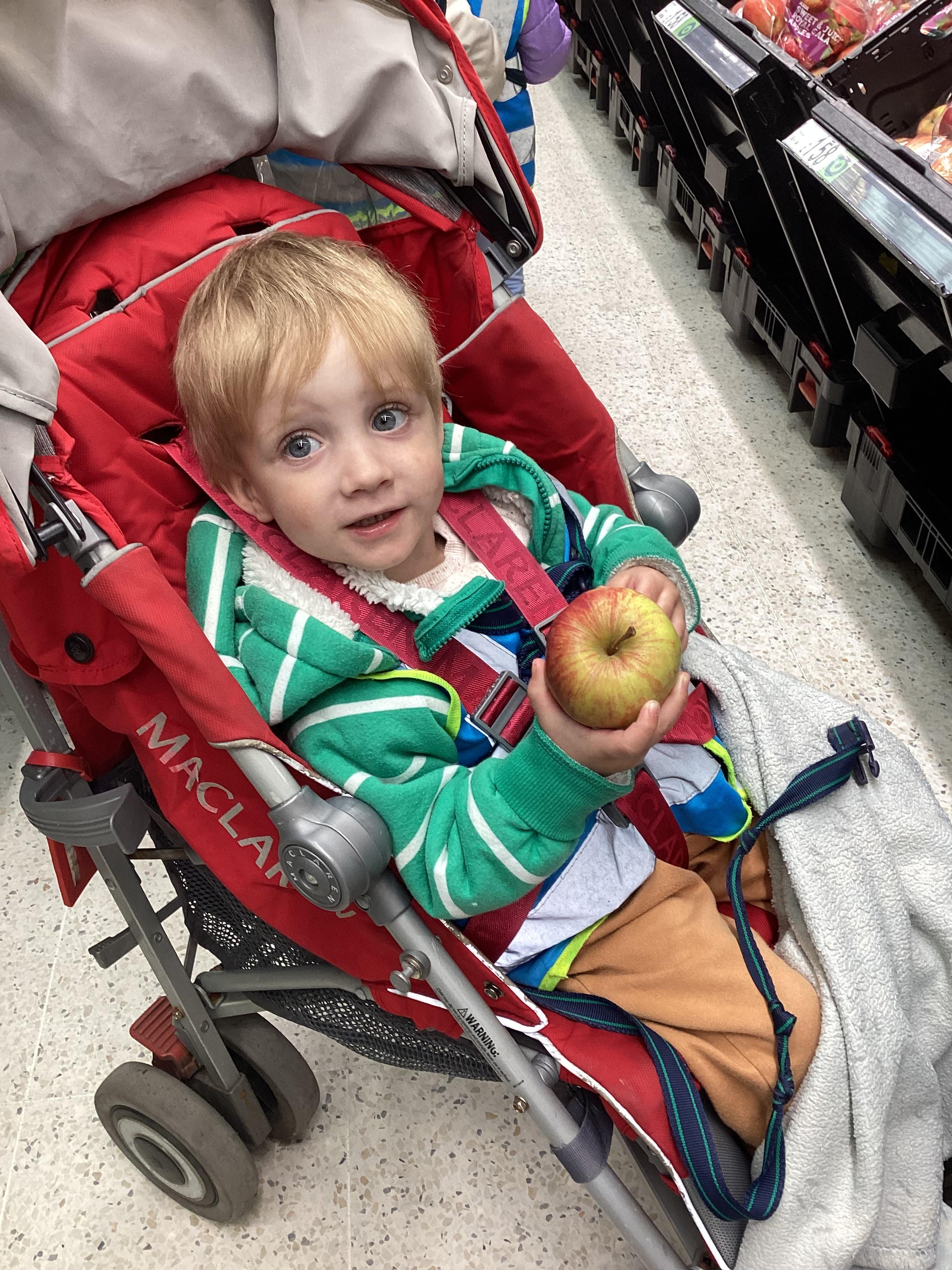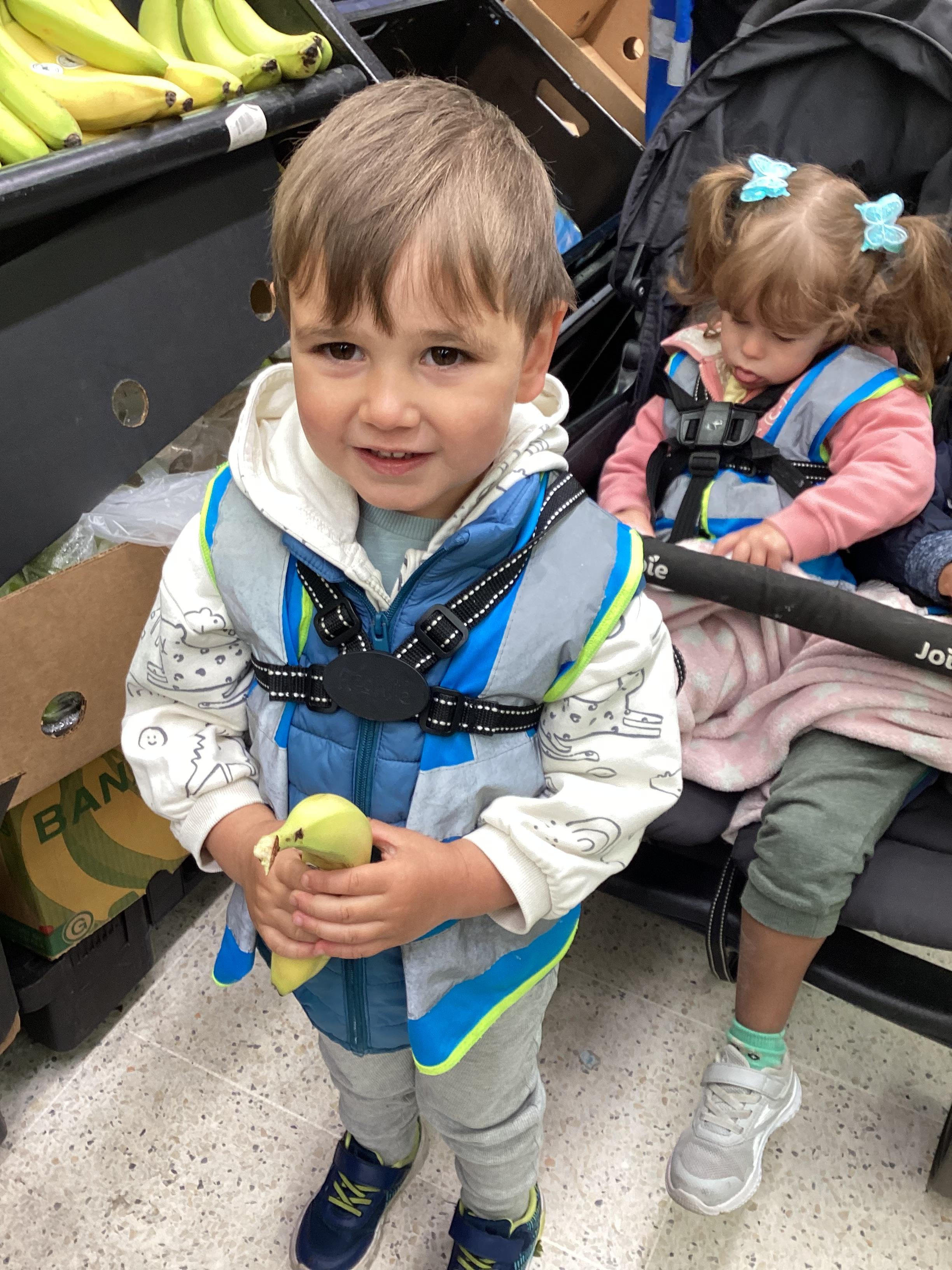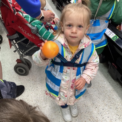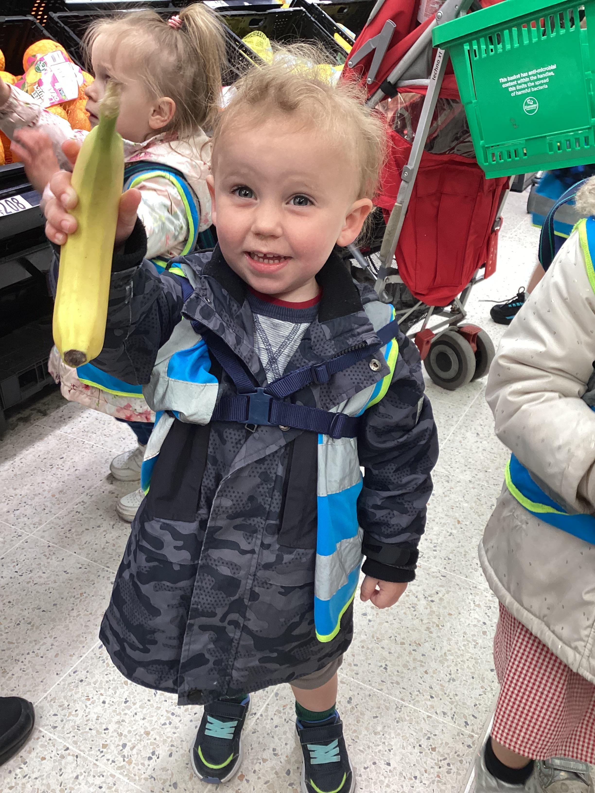 Today we walked down to Asda to choose our own fruit to eat as part of our Hungry Caterpillar theme. The children chose their own piece of fruit, weighed them on the scales and then they scanned them at the till. The children were very well behaved and they had a great time.