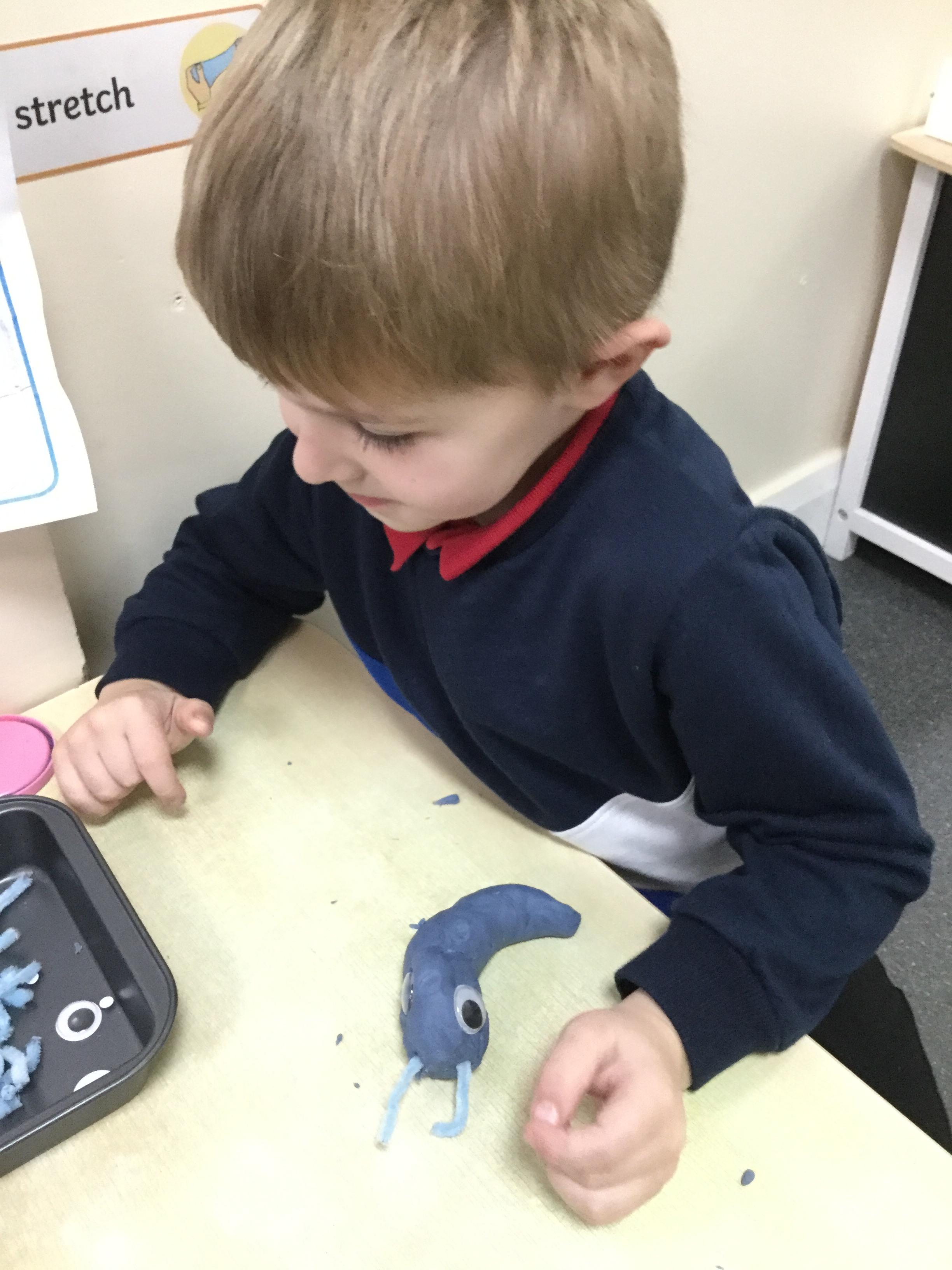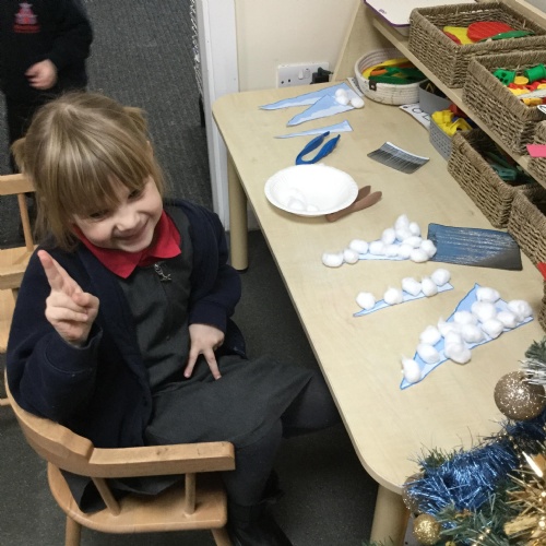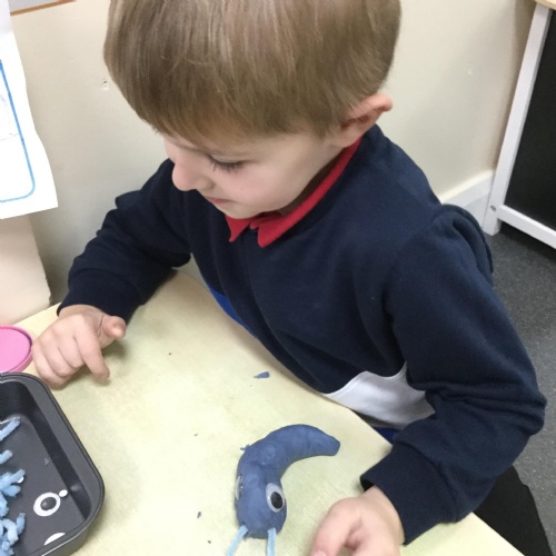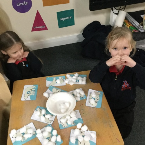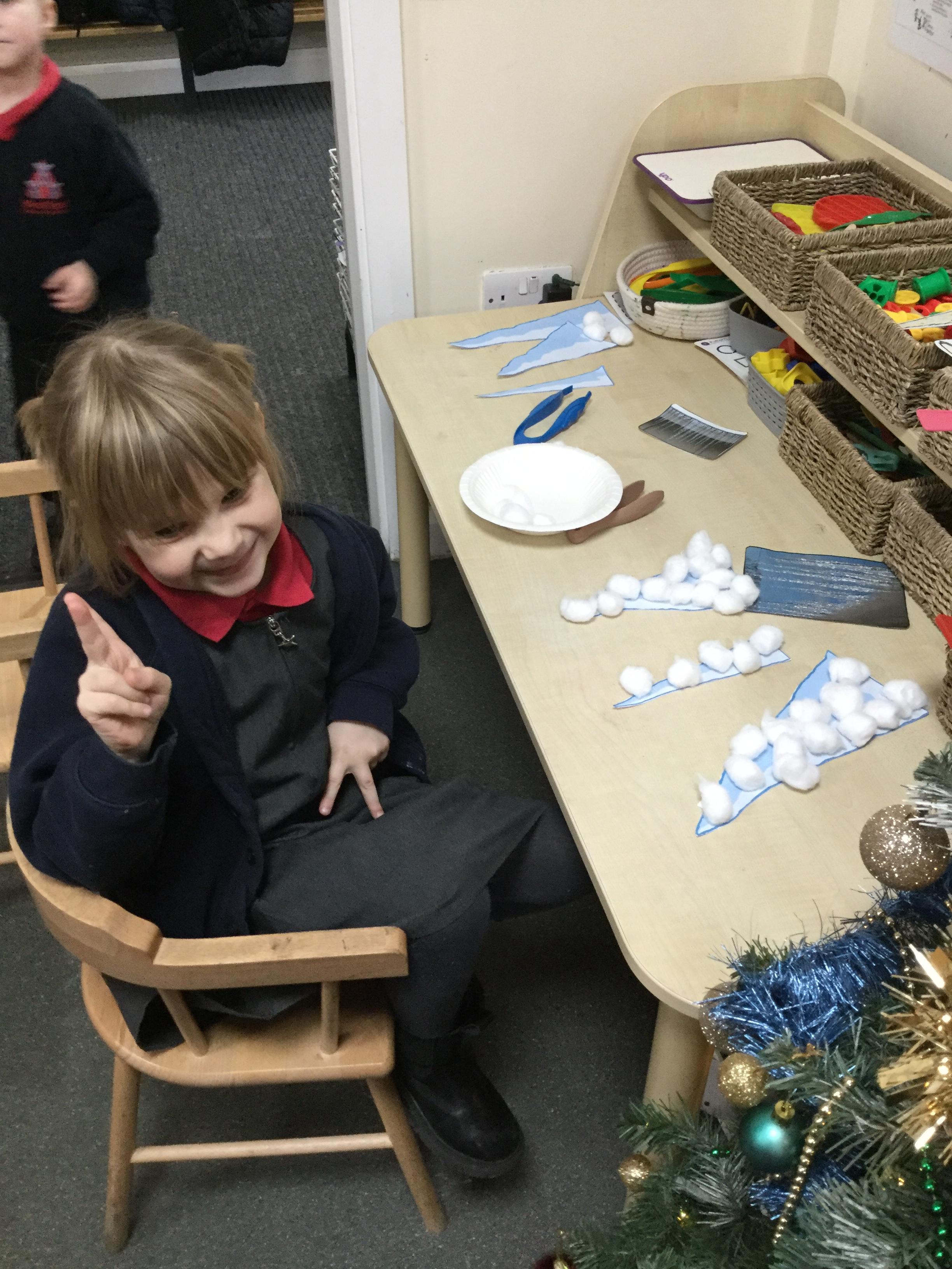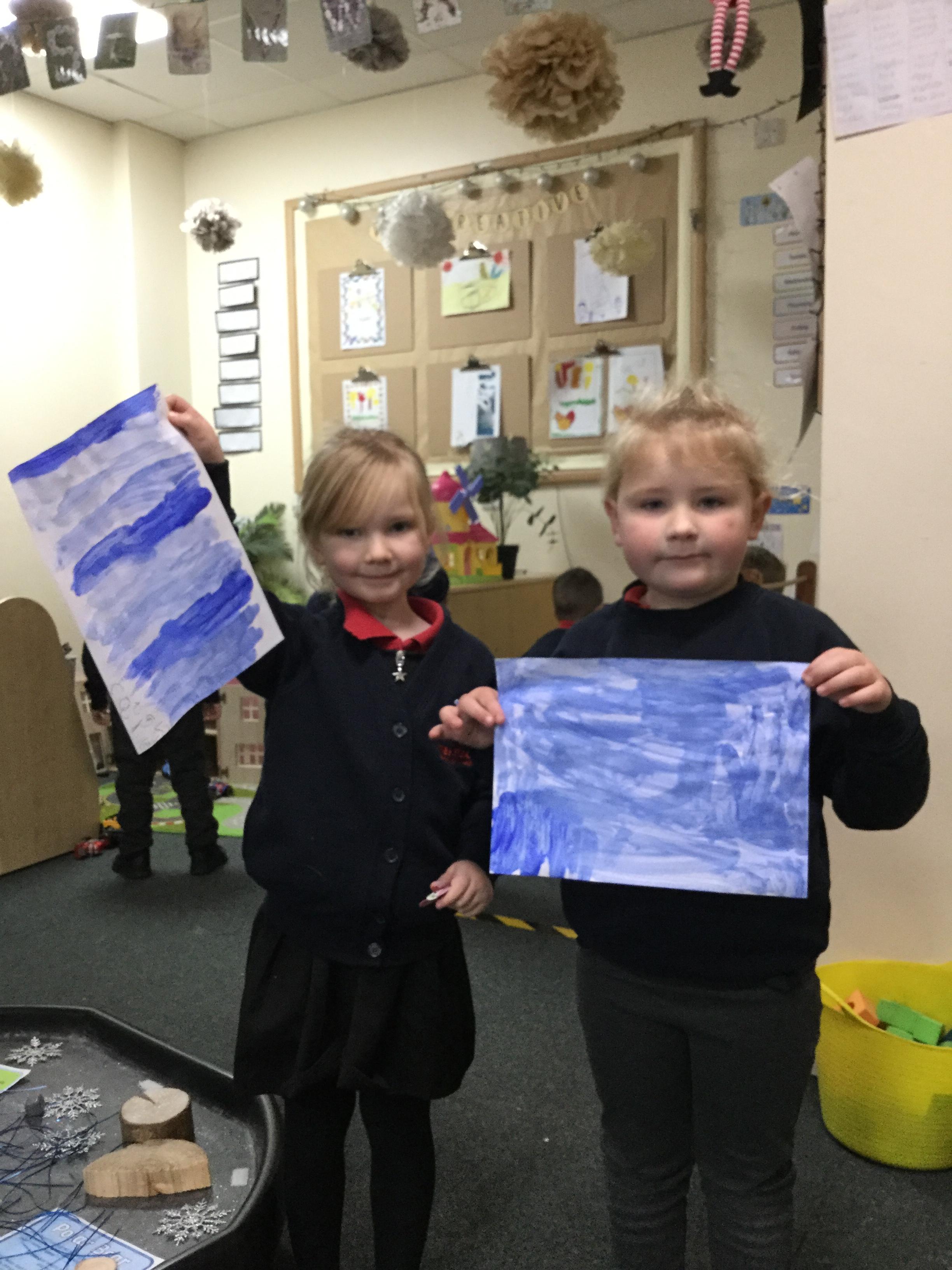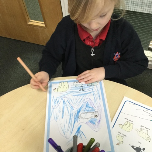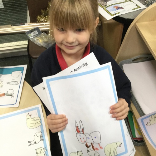 We've had lots of activities in our classroom based on the Arctic and the animals that live there. We've drawn Arctic animals, mixed blue and white paint to make different shades of cold colours. We've looked at pictures of winter trees and made our own pictures. We've also been very creative with the play dough and made our own Arctic animals.
