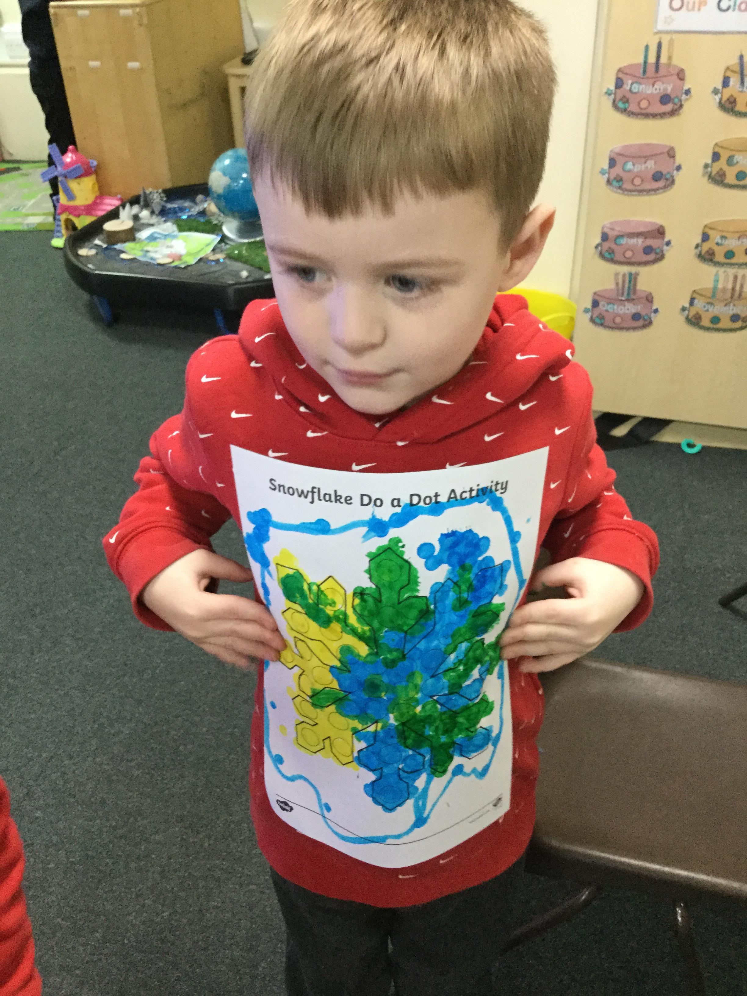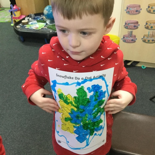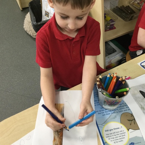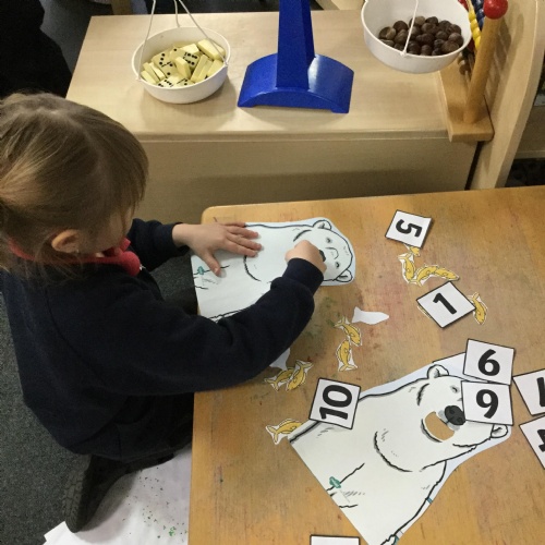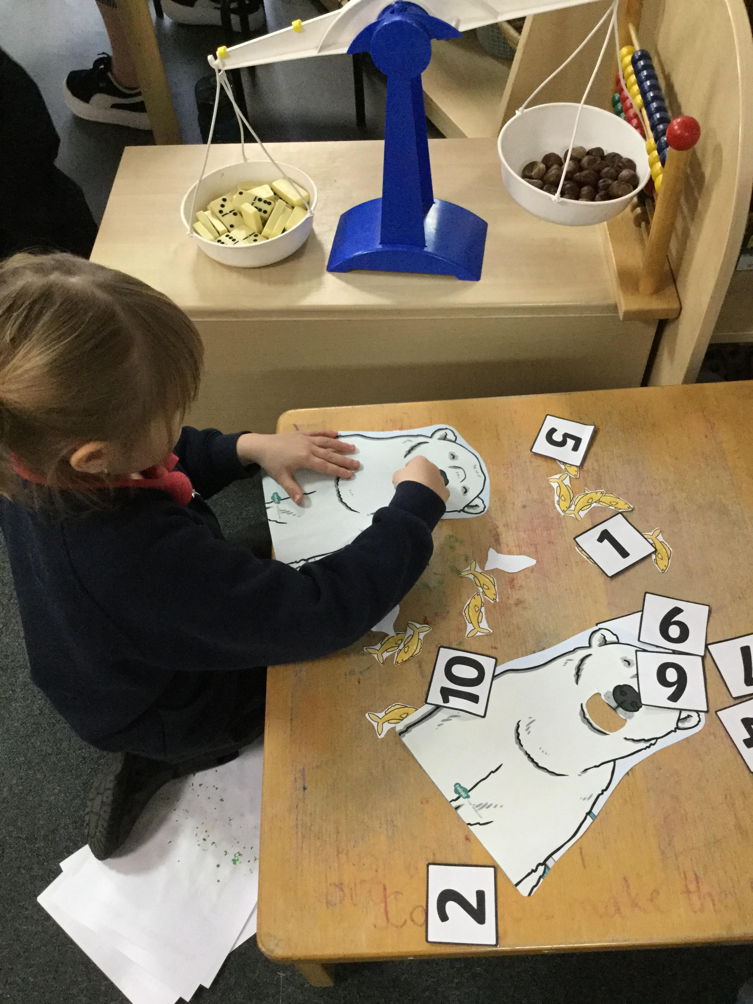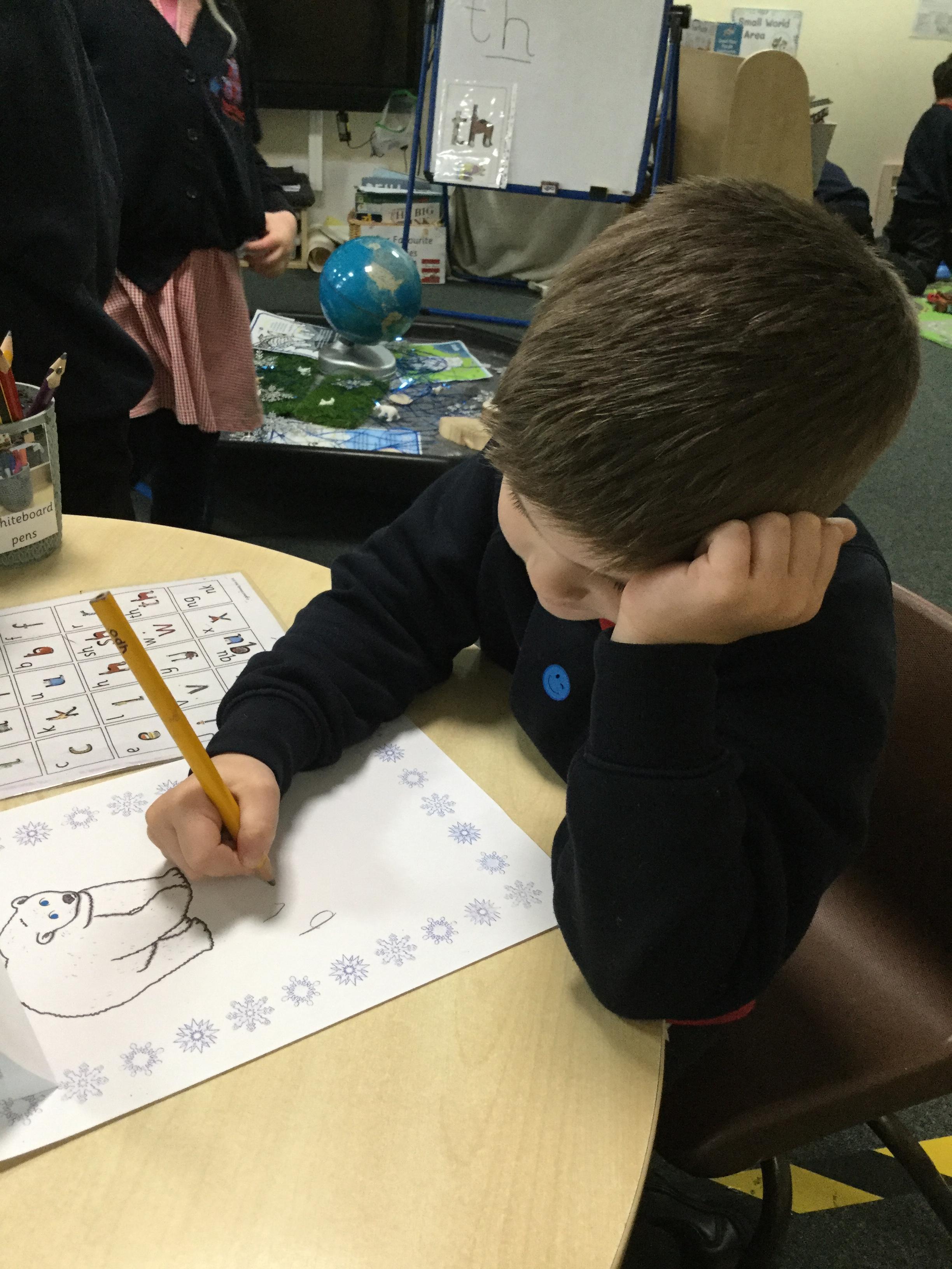 We've had lots of activities in our classroom based on the Arctic and the animals that live there. We've drawn Arctic animals, mixed blue and white paint to make different shades of cold colours. We've looked at pictures of winter trees and made our own pictures. We've also been very creative with the play dough and made our own Arctic animals.