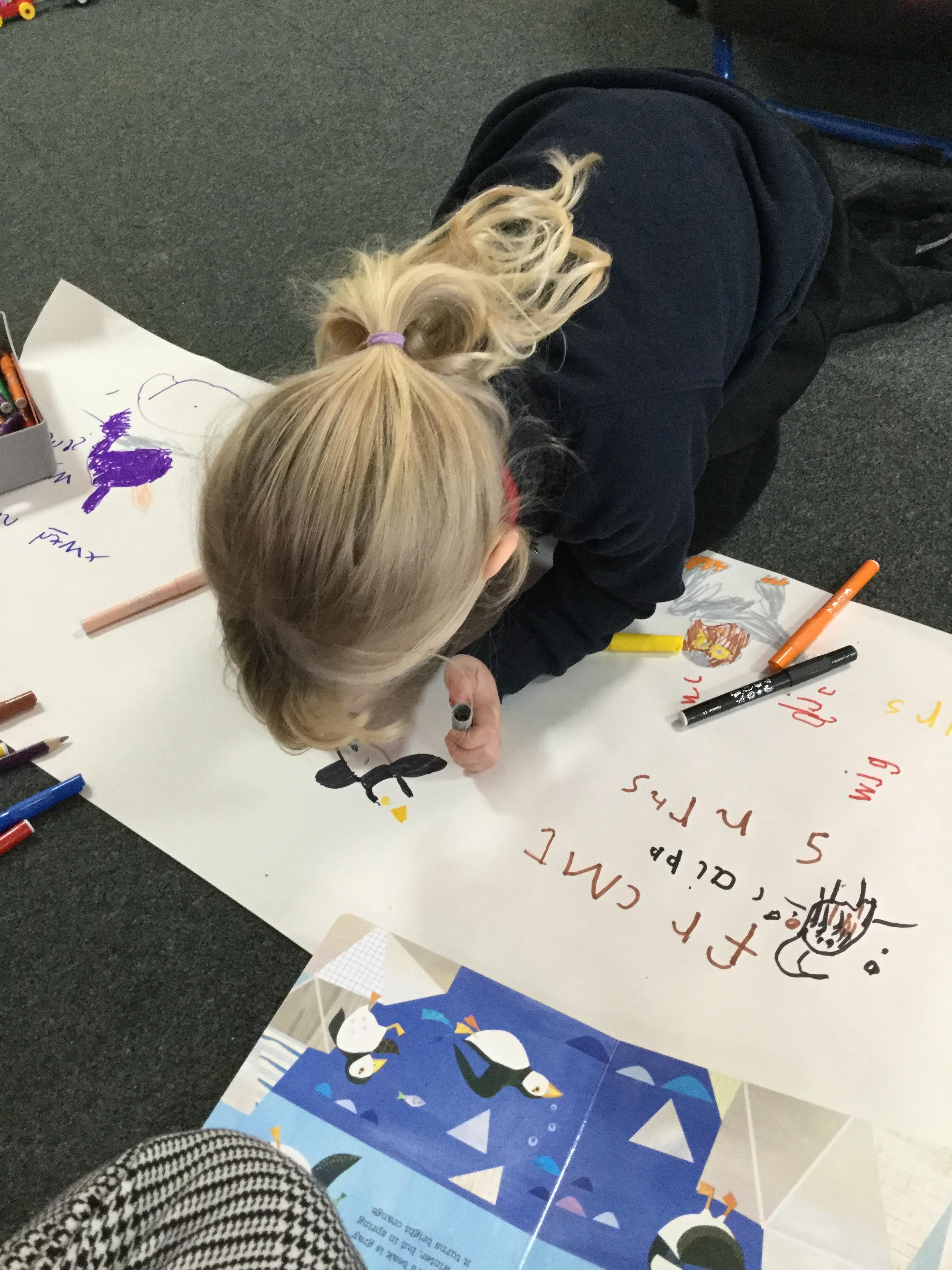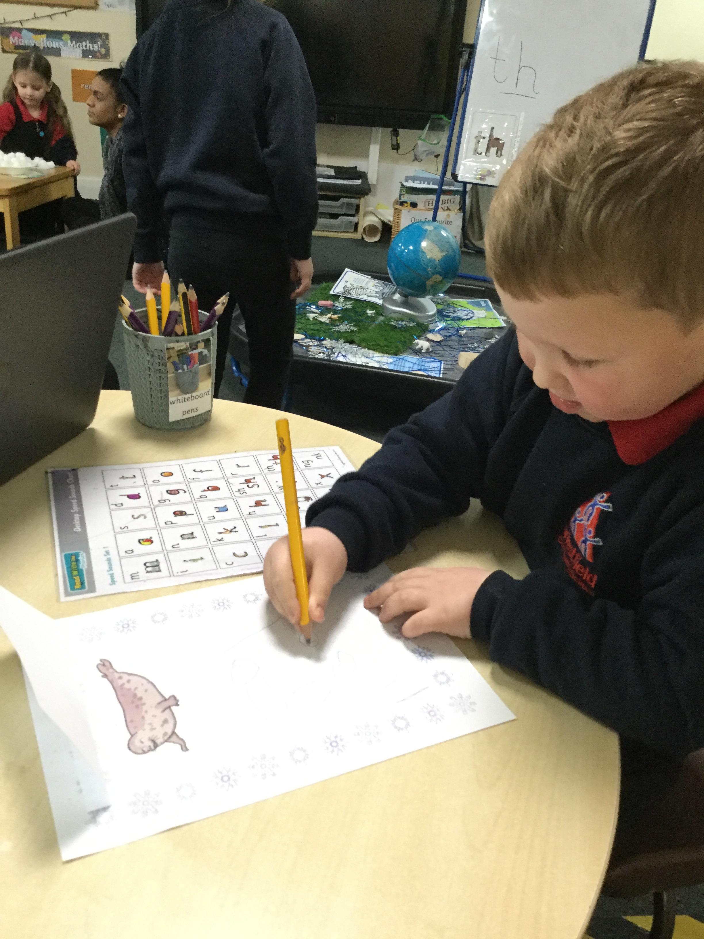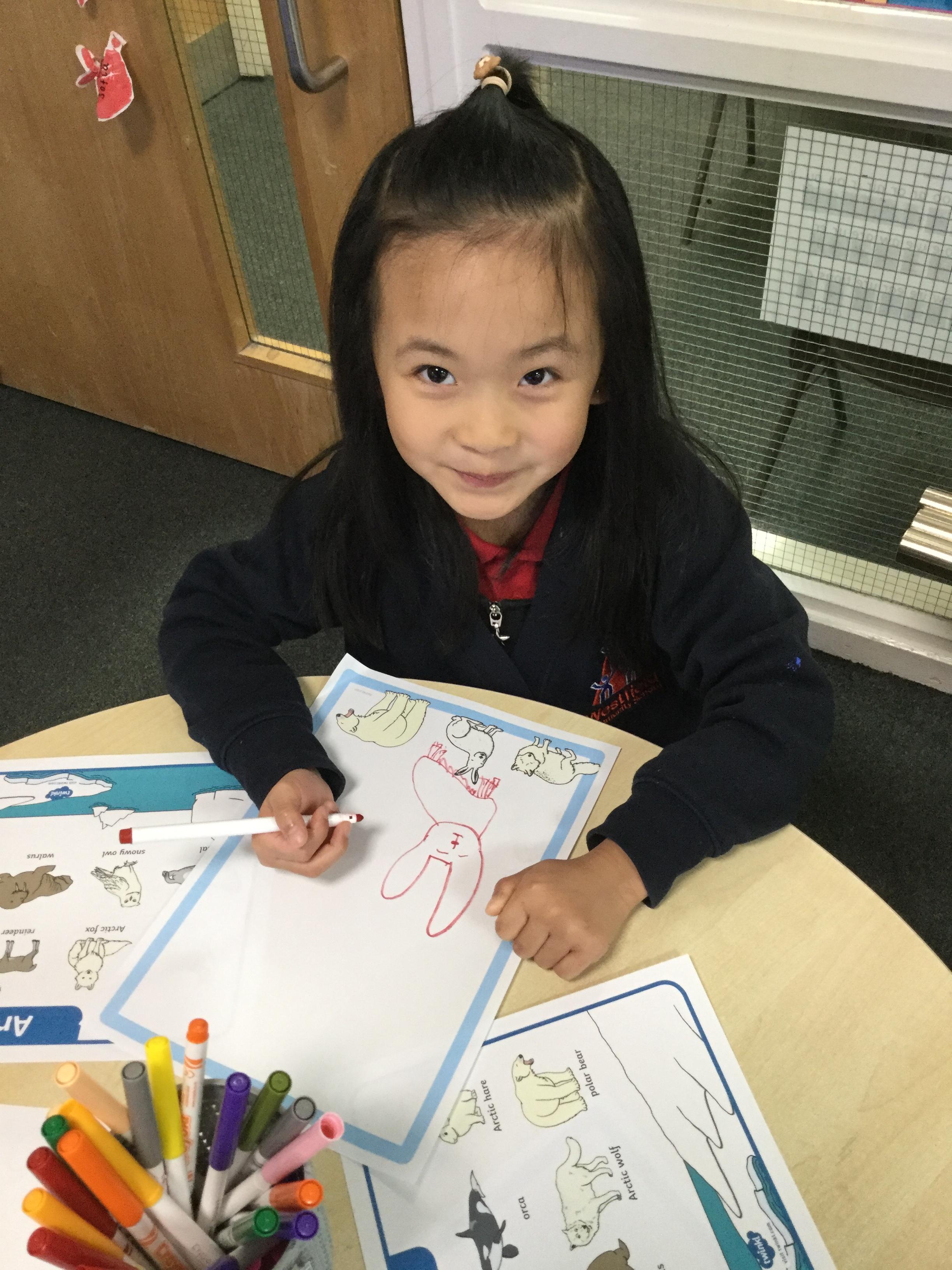 Welcome to our blog, we've had an icy week working with the book 'Arctic Animals' by Jill McDonald. We've found out about lots of animals that live in the Arctic eg. narwals, polar bears, Arctic foxes. Did you know that penguins don't live in the Arctic? They live in the Antarctic. In literacy, we looked at animals frozen in ice and thought of the best ways to get them out, we thought of hot water, a hair dryer, the sunshine or a hammer. We have drawn animals and written what they are called, we have looked at pictures and written about the animals and what they look like.