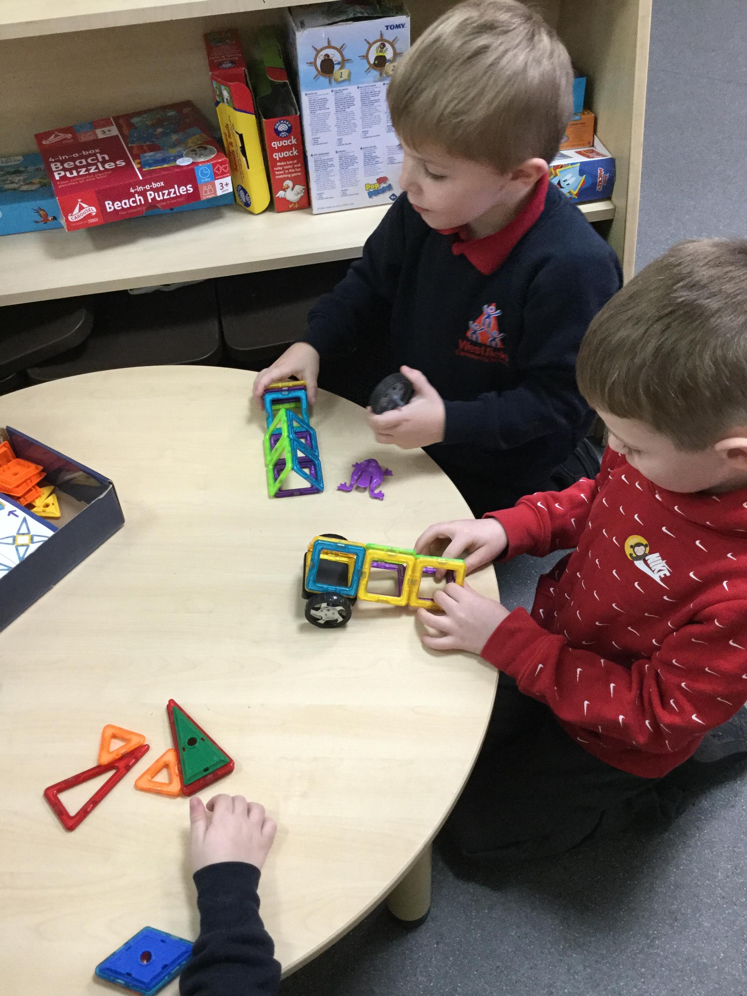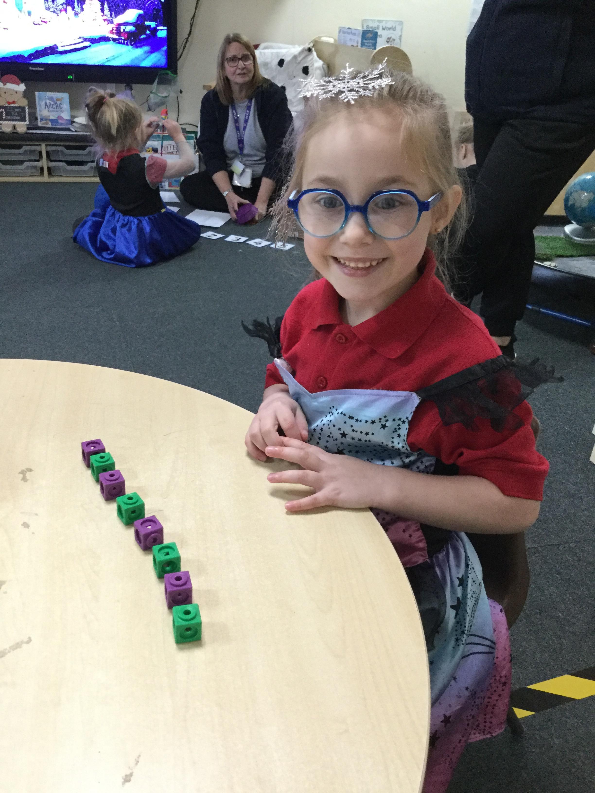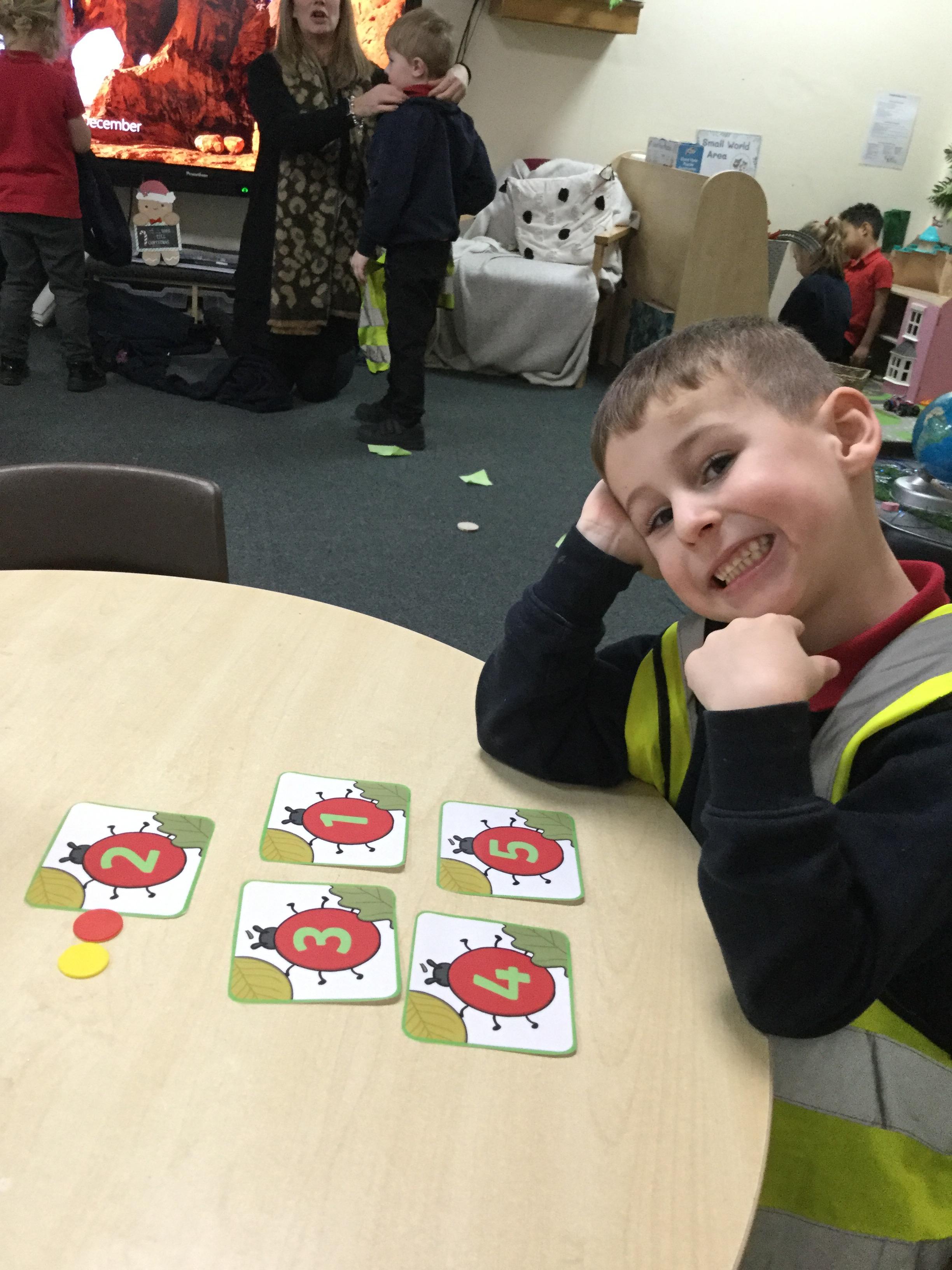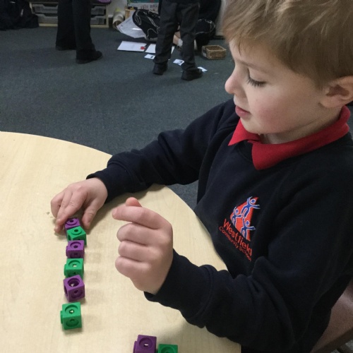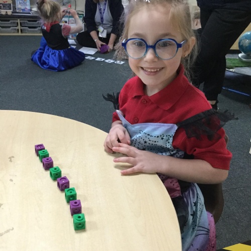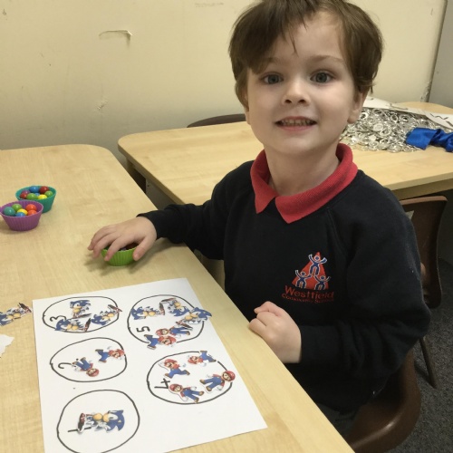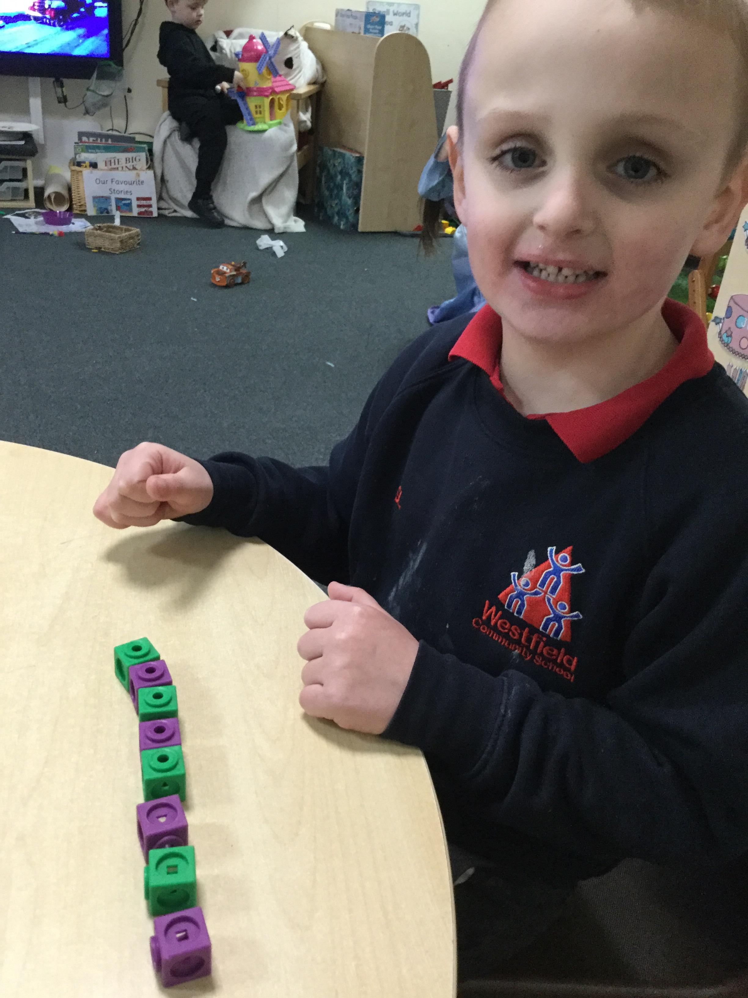 In maths, we have been working with numbers 4 and 5, we have subitised, sorted amounts, looked at numerals and matched quantities to it. We have played fast fingers to match an amount and showed the correct number of fingers on one hand. Using coloured blocks we made repeating patterns. We have looked at circles and squares, we sorted shapes and described them. We looked at shape pictures and looked for circles and triangles in the pictures.