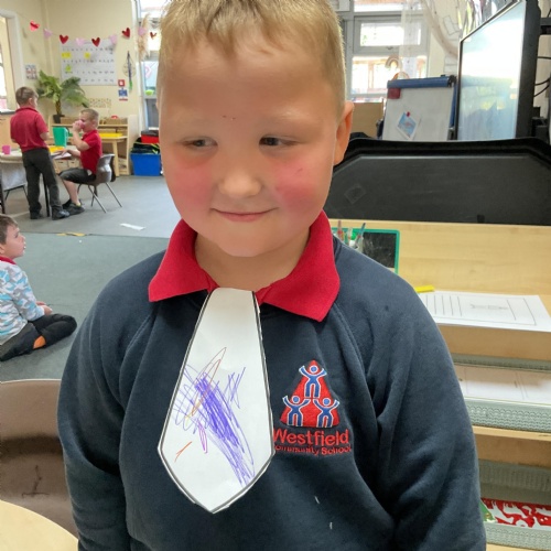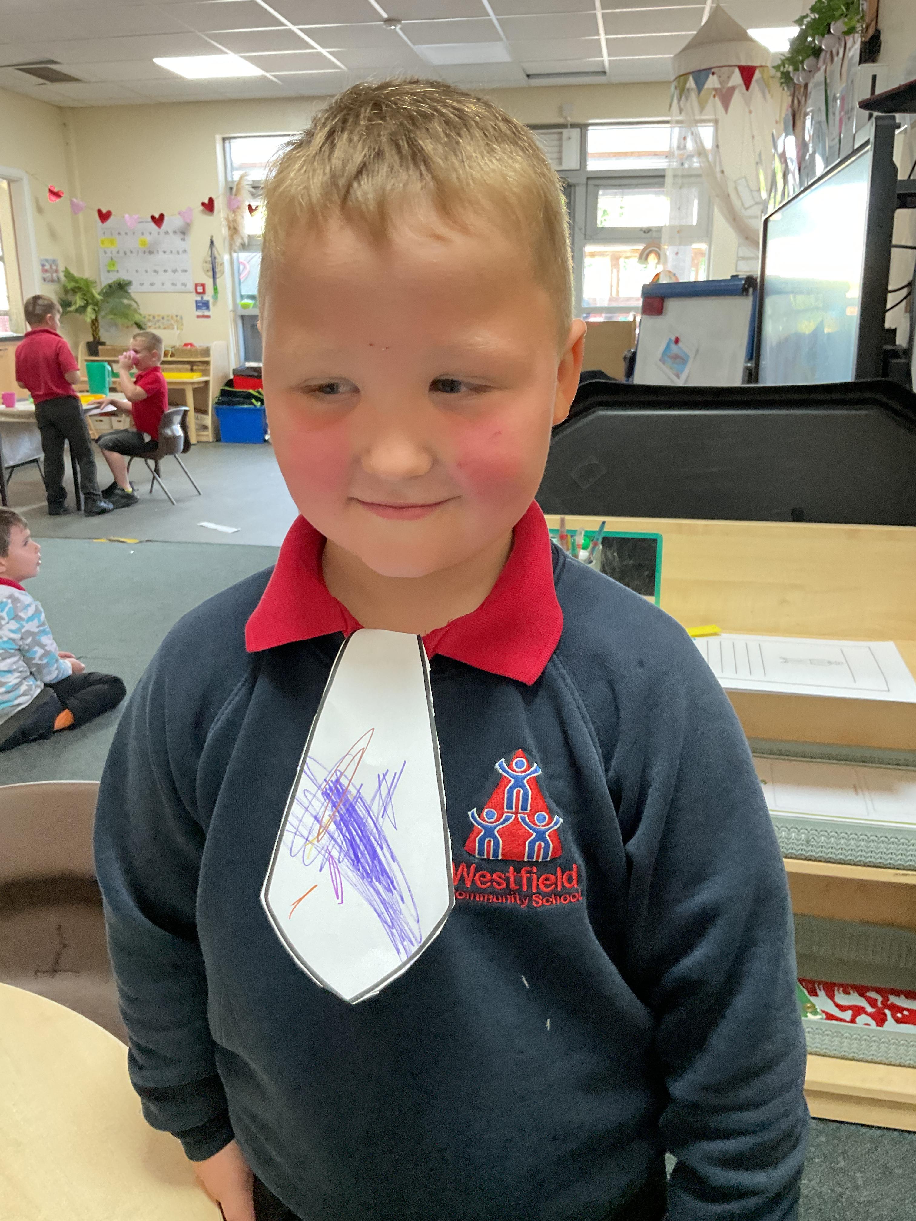 In the story, George got a new tie. We enjoyed designing our own ties and some of us wore them!