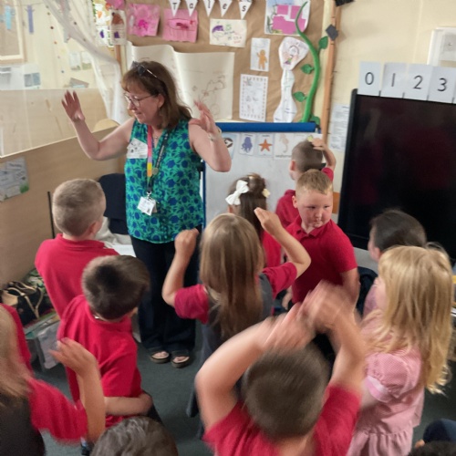 On Wednesday, we welcomed back the lovely Mrs Shirley for music.