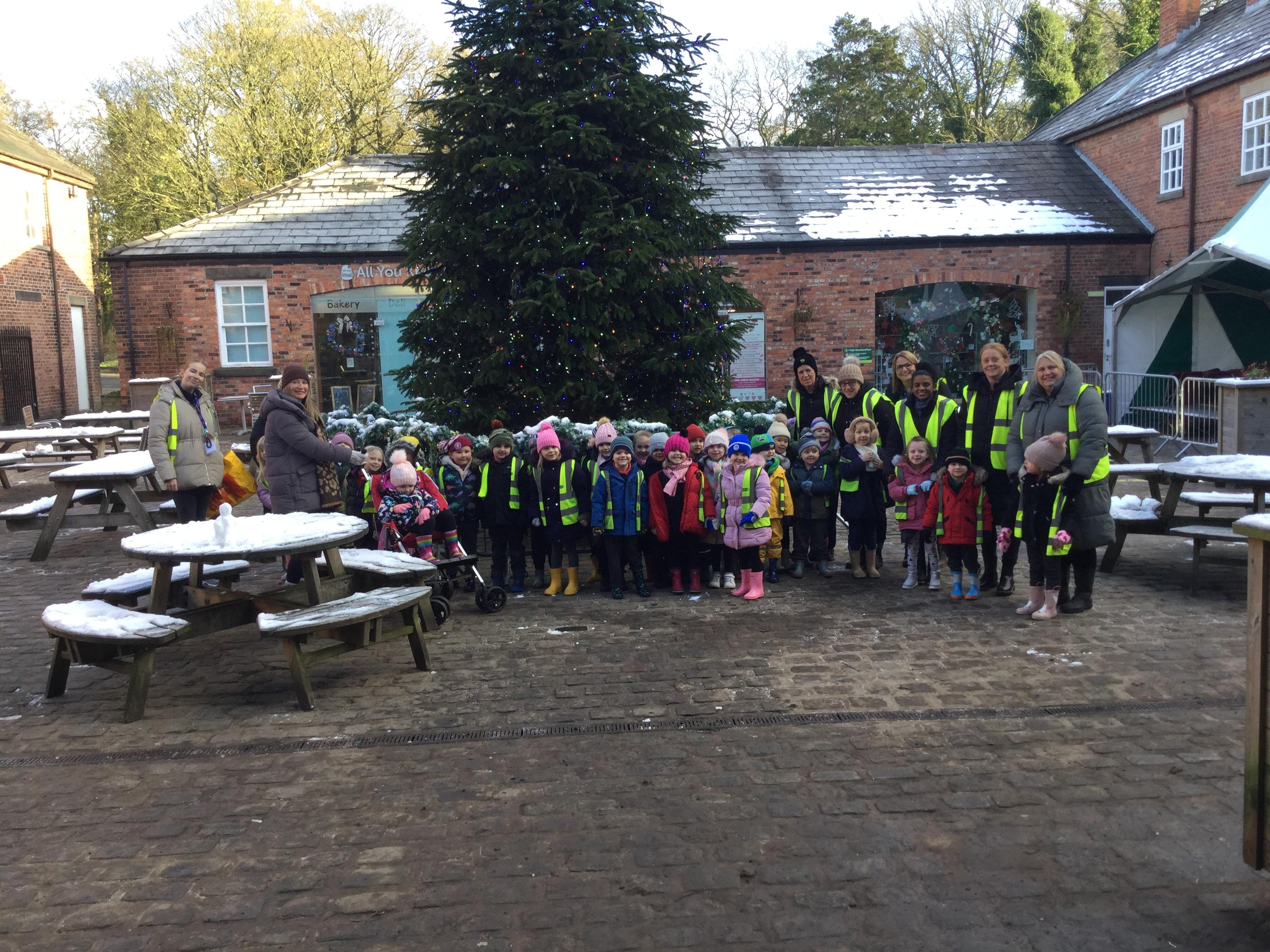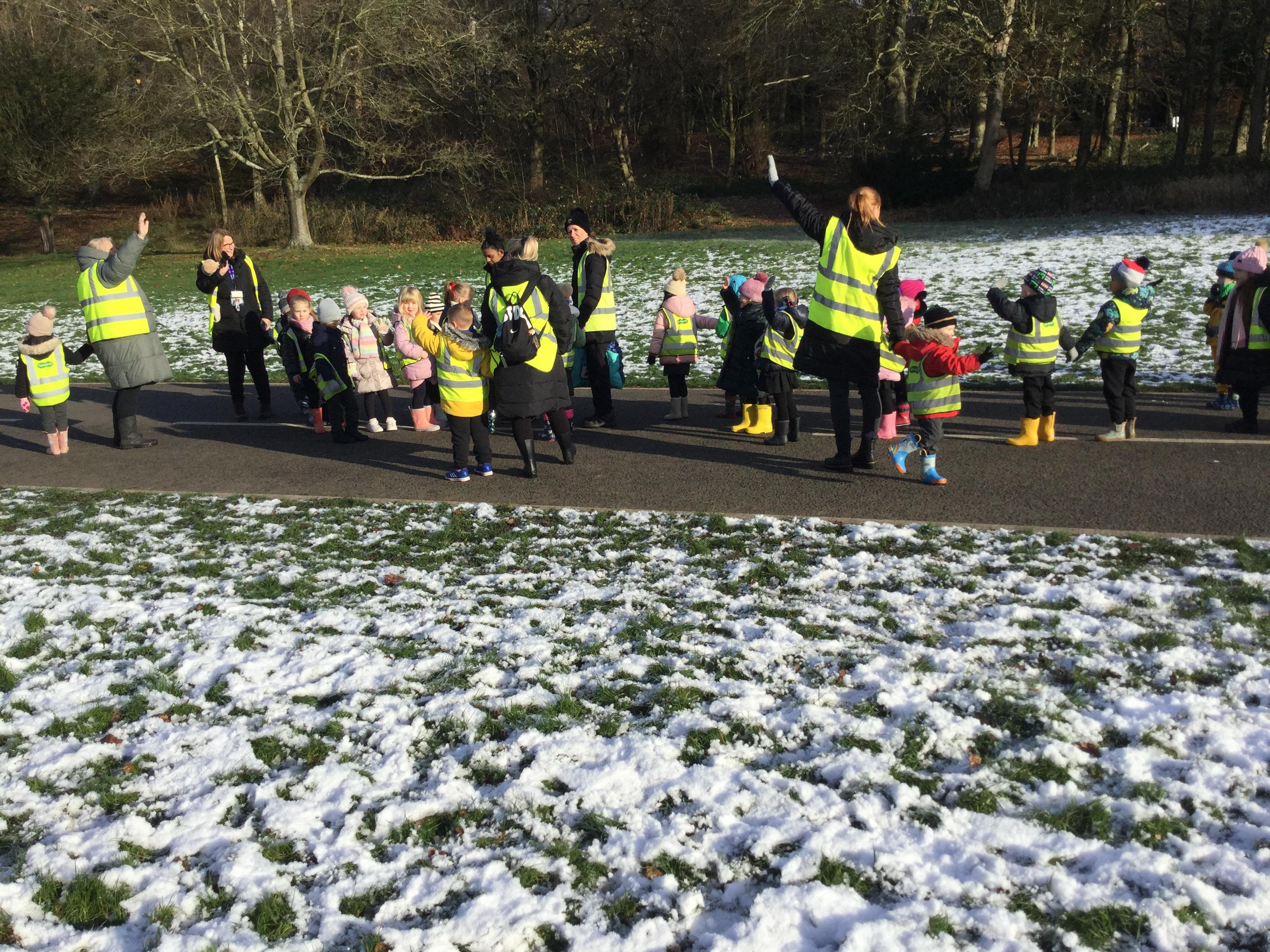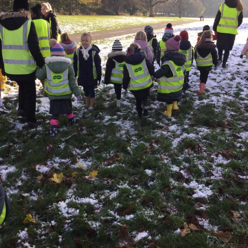 Welcome to the blog. We've had a great week, we were very excited to go on a trip to Haigh Hall on Thursday, especially as it had snowed. We all loved the bus ride and enjoyed walking through the grounds. We looked at the autumn trees, the leaves and loved walking in the snow on the grass. It was lovely to see the Christmas tree in the courtyard. We were all wrapped up in very warm clothes as it was a cold and frosty morning.
