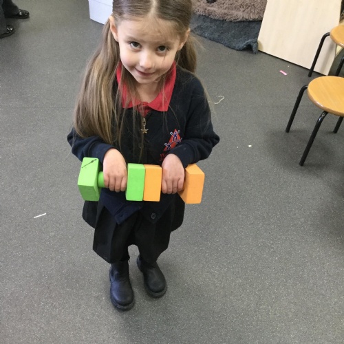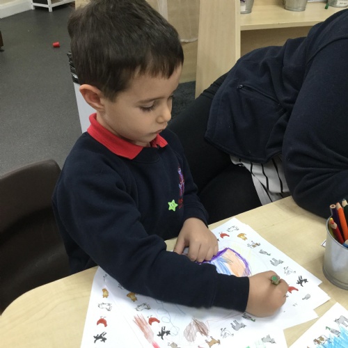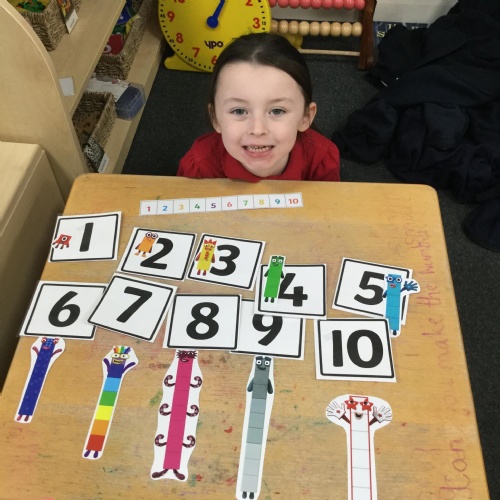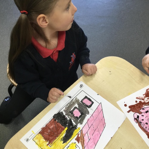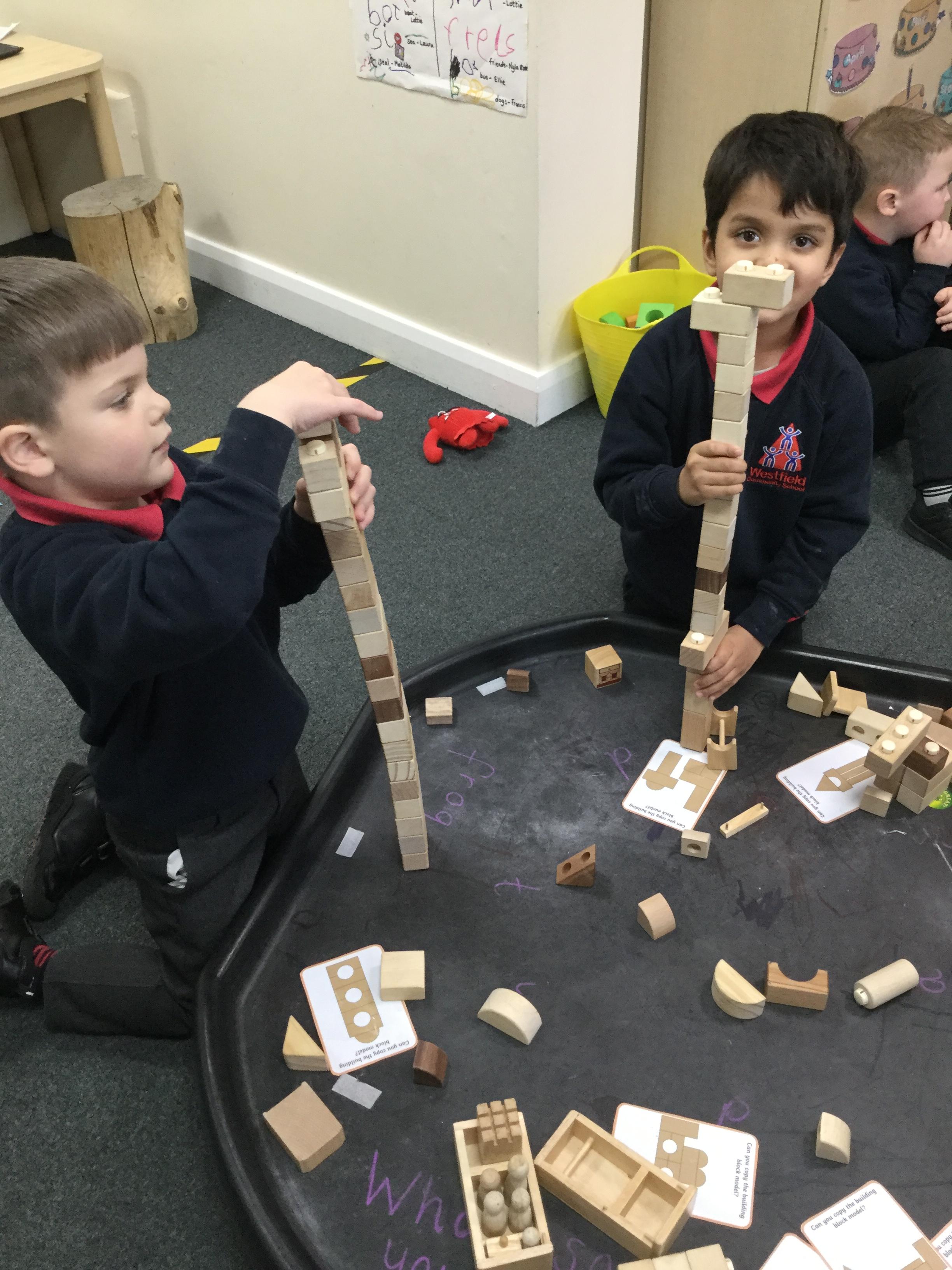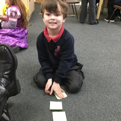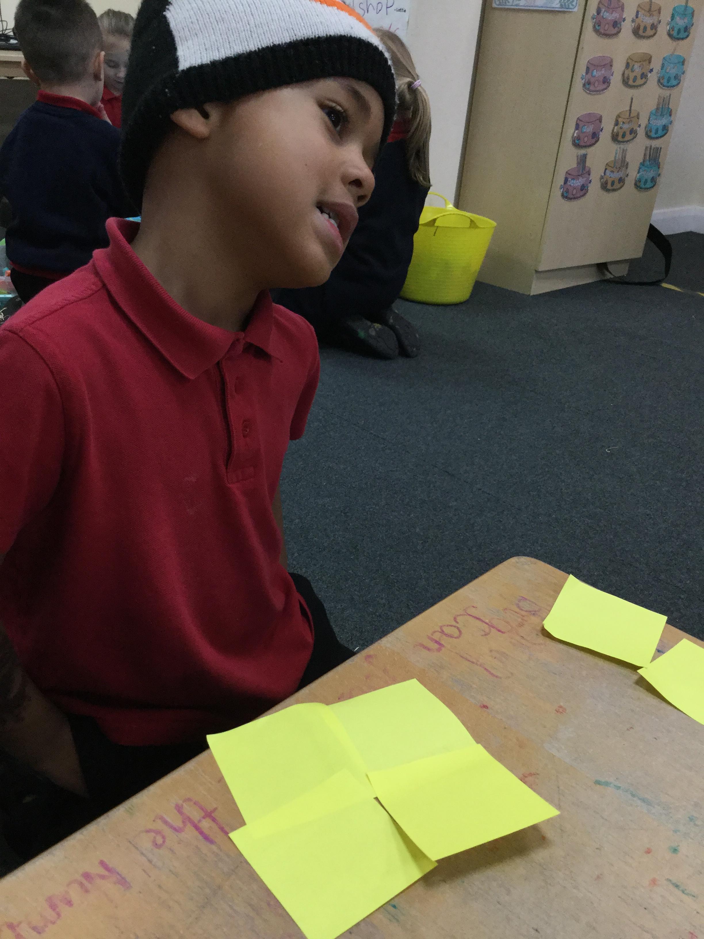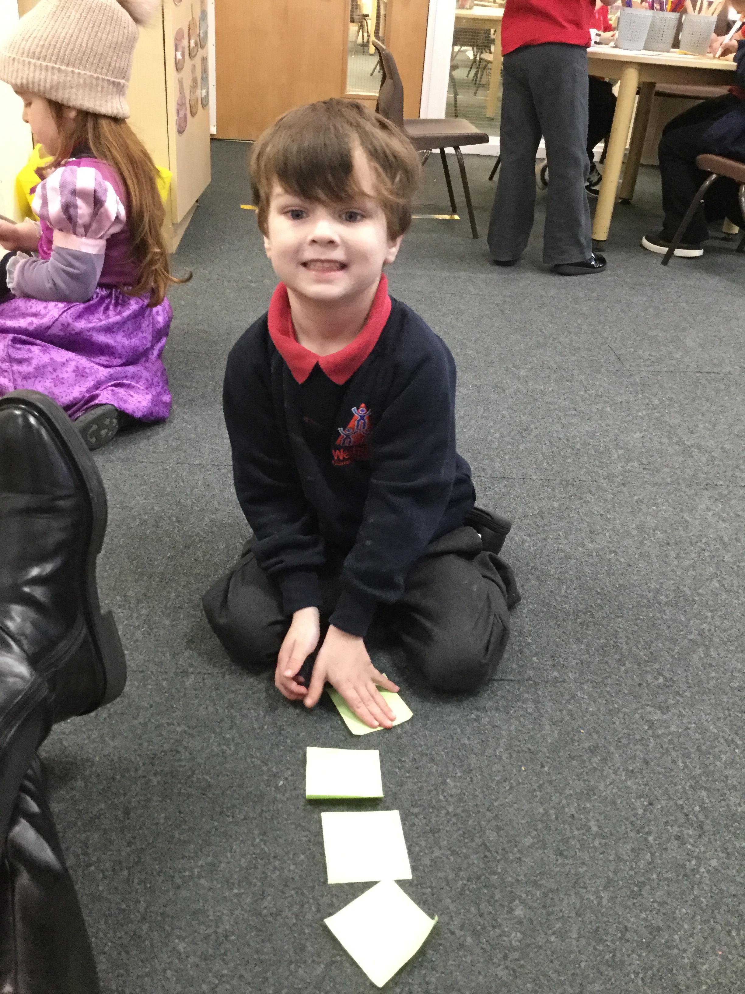 In maths we have been watching the Numberblocks make 'Stampoline' patterns. We have looked at all the different patterns Numberblocks 3, 4 and 5 can make when they rearrange their blocks and used positional language to describe the patterns. We made our own patterns using squares of paper. We have also talked about the parts of a day morning, afternoon and night and the things we do at the different times, we listened to the story, 'Night Monkey, Day Monkey' by Julia Donaldson.