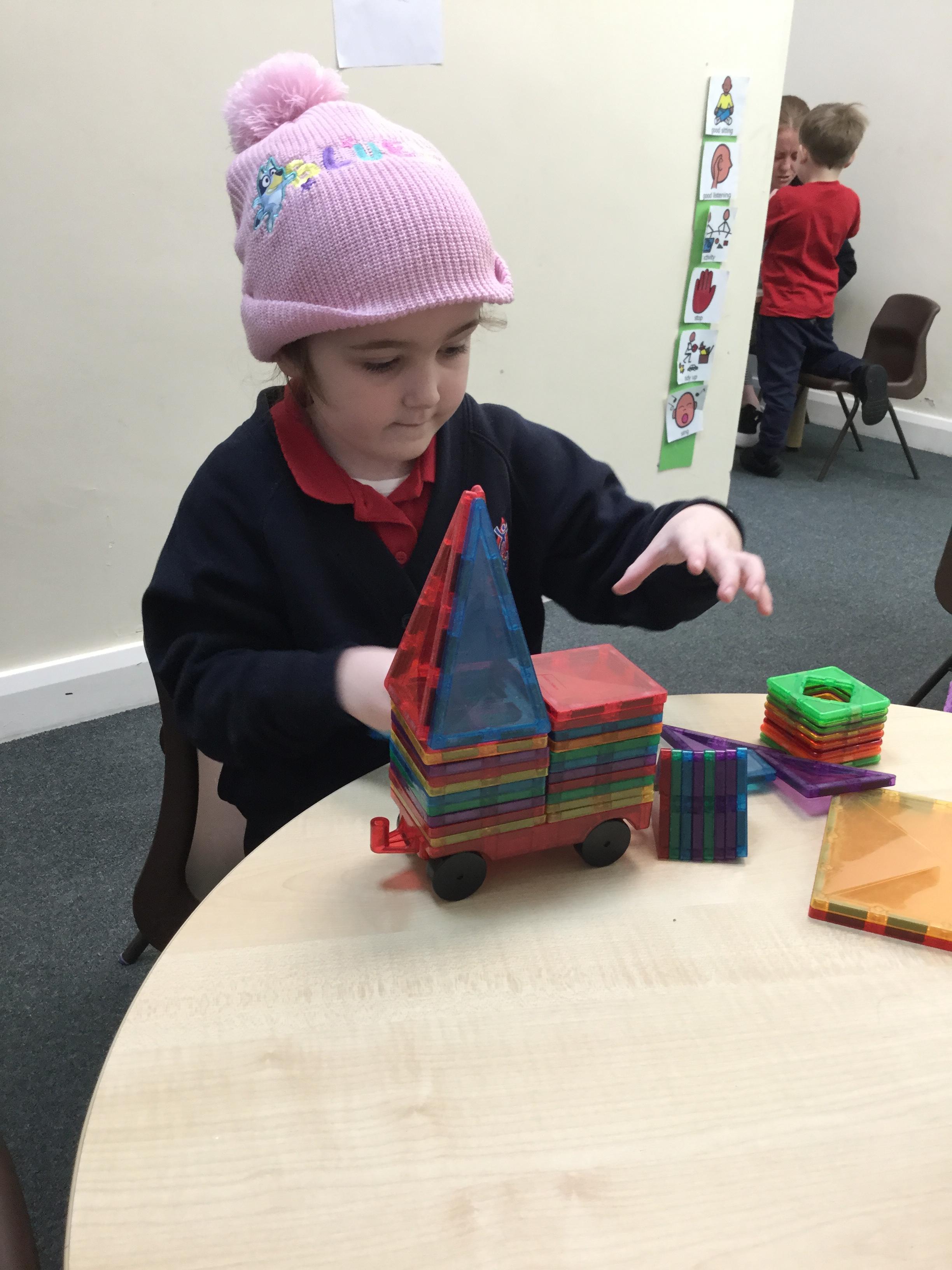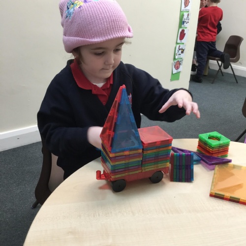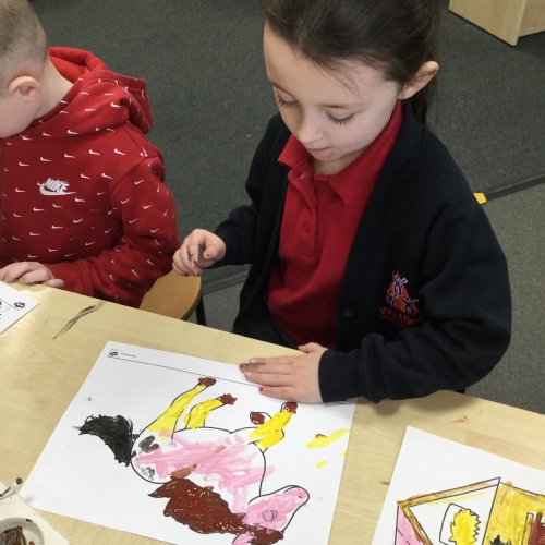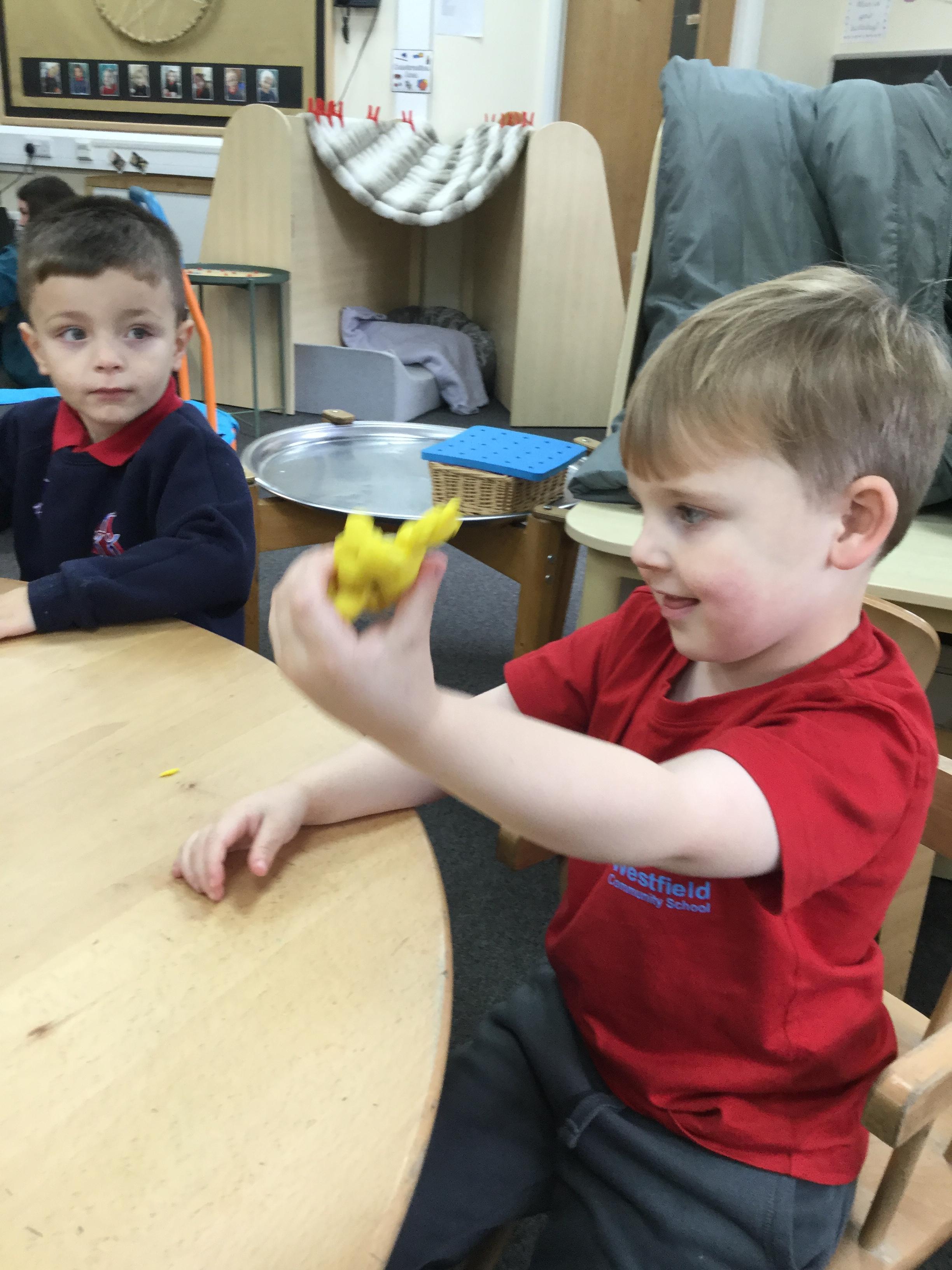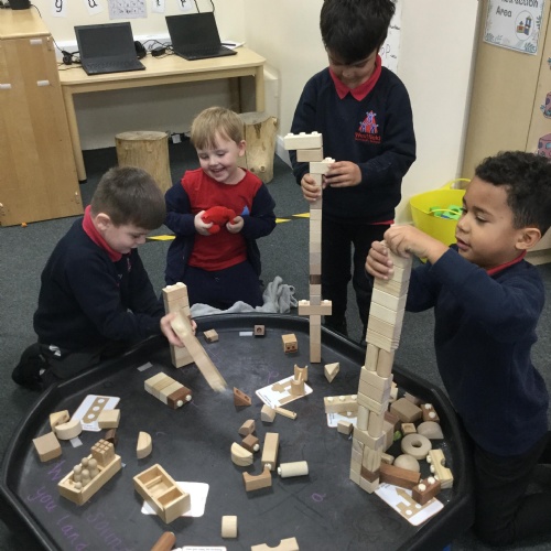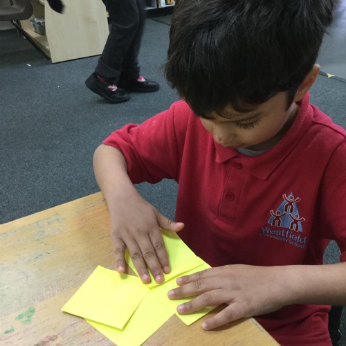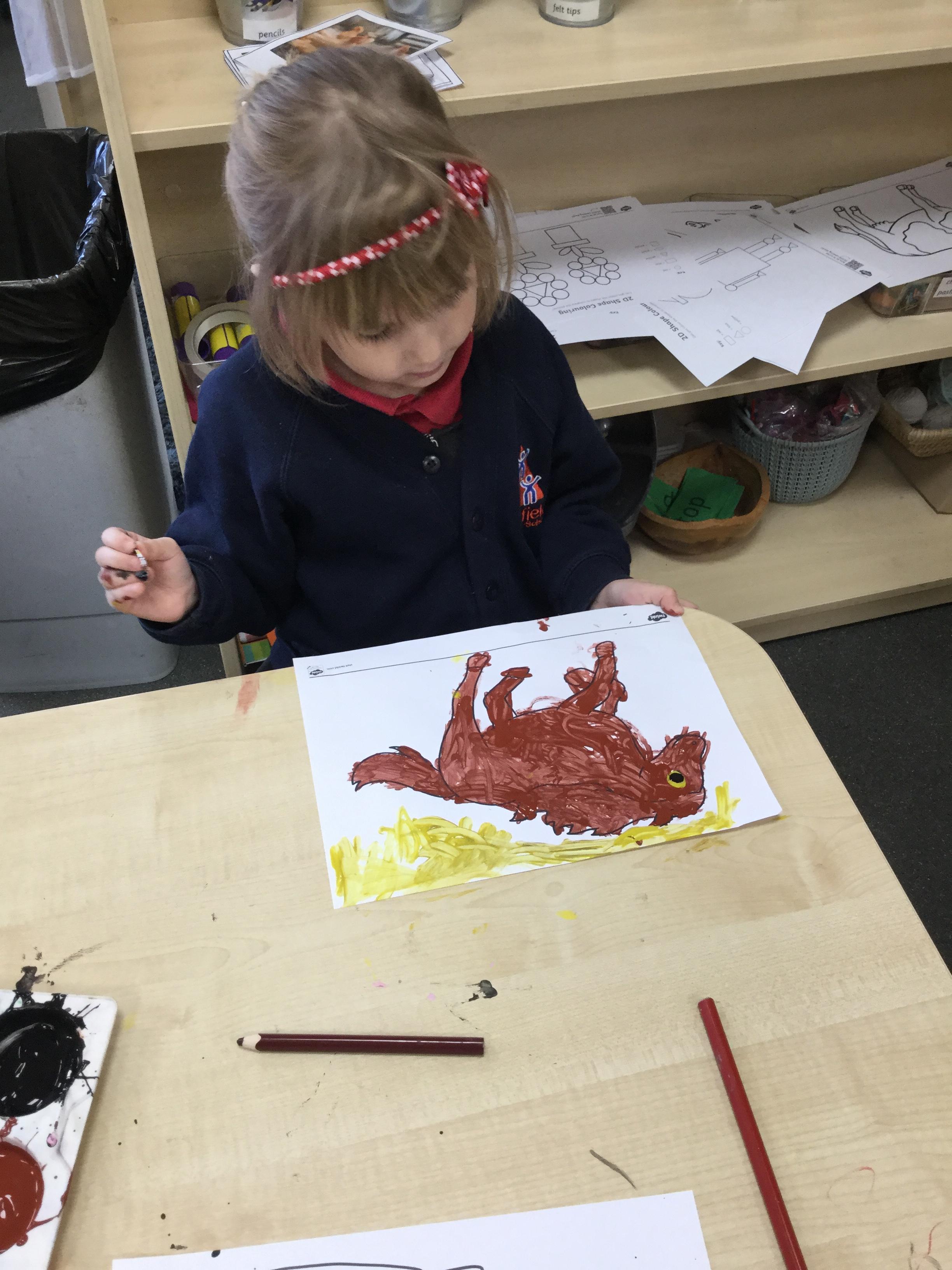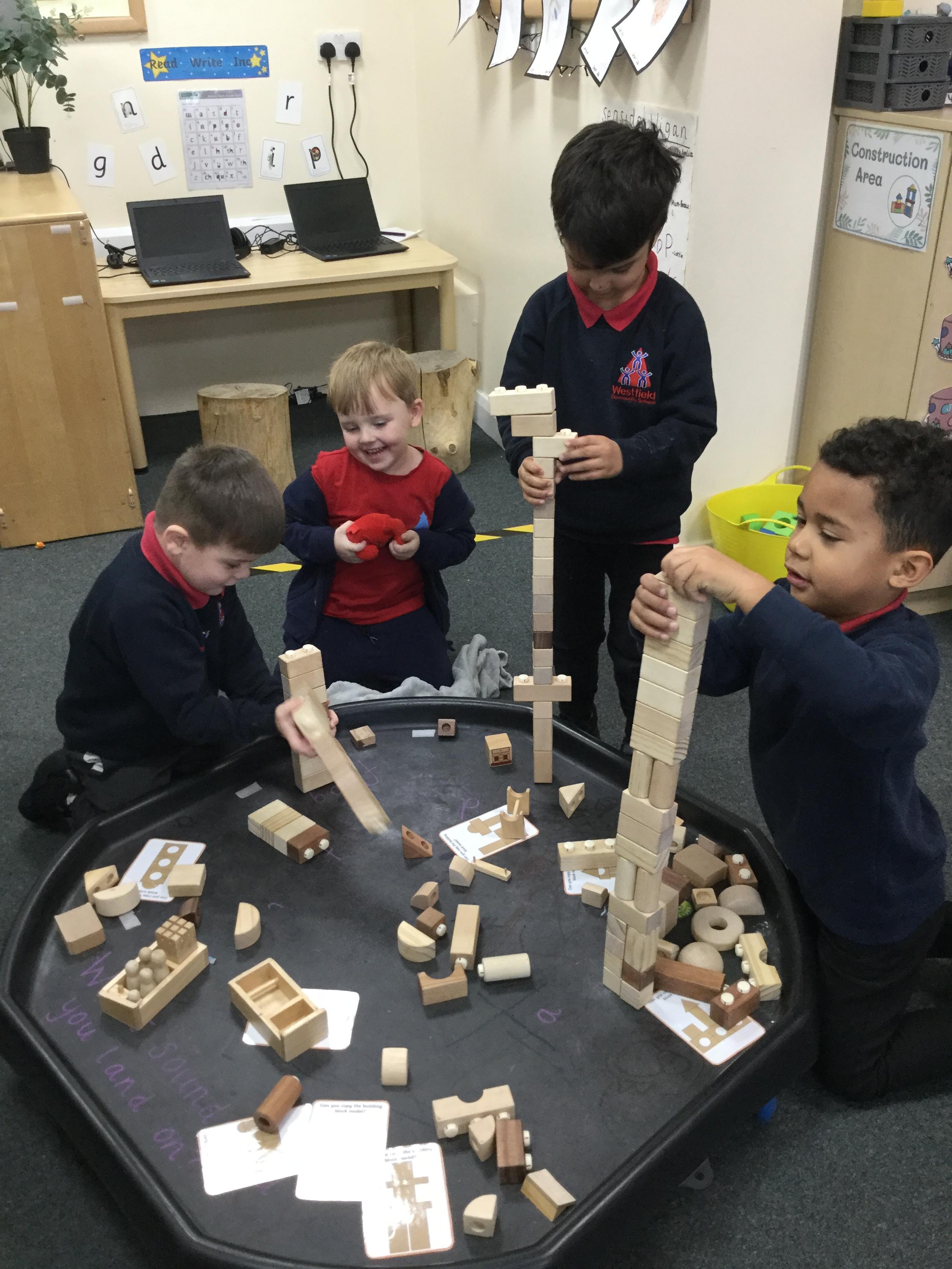 In maths we have been watching the Numberblocks make 'Stampoline' patterns. We have looked at all the different patterns Numberblocks 3, 4 and 5 can make when they rearrange their blocks and used positional language to describe the patterns. We made our own patterns using squares of paper. We have also talked about the parts of a day morning, afternoon and night and the things we do at the different times, we listened to the story, 'Night Monkey, Day Monkey' by Julia Donaldson.