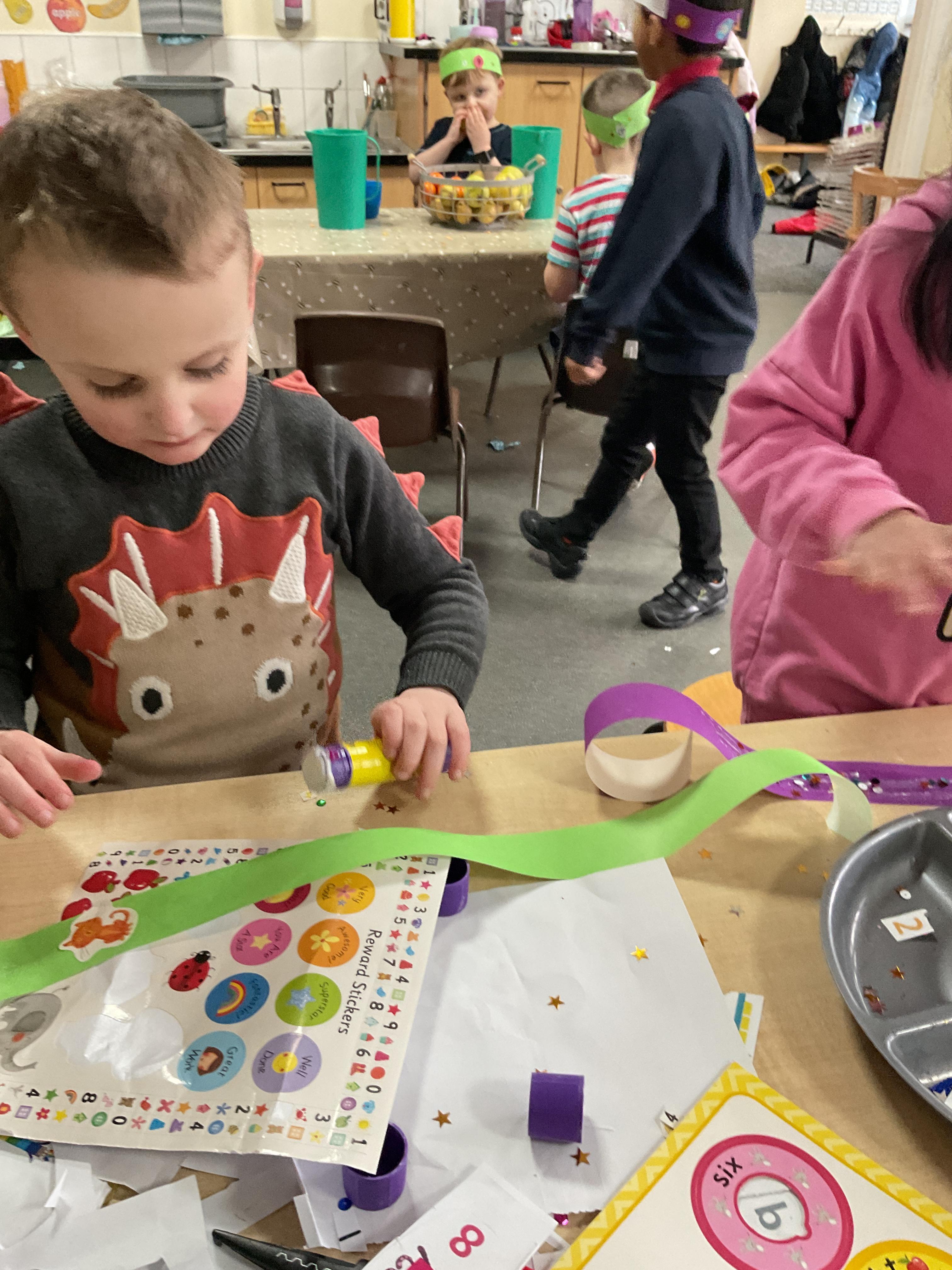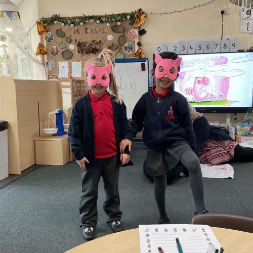 To start the week we used our puppet theatre and masks of the characters to act out the story.