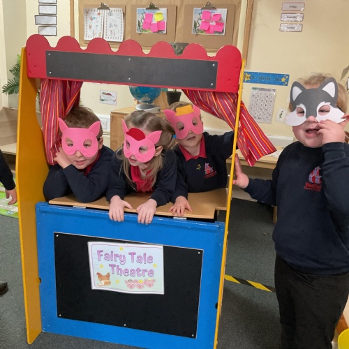 Hello and welcome back to our class blog. This week we have be reading the Three Little Pigs. The story was familiar to lots of our children which has allowed us to enjoy the story in lots of different ways including performing it!