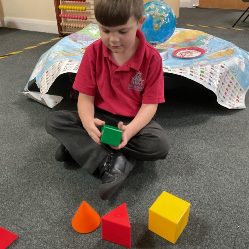 In Maths we have been learning all about 3D shapes. Ask your children to see if they can spot any at home and tell you what they are called!