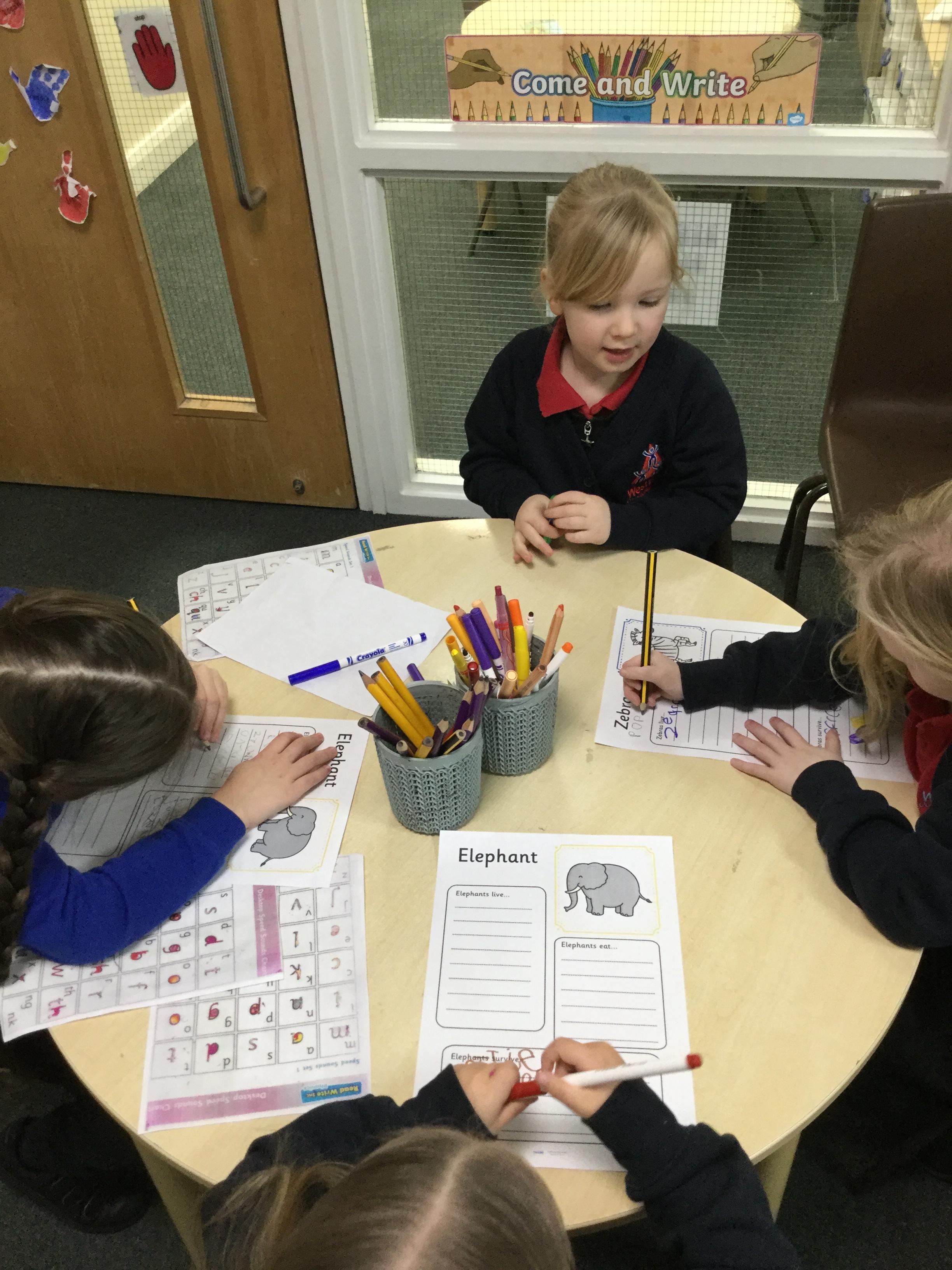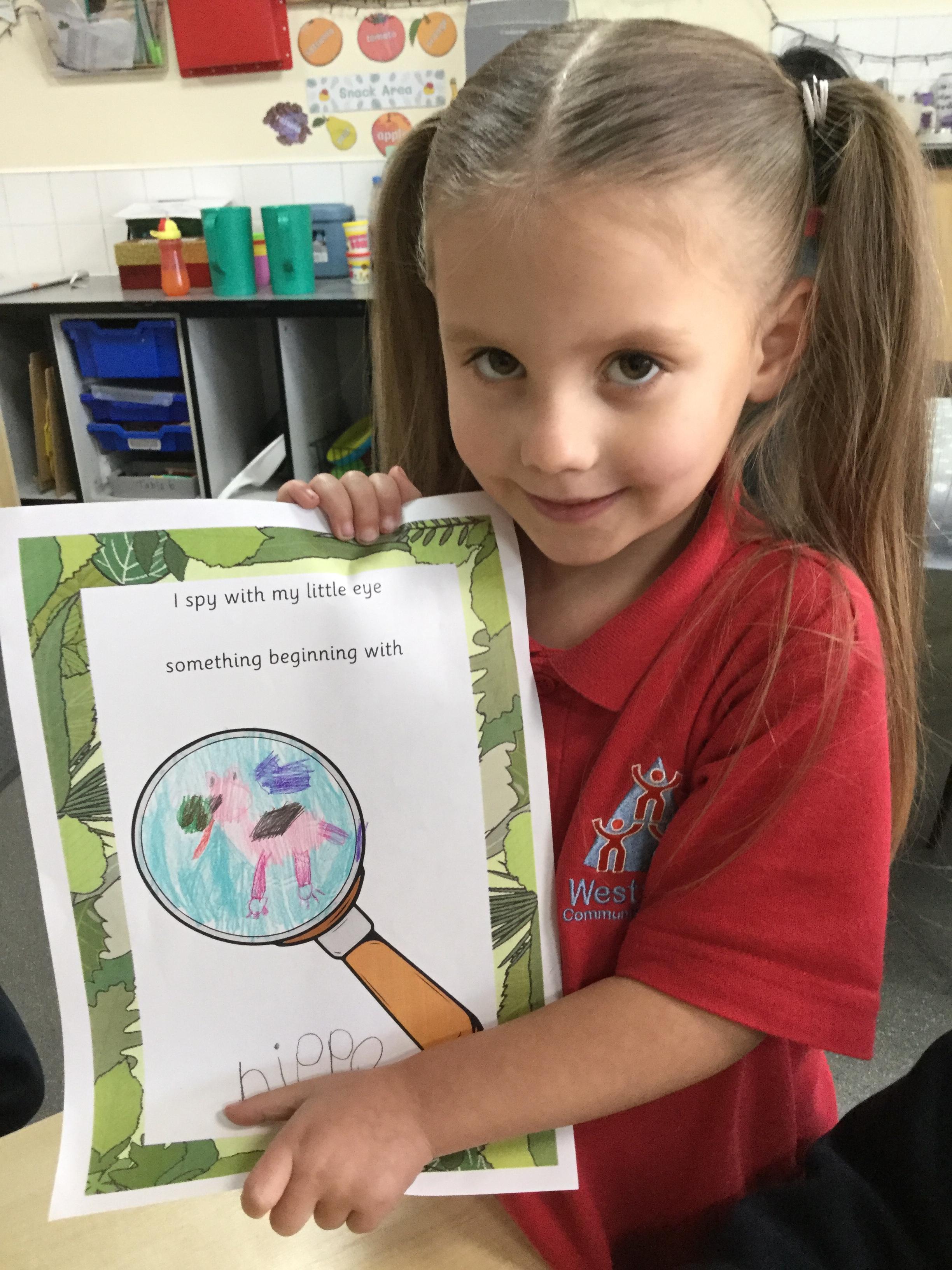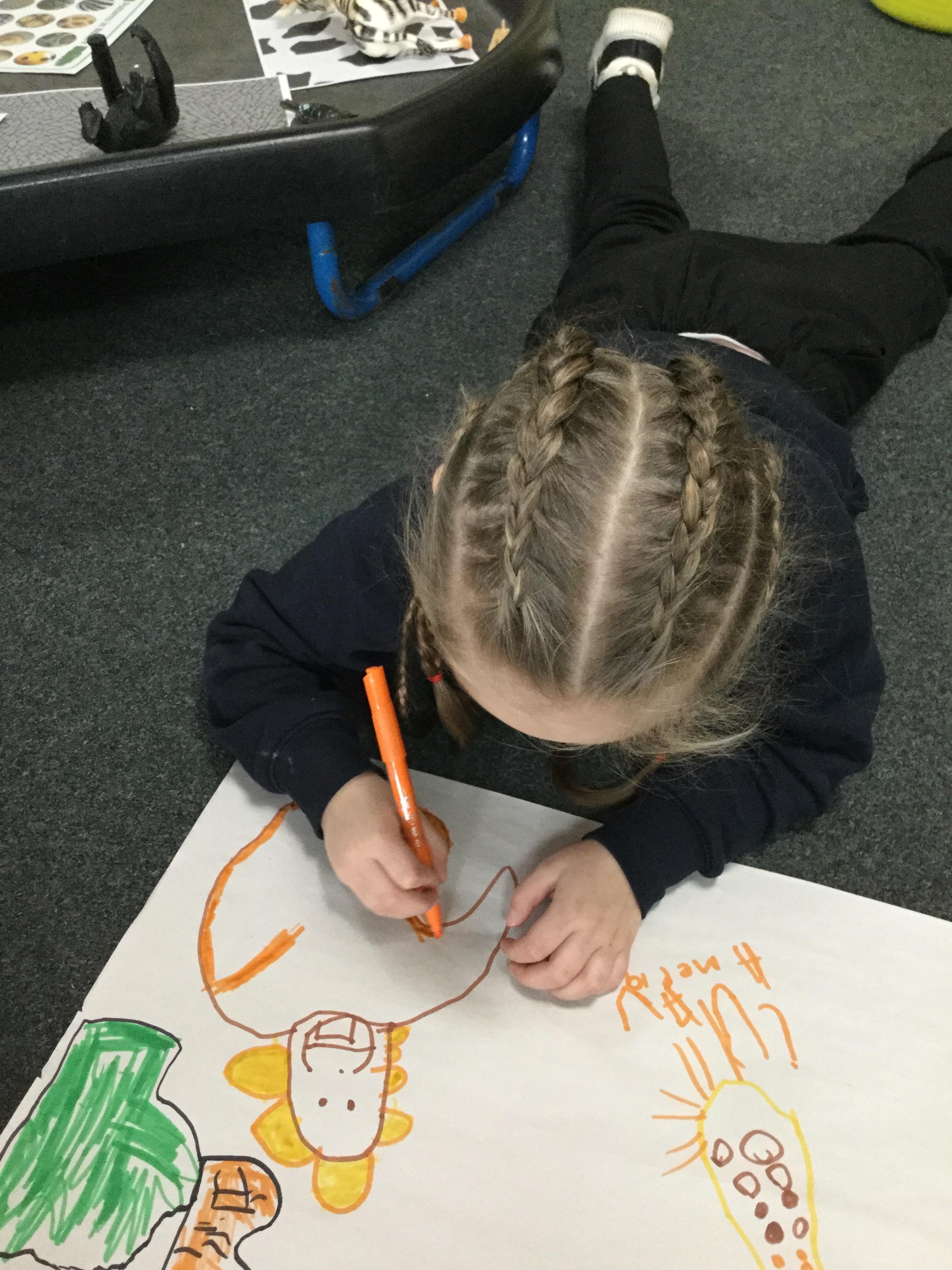 Welcome to our blog. We've had a roaringly great time using the text 'Rumble in the Jungle' by Giles Andreae this week. We've listened to the rhymes about all the different animals. We've picked animals and asked questions about things we want to know about them, we used the computer to get answers and wrote down what we found out. We looked through the book and picked our favourite animals to draw and write their name. Using pictures from the book we played 'I spy' and had to find the right animal to match the initial sound.