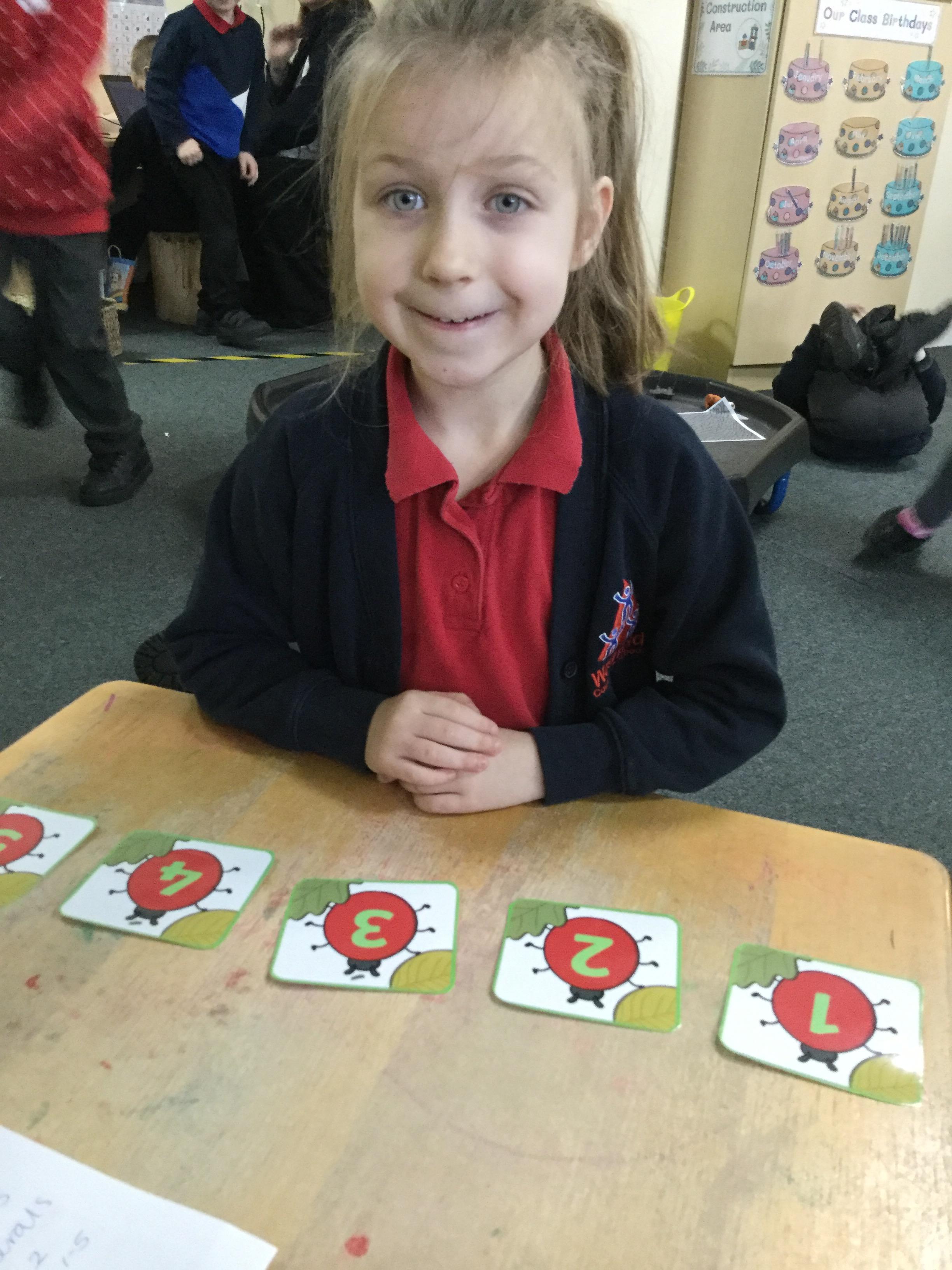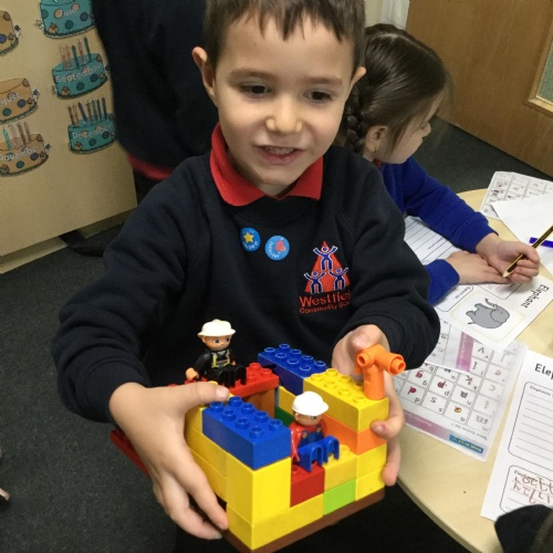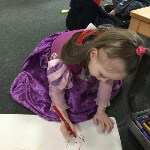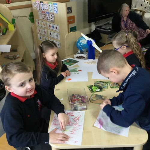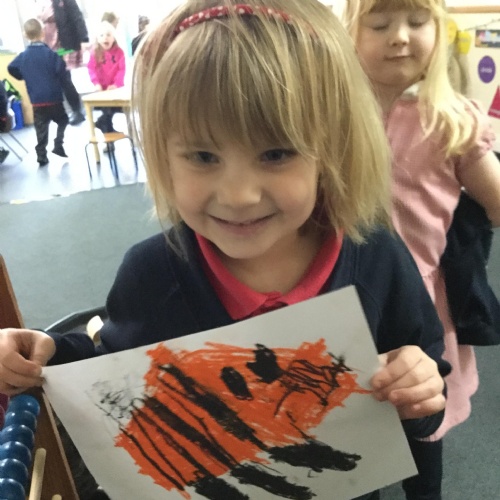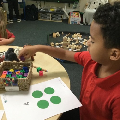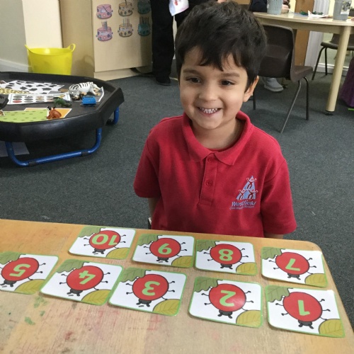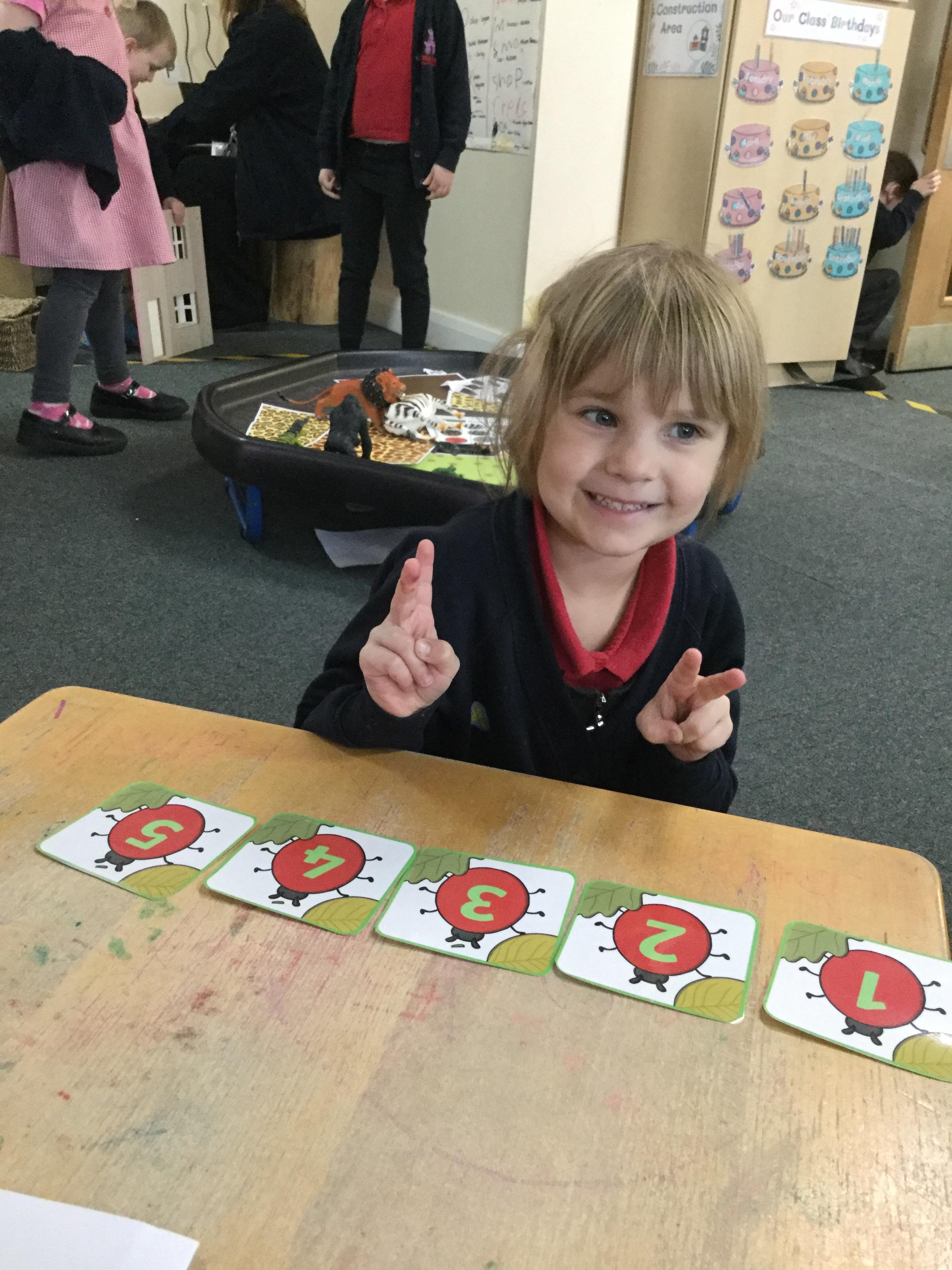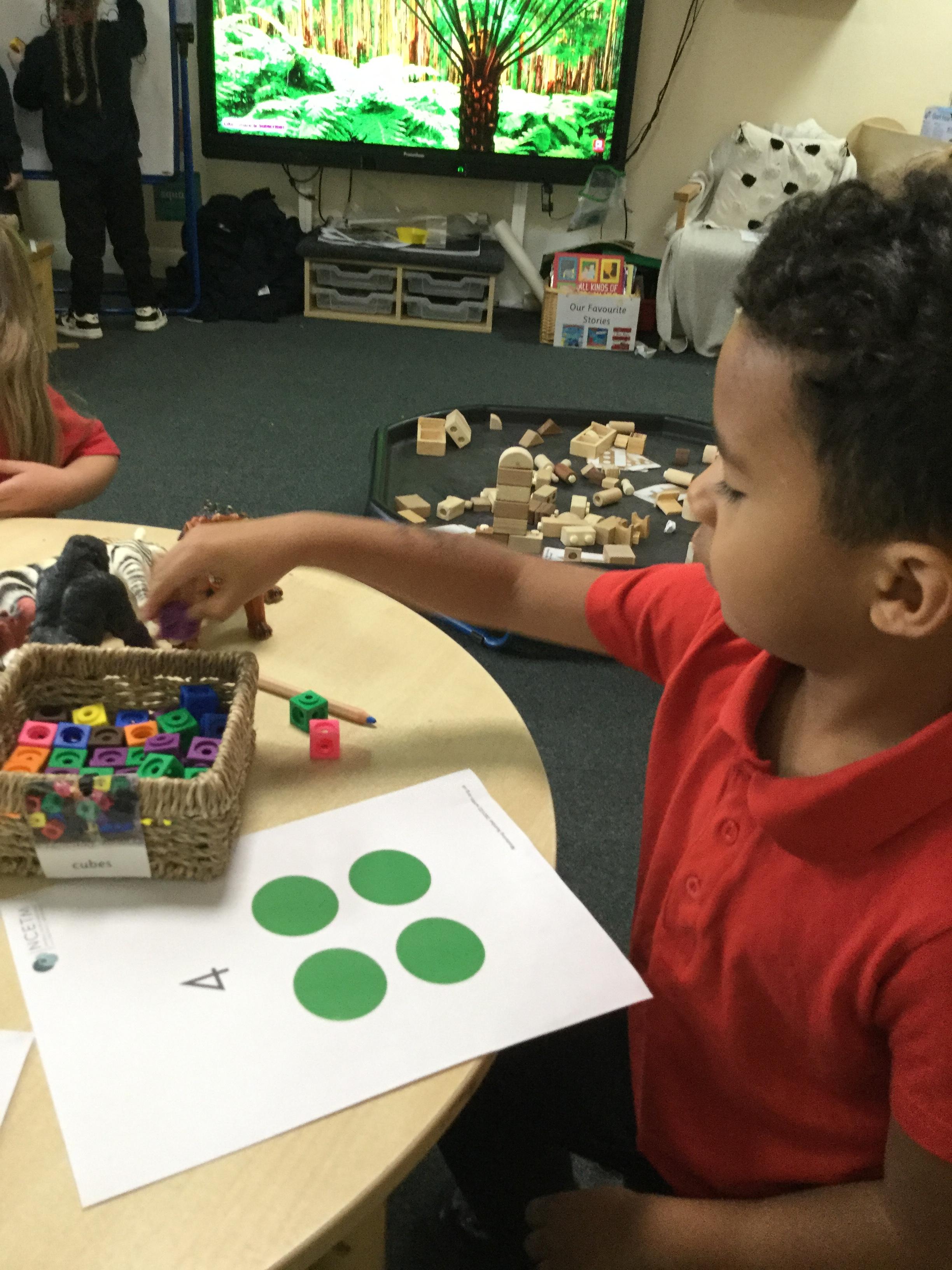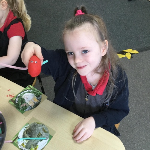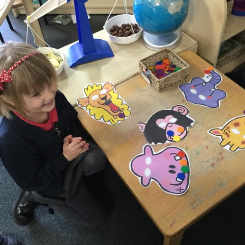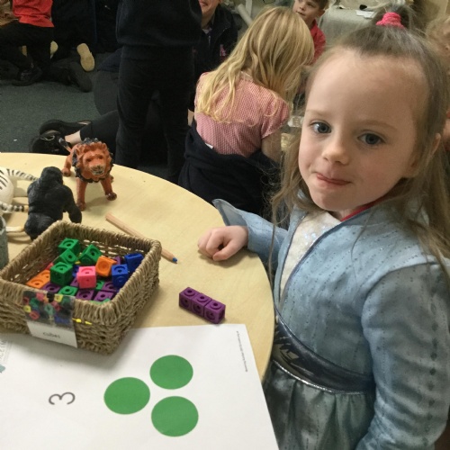 In maths this week we have done a lot of work revising what 'equal' means and what the 'stopping number' is. Bob our puppet kept getting it wrong but we helped him and he got it right in the end. We have practised counting and matching amounts to numerals 1 to 5. We have listened to the story 'Rosie's walk' and have used positional language to describe where Rosie and the fox are.