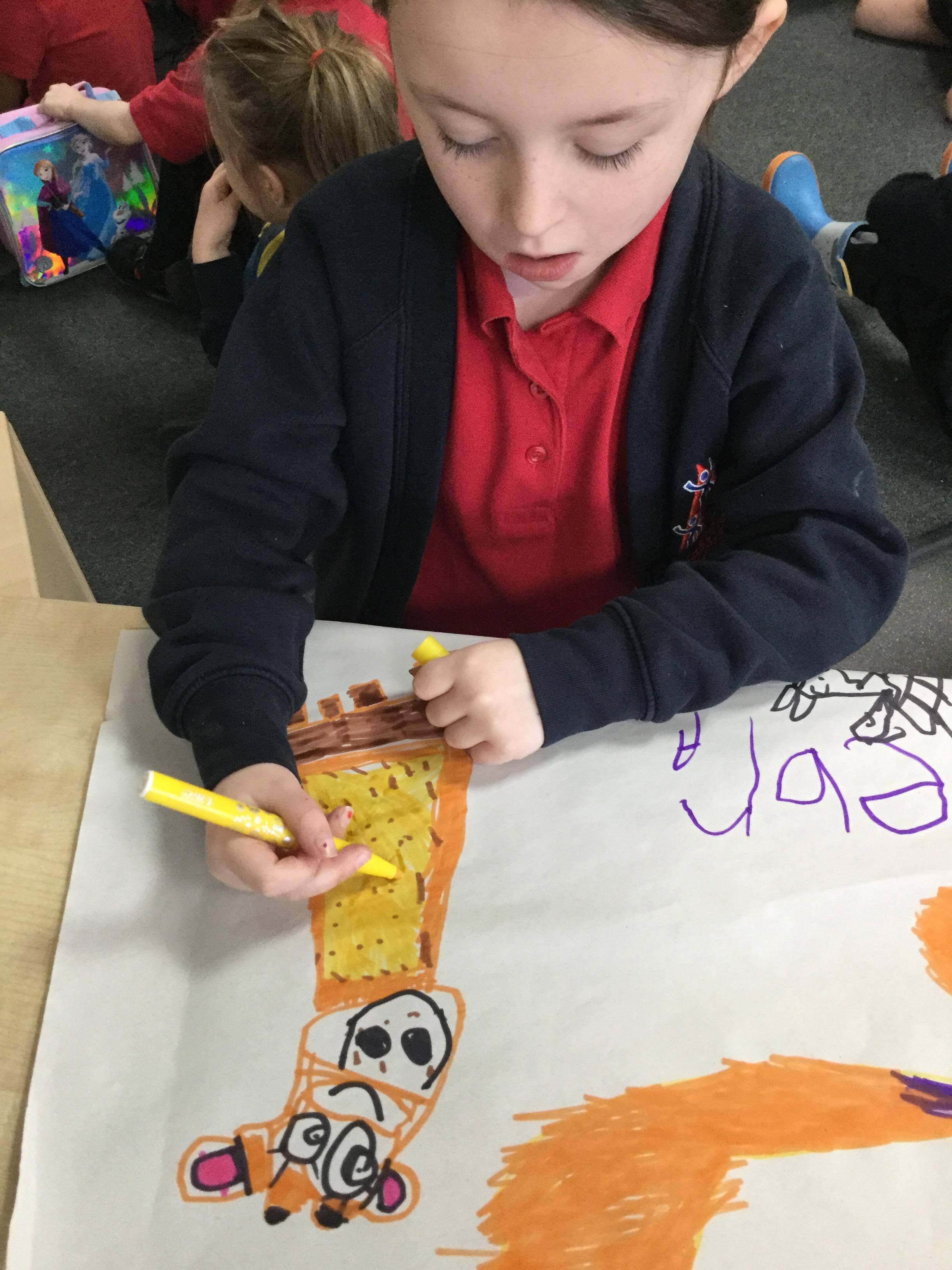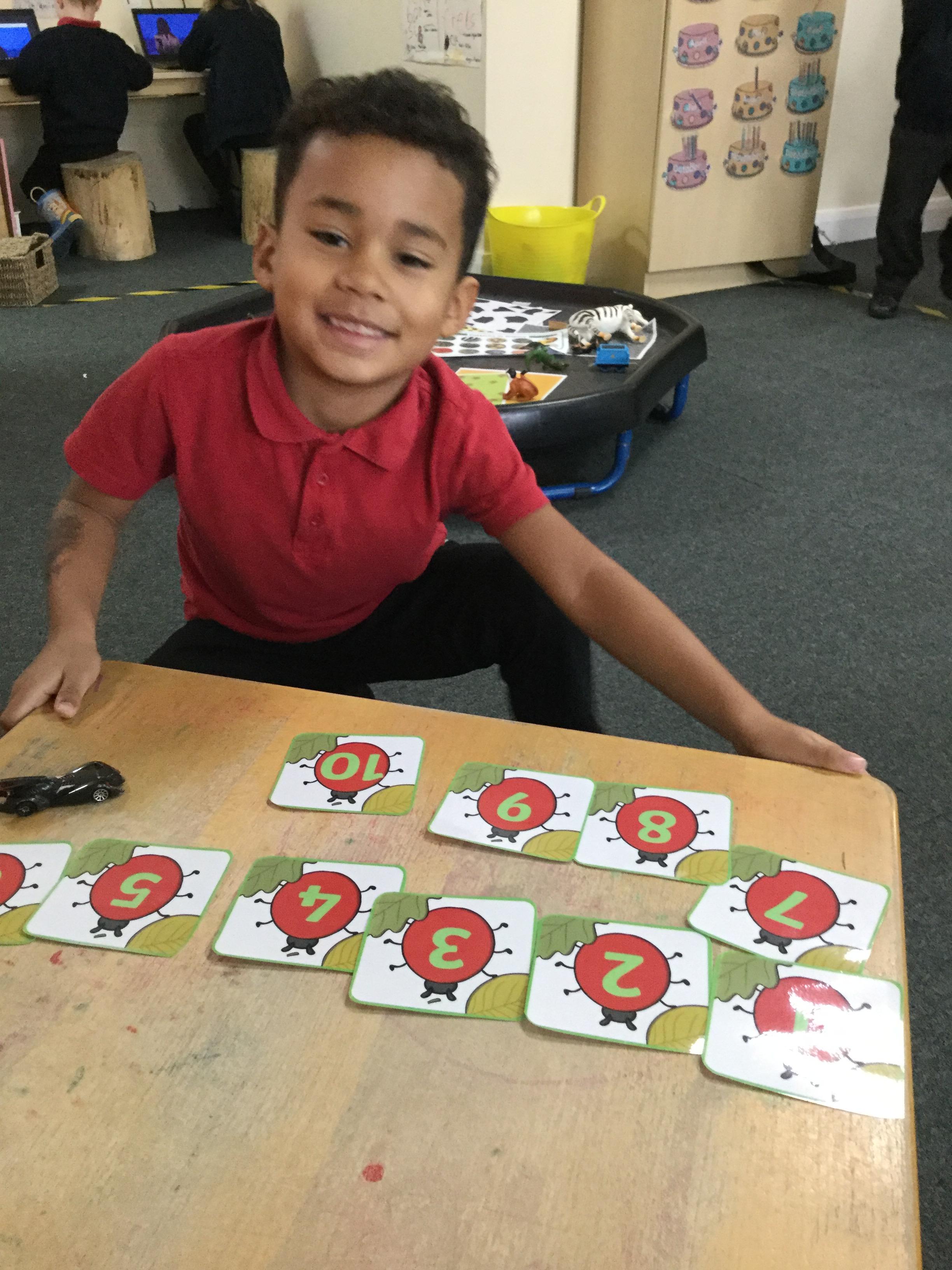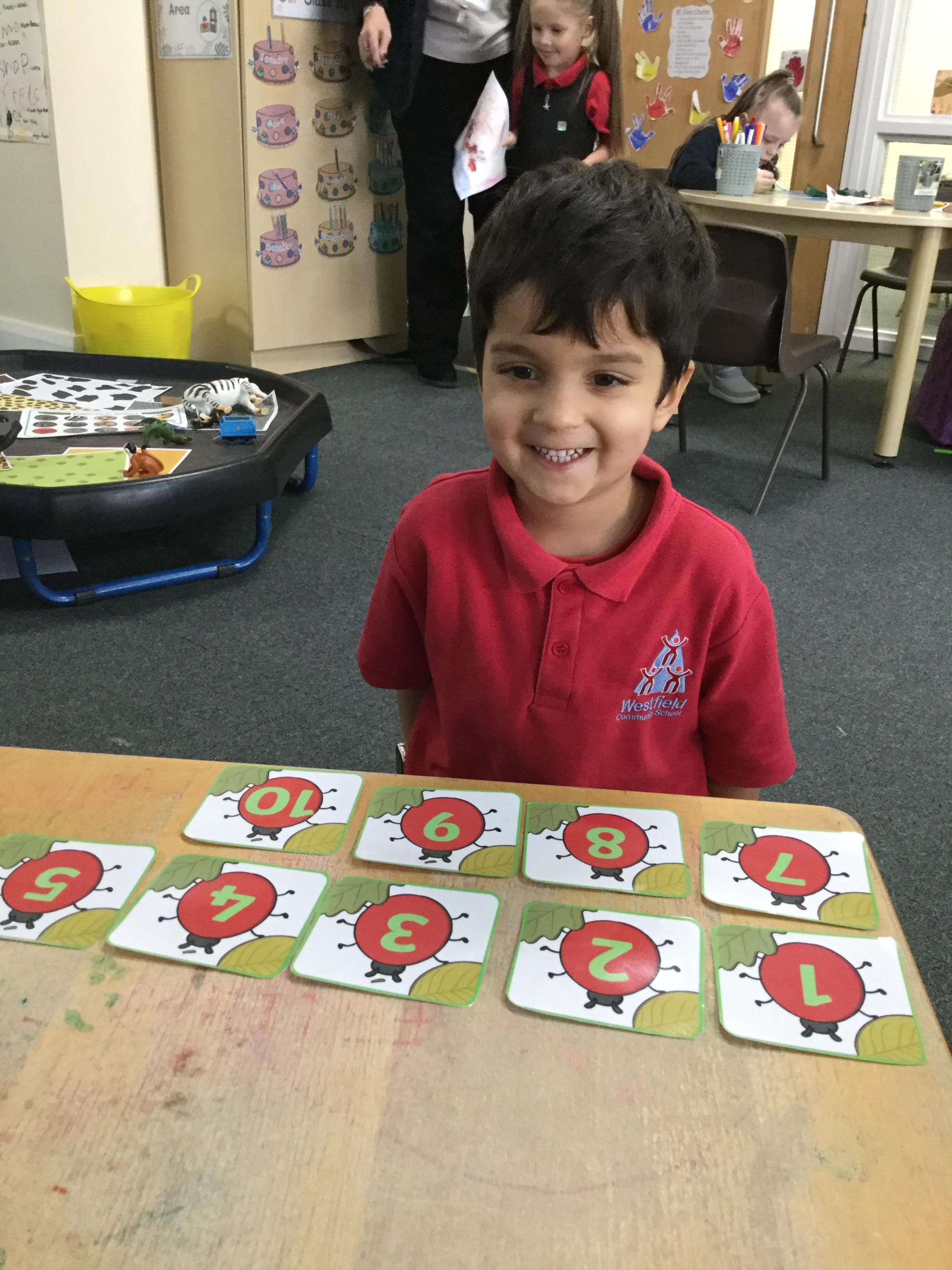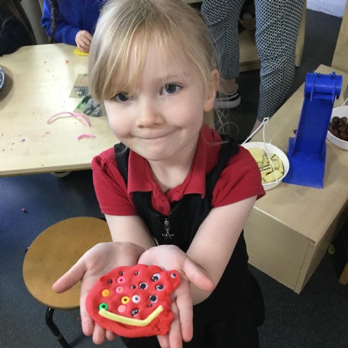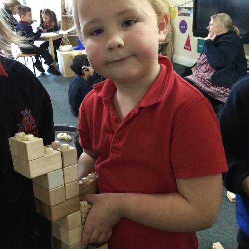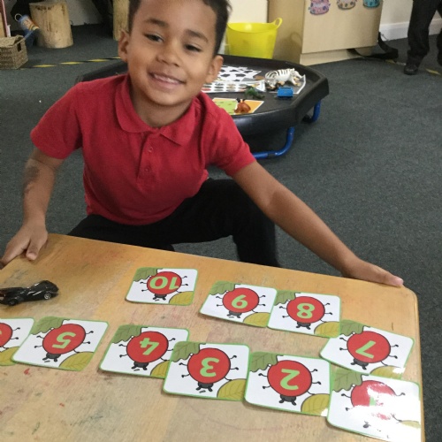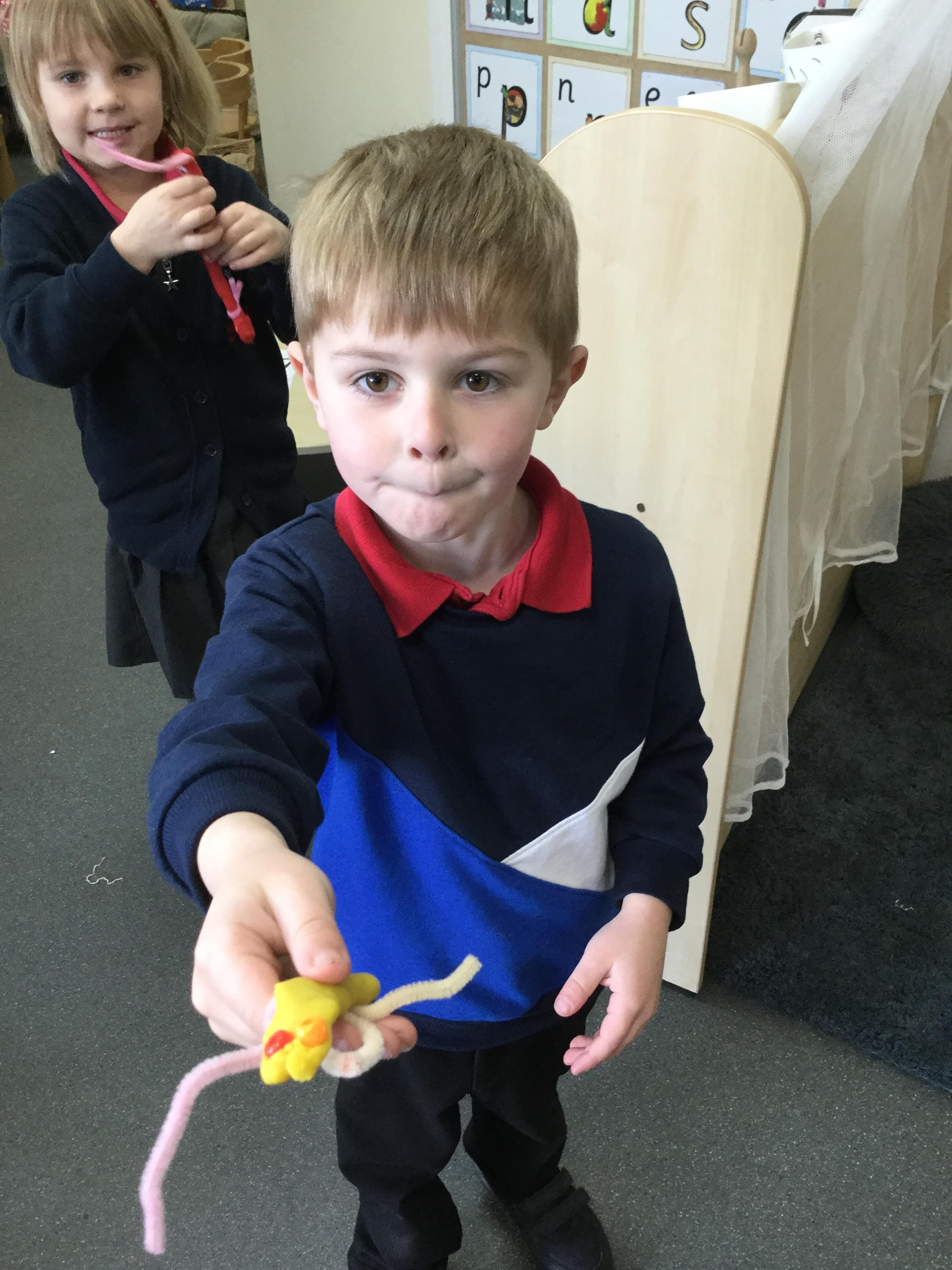 In maths this week we have done a lot of work revising what 'equal' means and what the 'stopping number' is. Bob our puppet kept getting it wrong but we helped him and he got it right in the end. We have practised counting and matching amounts to numerals 1 to 5. We have listened to the story 'Rosie's walk' and have used positional language to describe where Rosie and the fox are.