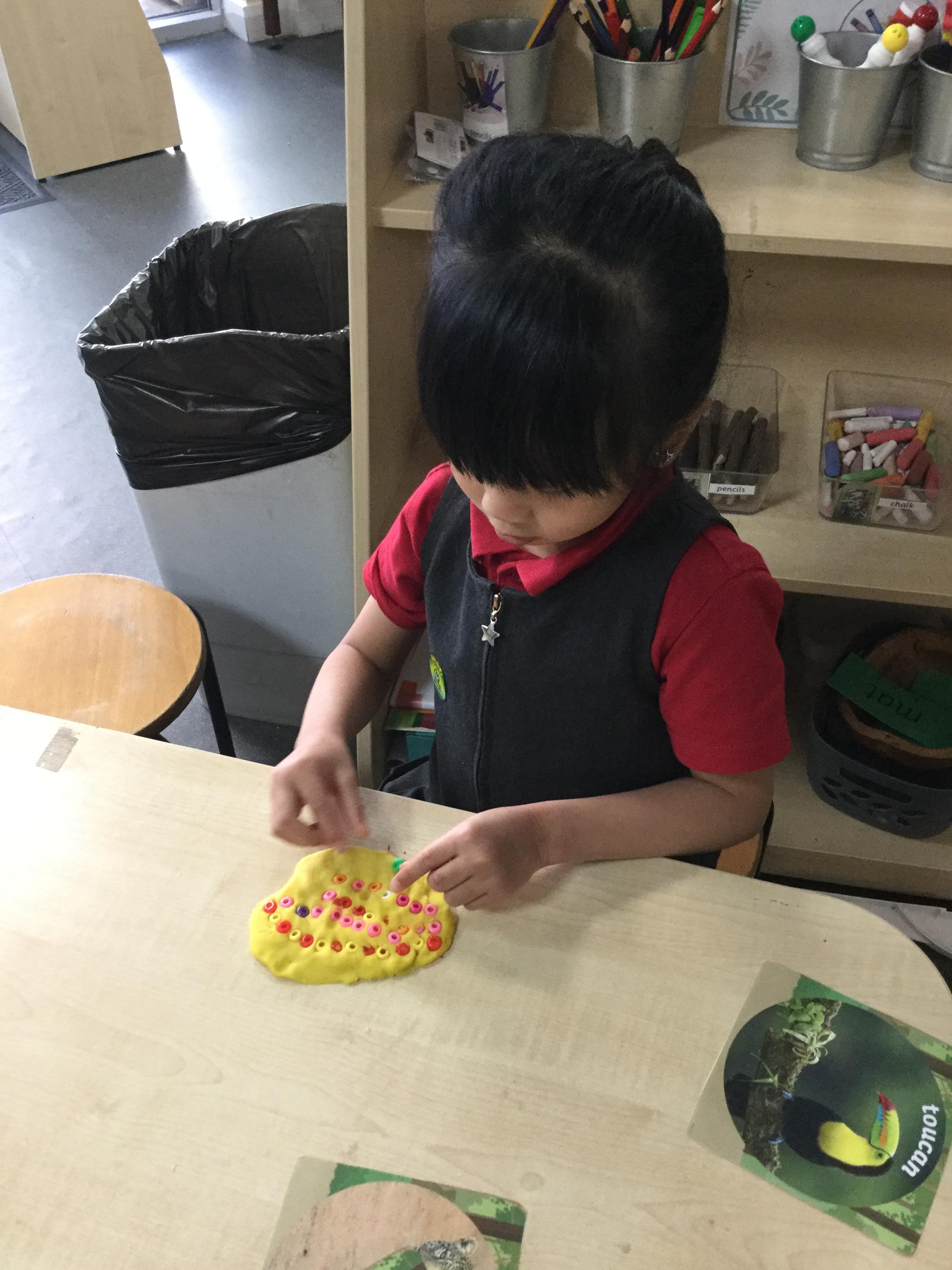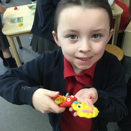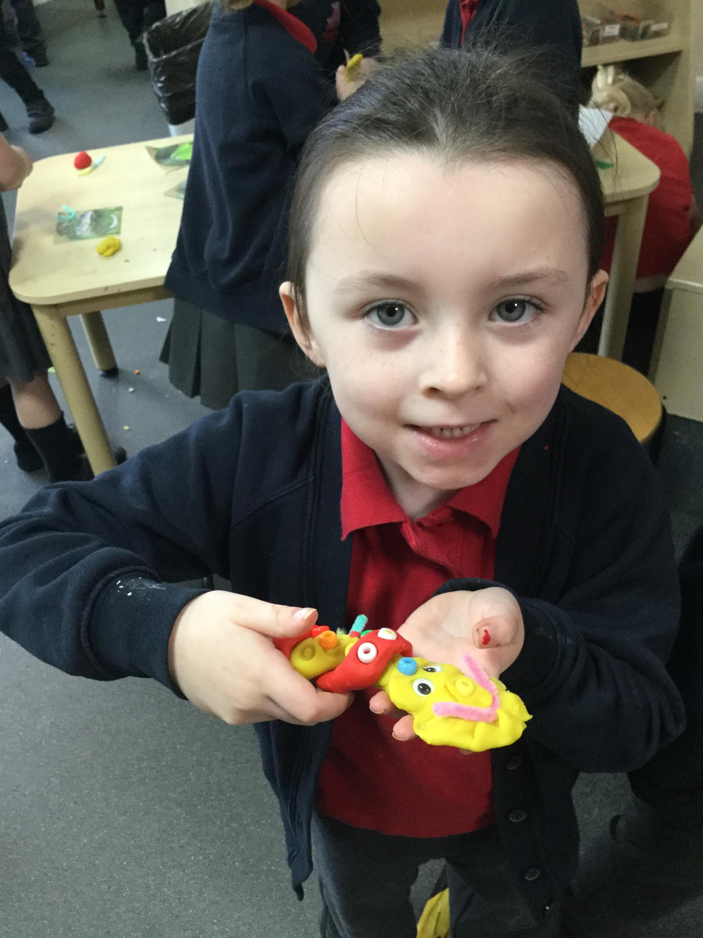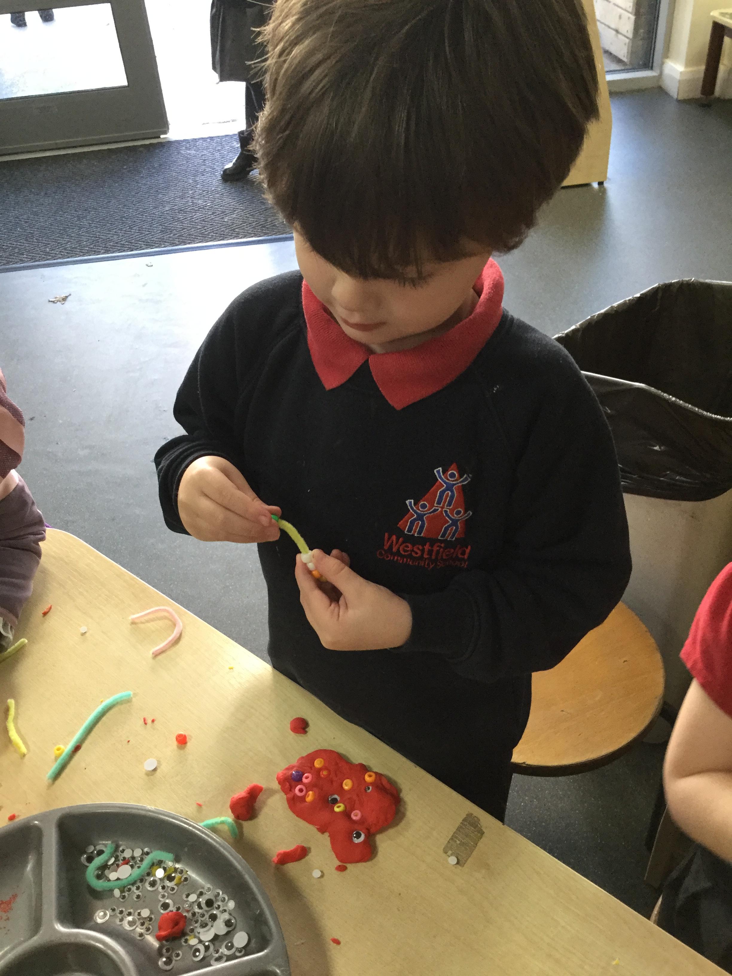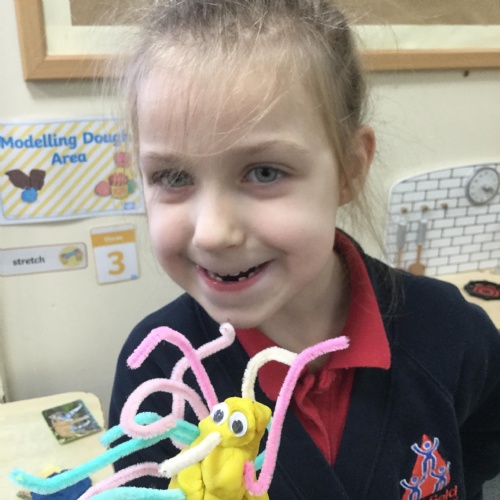 We've been very creative this week, we had half an animal picture that we needed to finish, we created animals from play dough and added pipe cleaners, beads and wobbly eyes. We looked at jungle paintings by the artist Rousseau and made our own pictures based on them. We copied animal patterns and drew some safari scenes.
