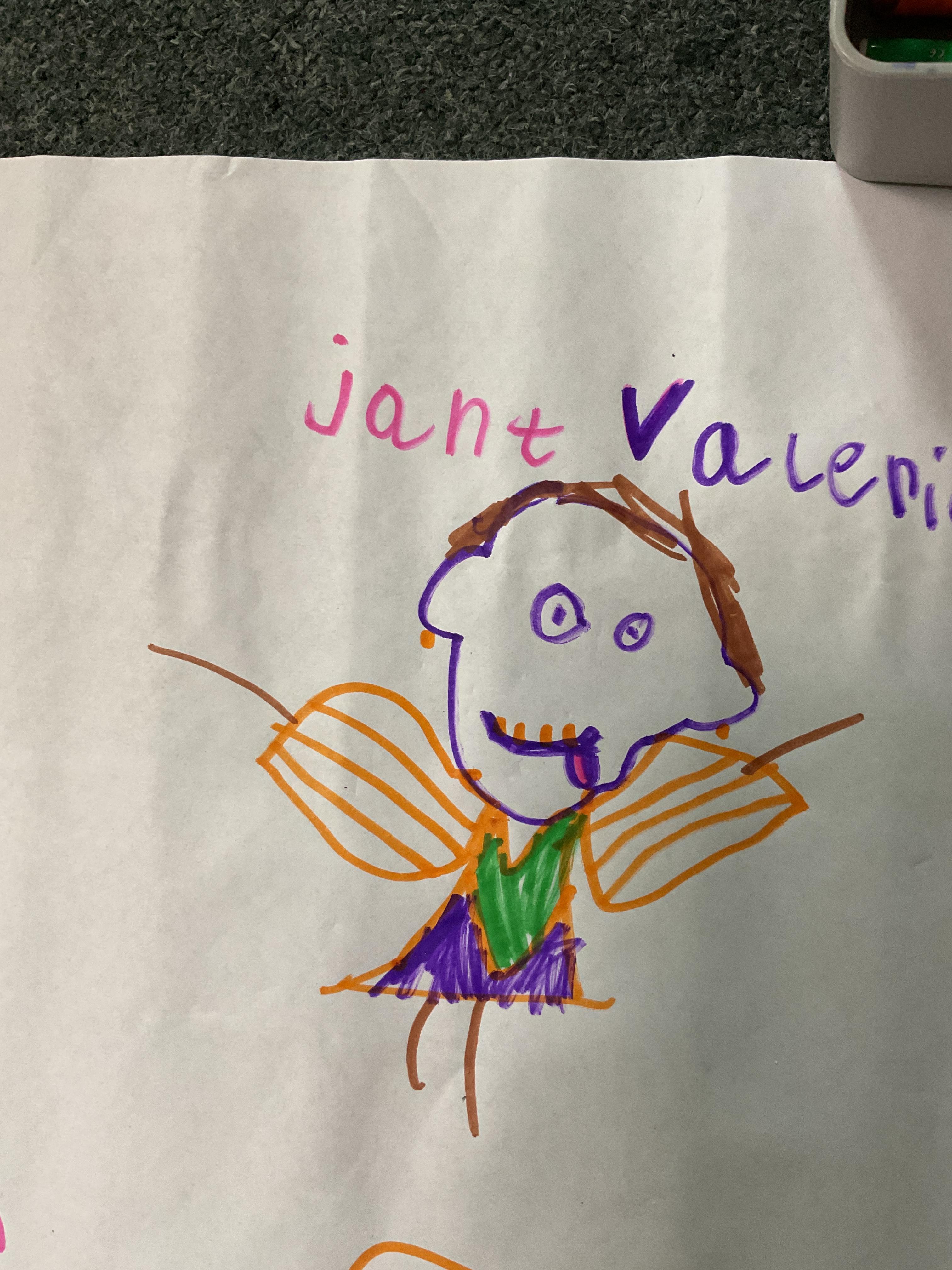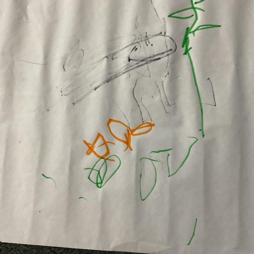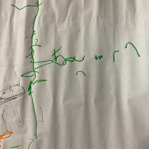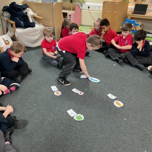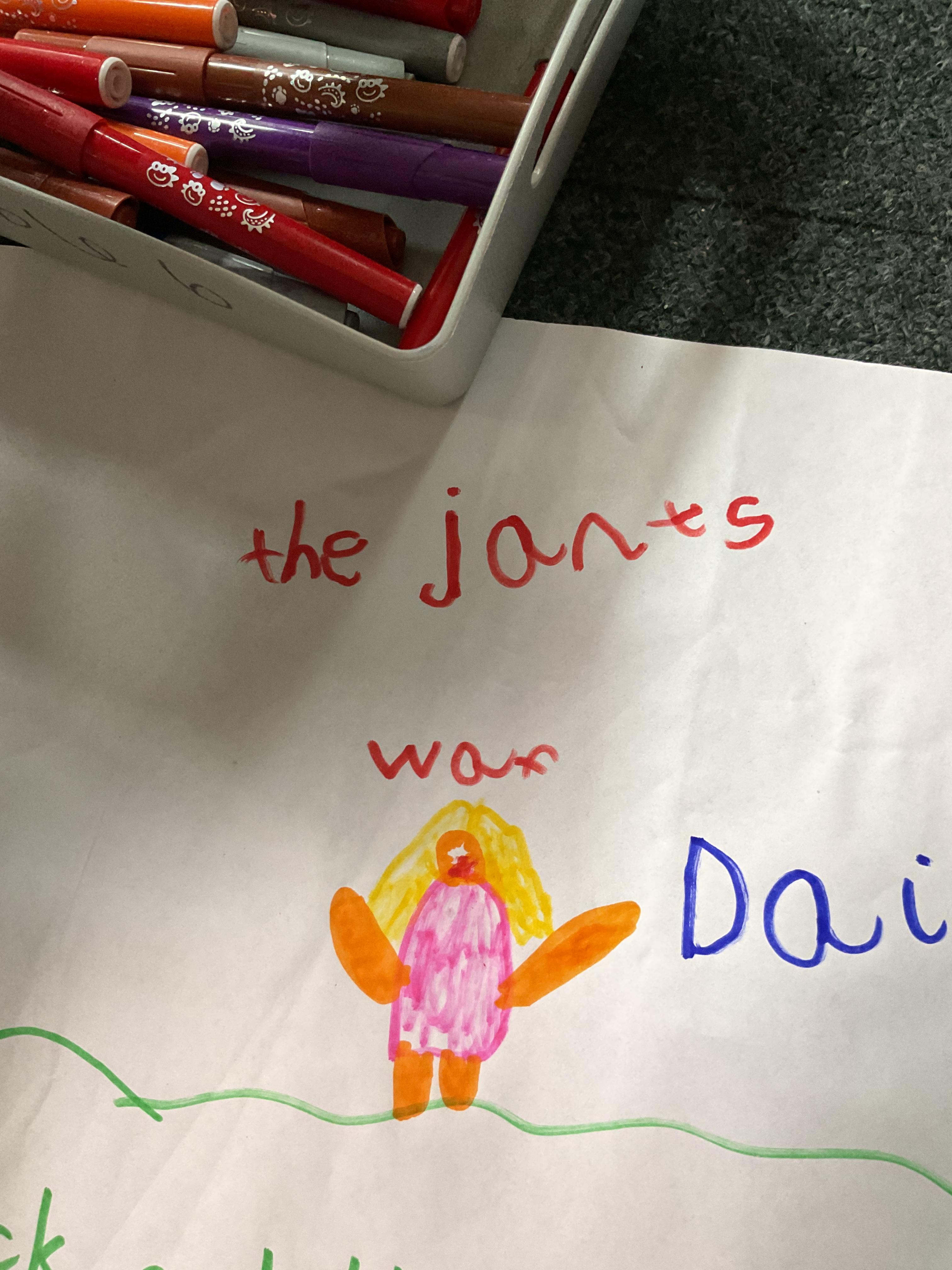 Earlier in the week we drew a story map. We thought about the order of the story from beginning, middle and end. We drew some lovely pictures and wrote down the sounds we could hear to write the words.