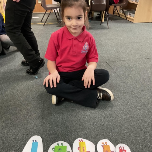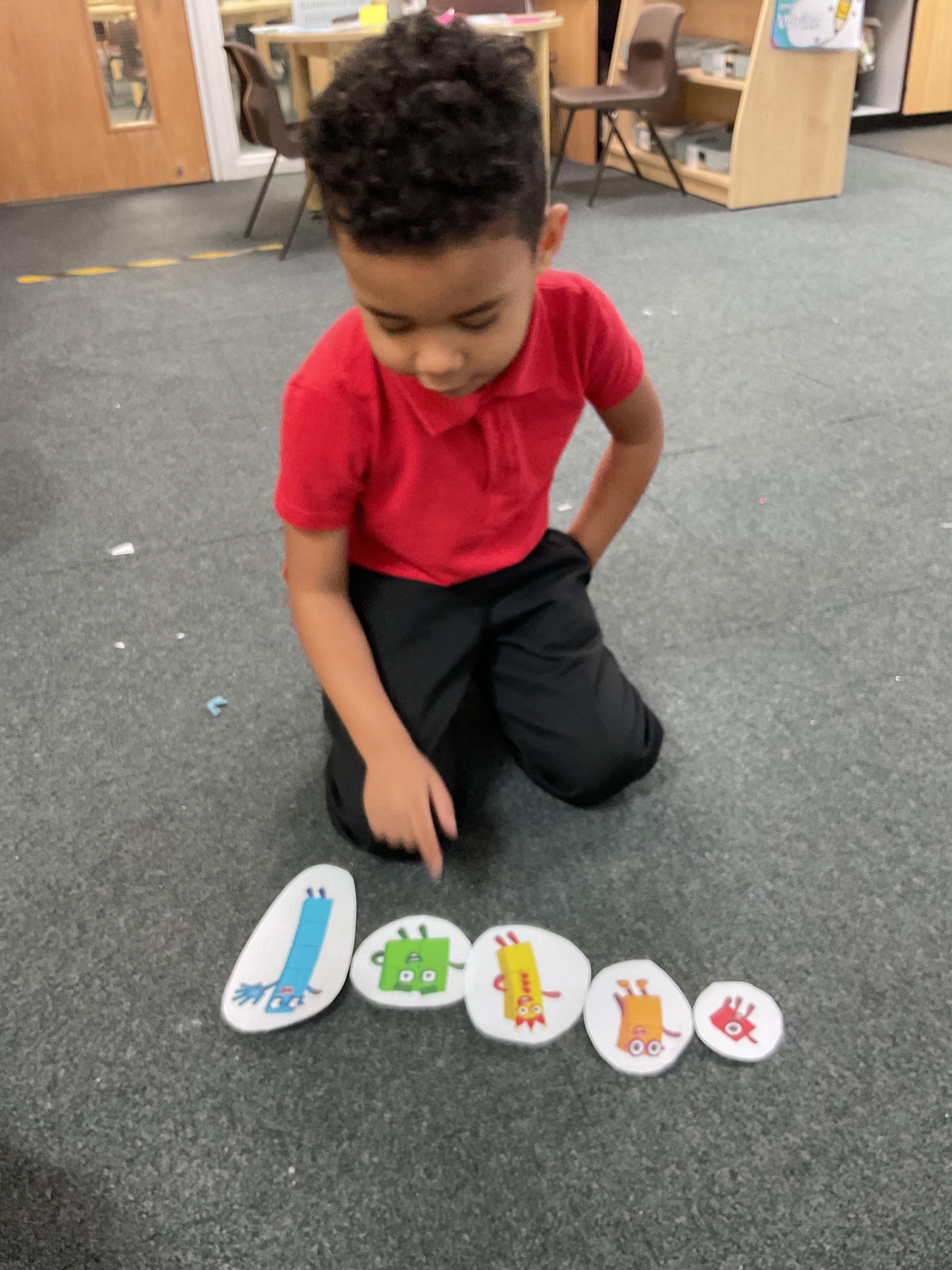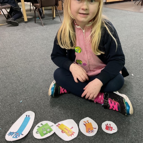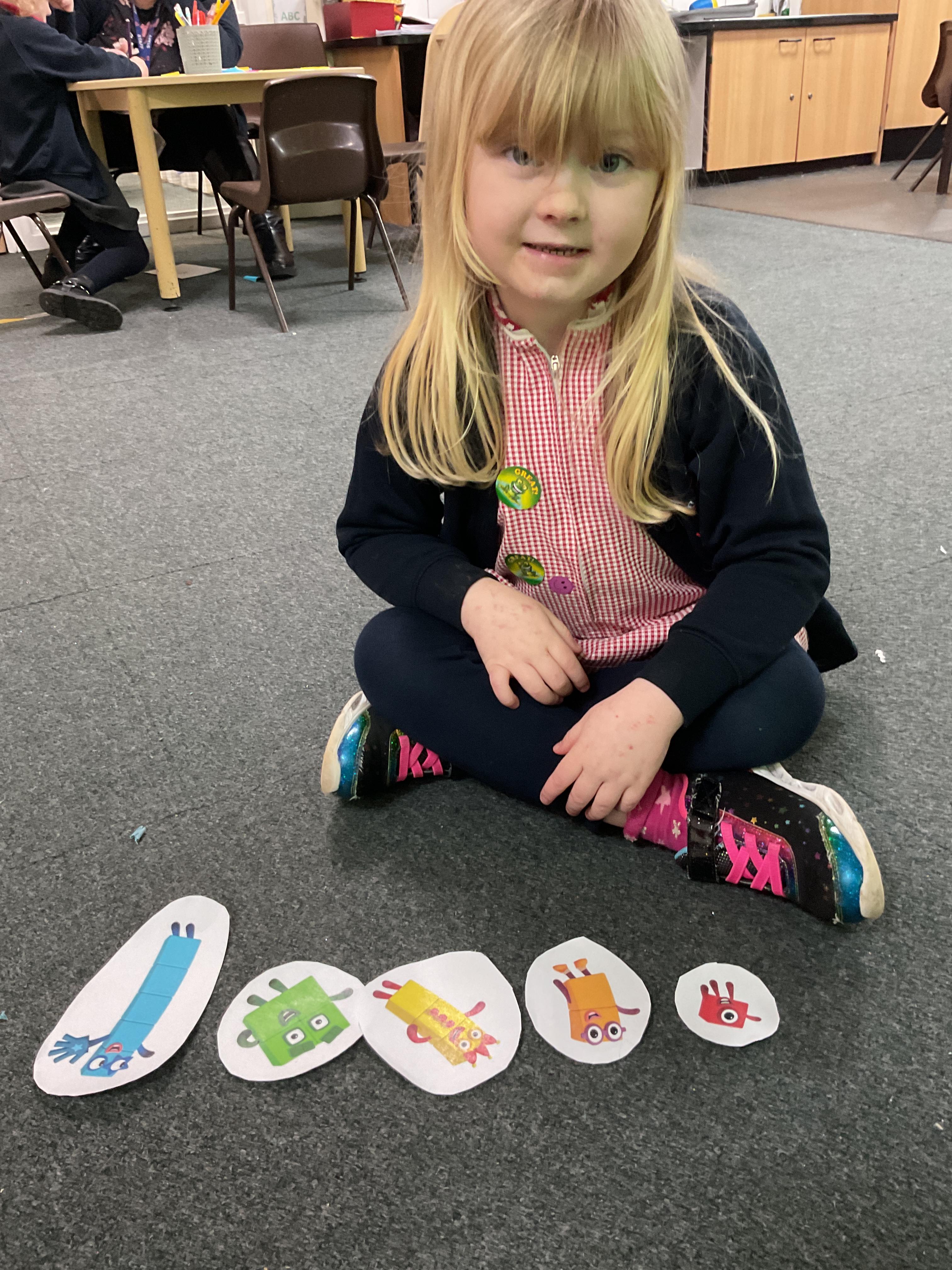 In Maths this week we were thinking about numeral to quantity and ordering numerals. We had lots of fun using our friends the Numberblocks to do this.
