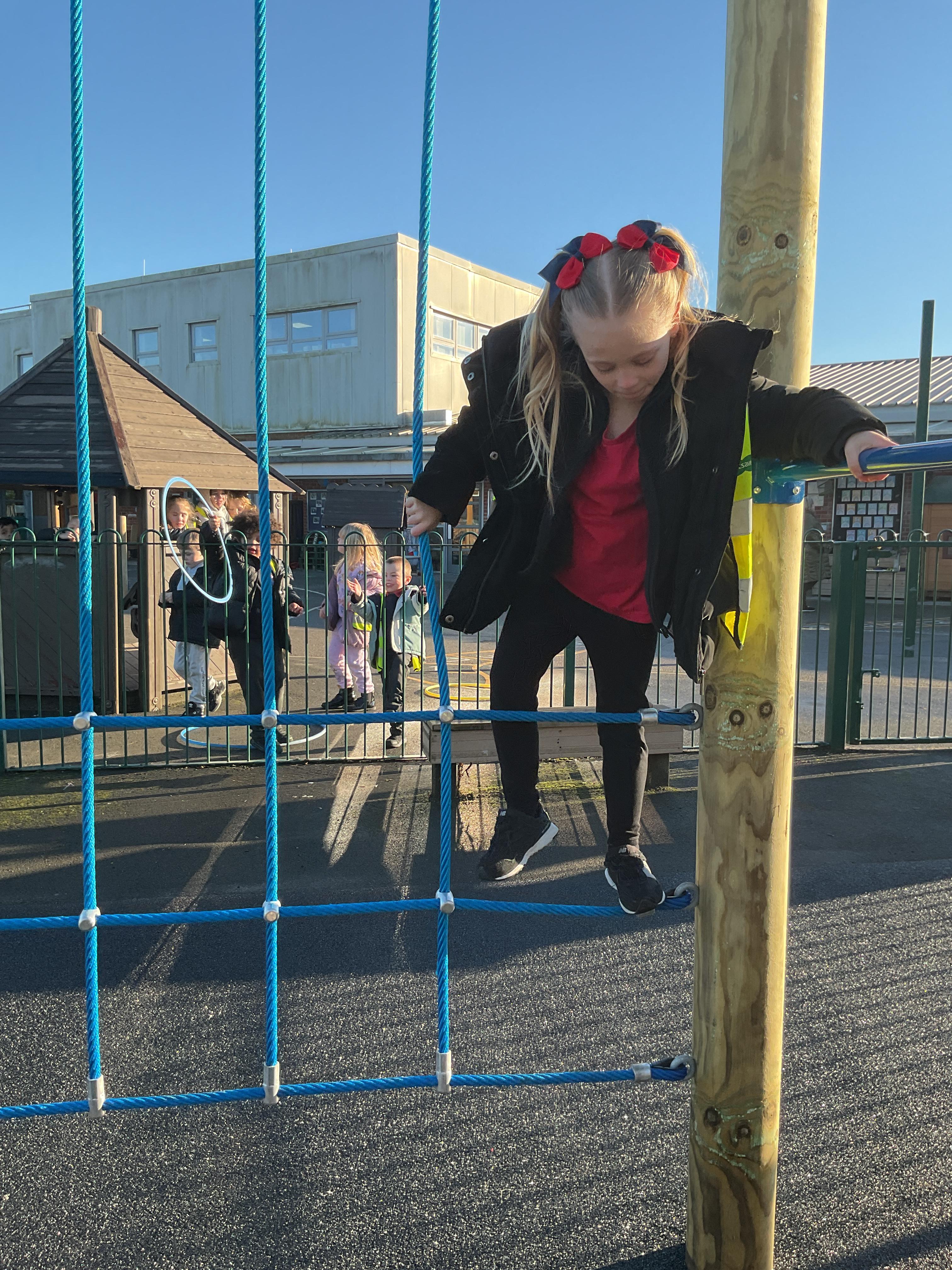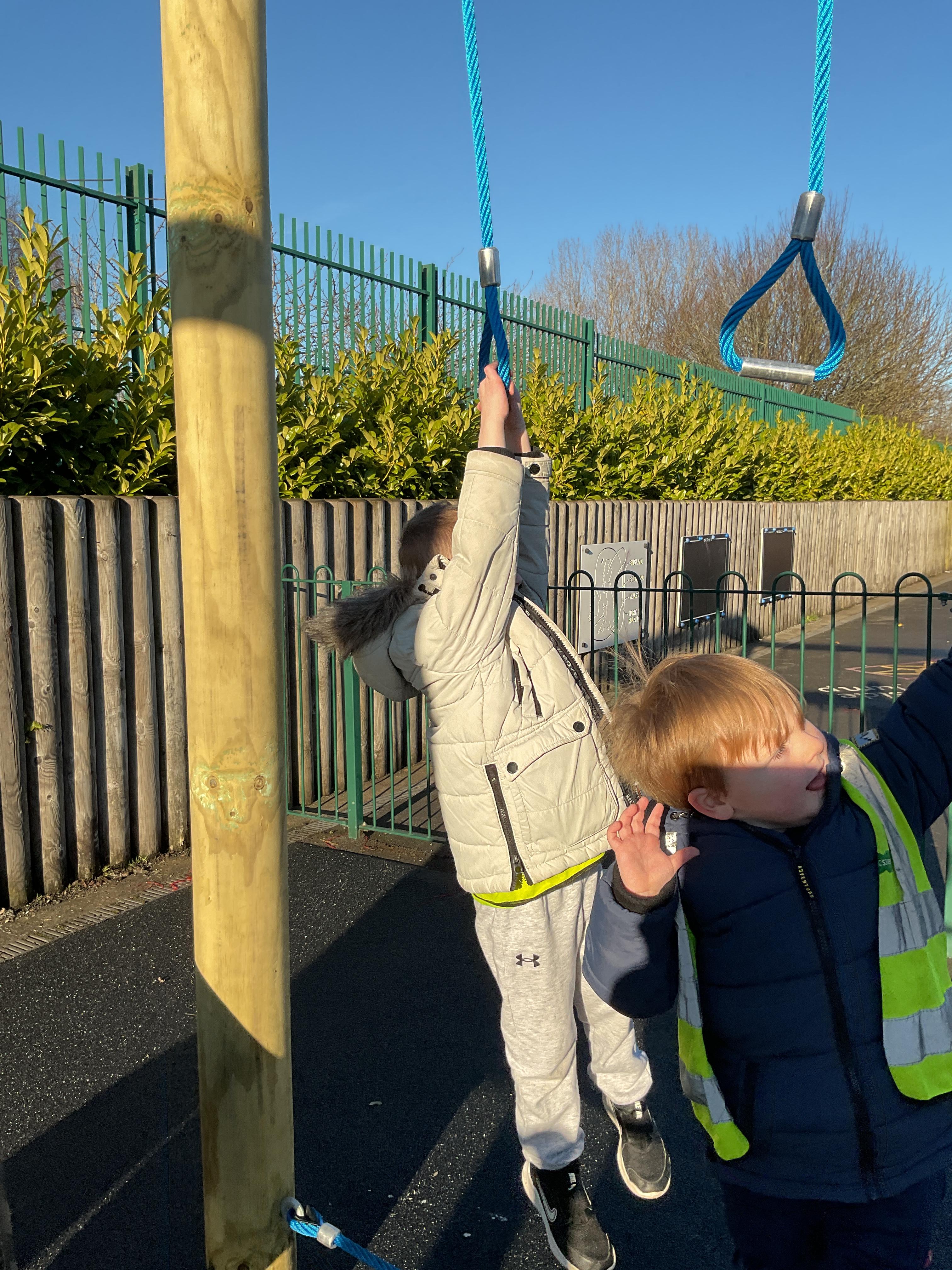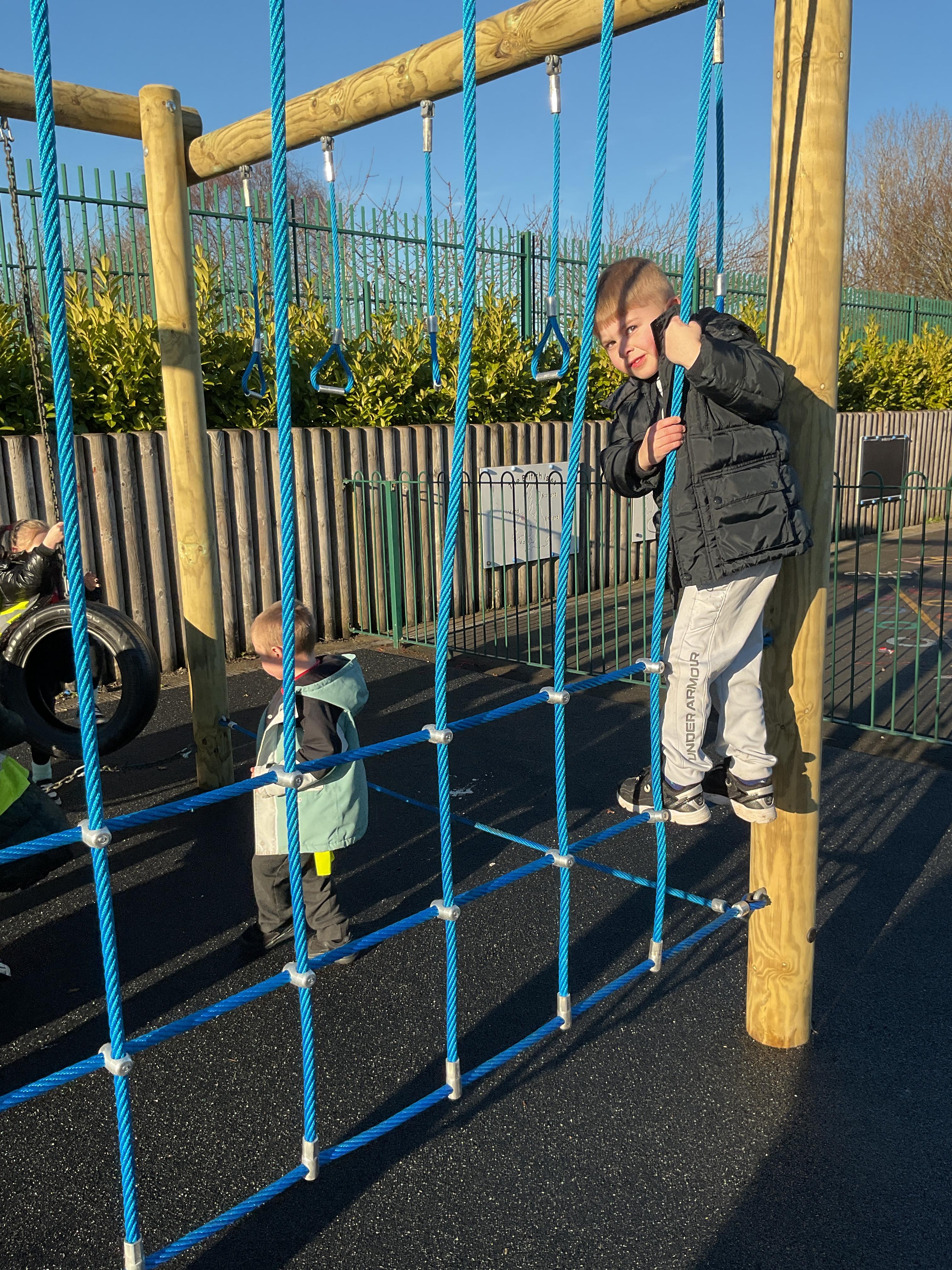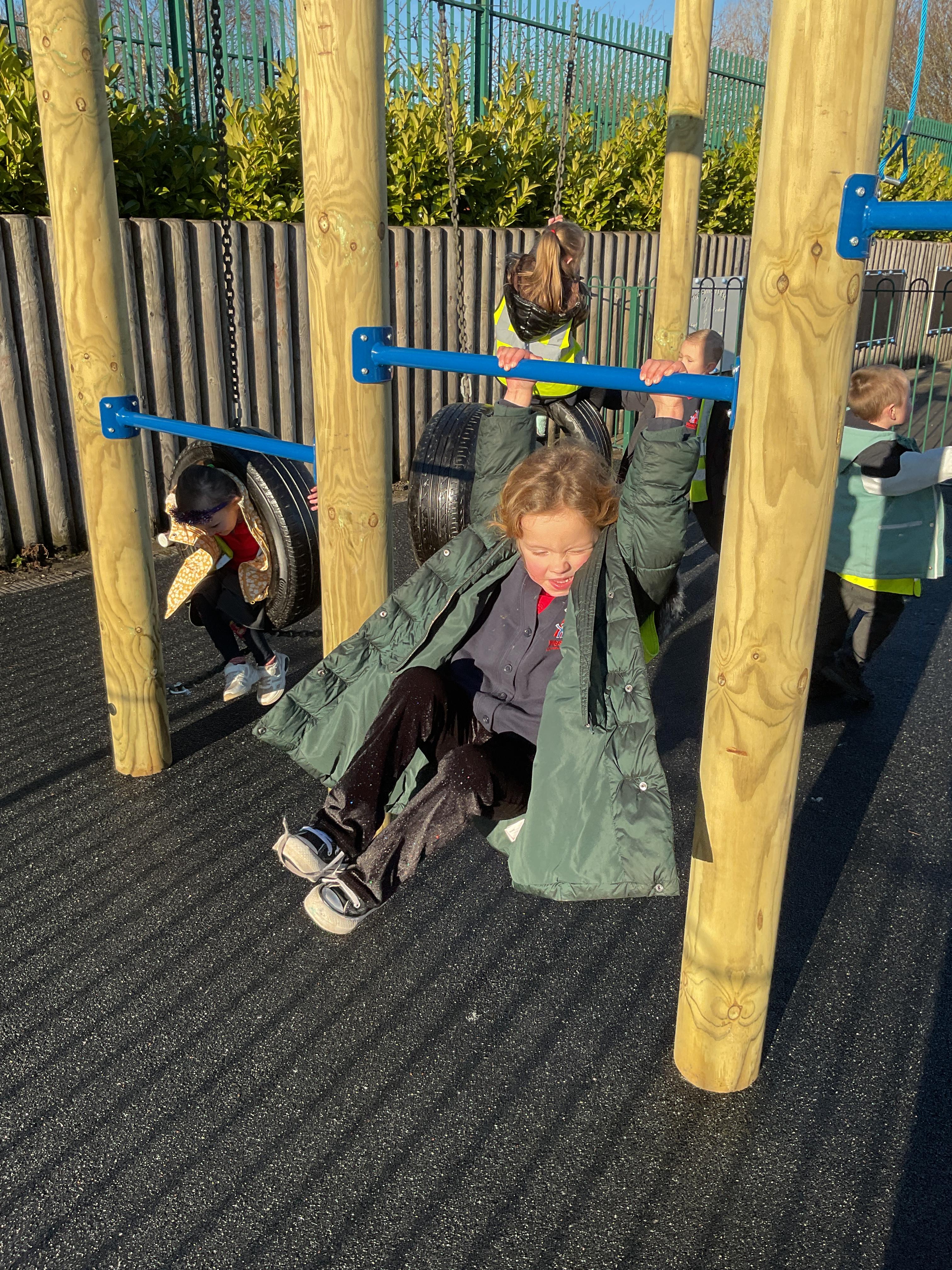 The weather finally got a little bit less icy which meant we were allowed to use our new climbing frame! We can climb, swing and balance.