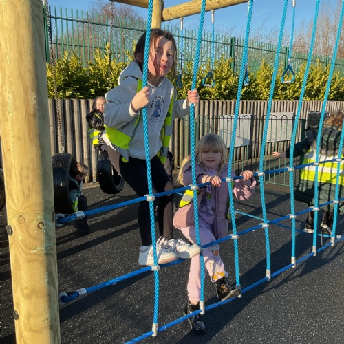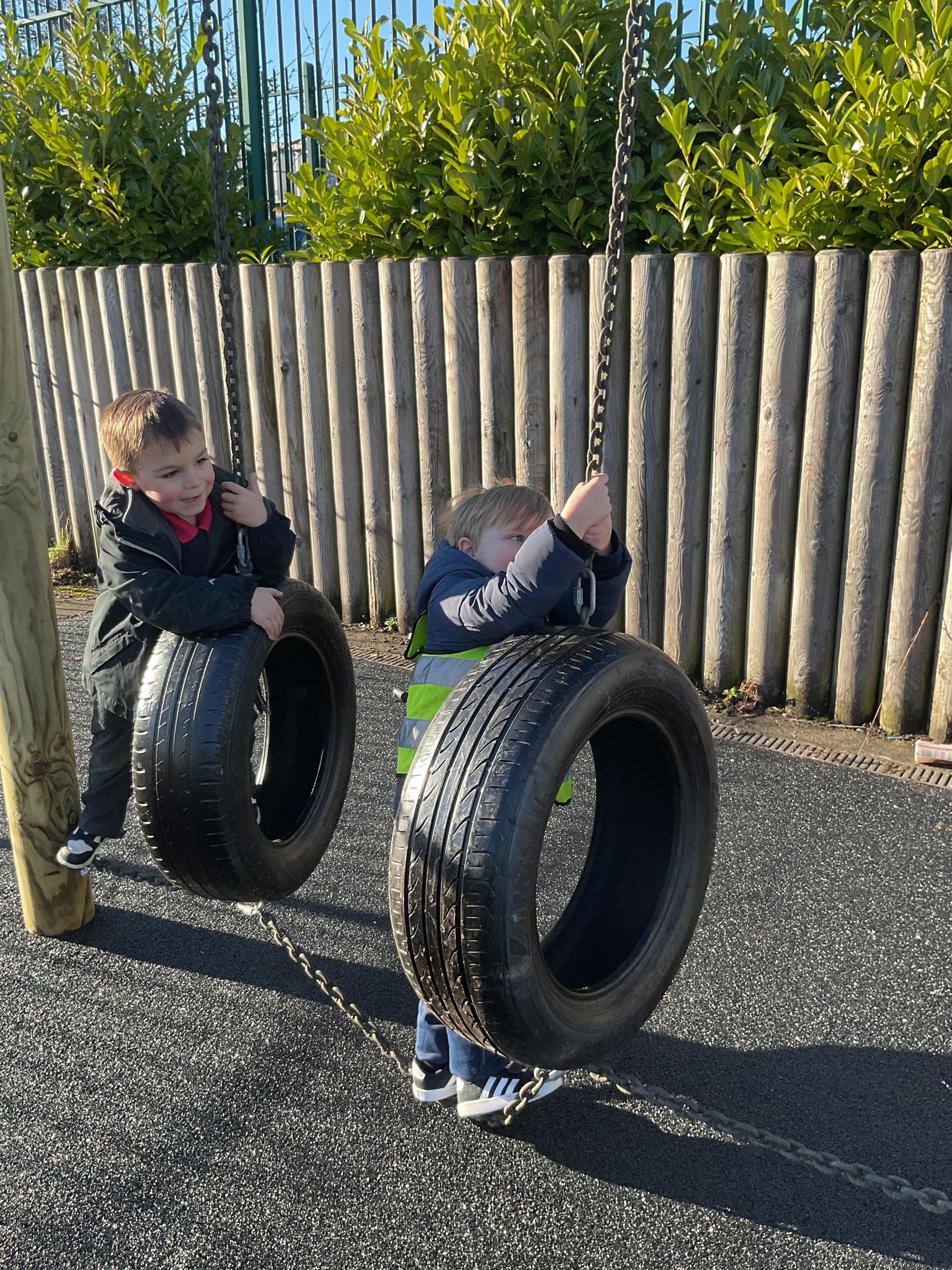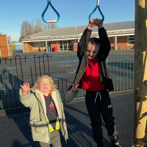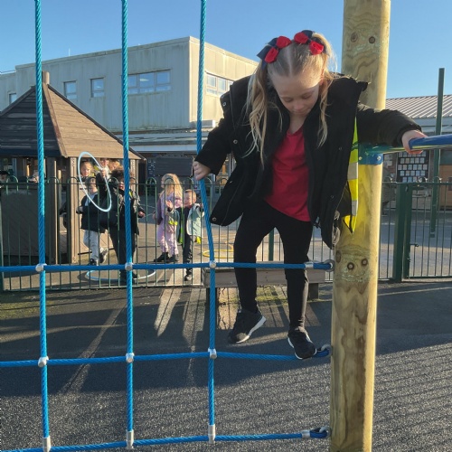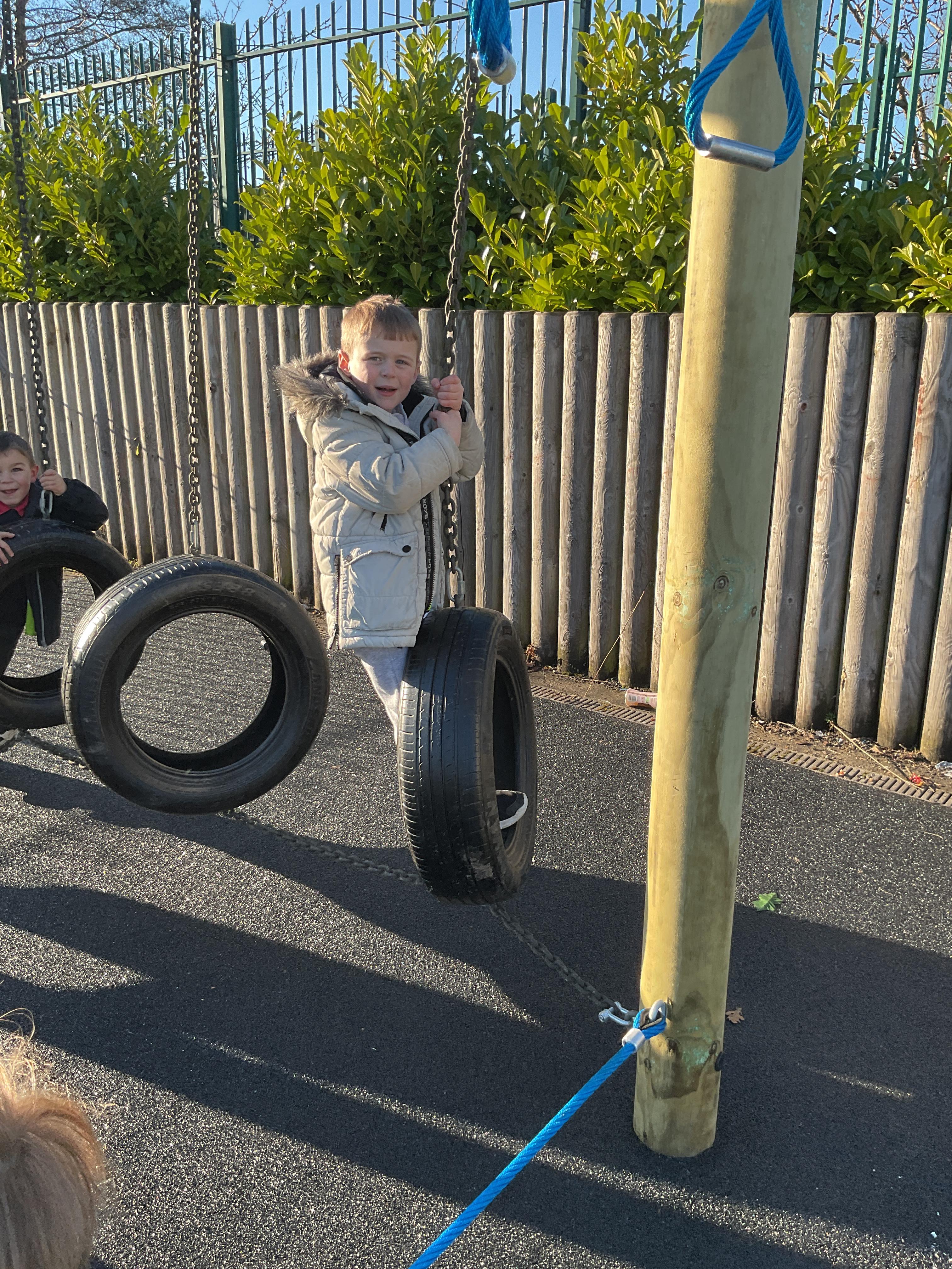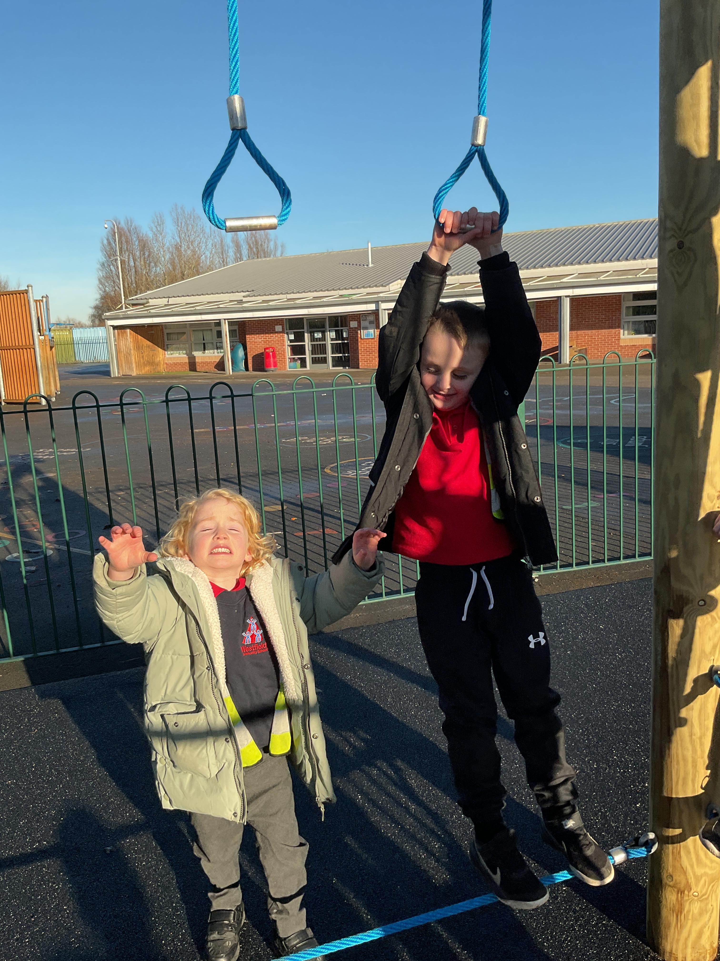 The weather finally got a little bit less icy which meant we were allowed to use our new climbing frame! We can climb, swing and balance.