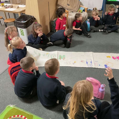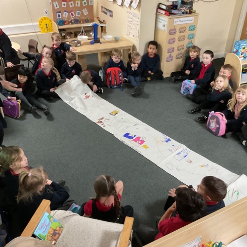 Hello and welcome back to our class blog. This week we have enjoyed recapping all of the stories we already know and consolidating our knowledge on the texts. To start the week we completed a story pathway activity. First we needed to draw a story map which we then took it in turns to walk along the pathway and retell the story.