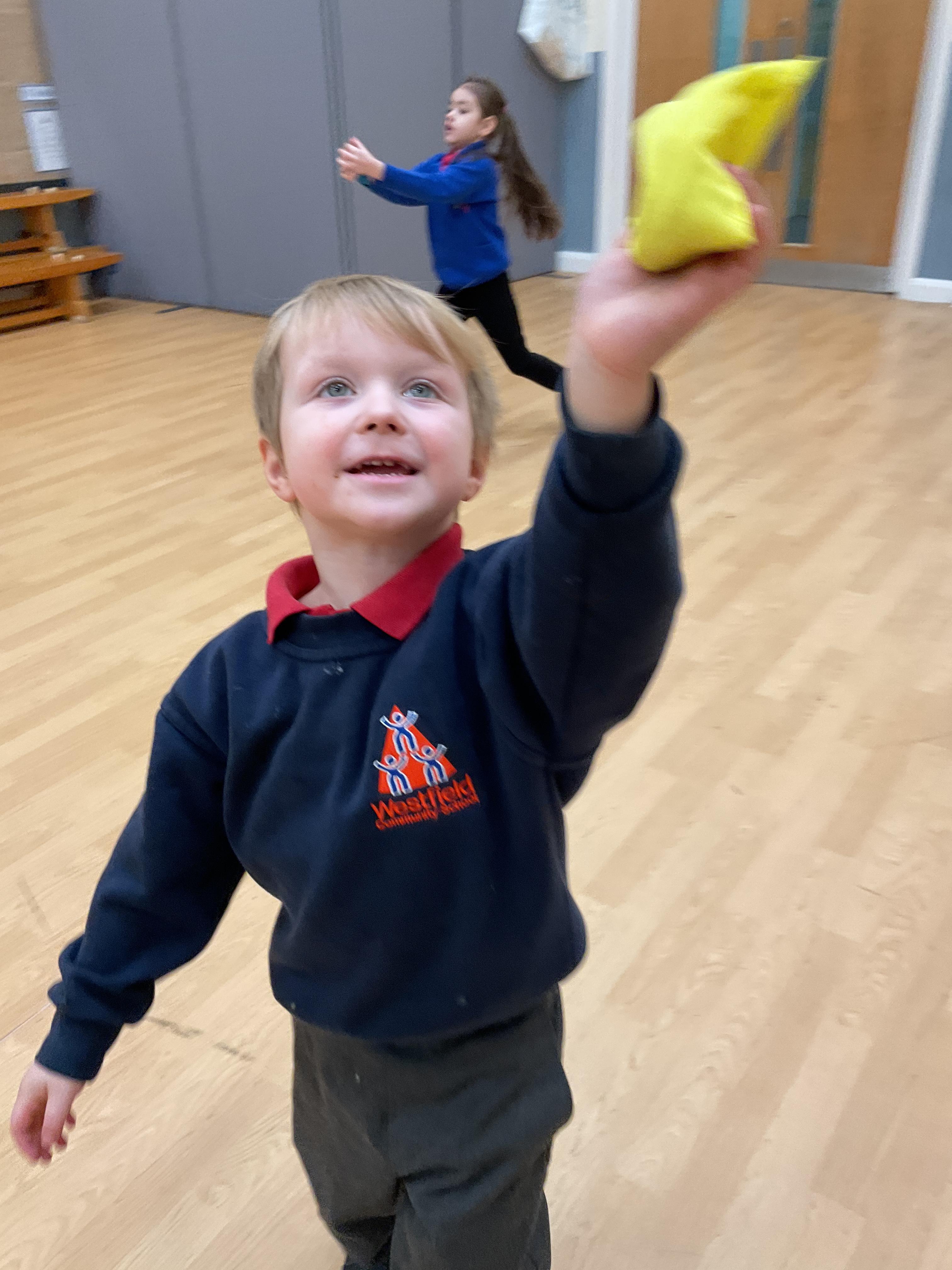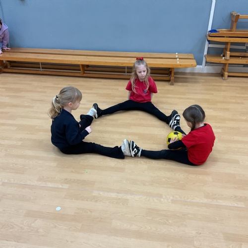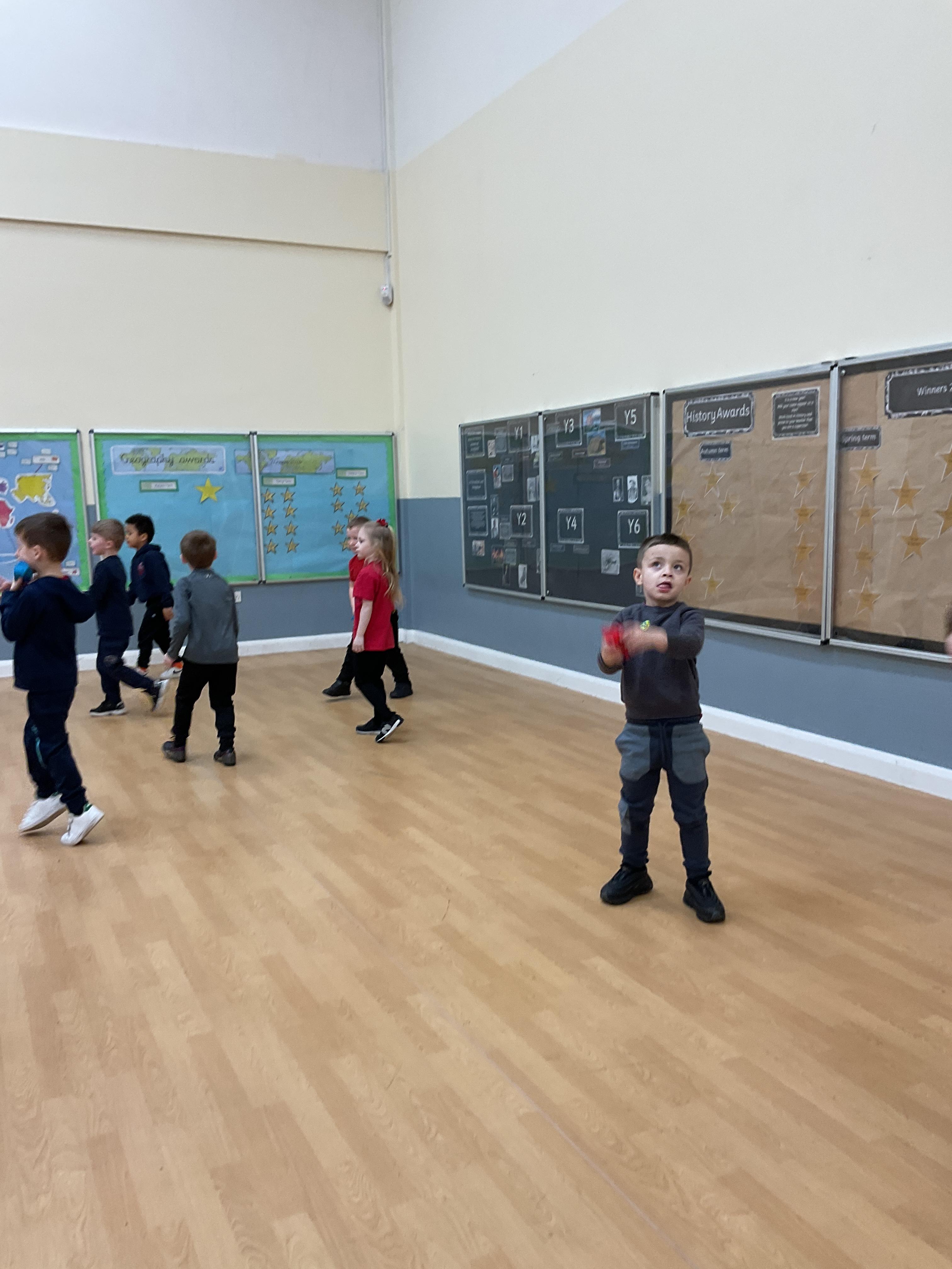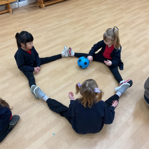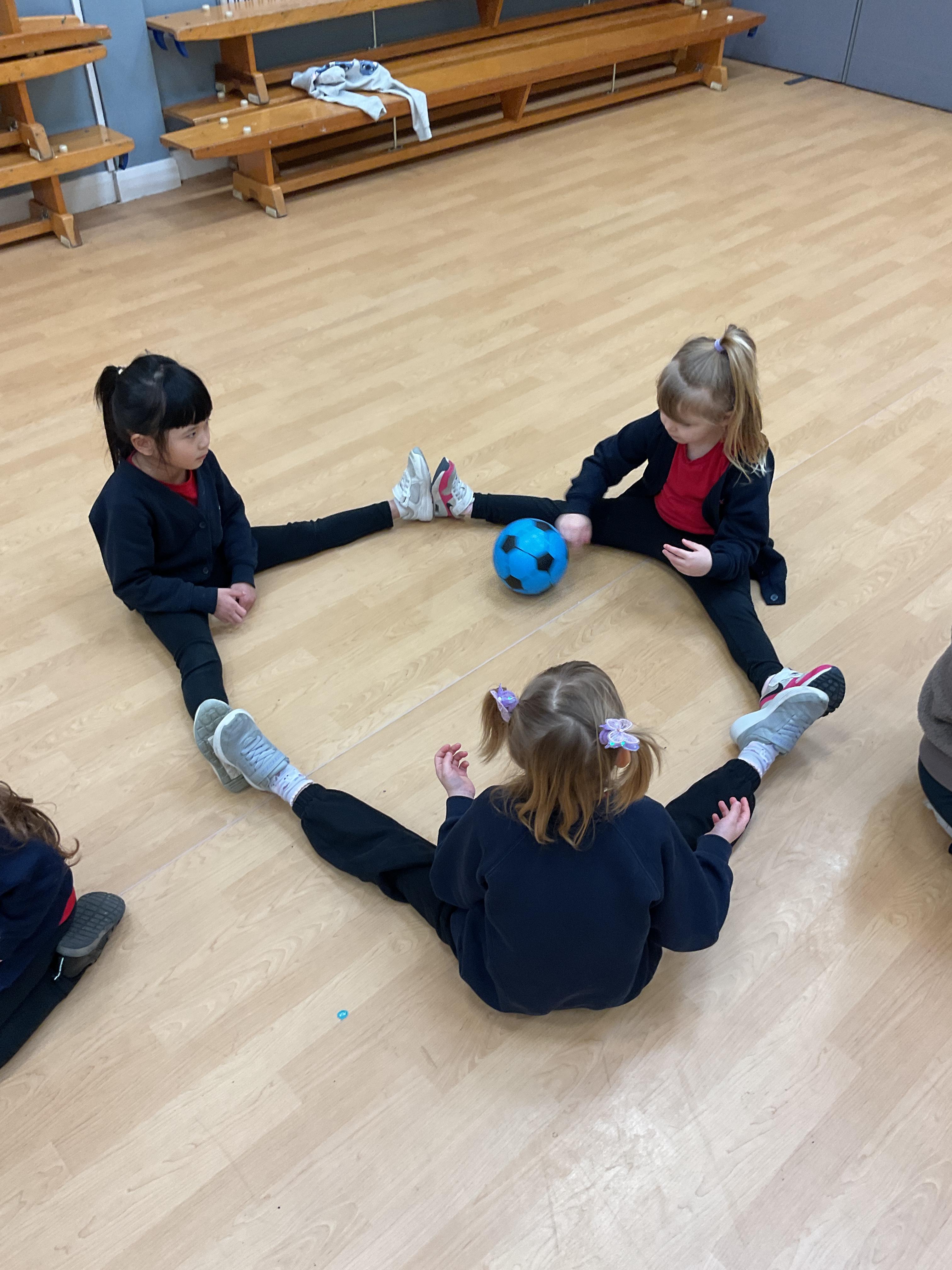 In PE we continued with ball skills. We concentrated when throwing and catching. We also worked in teams to play a ball rolling game.