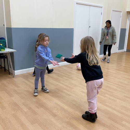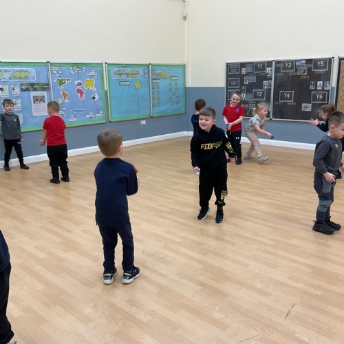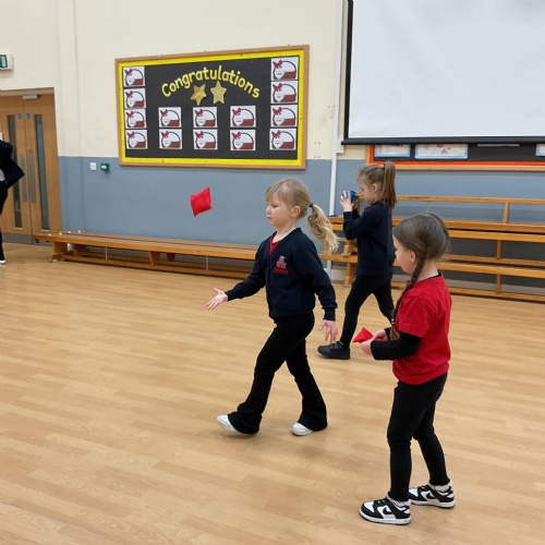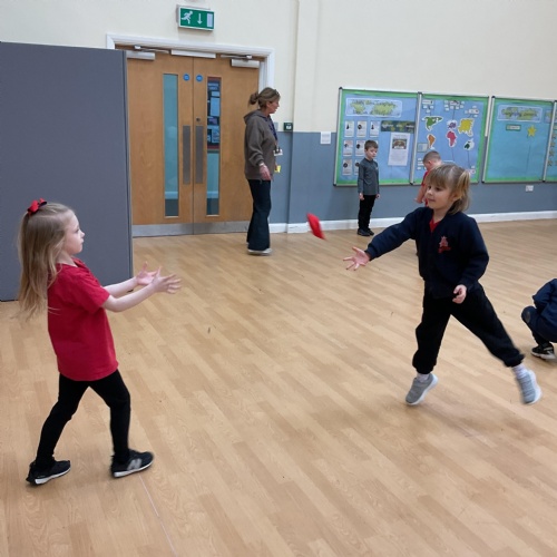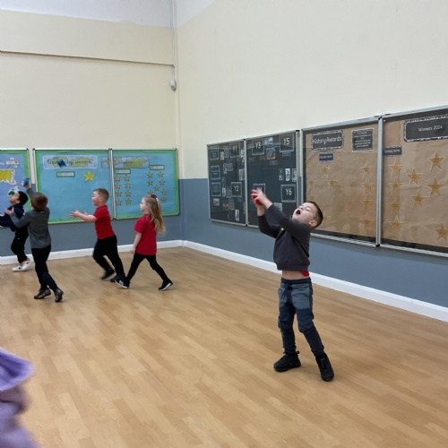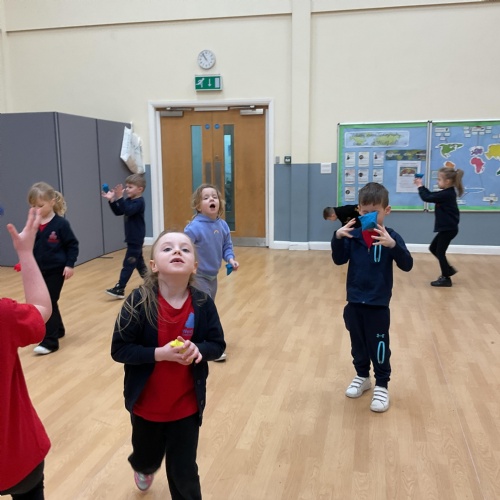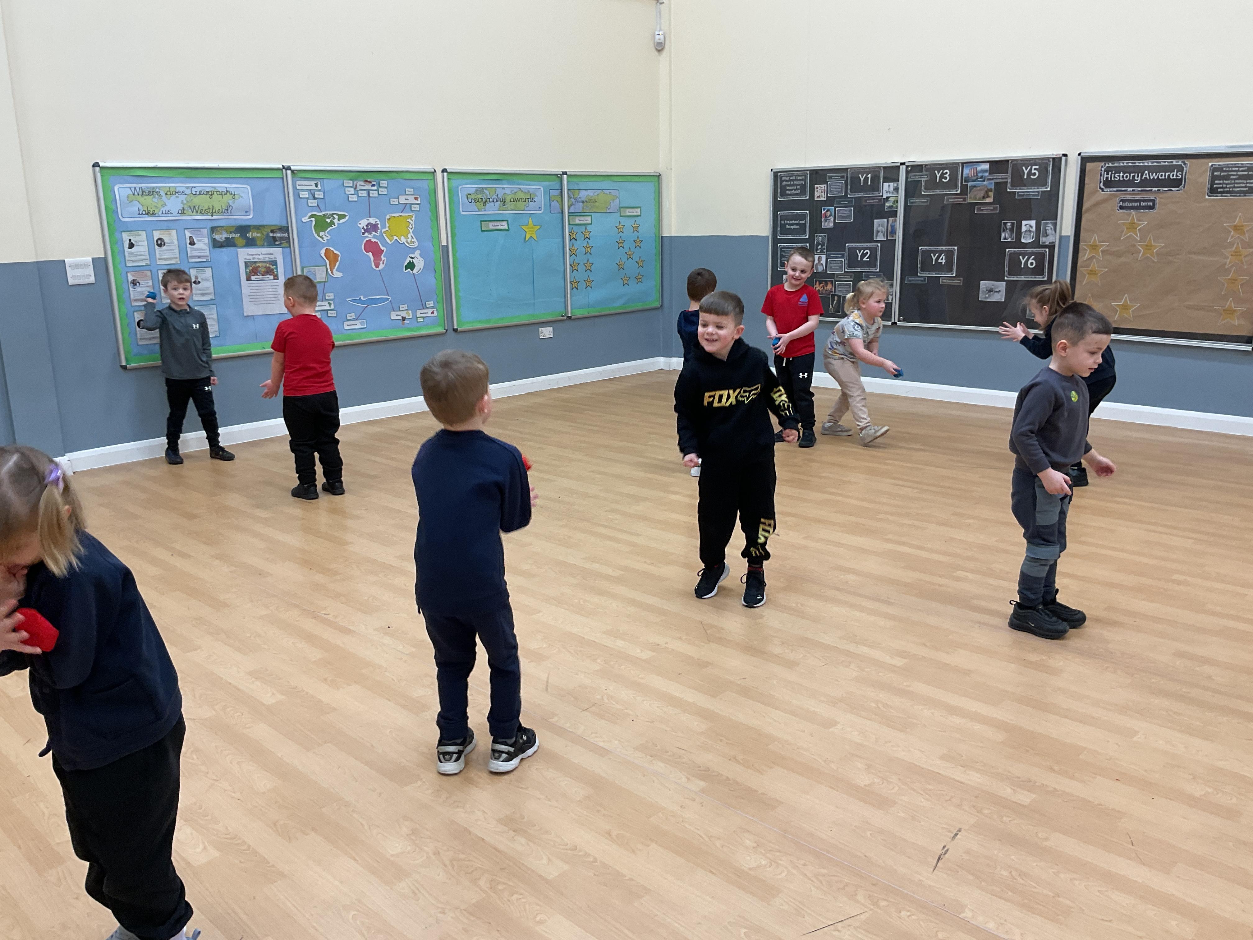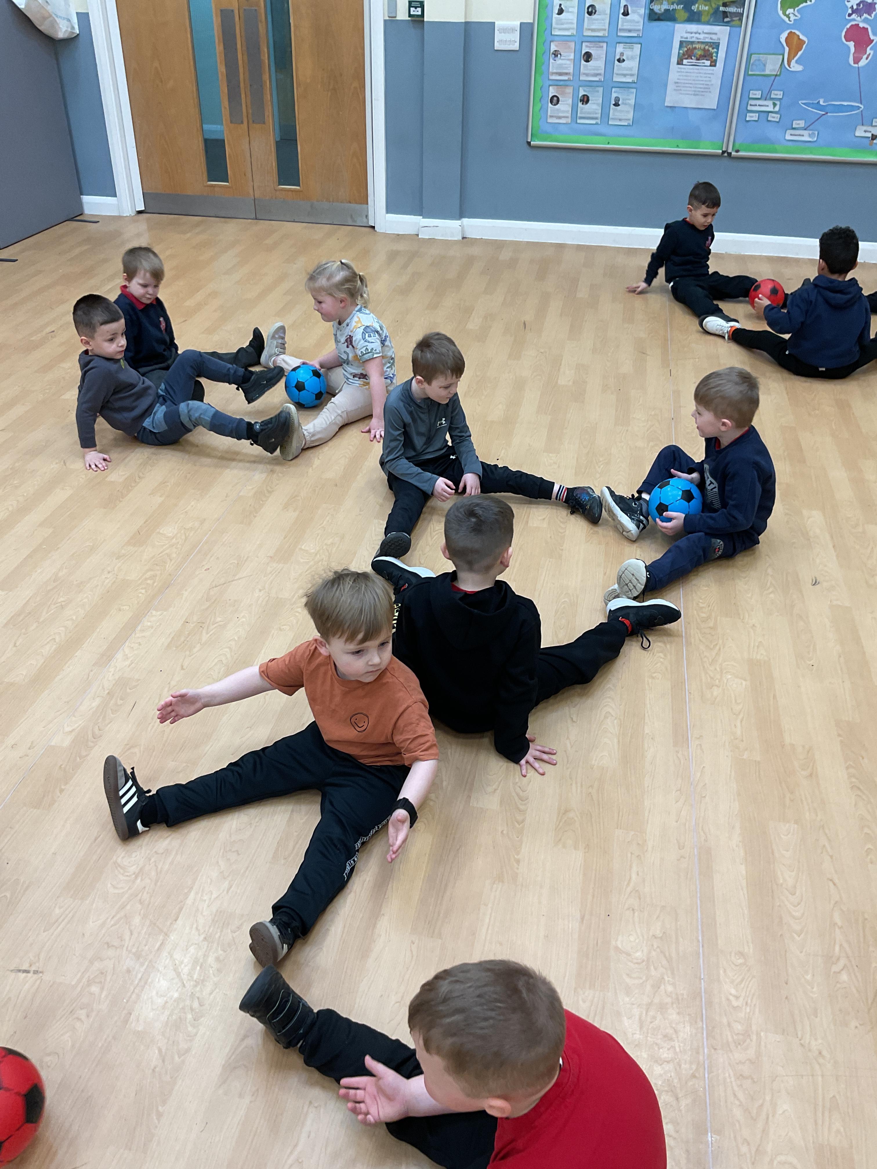 In PE we continued with ball skills. We concentrated when throwing and catching. We also worked in teams to play a ball rolling game.