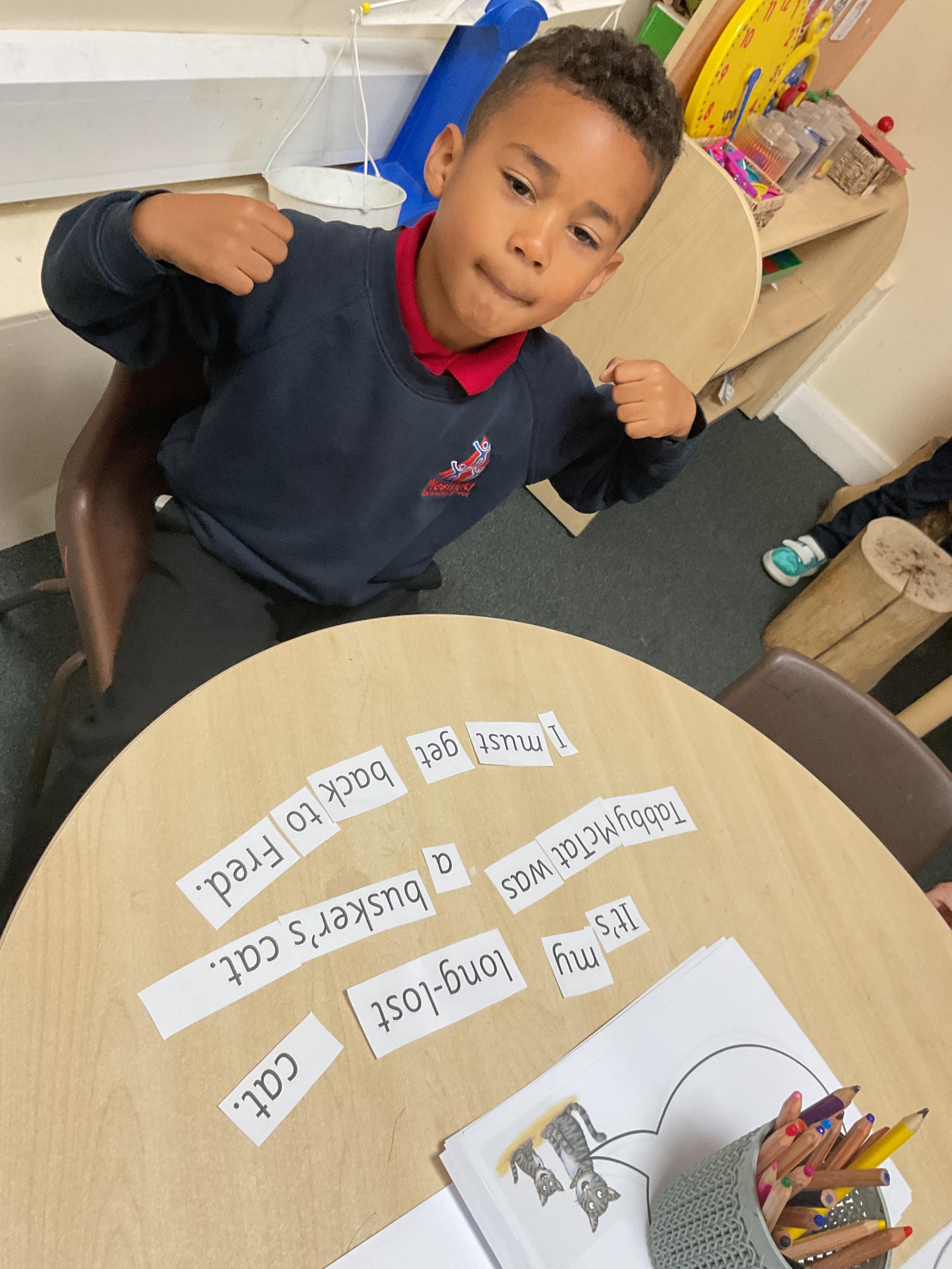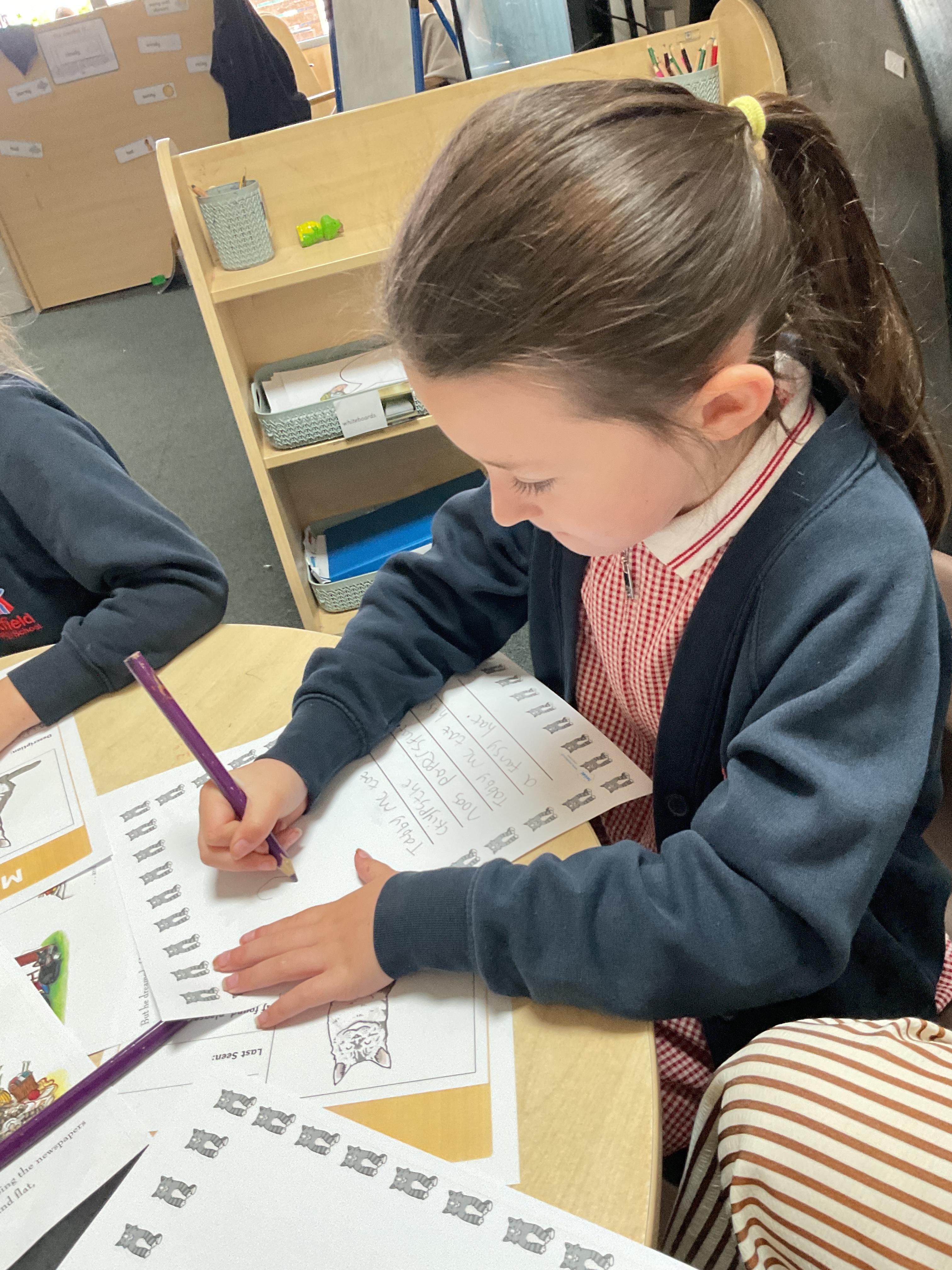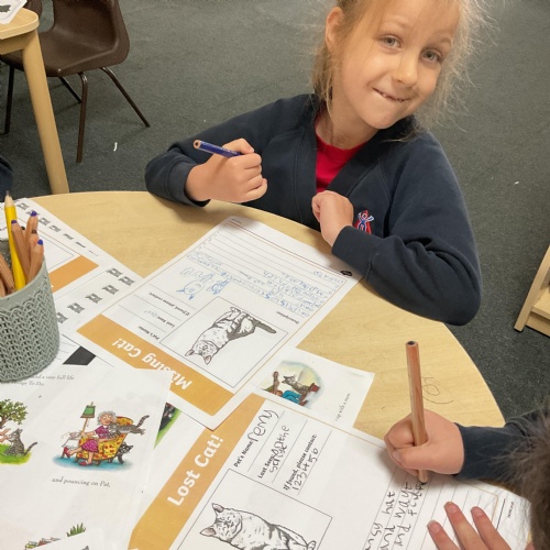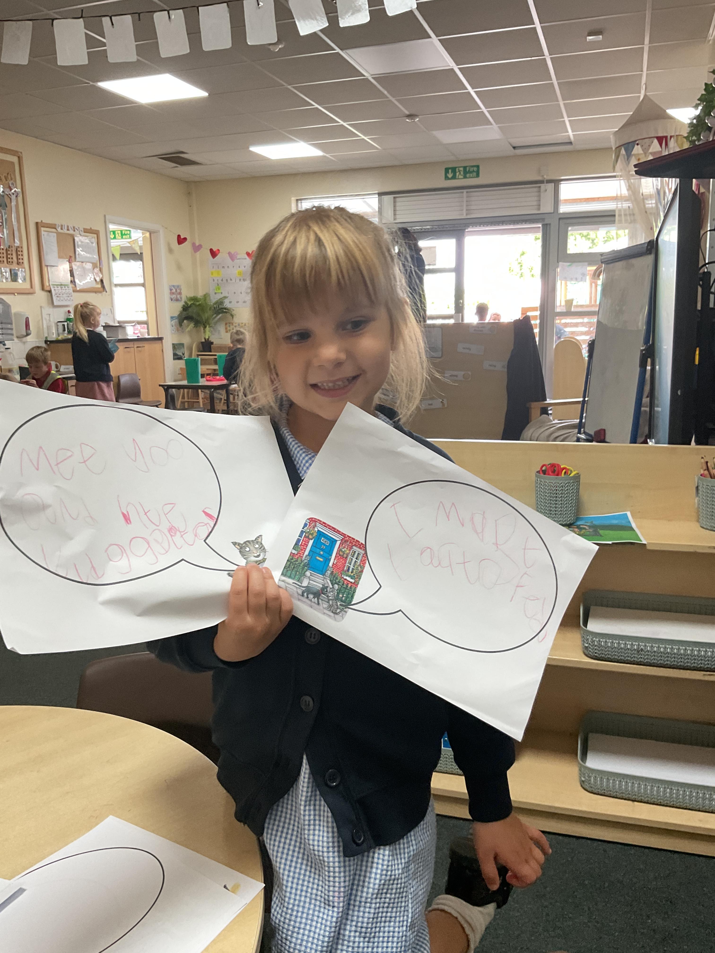 We've really enjoyed working with the text, 'Tabby McTat' by Julia Donaldson this week. In literacy, we have looked at rhyming words within the story, we have read and sequenced sentences from the story, we have looked at the main events within the book and we have chosen a character from the story to describe.