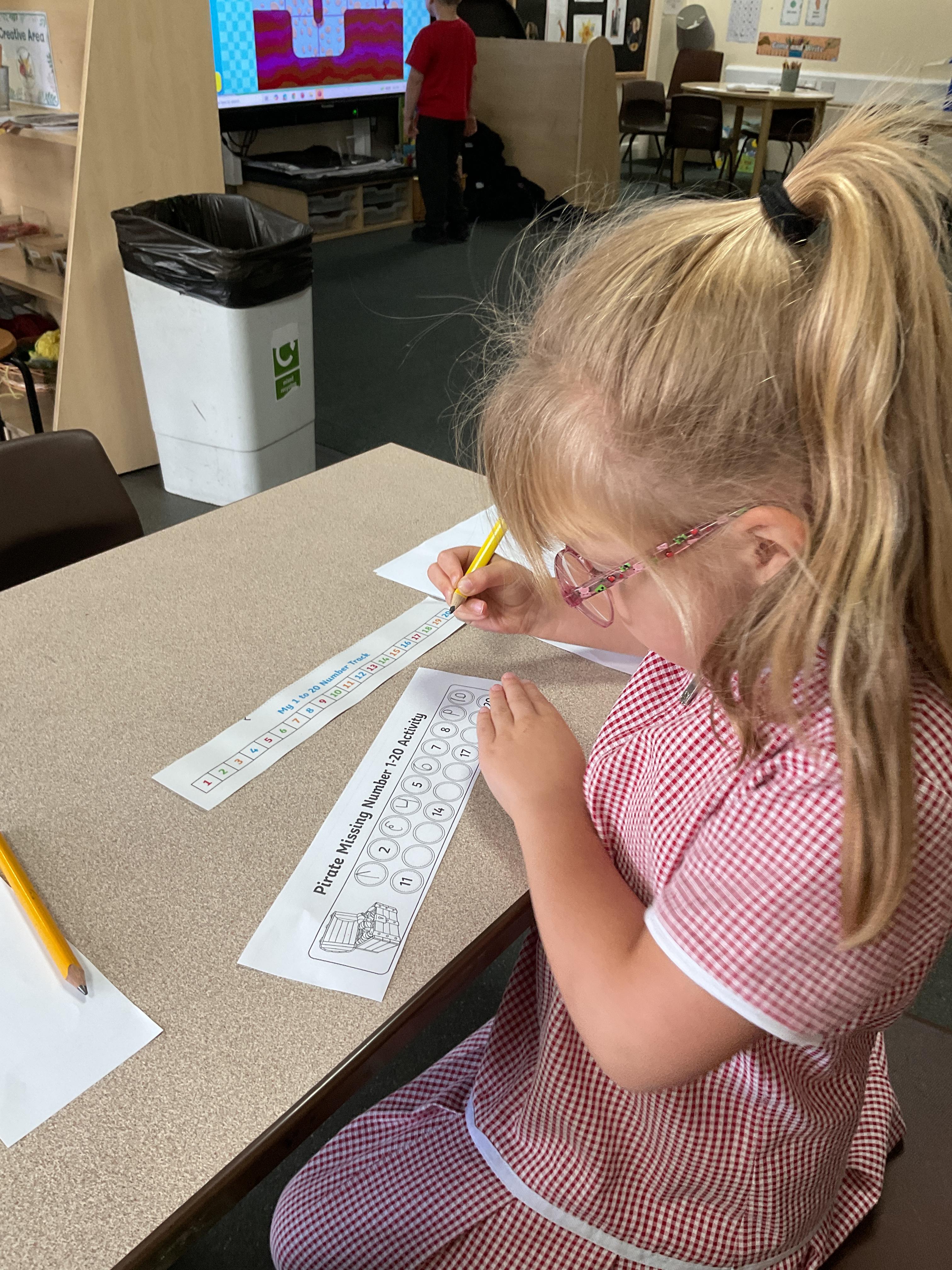 In maths we have been doing lots of number activities, we have been looking at 1 more and 1 less, we have been counting pictures up to 20, we have worked out missing numbers in numberlines.