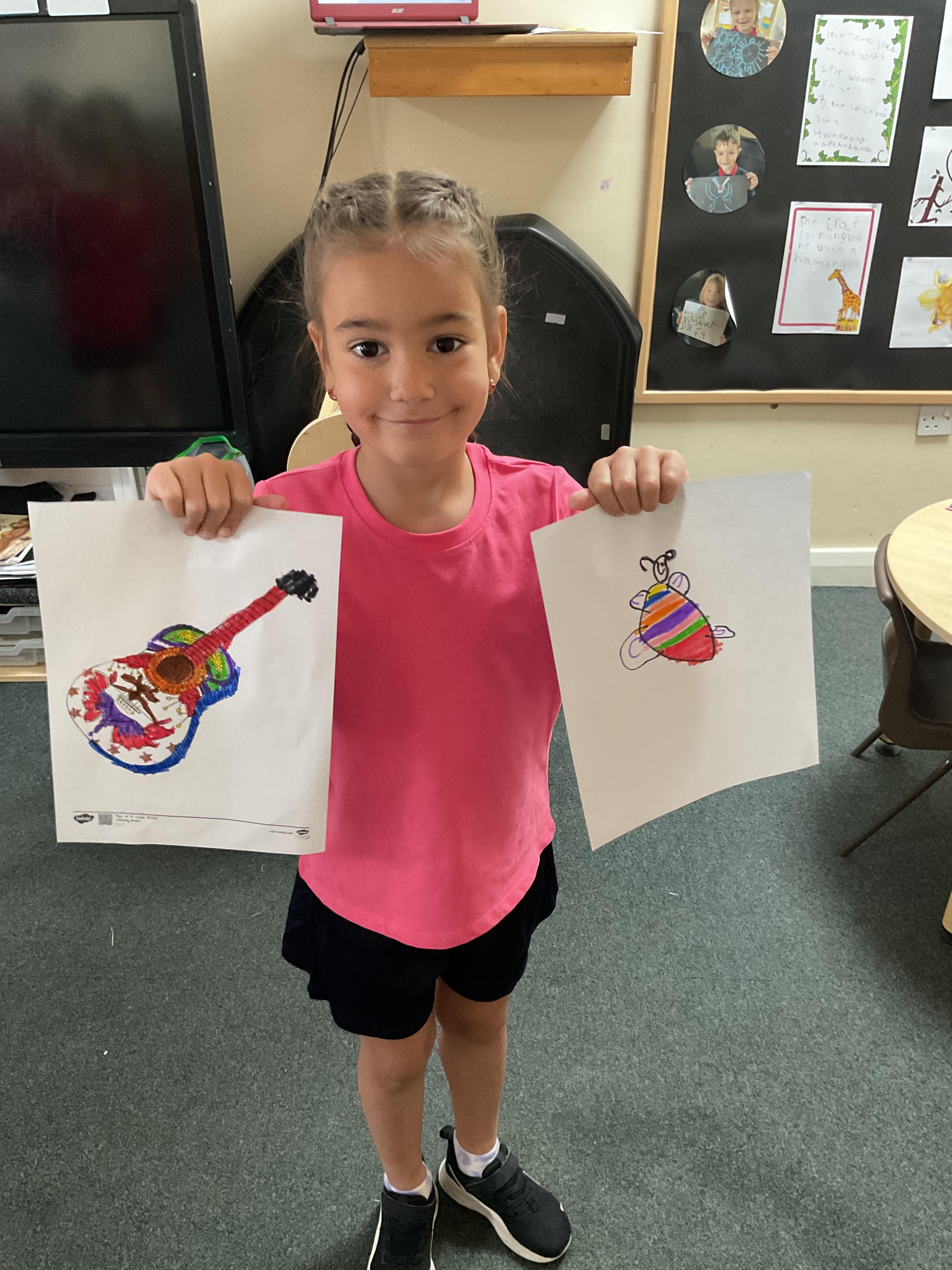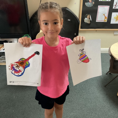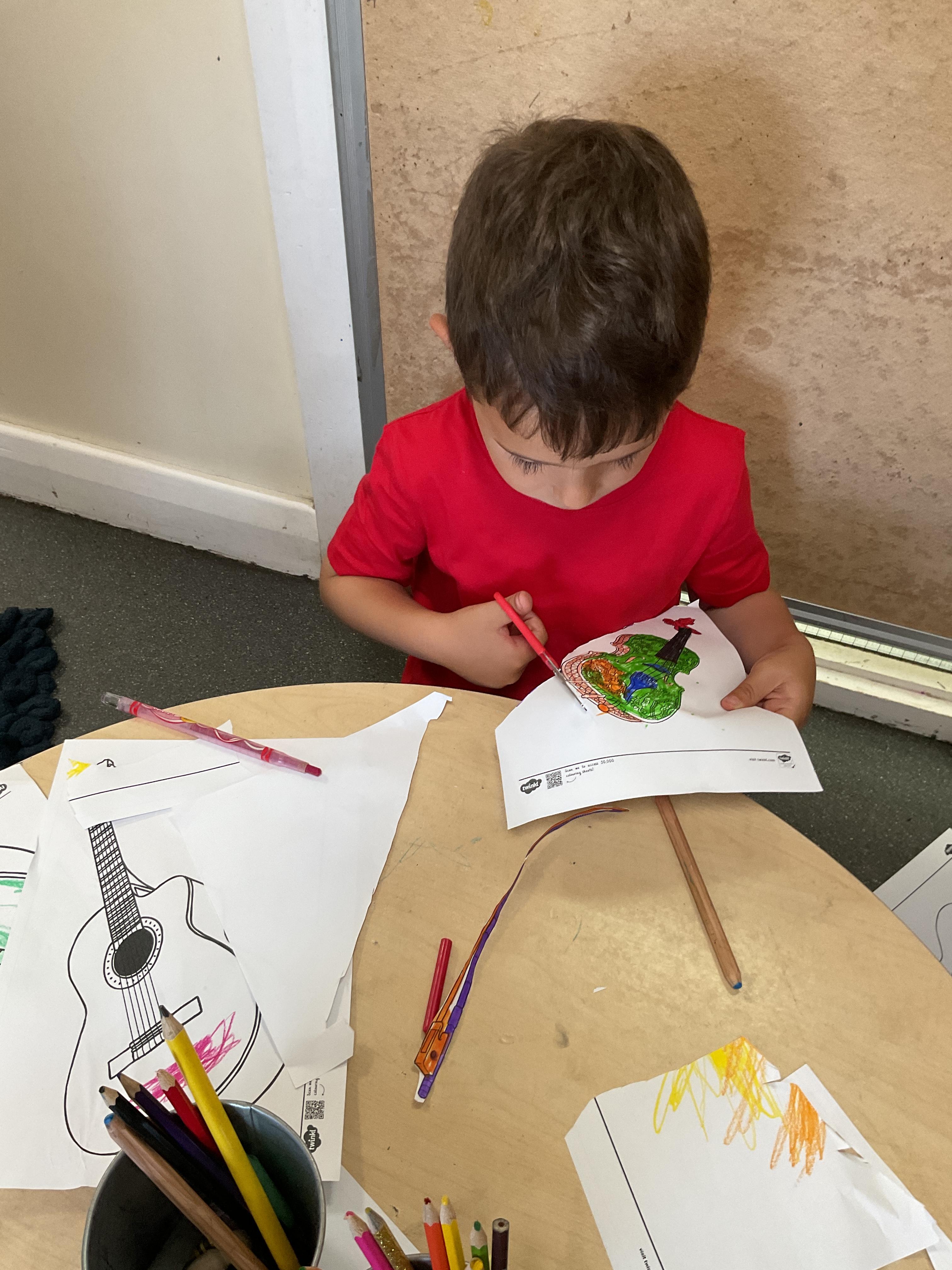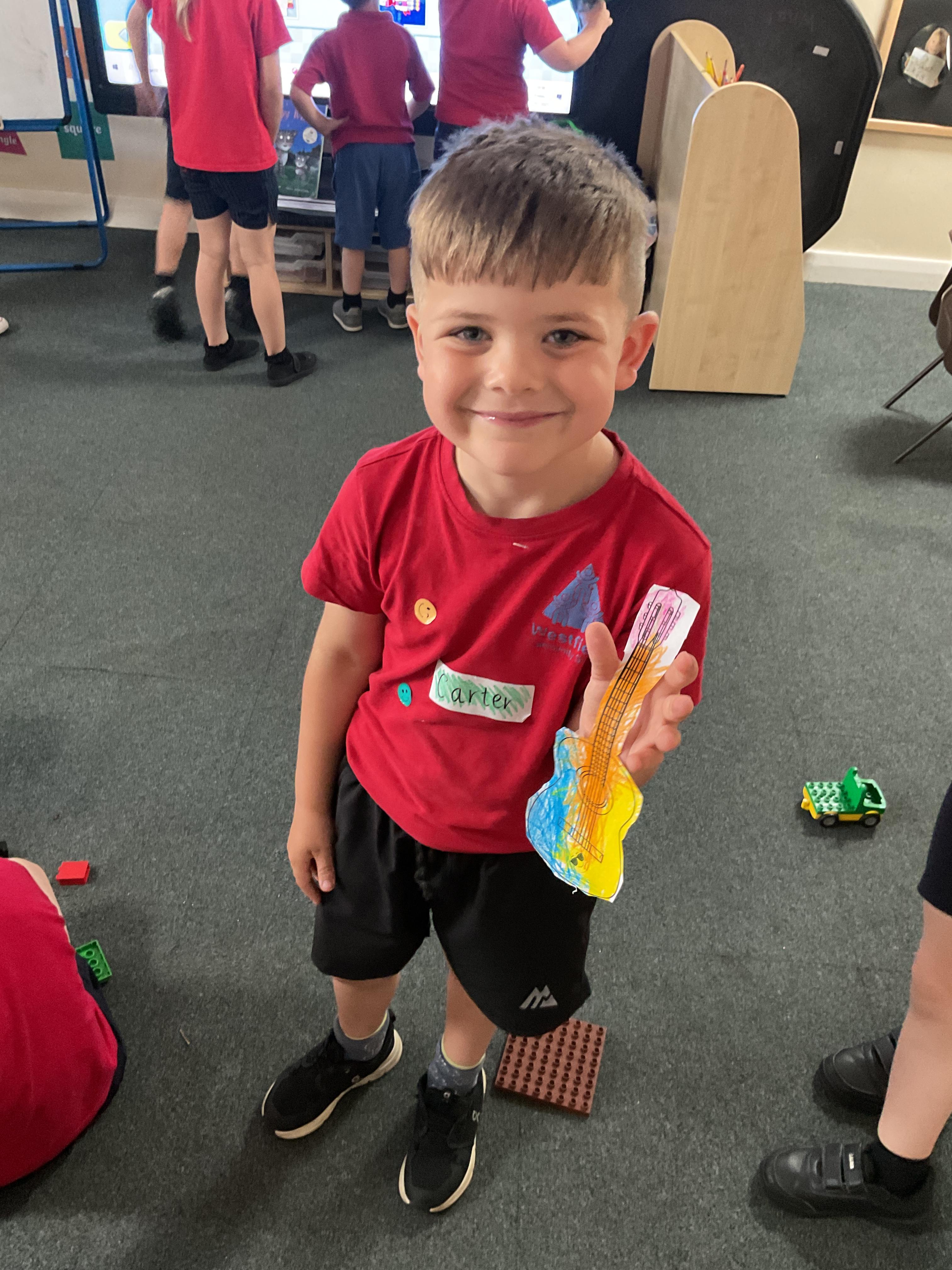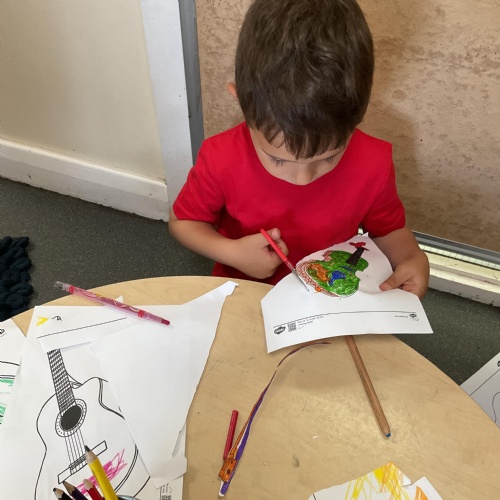 Fred in the Tabby McTat story was a busker who played the guitar, we have coloured and cut out our own guitars. They were fabulous!!!